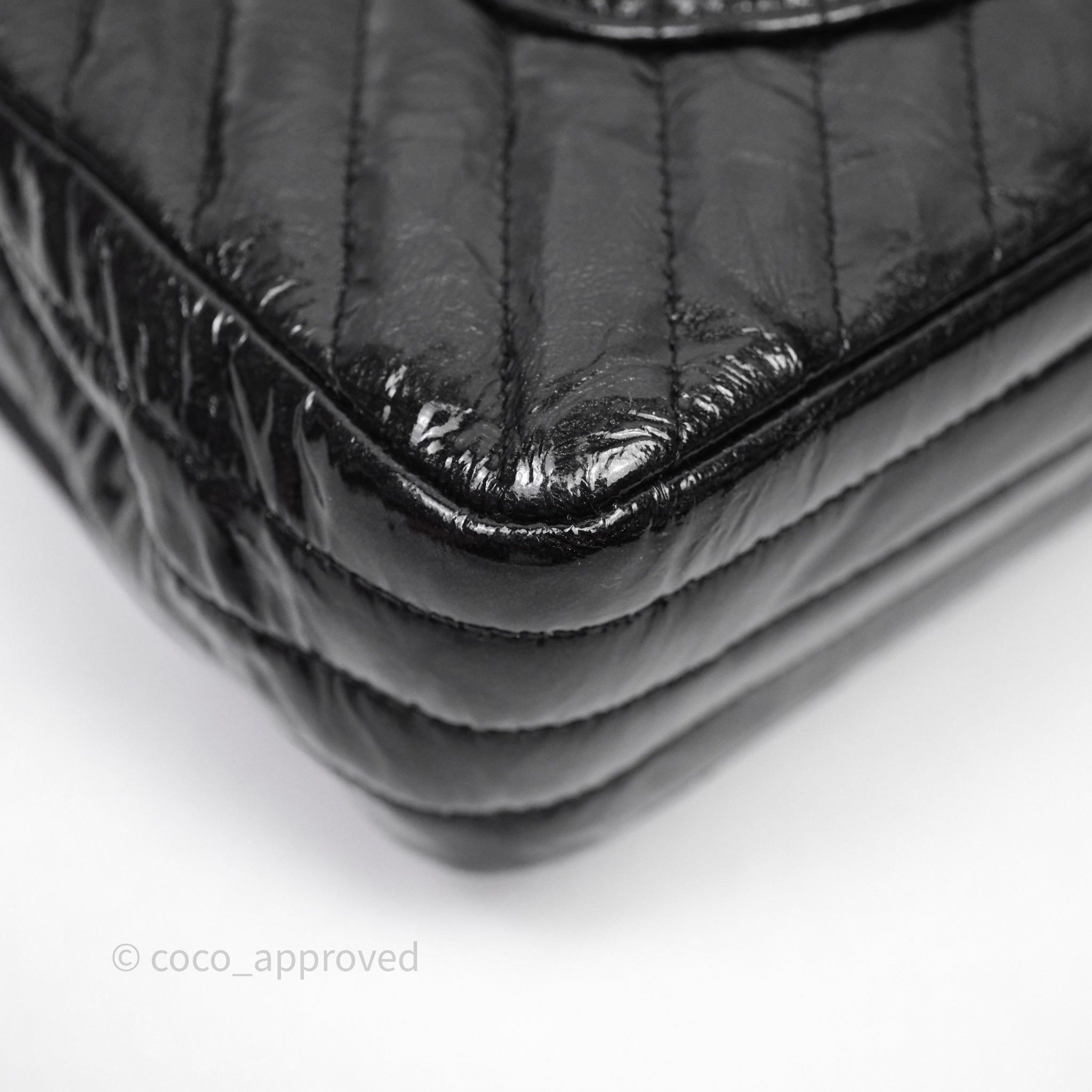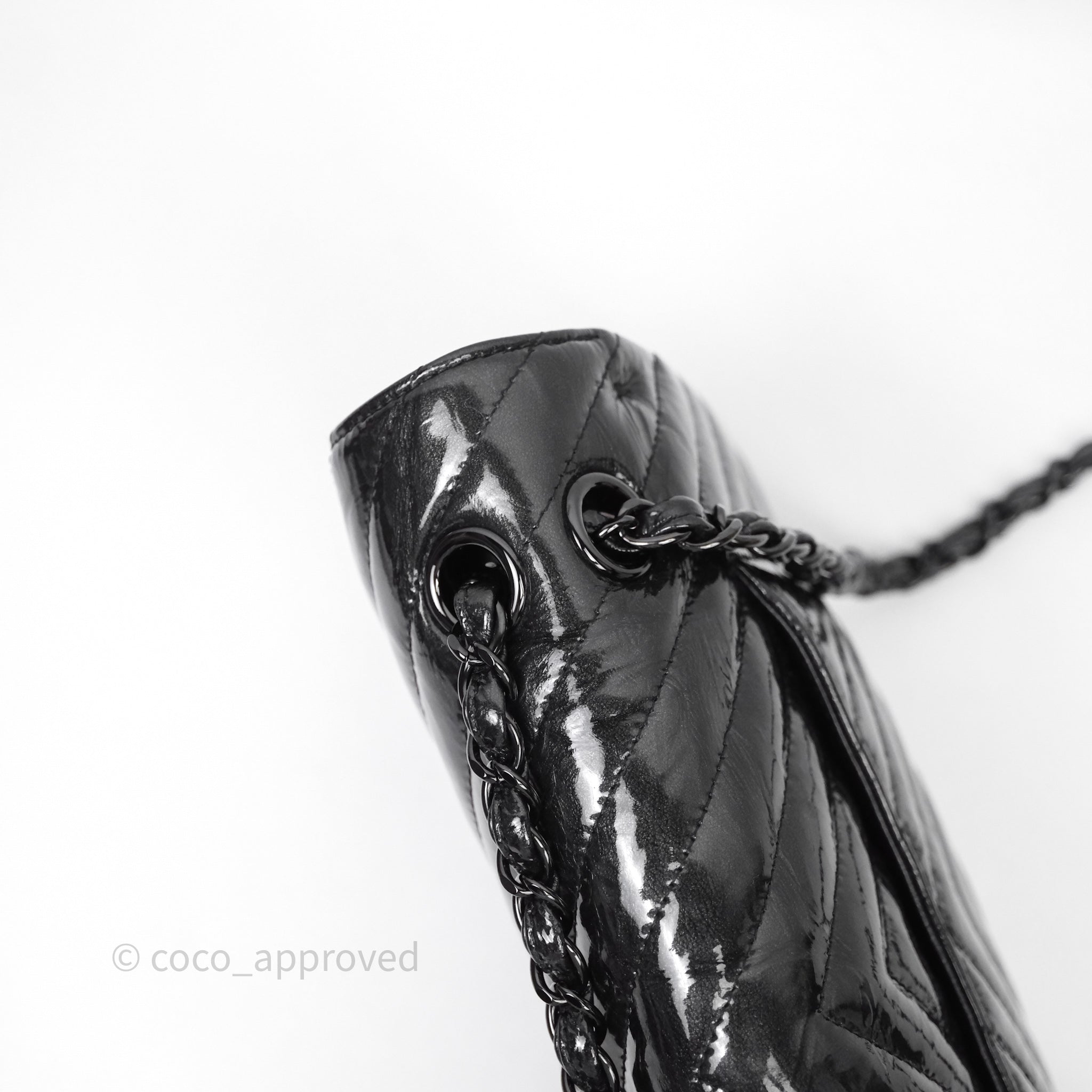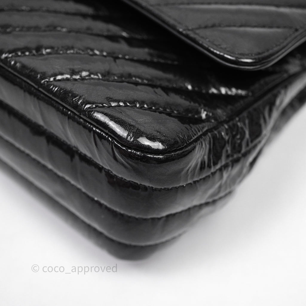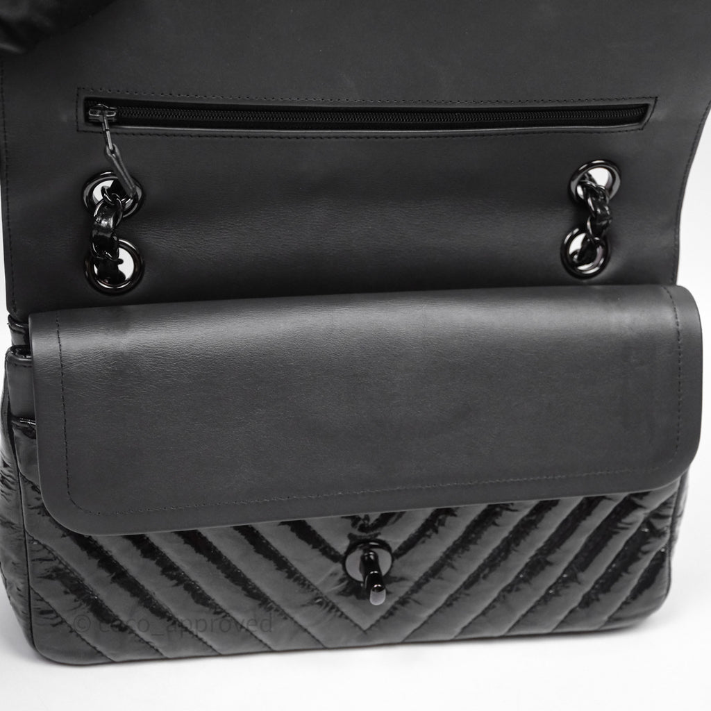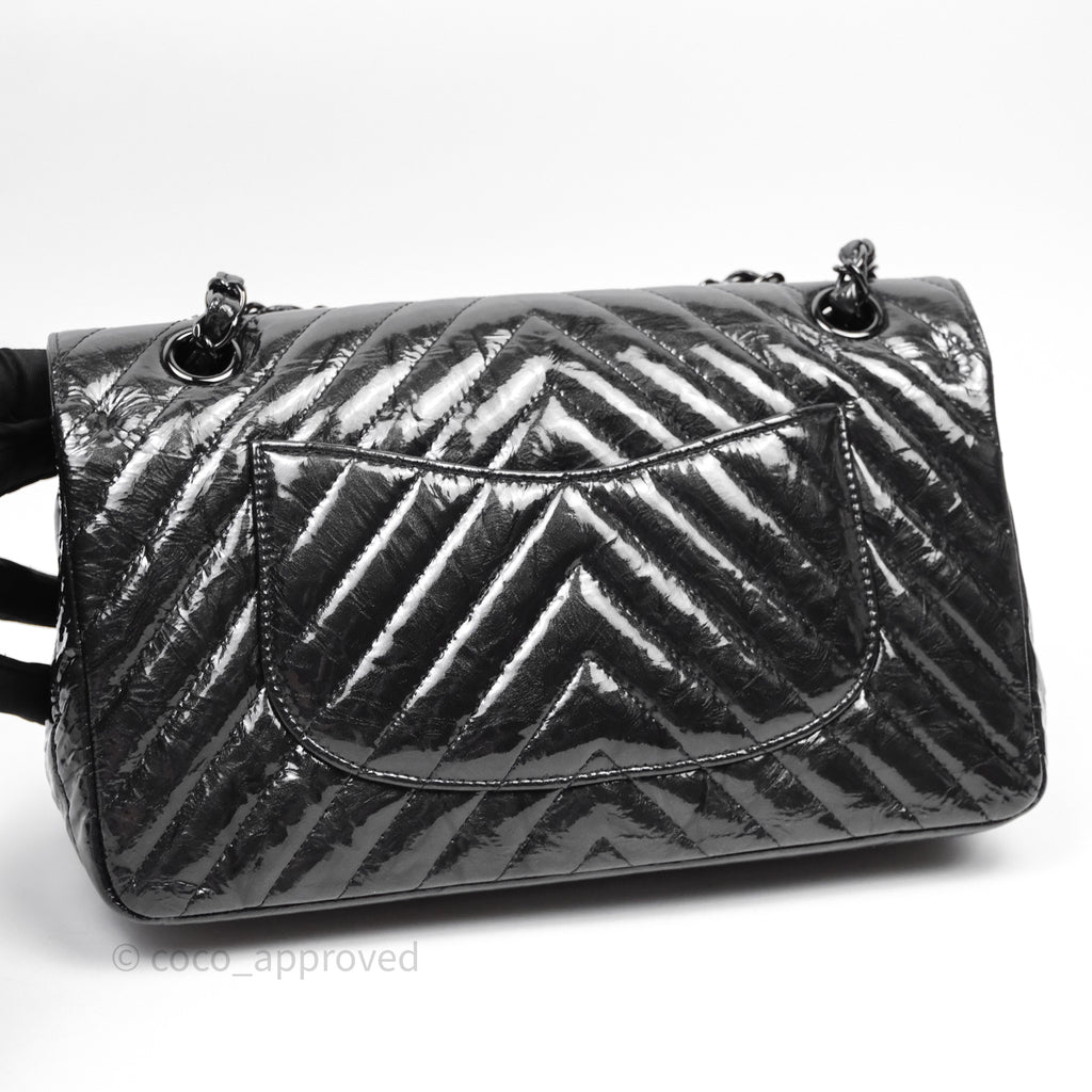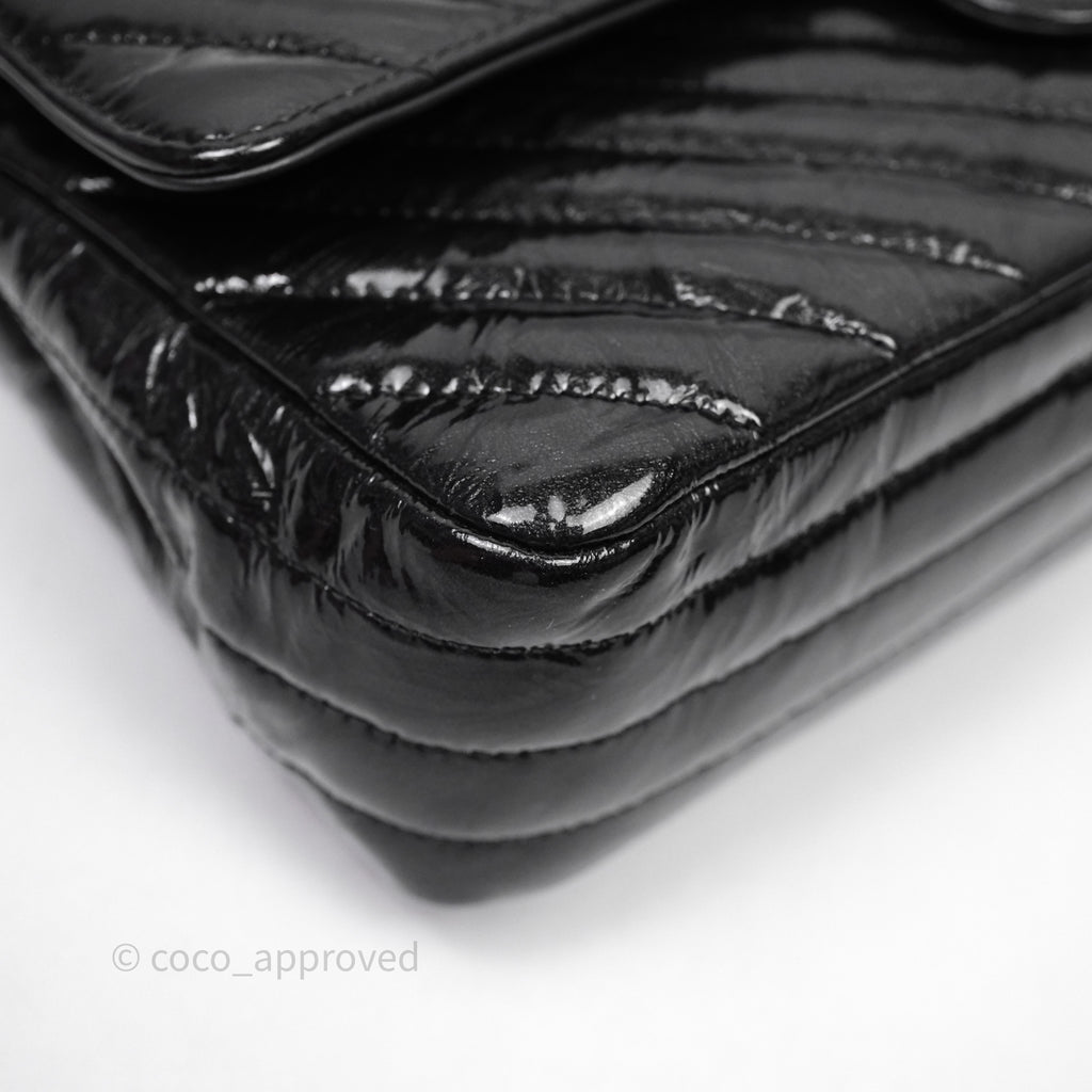 Chanel Classic Chevron M/L Medium Double Flap So Black Patent Calfskin