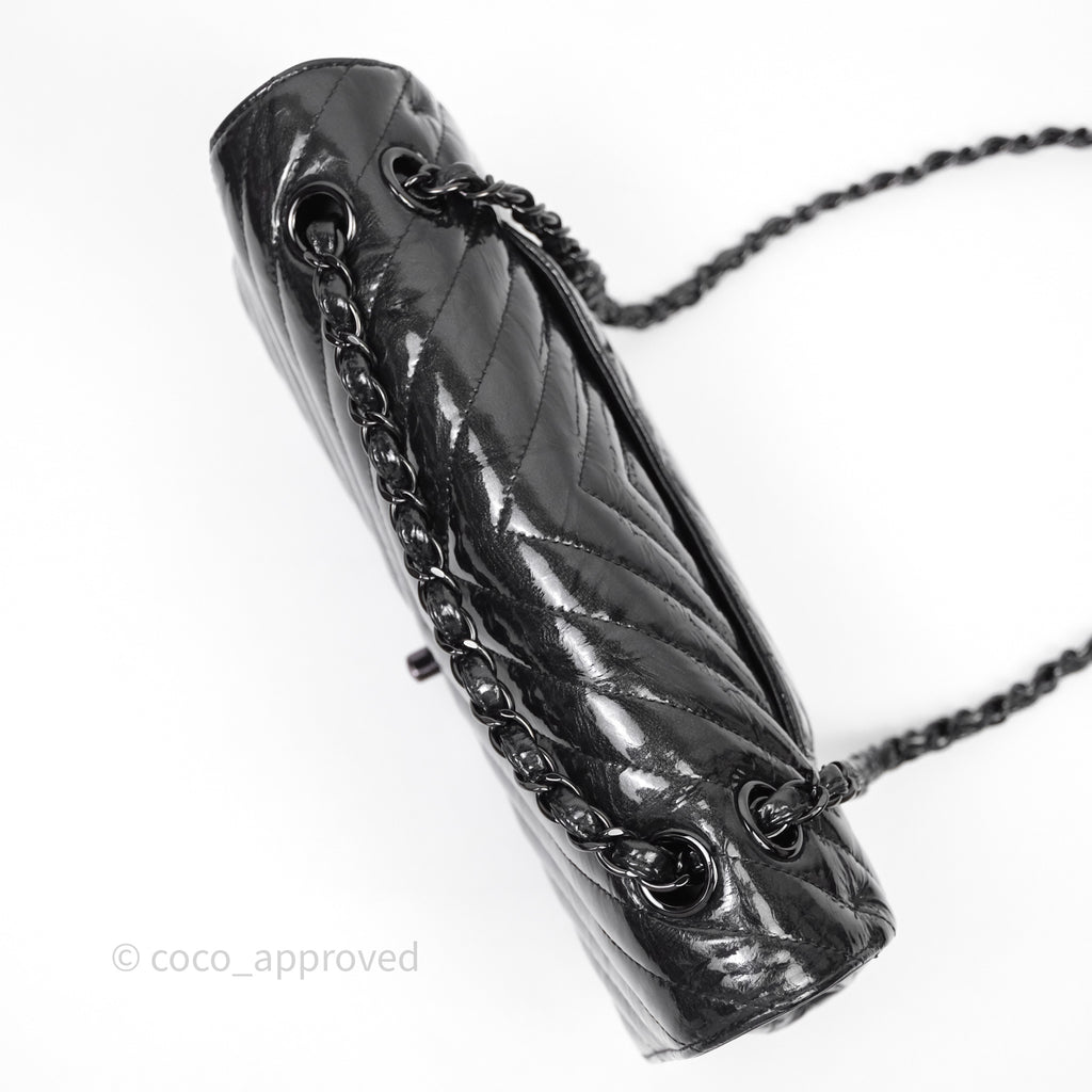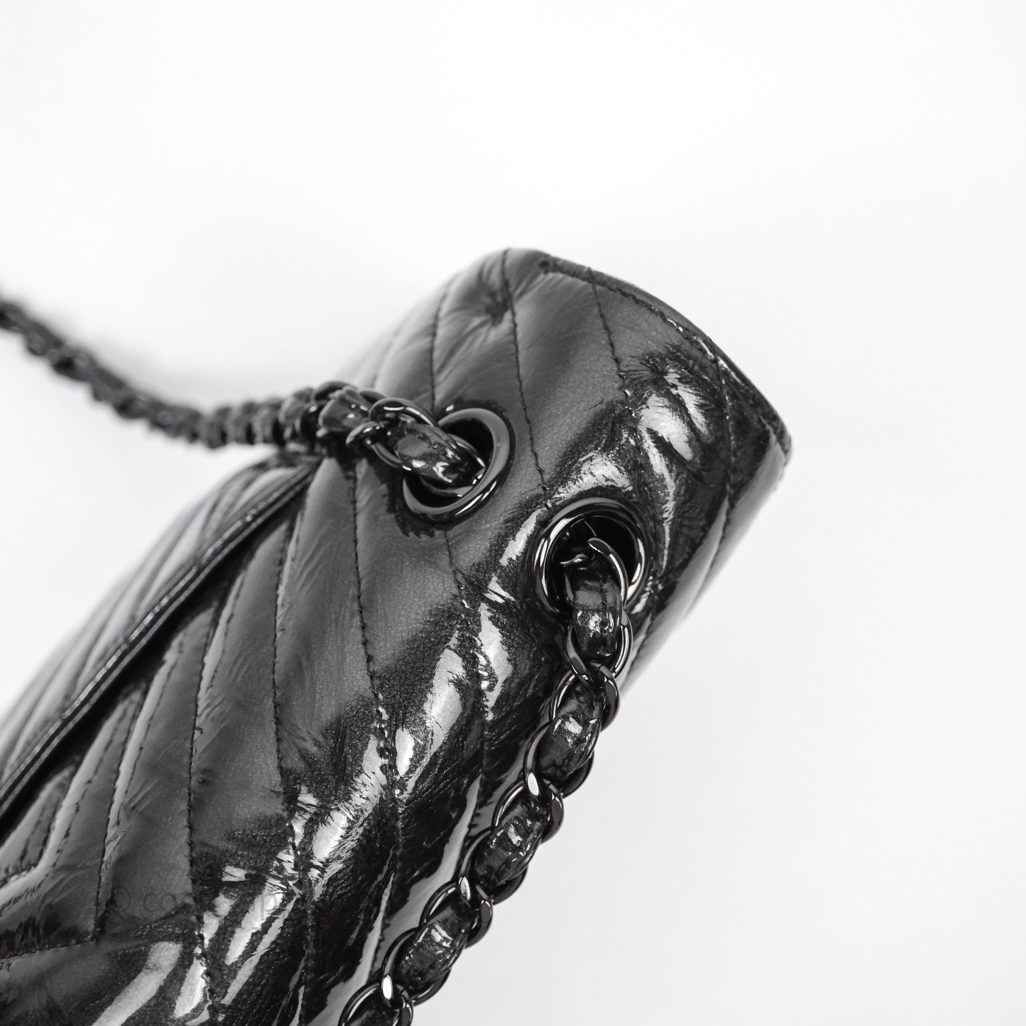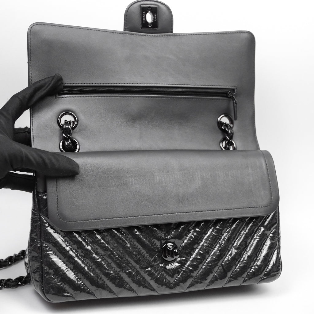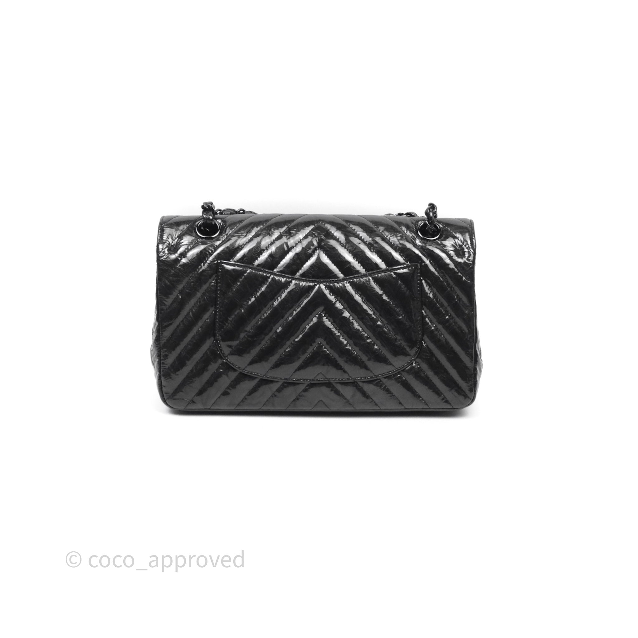 Chanel Classic Chevron M/L Medium Double Flap So Black Patent Calfskin