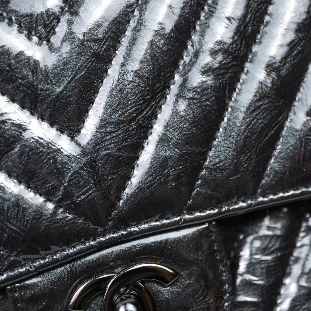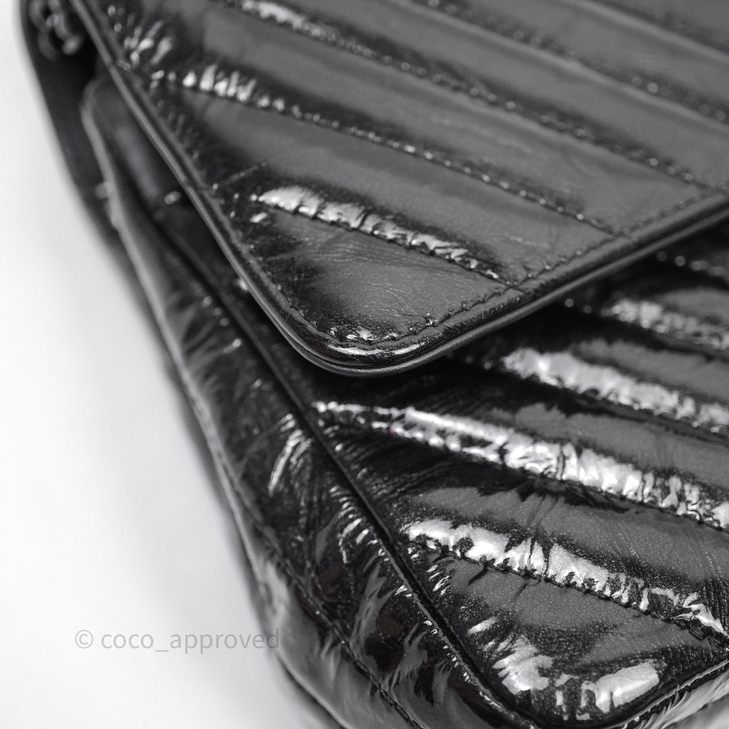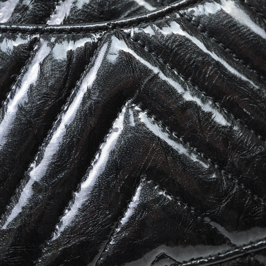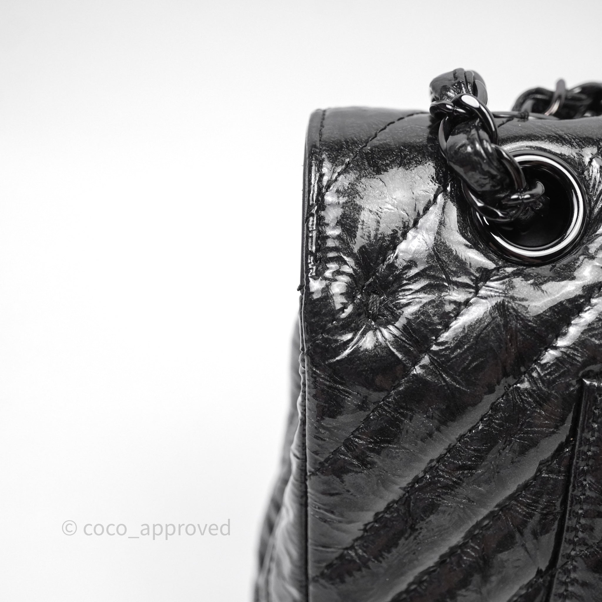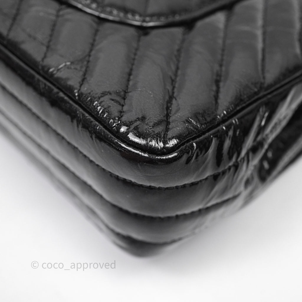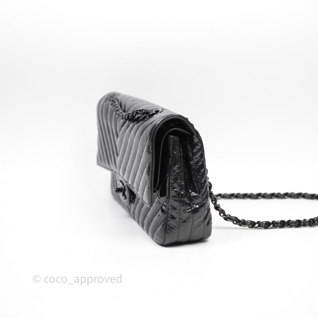 Chanel Classic Chevron M/L Medium Double Flap So Black Patent Calfskin