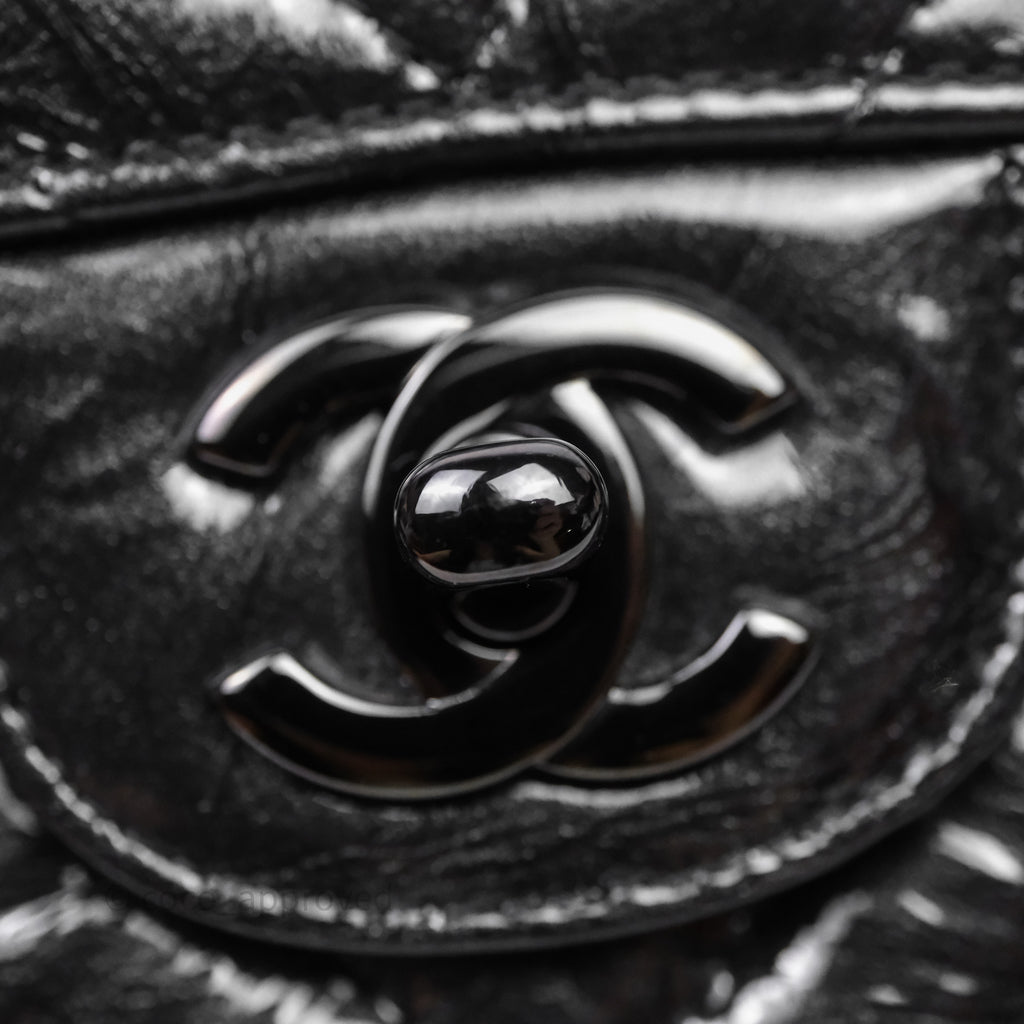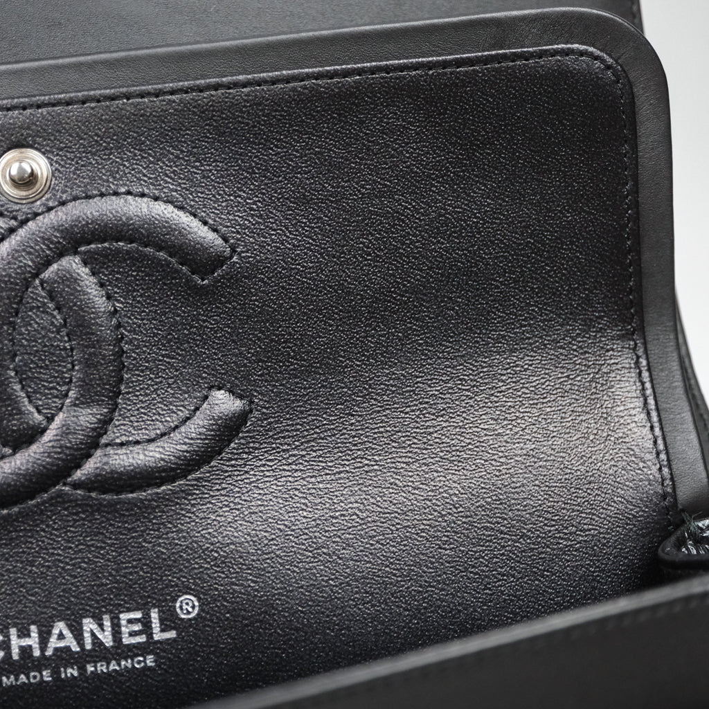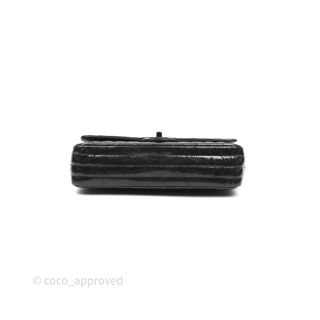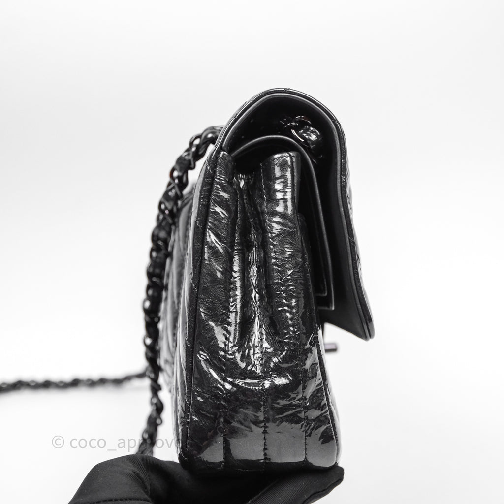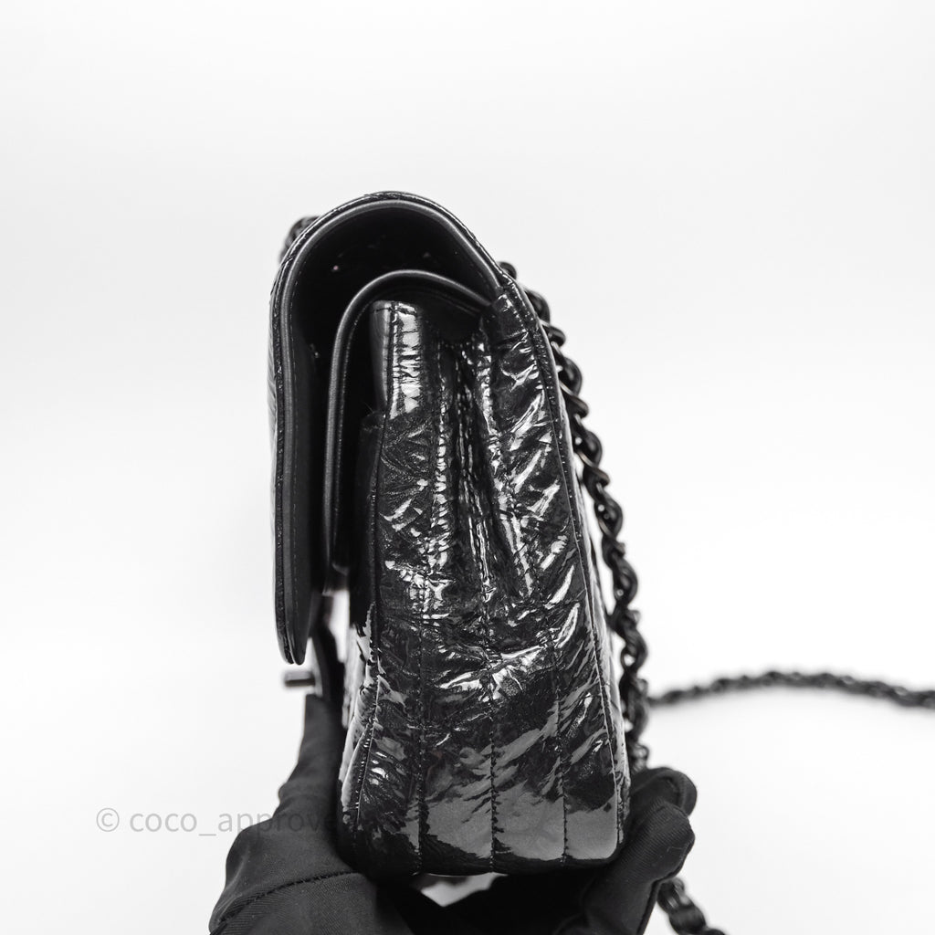 Chanel Classic Chevron M/L Medium Double Flap So Black Patent Calfskin