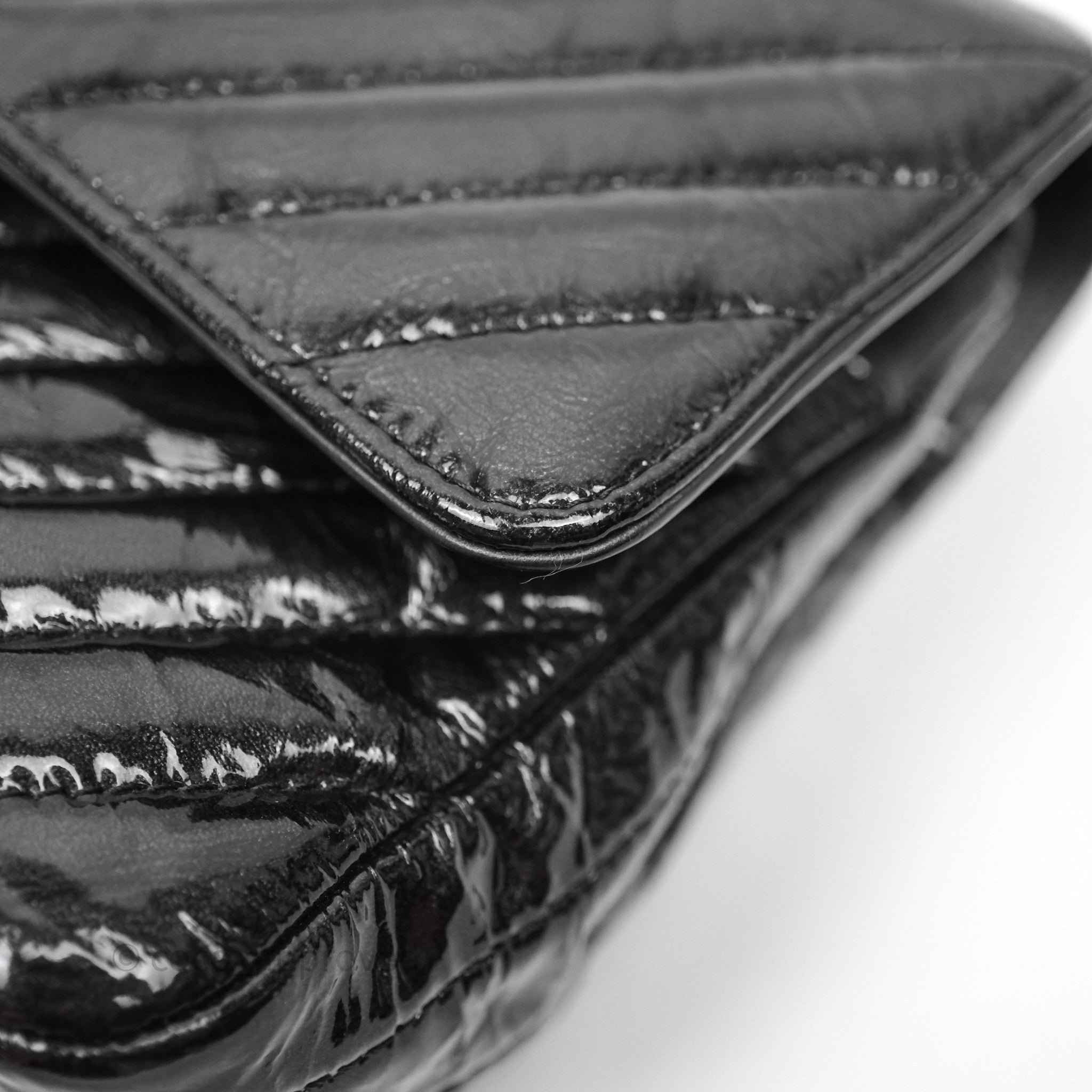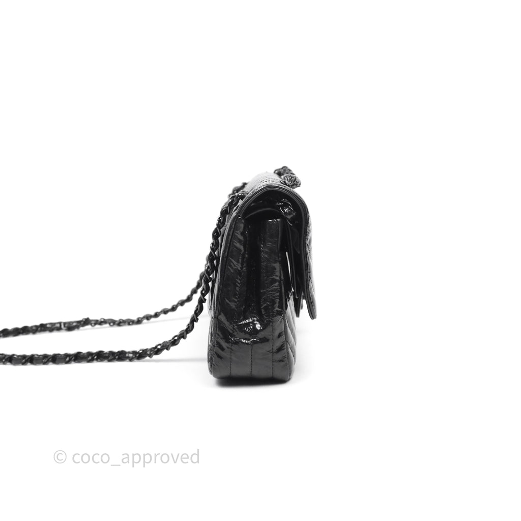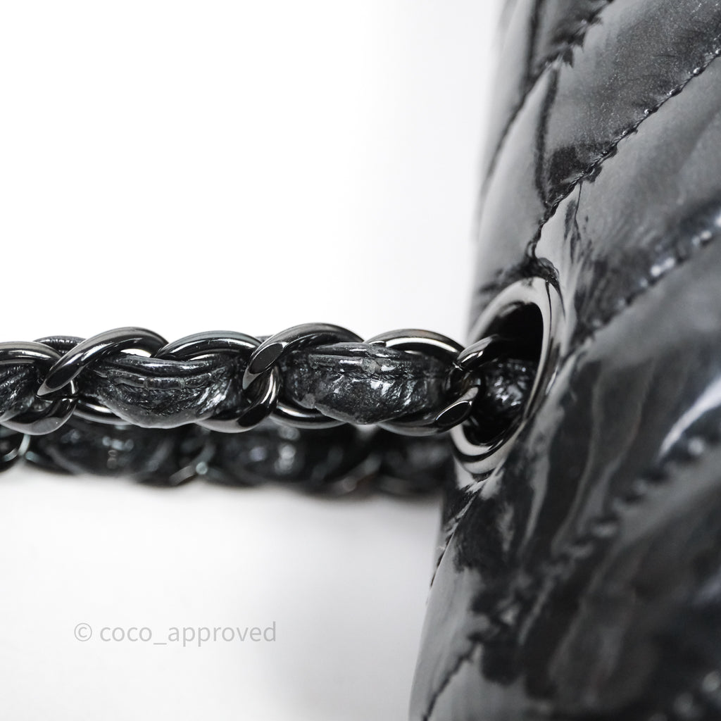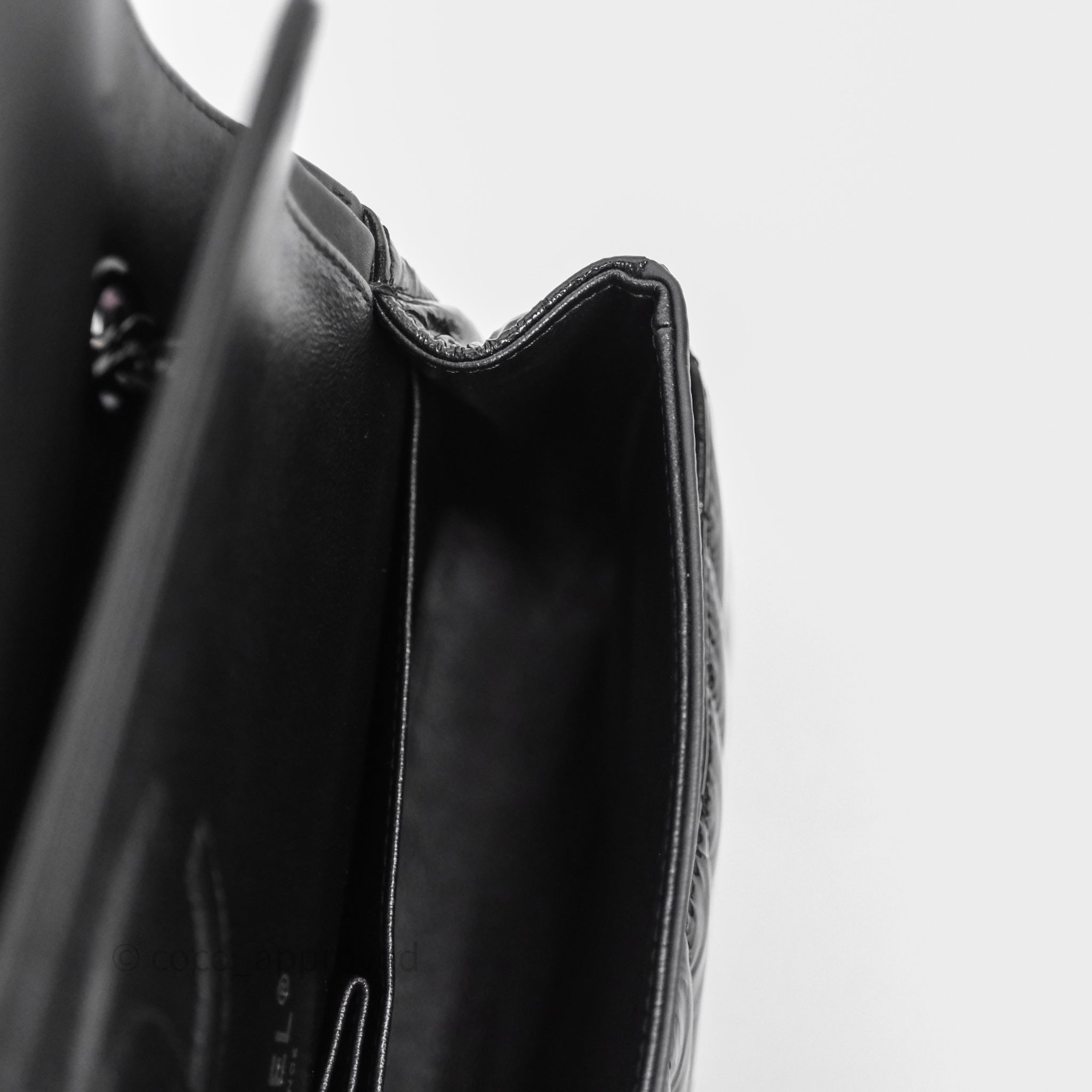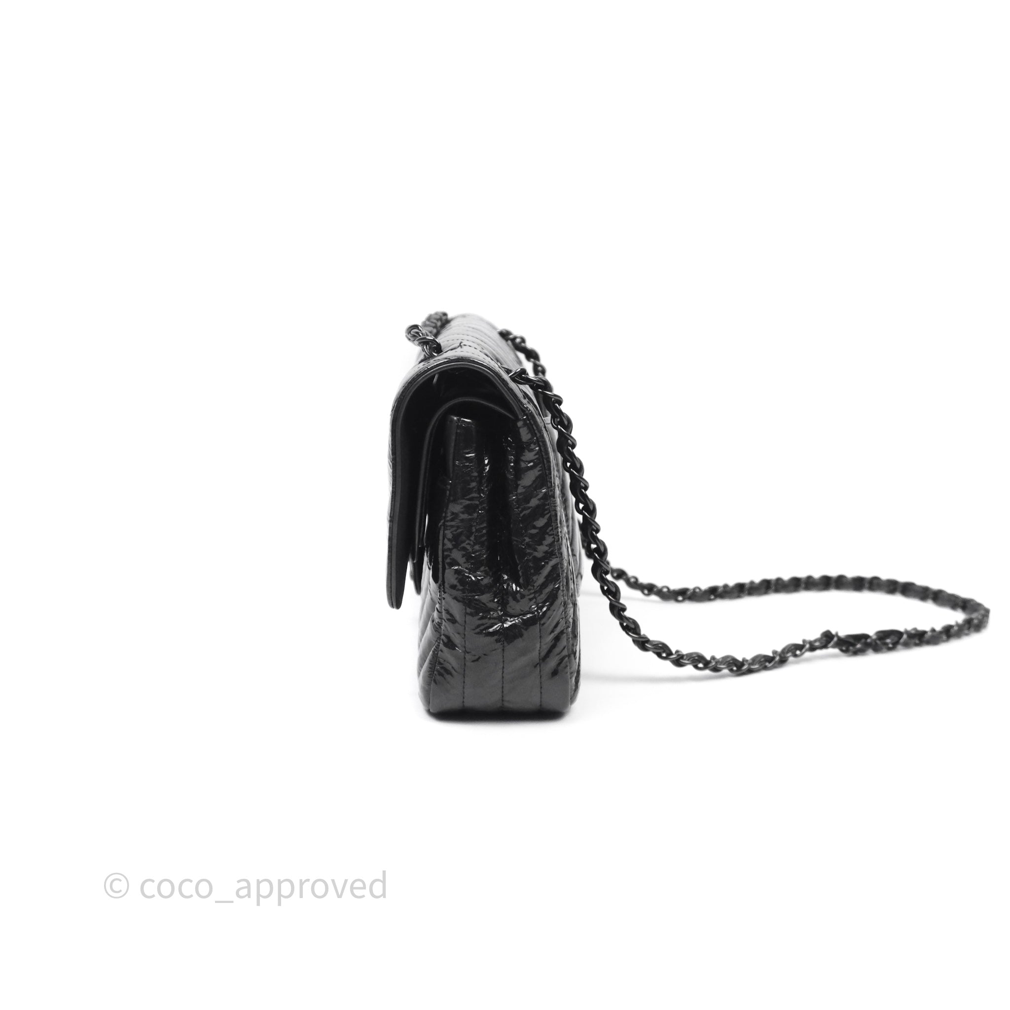 Chanel Classic Chevron M/L Medium Double Flap So Black Patent Calfskin