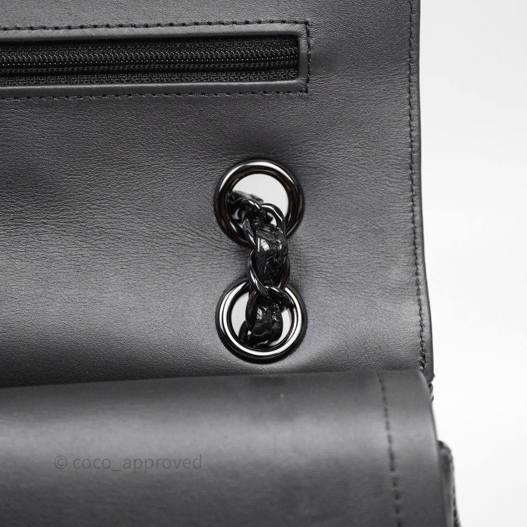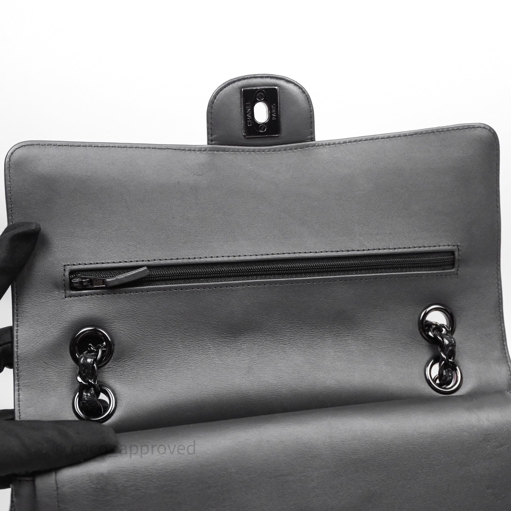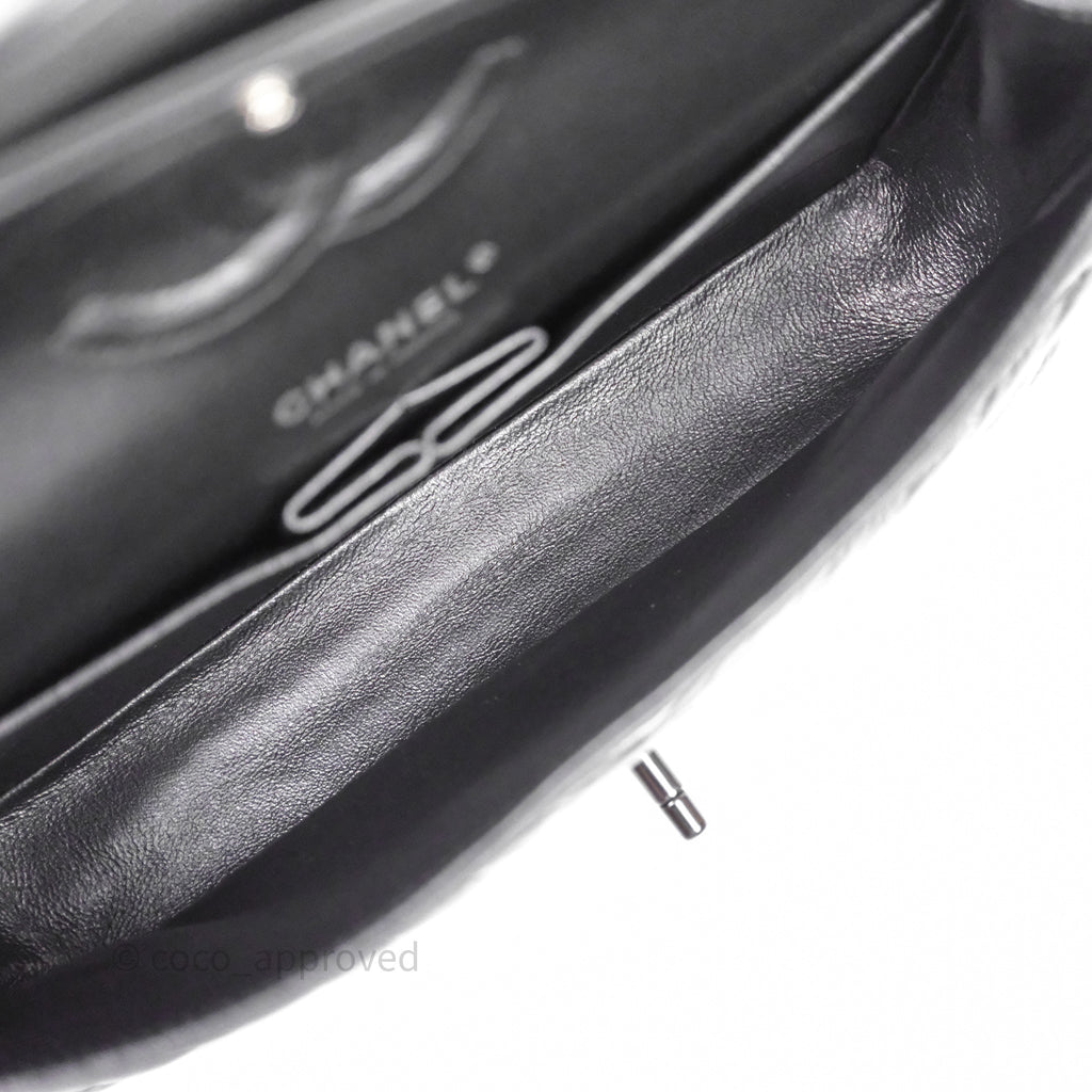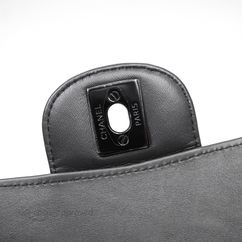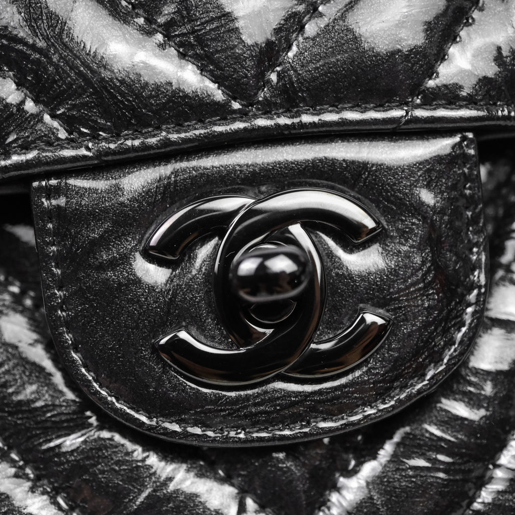 Chanel Classic Chevron M/L Medium Double Flap So Black Patent Calfskin
