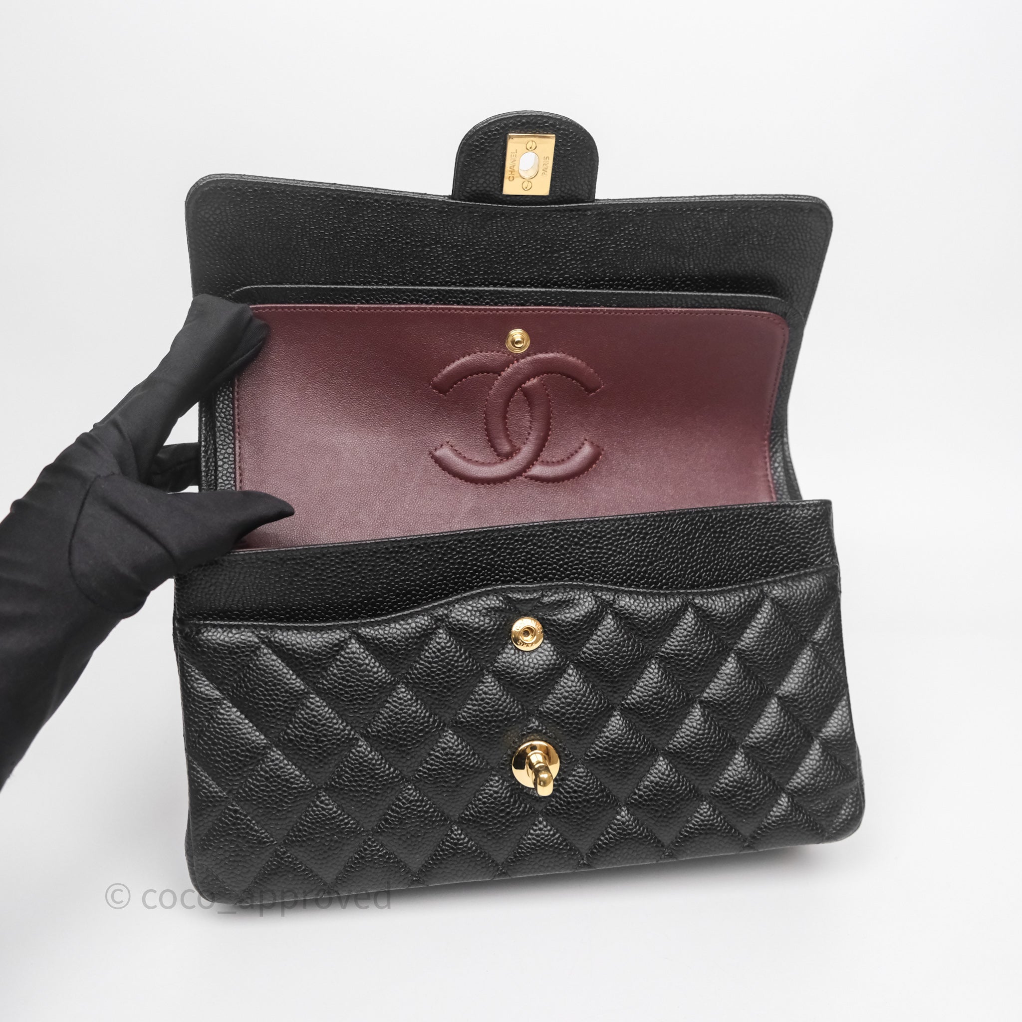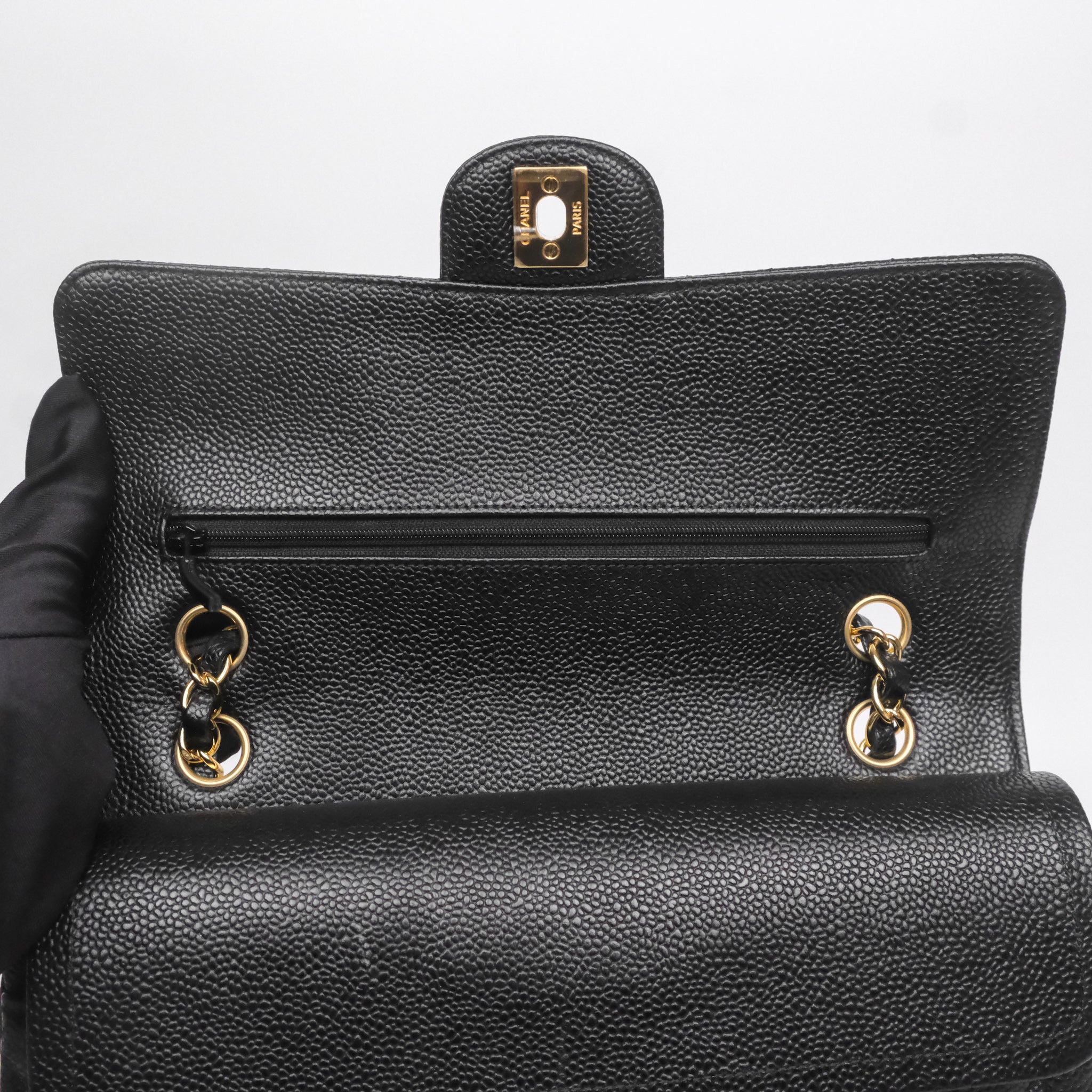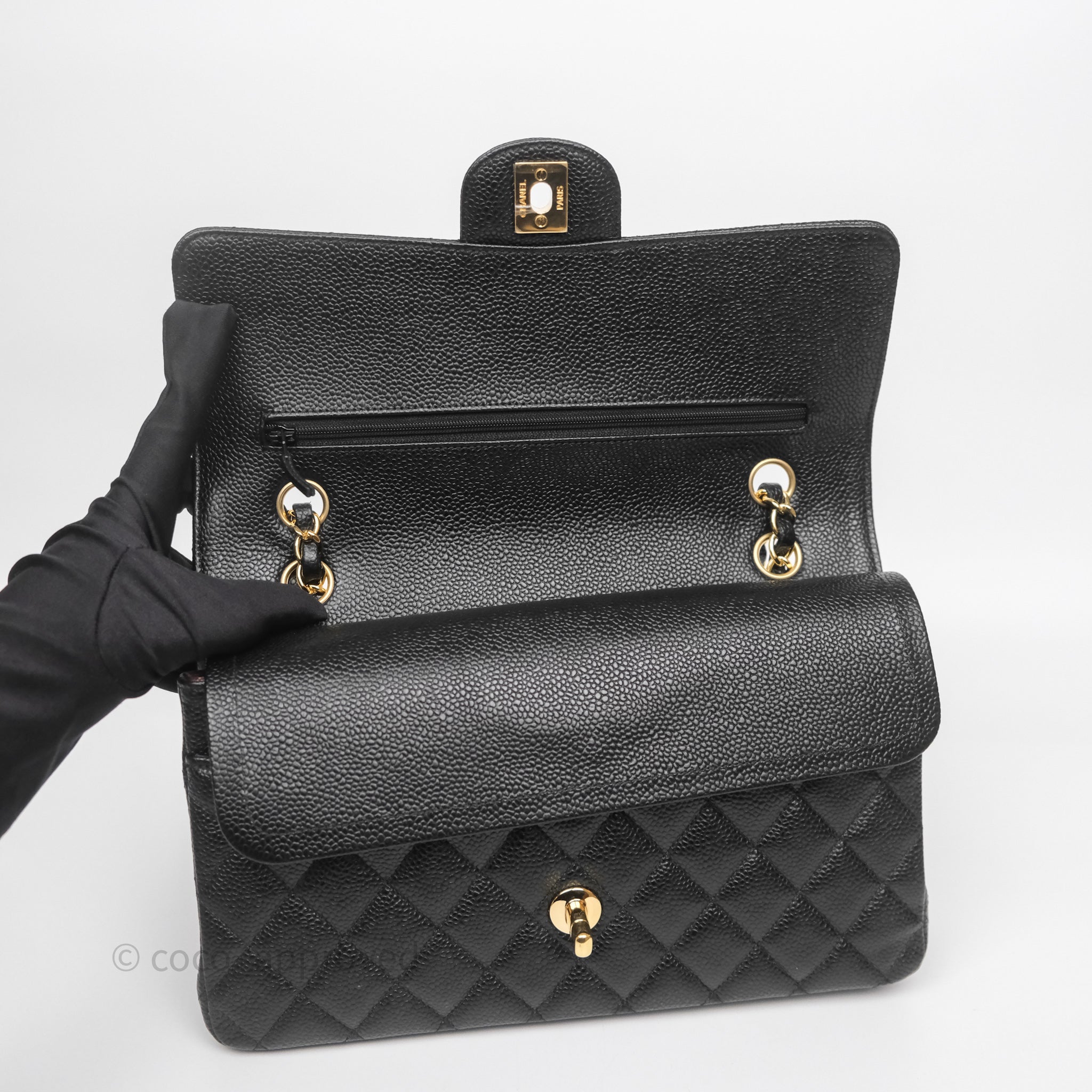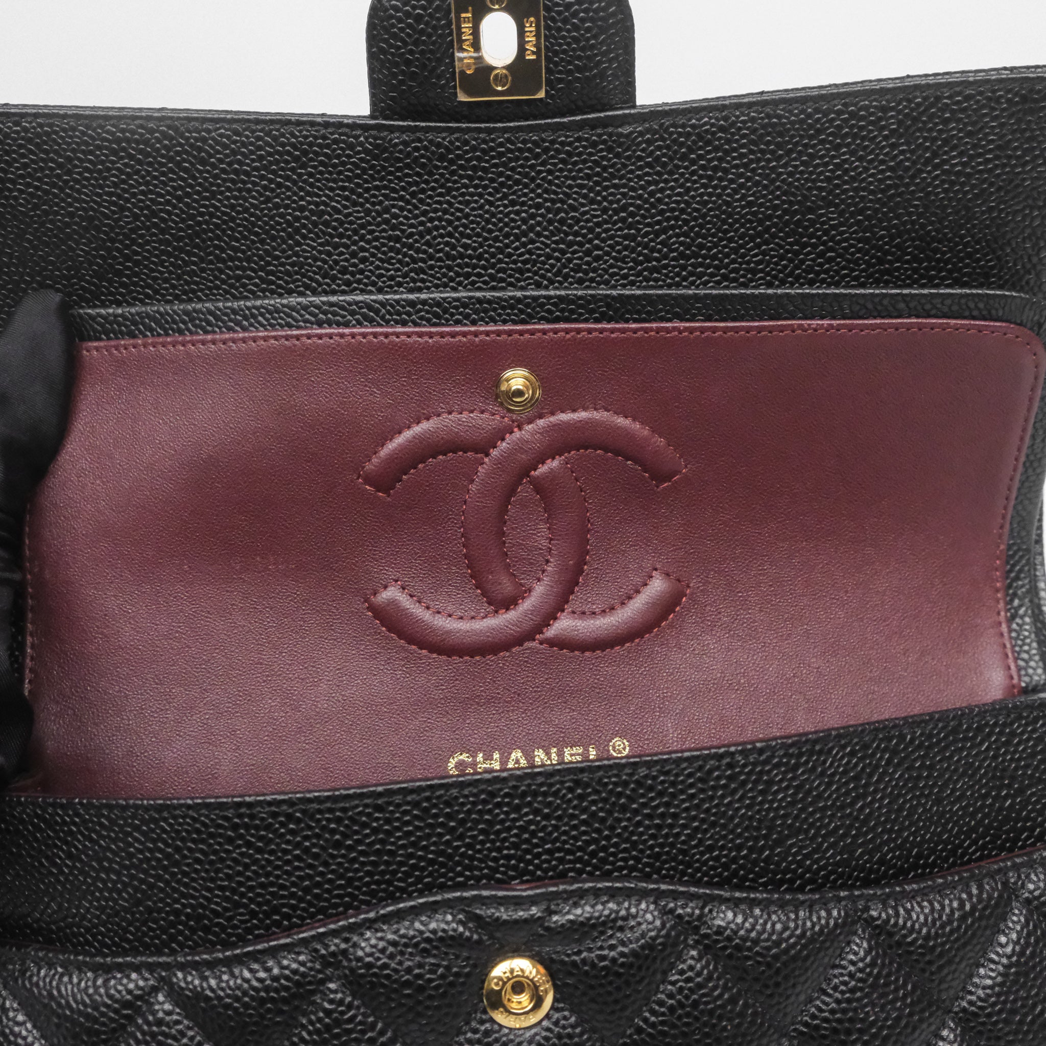 Chanel Classic M/L Medium Flap Quilted Black Caviar Gold Hardware