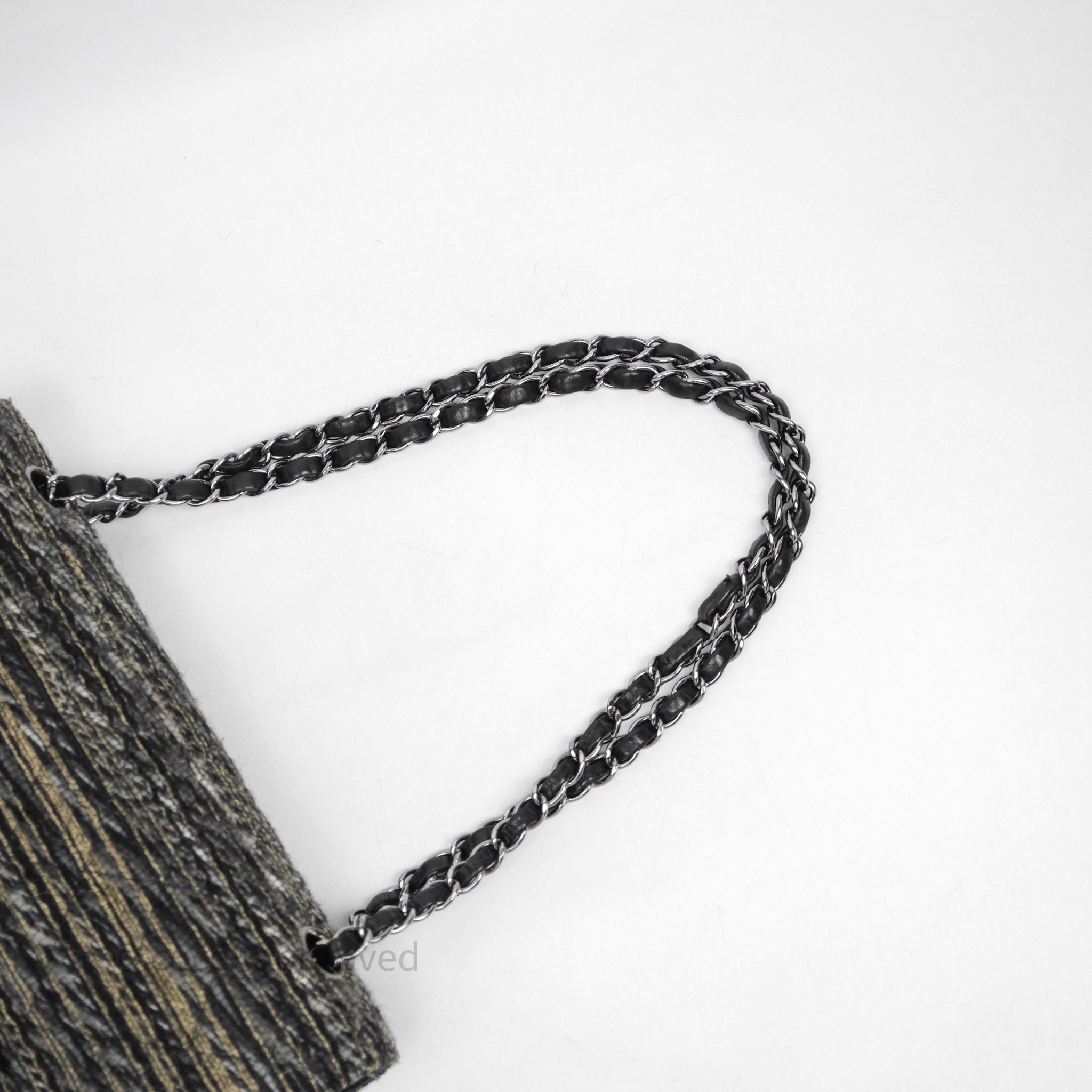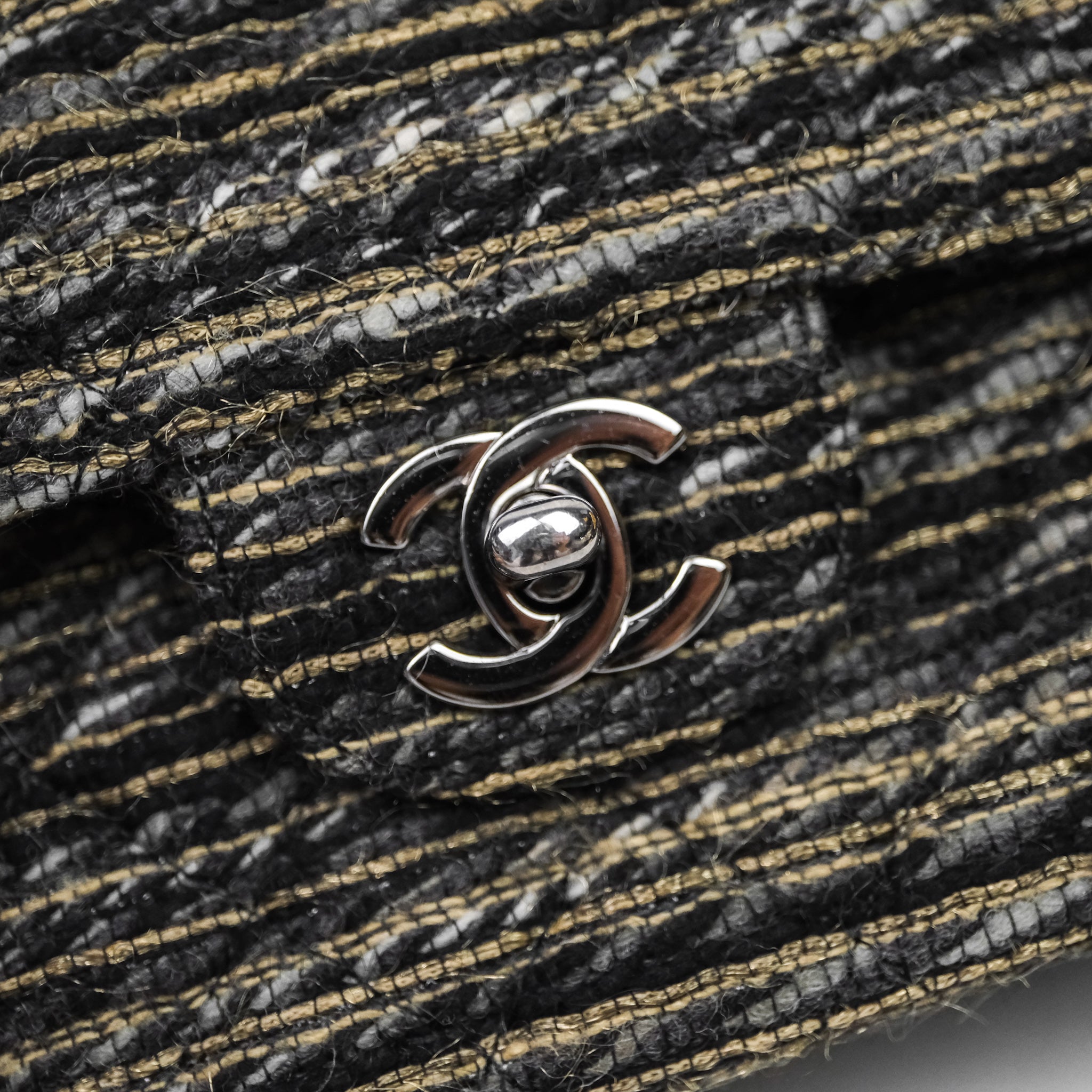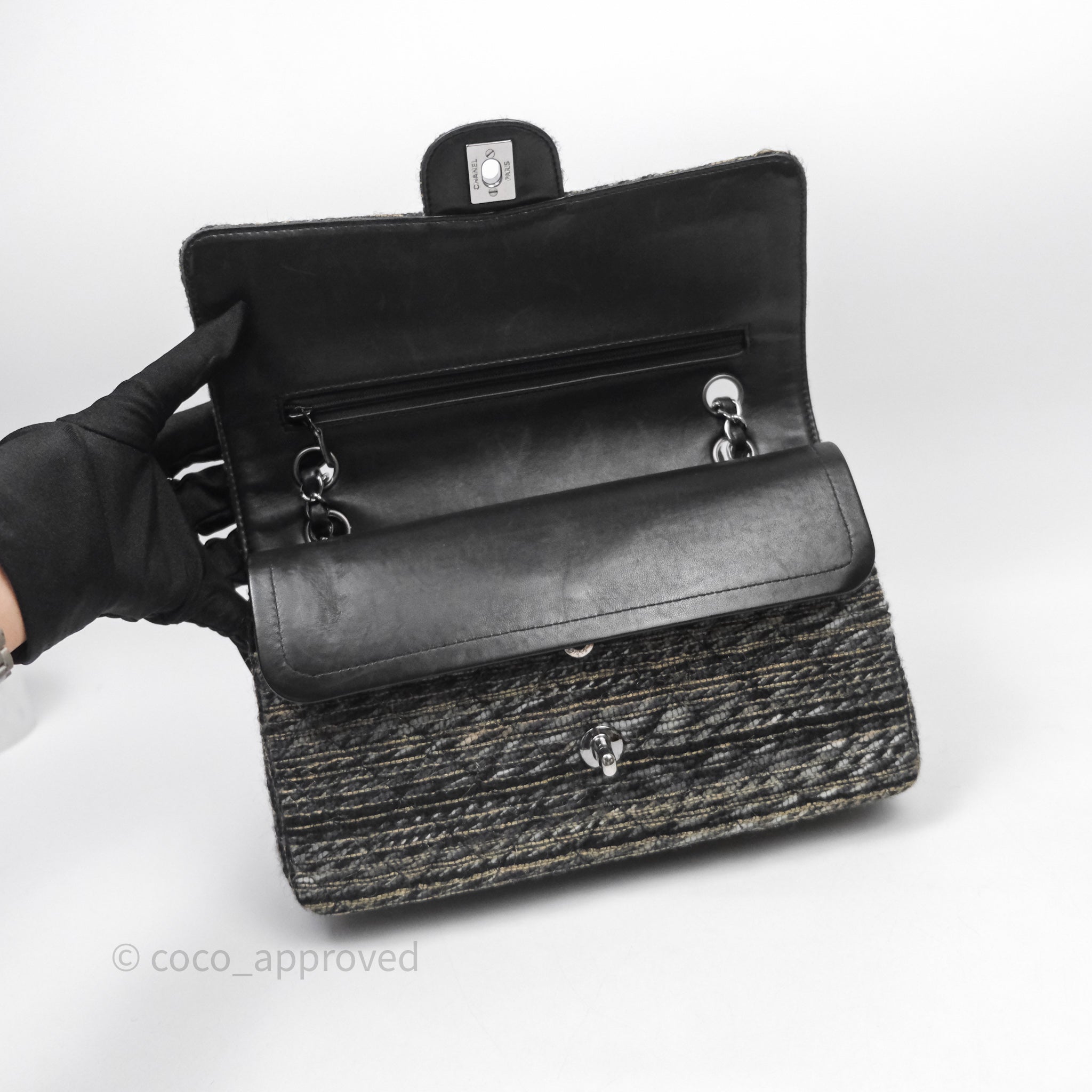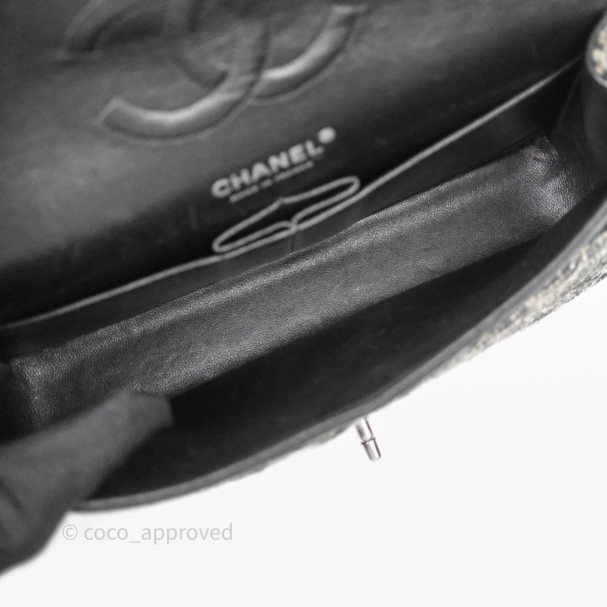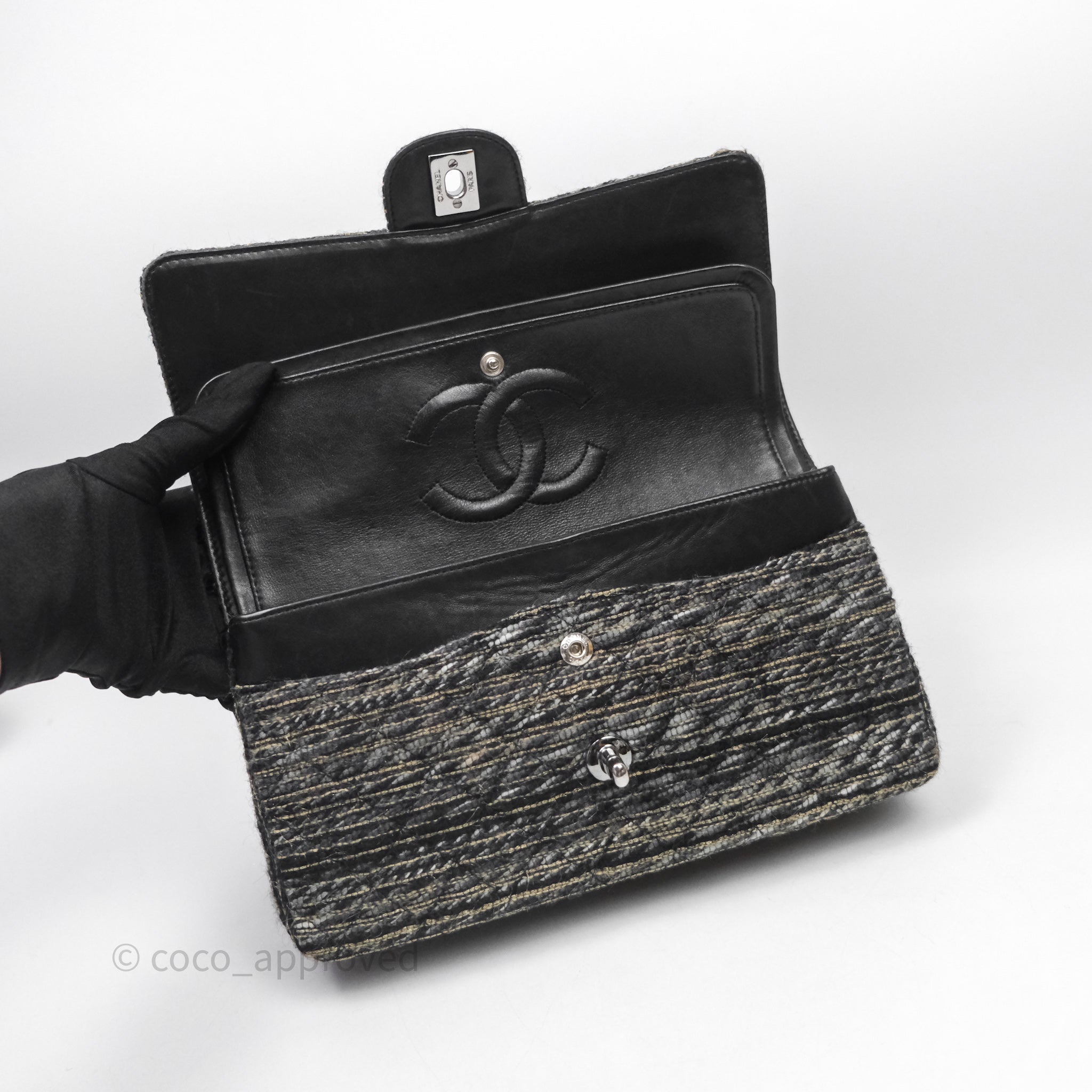 Chanel Classic M/L Medium Flap Quilted Grey Tweed Silver Hardware