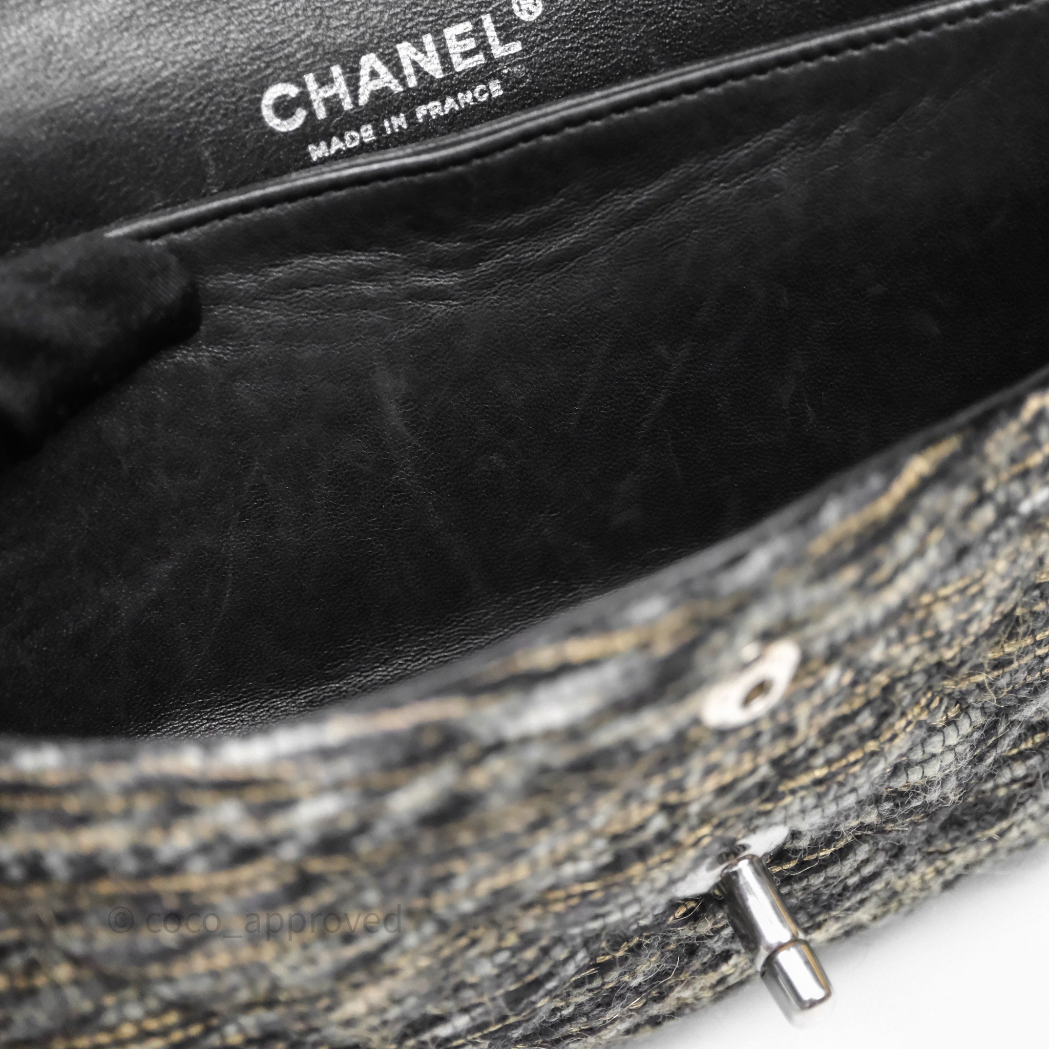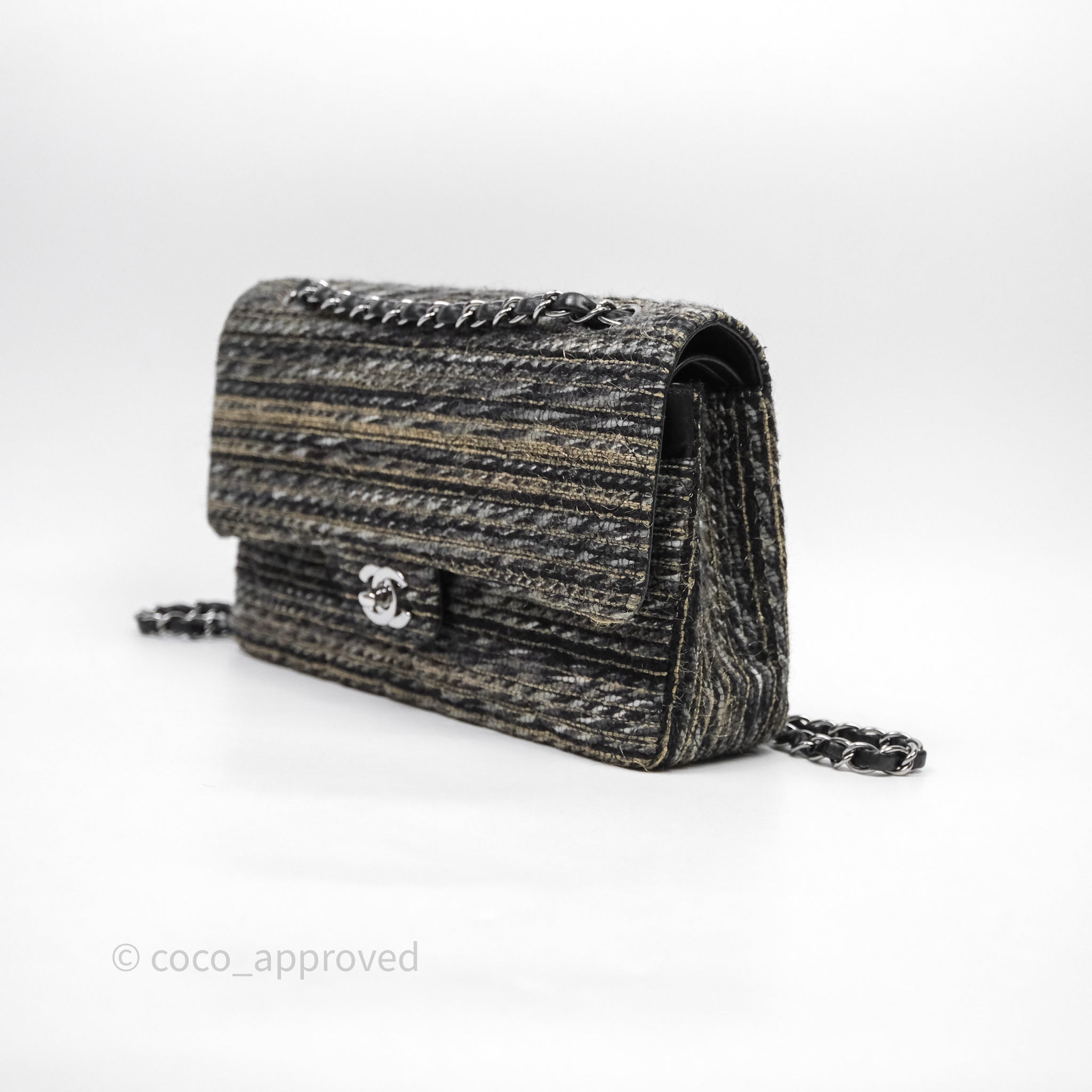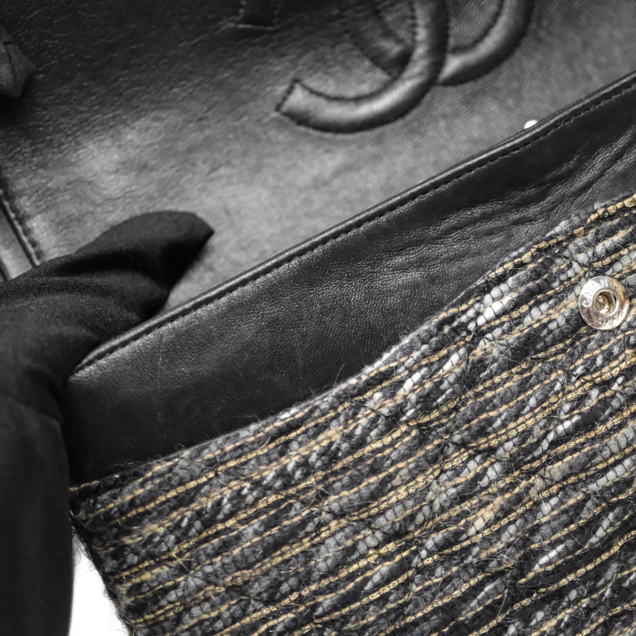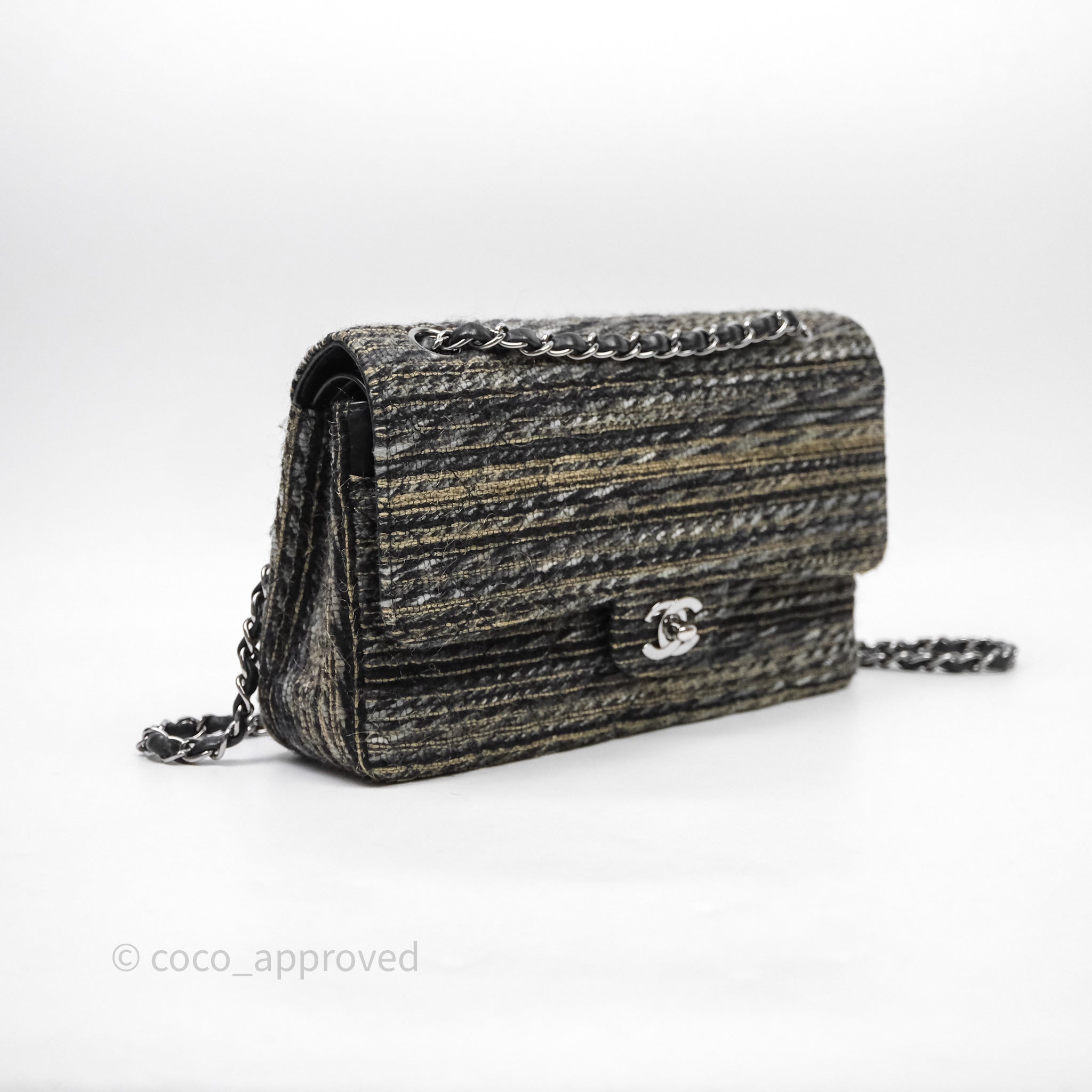 Chanel Classic M/L Medium Flap Quilted Grey Tweed Silver Hardware