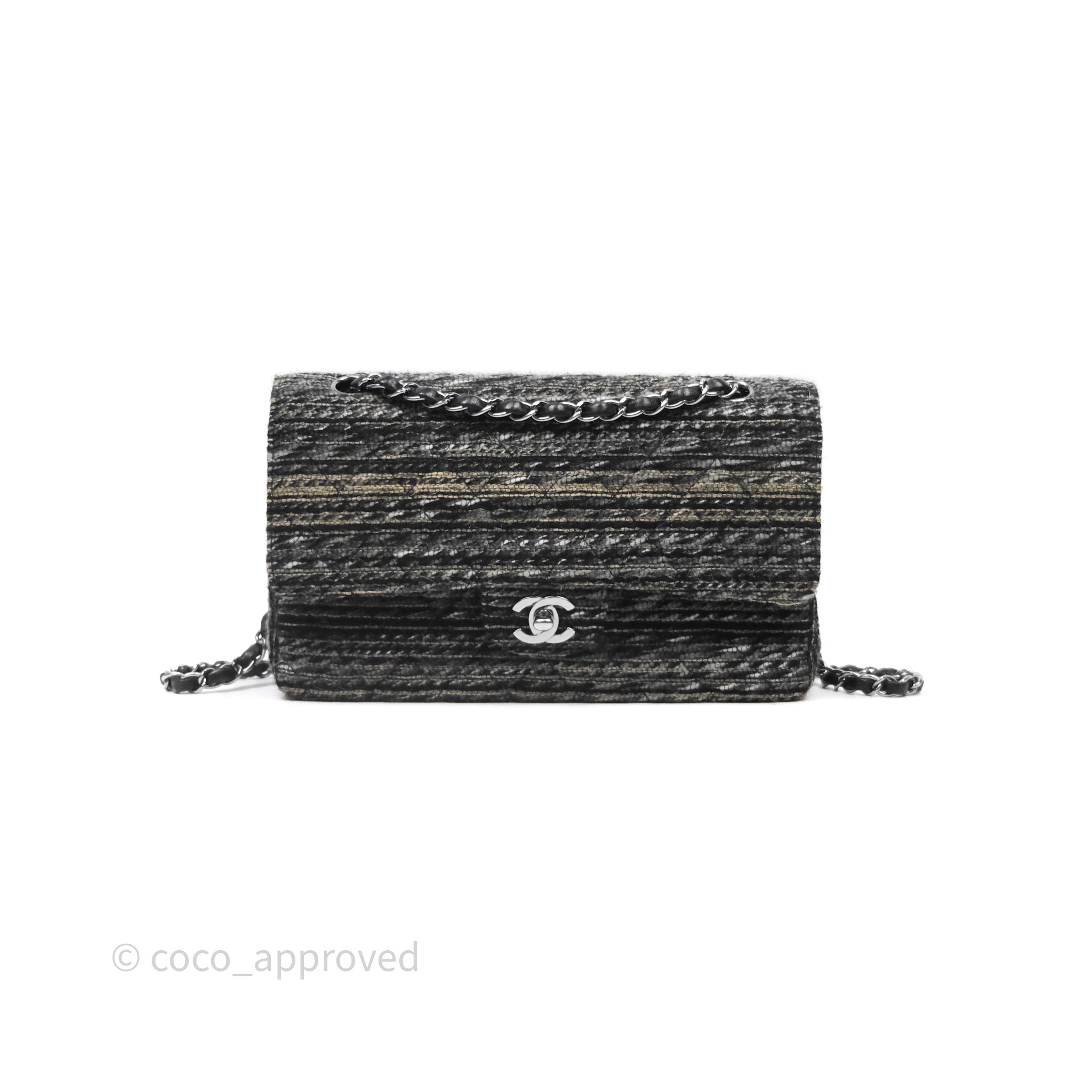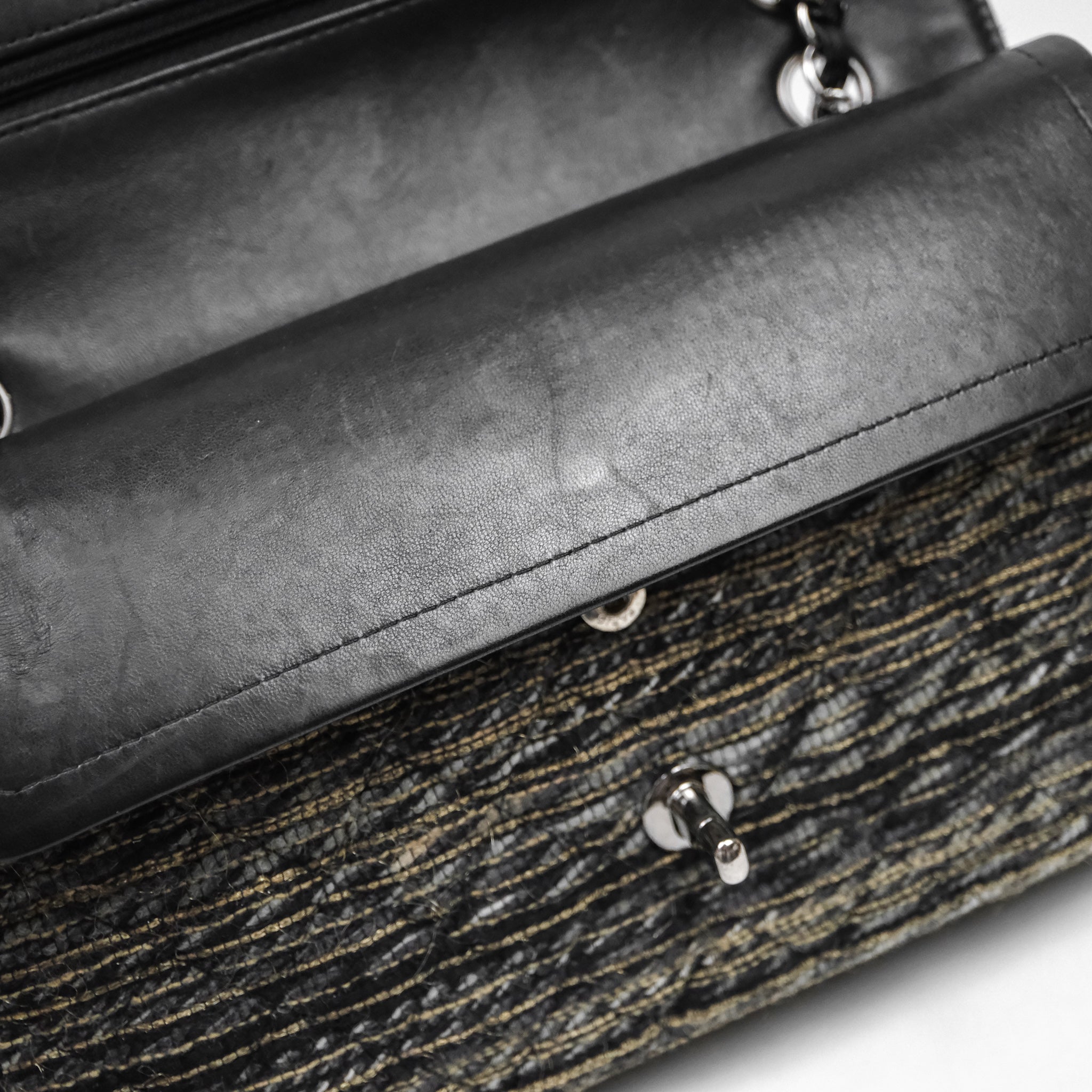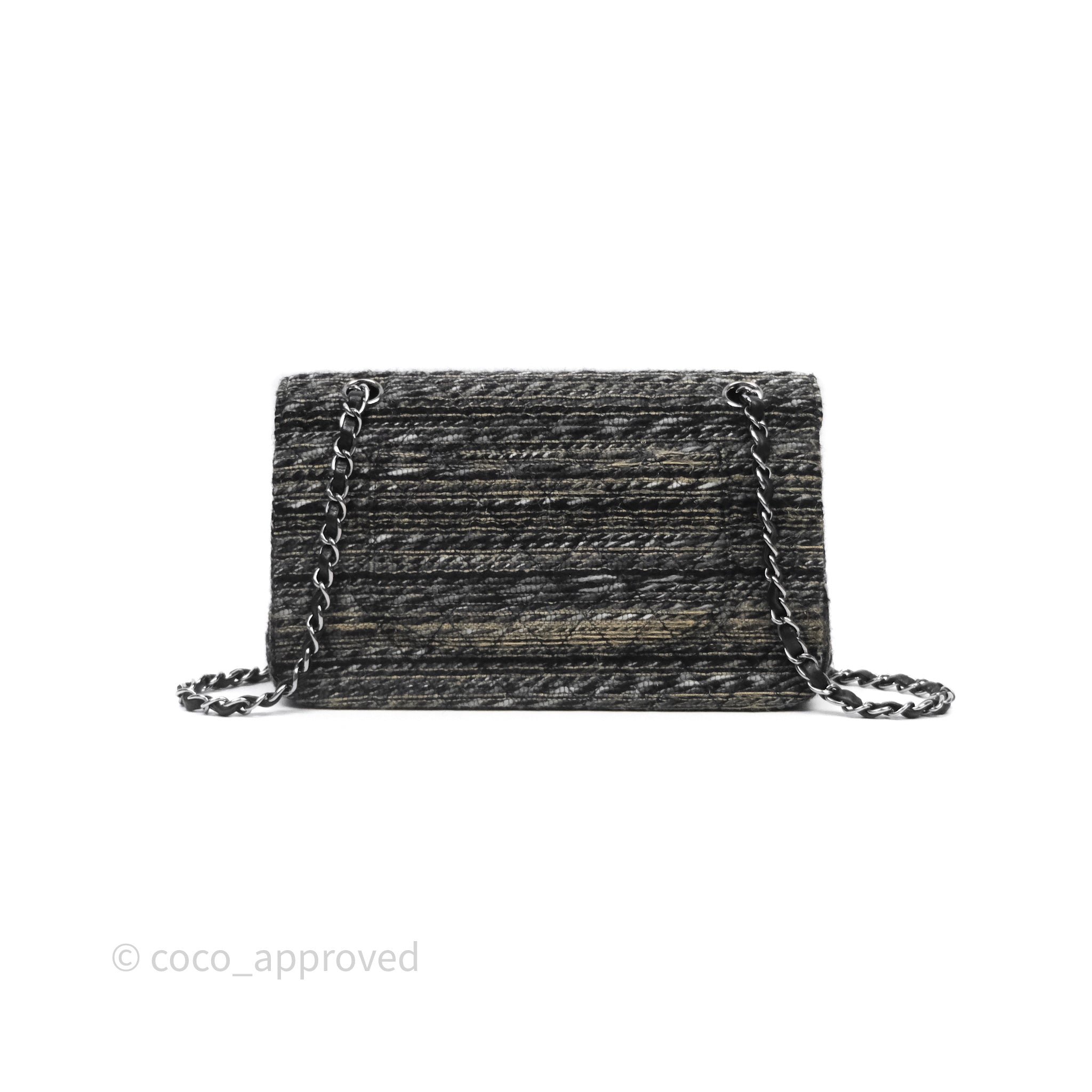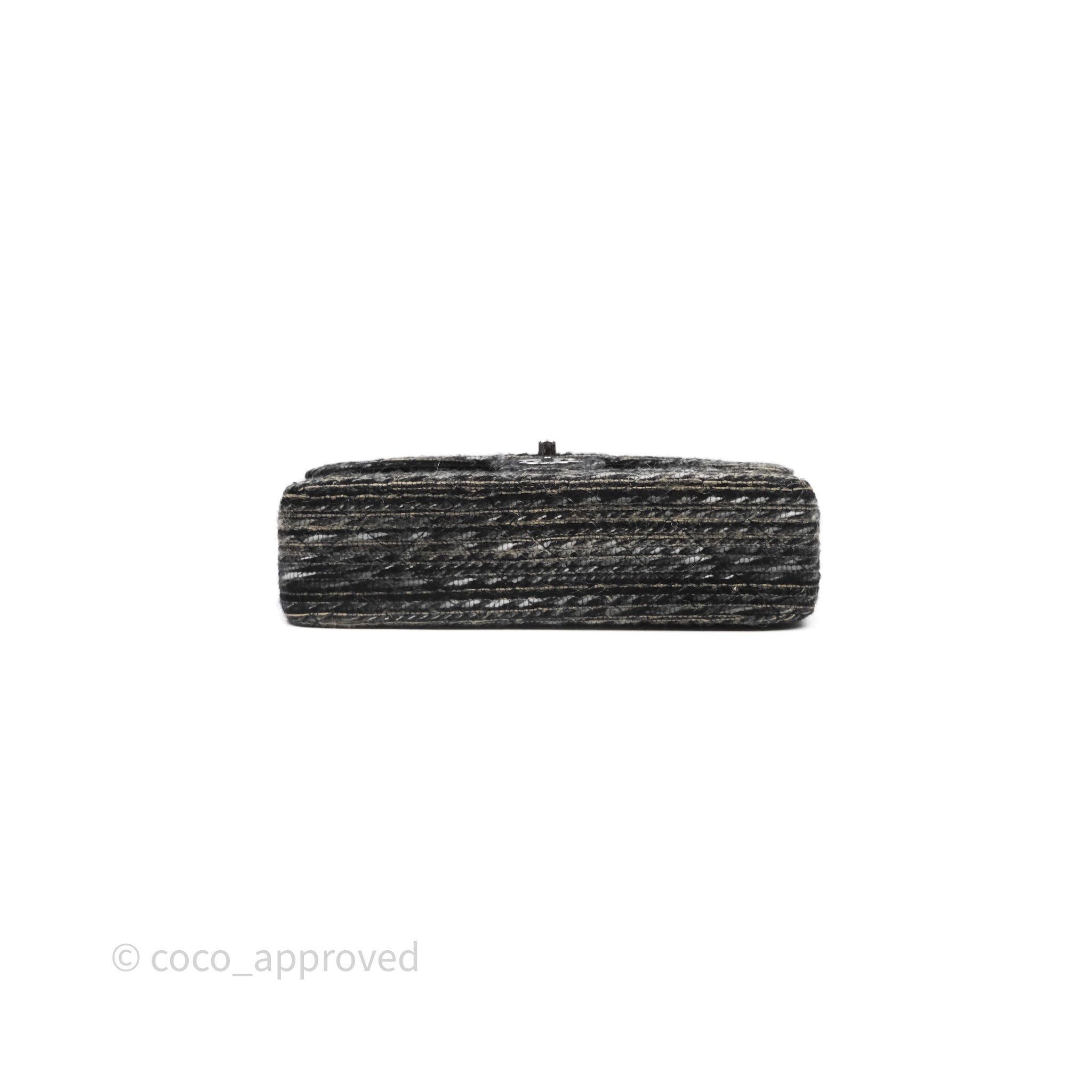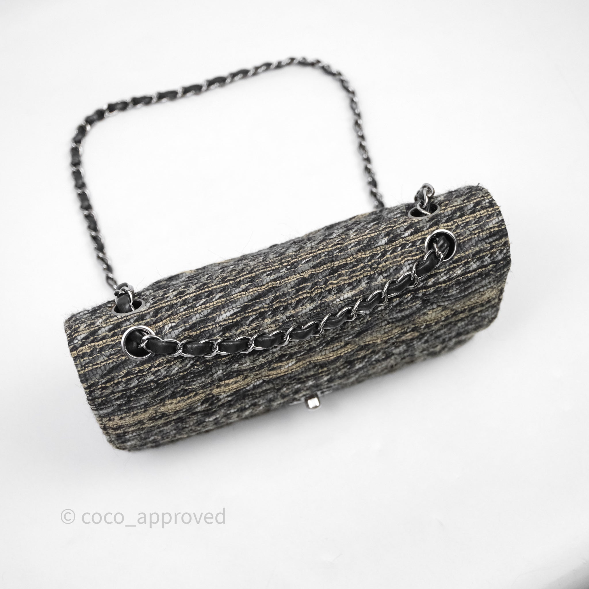 Chanel Classic M/L Medium Flap Quilted Grey Tweed Silver Hardware