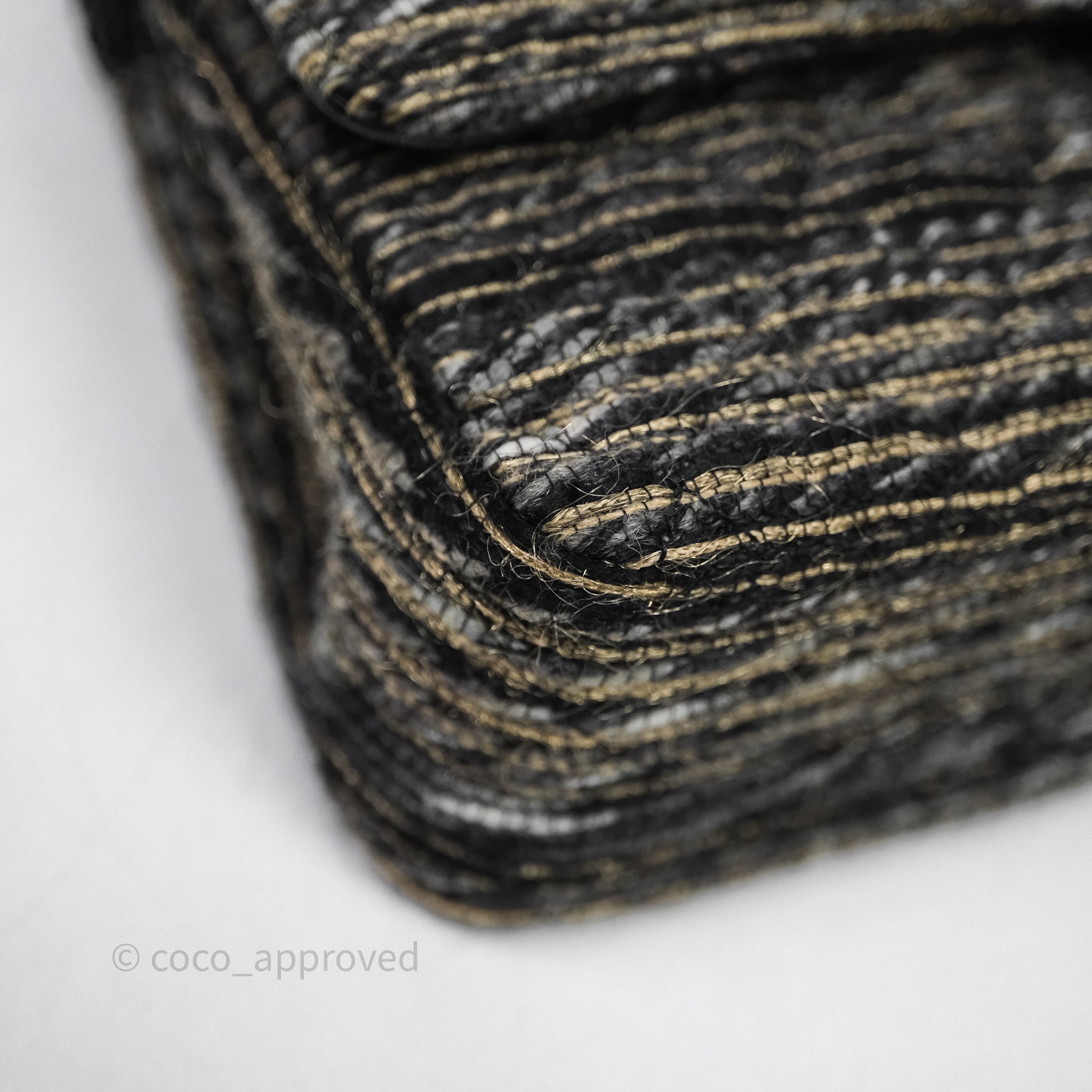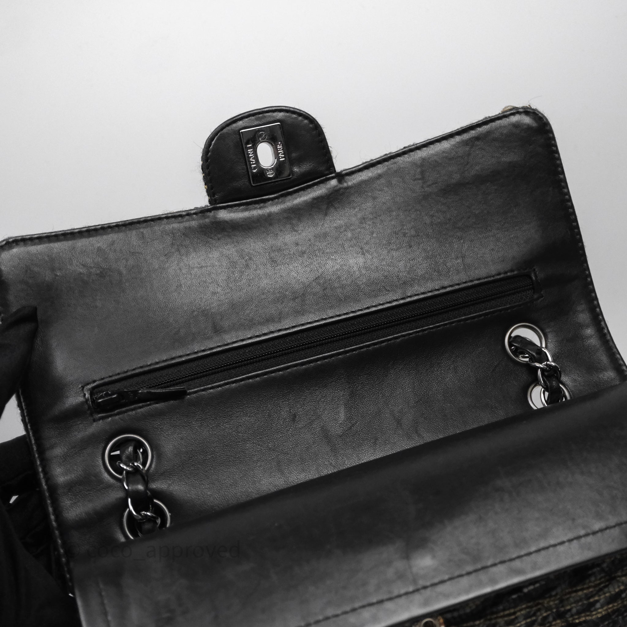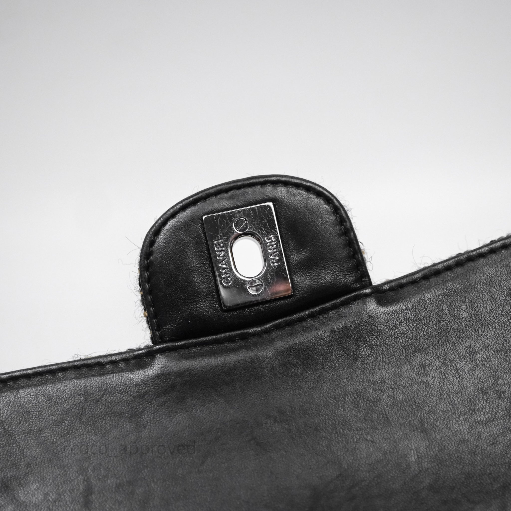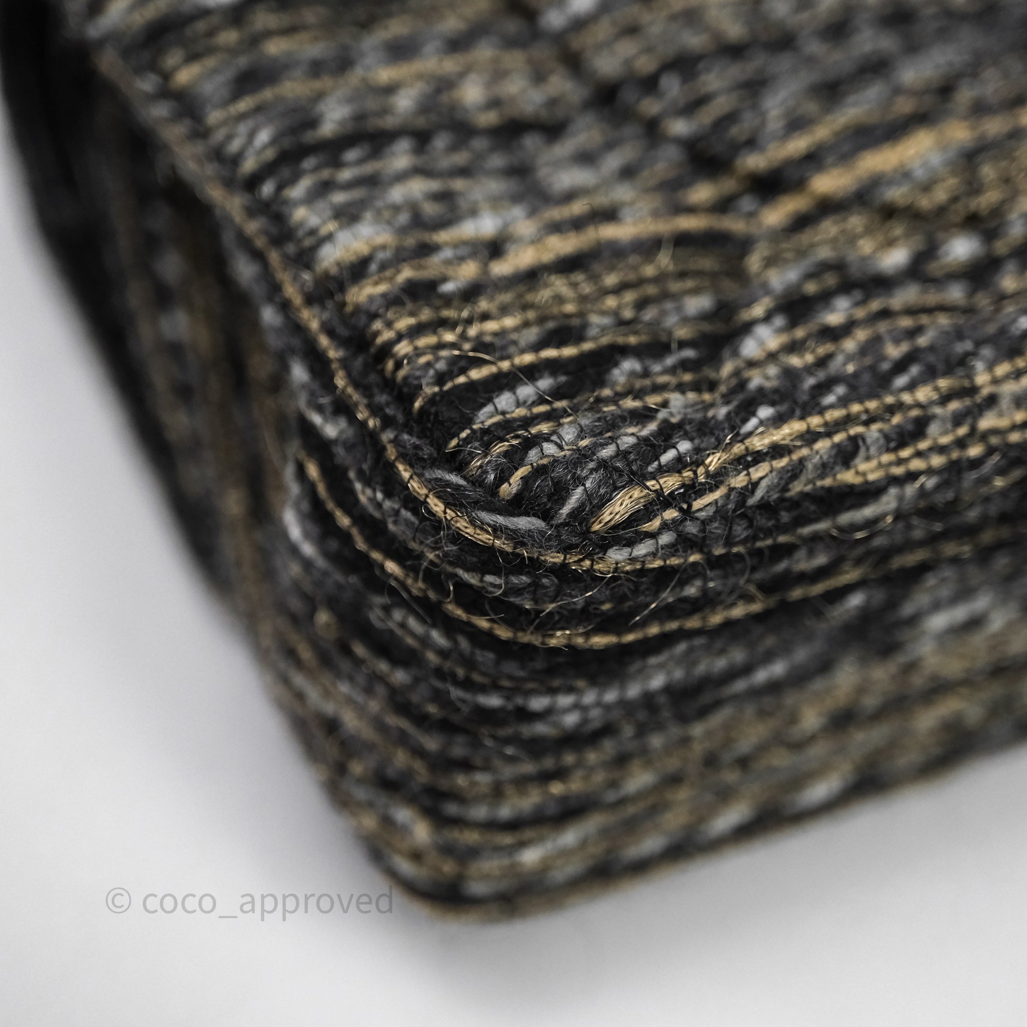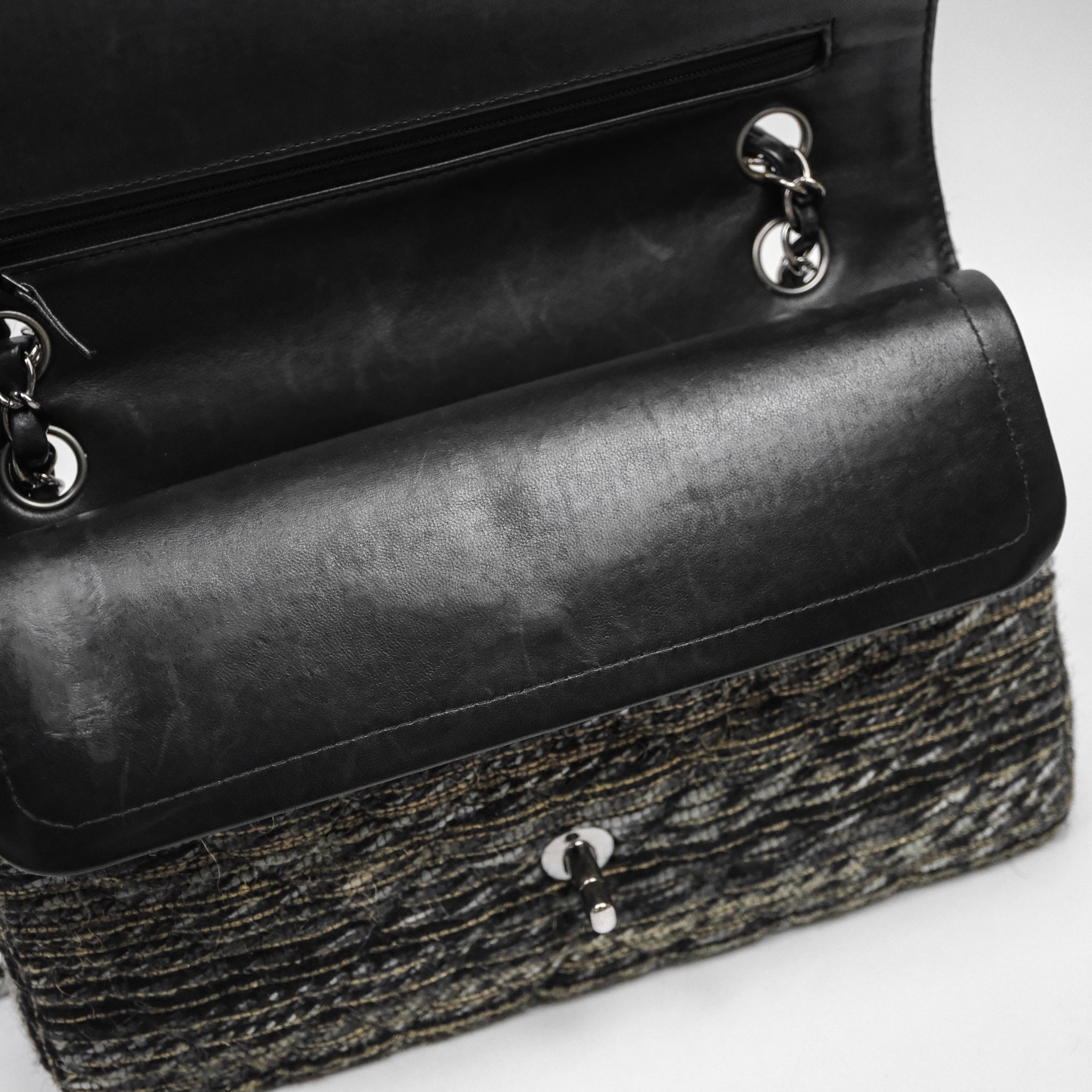 Chanel Classic M/L Medium Flap Quilted Grey Tweed Silver Hardware