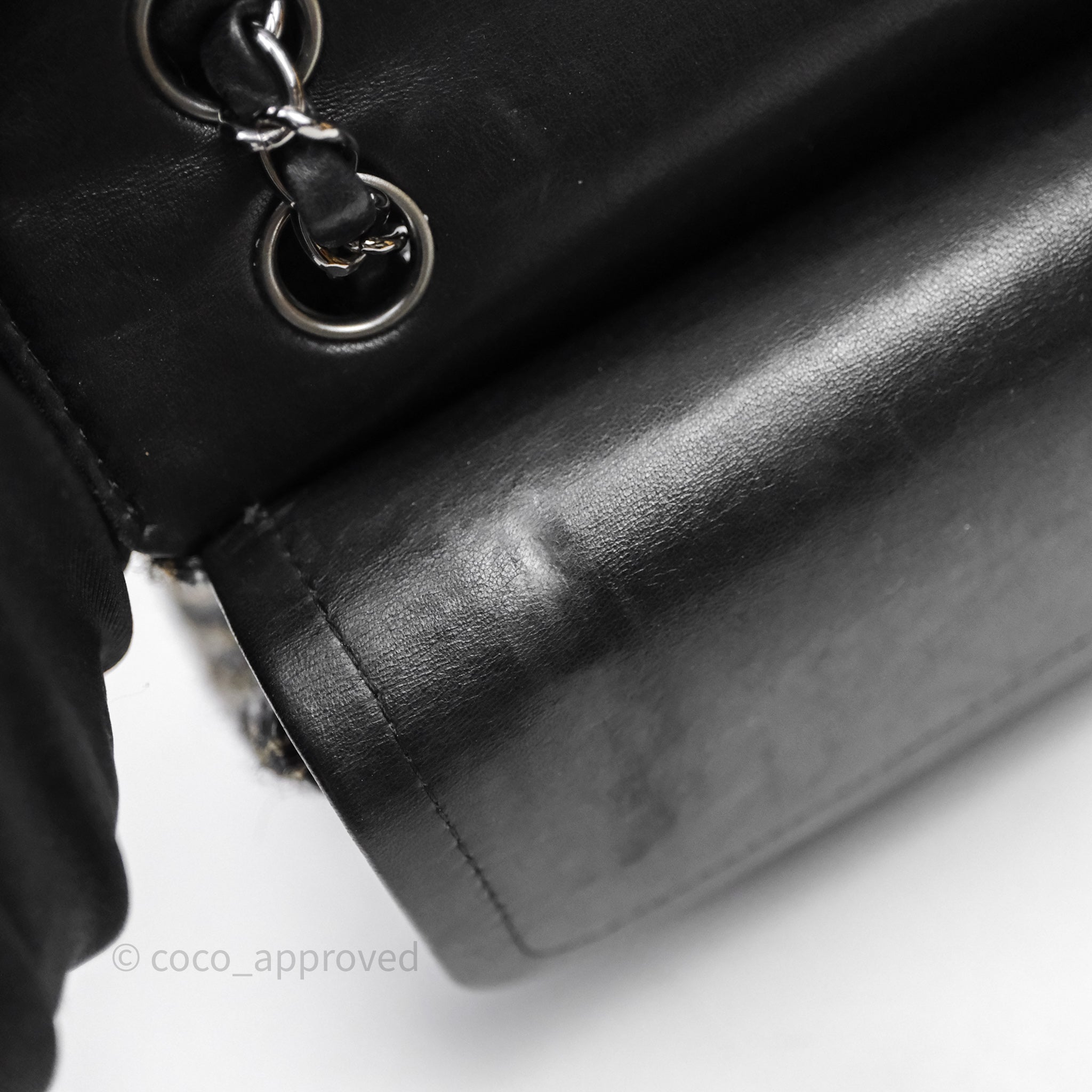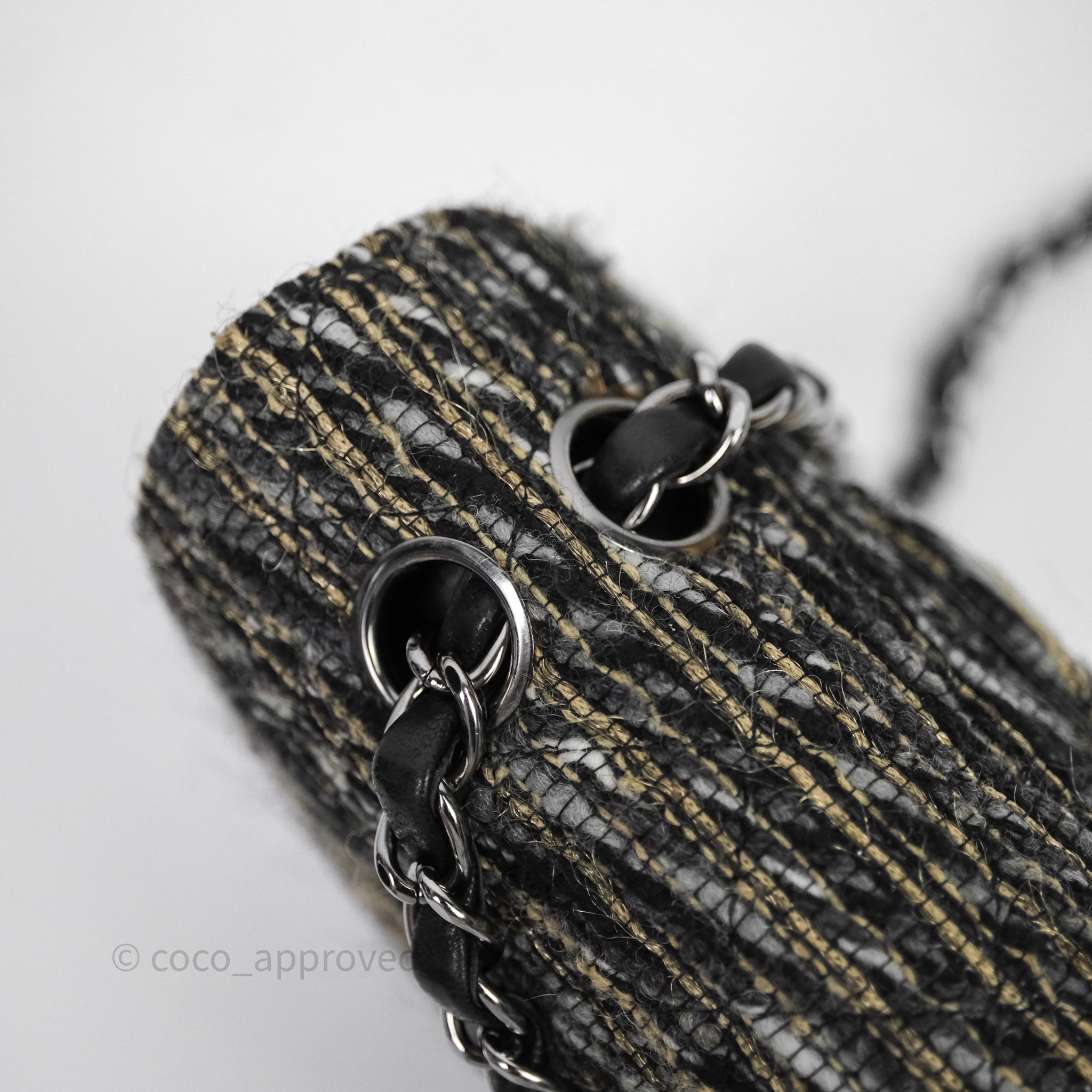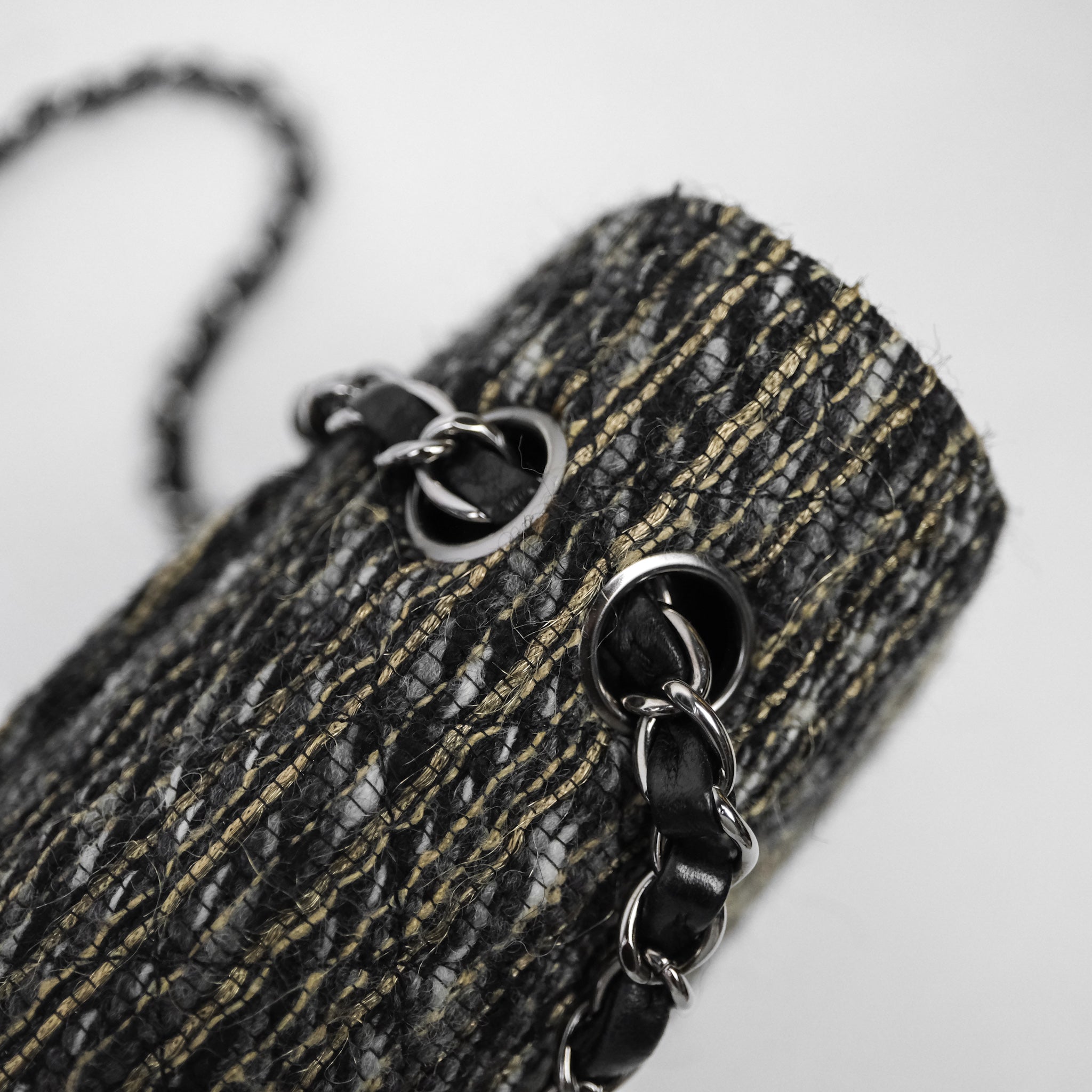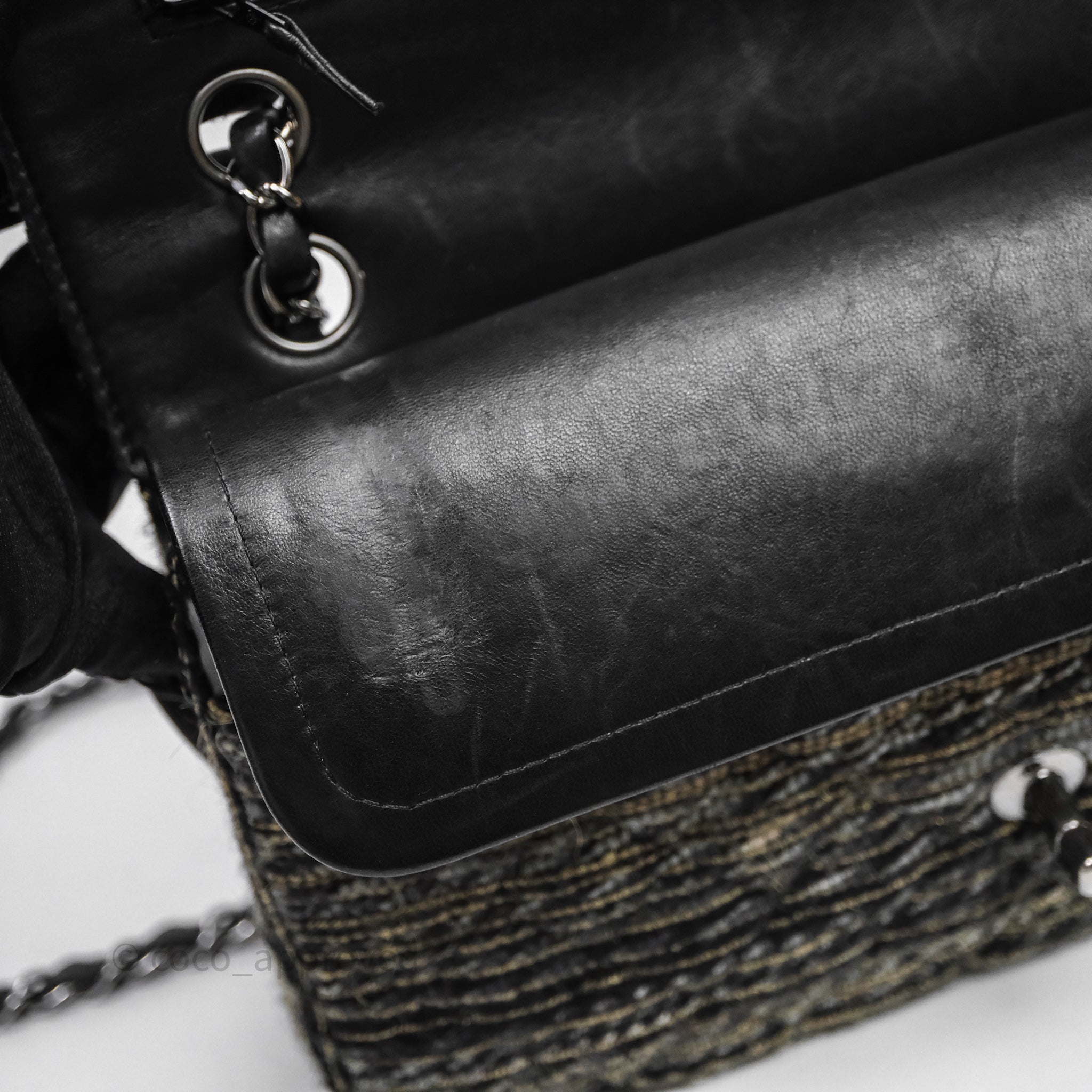Chanel Classic M/L Medium Flap Quilted Grey Tweed Silver Hardware
