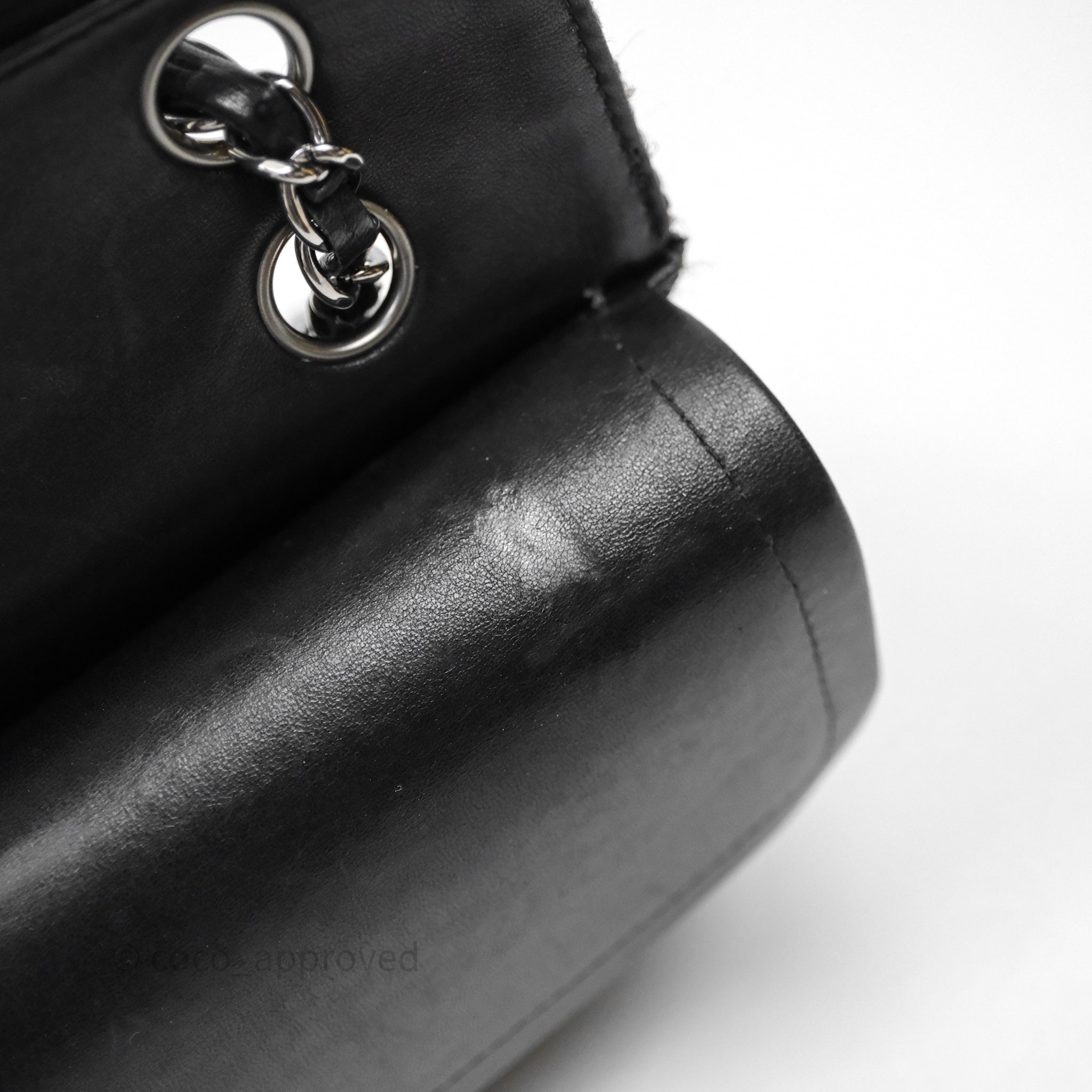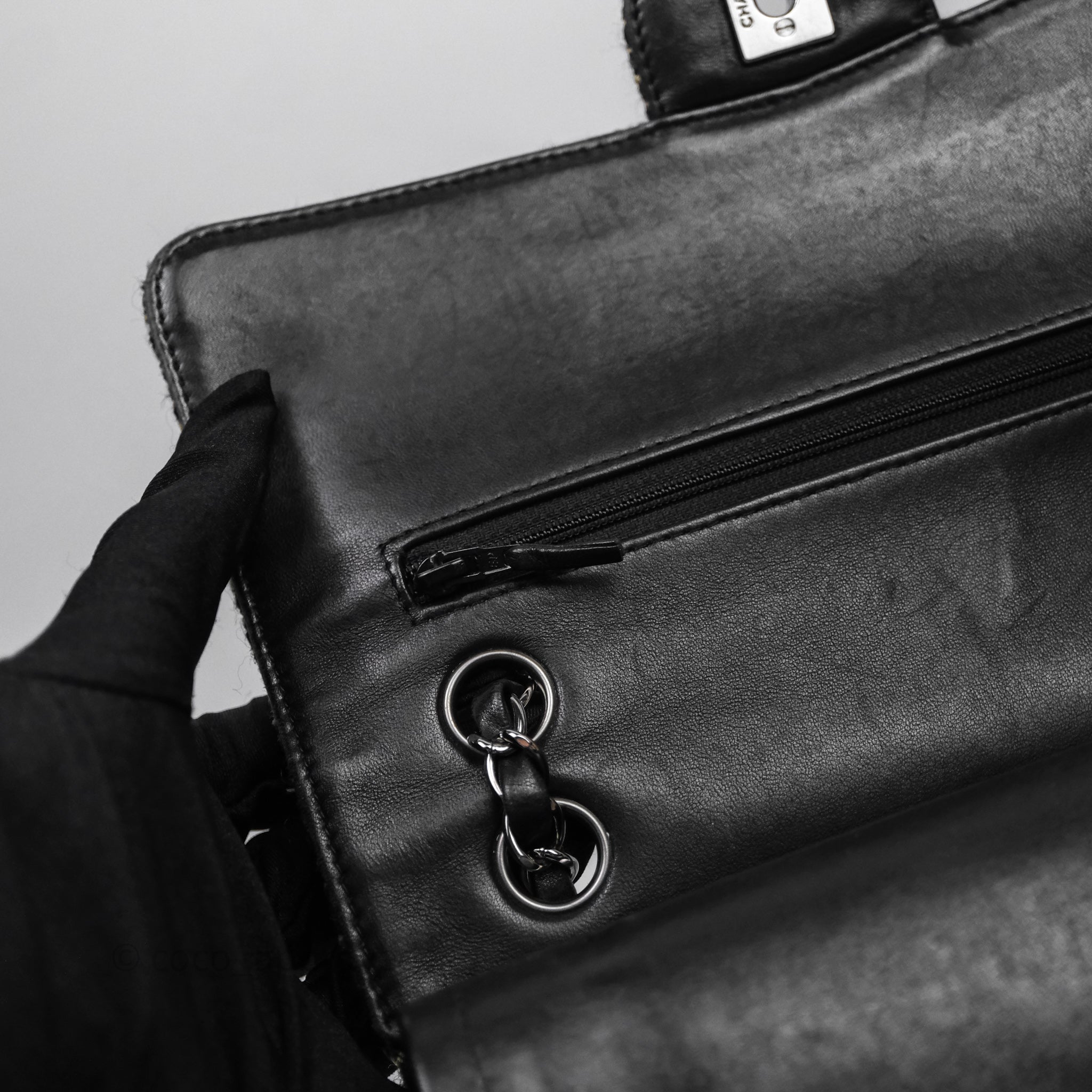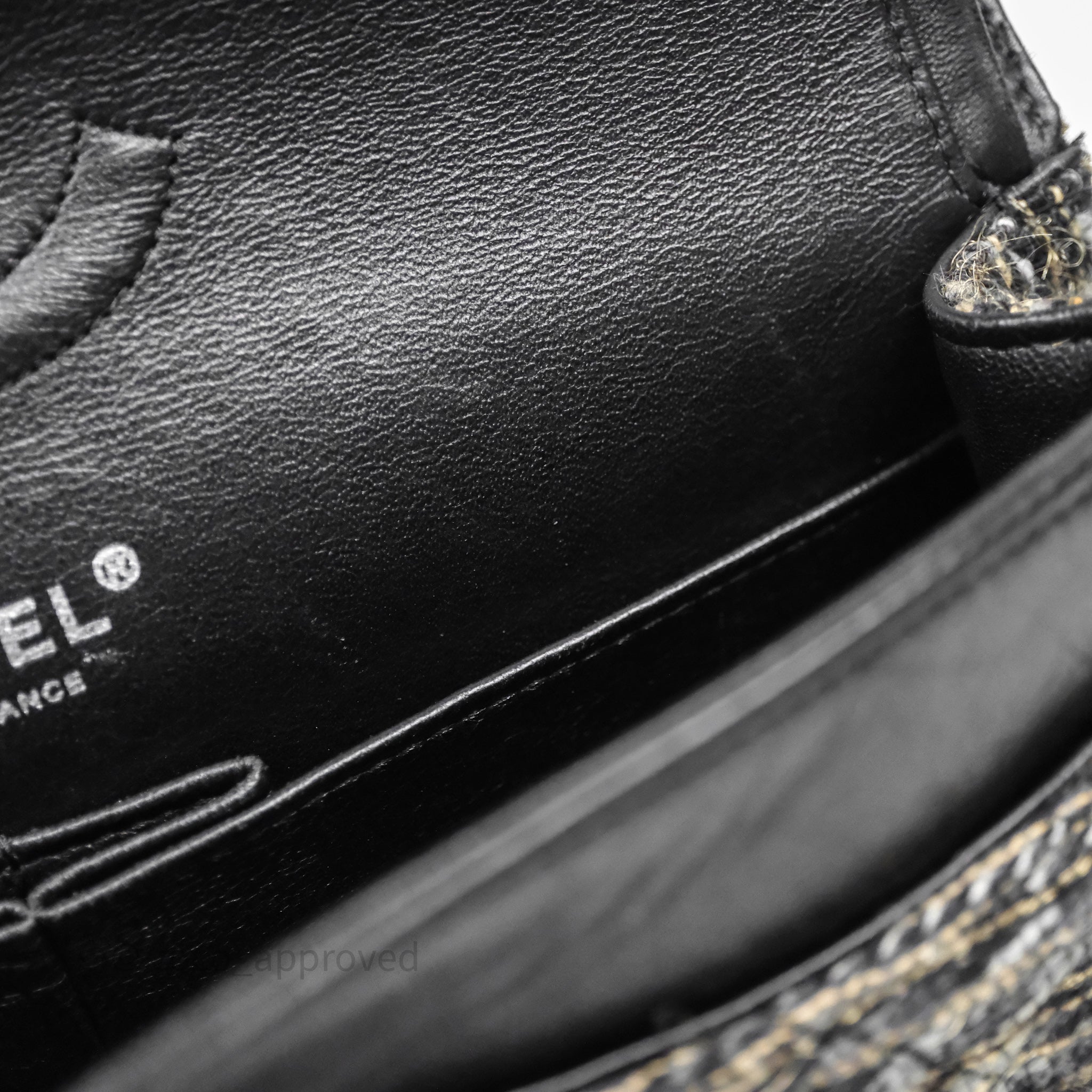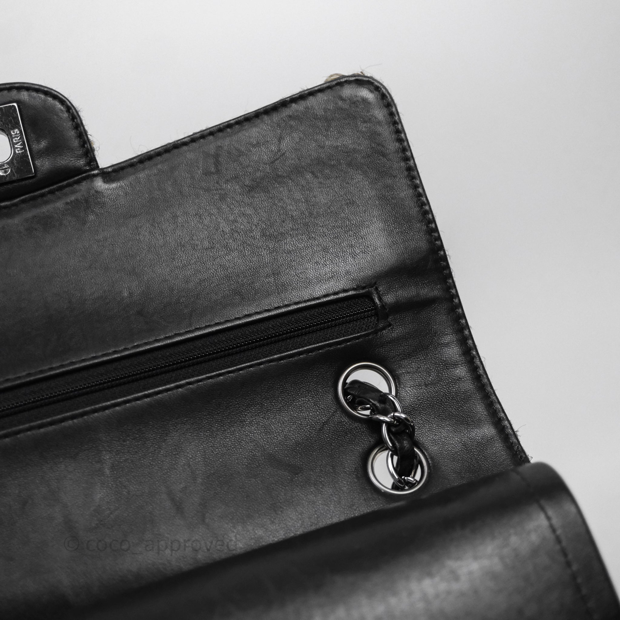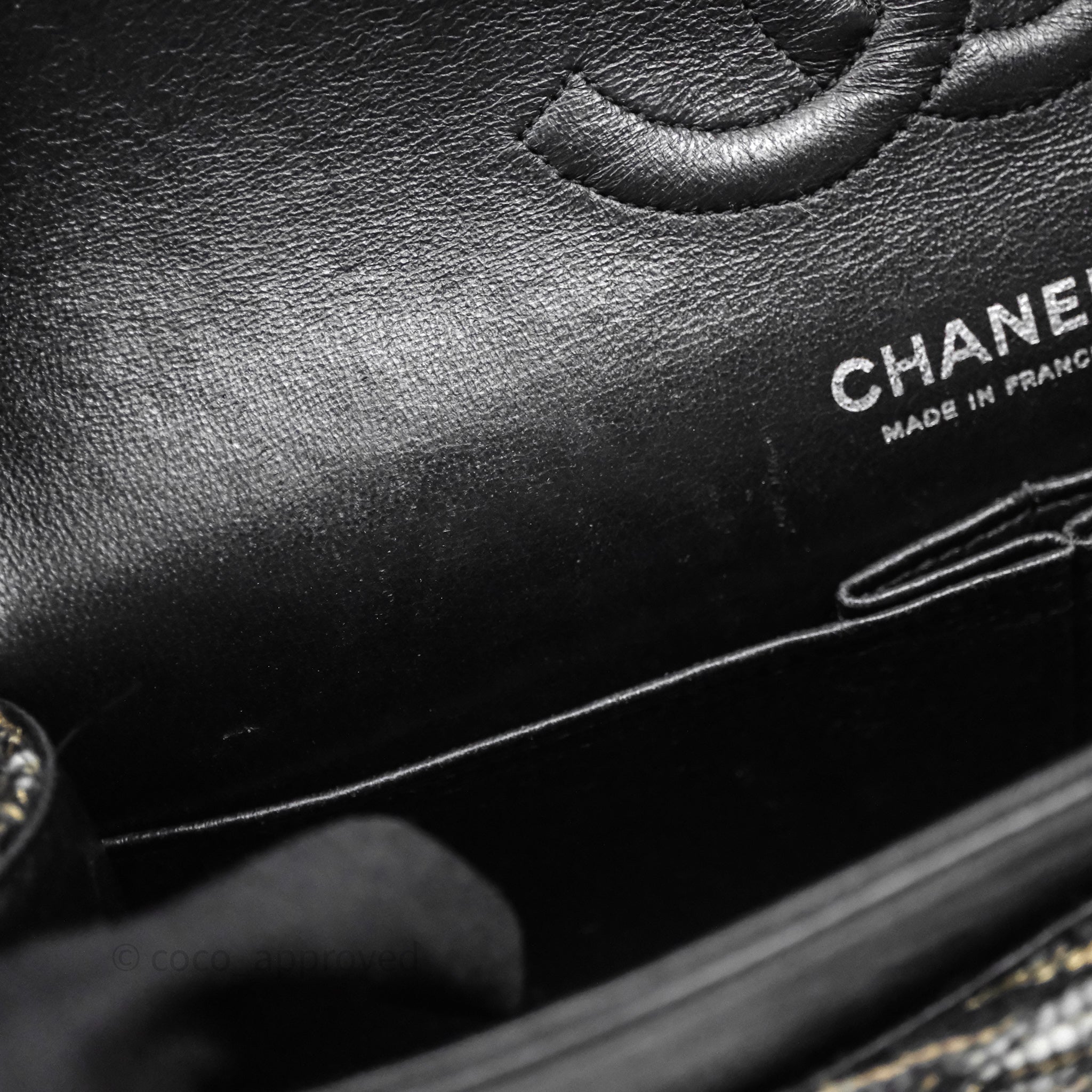 Chanel Classic M/L Medium Flap Quilted Grey Tweed Silver Hardware