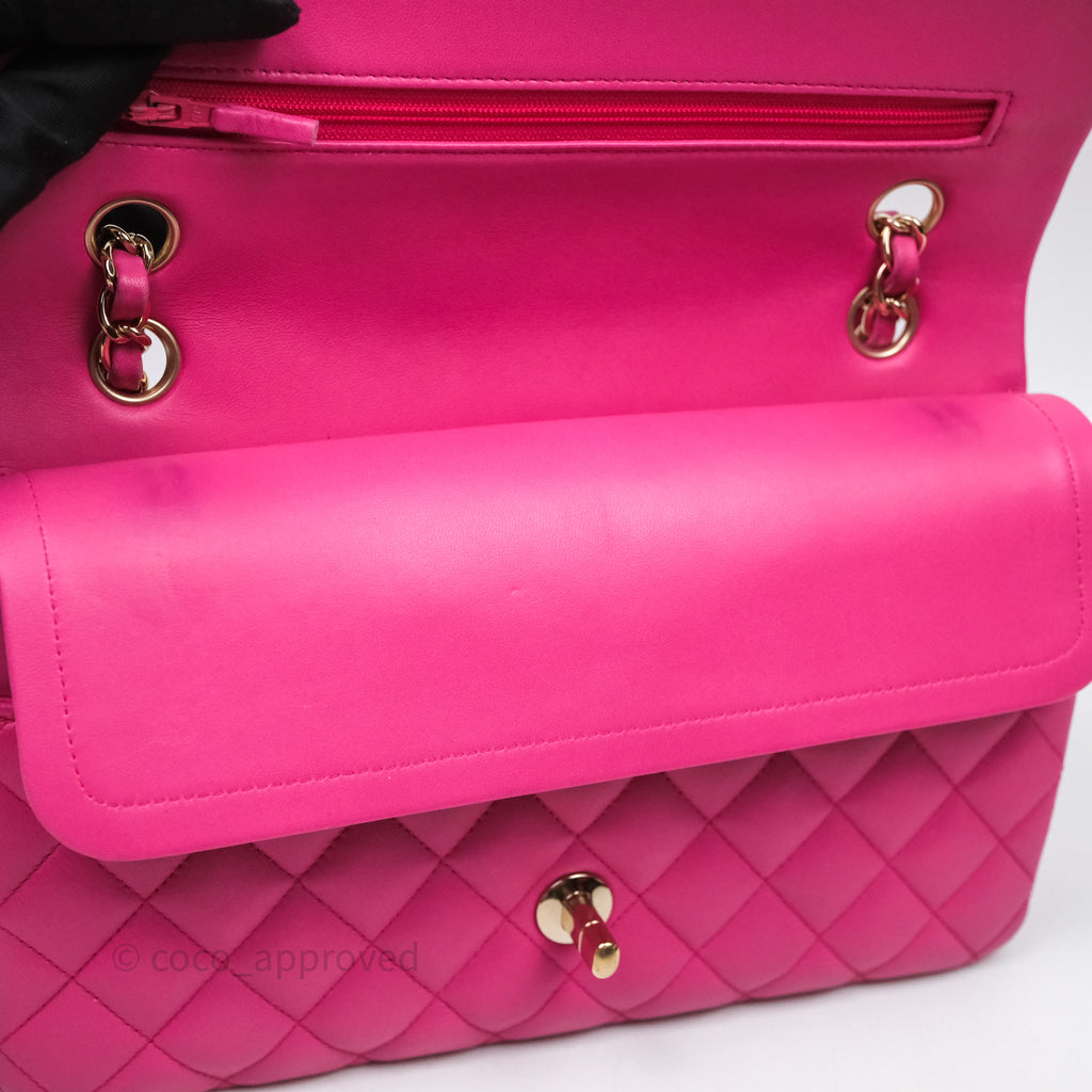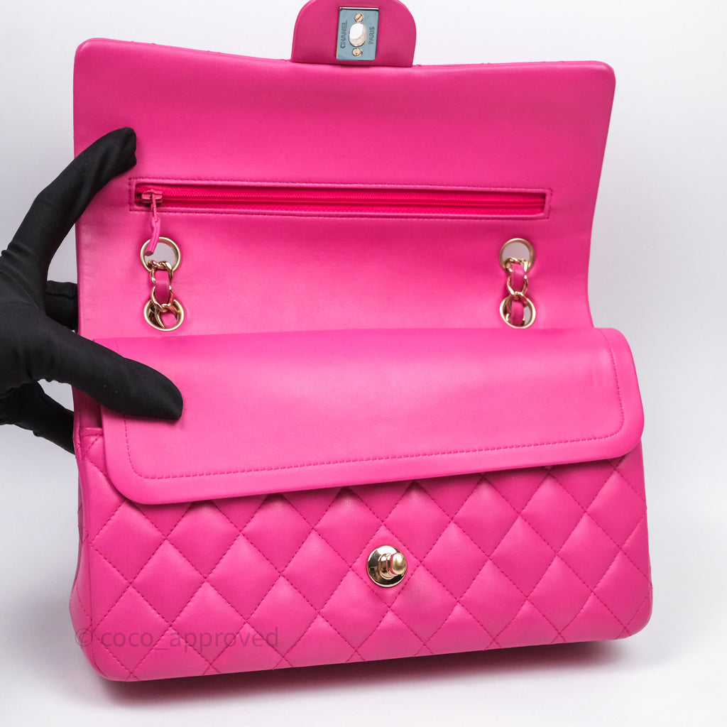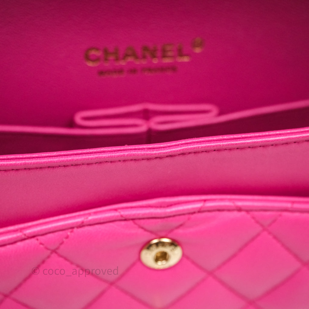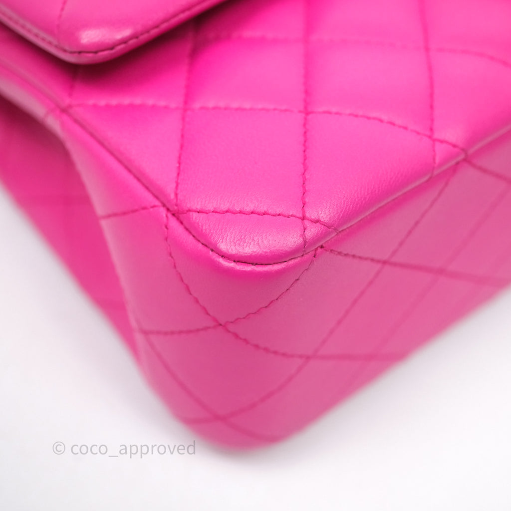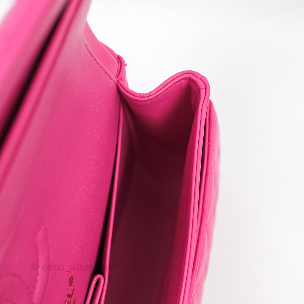 Chanel Classic M/L Medium Flap Quilted Hot Pink Lambskin Gold Hardware
