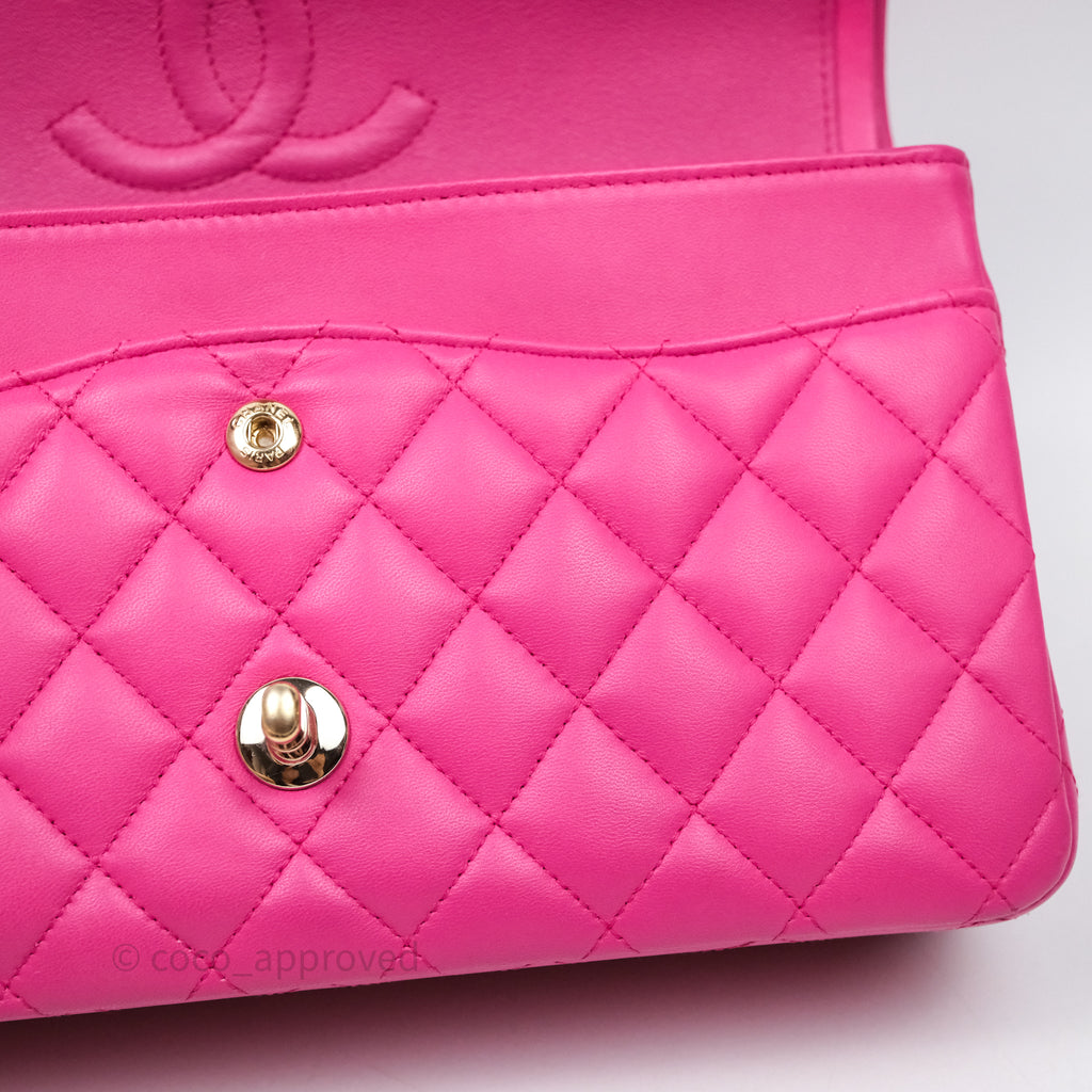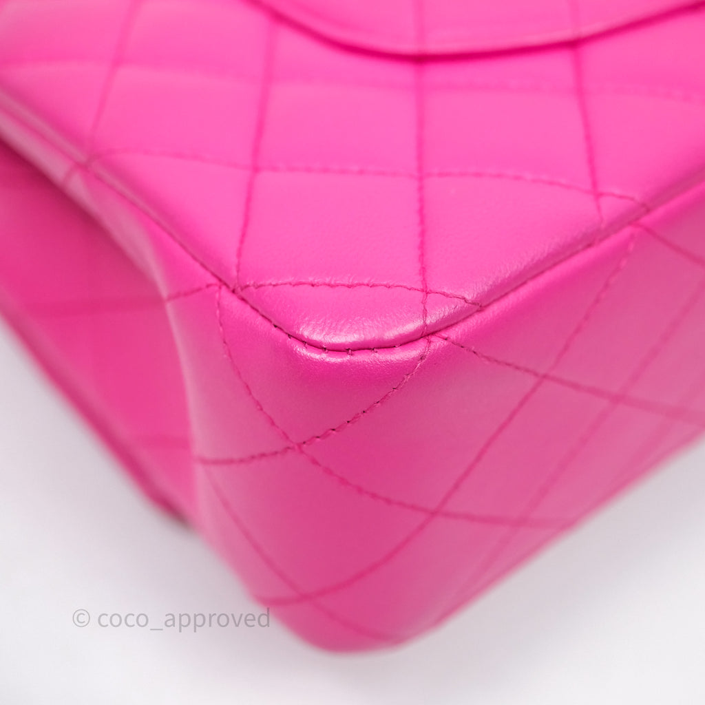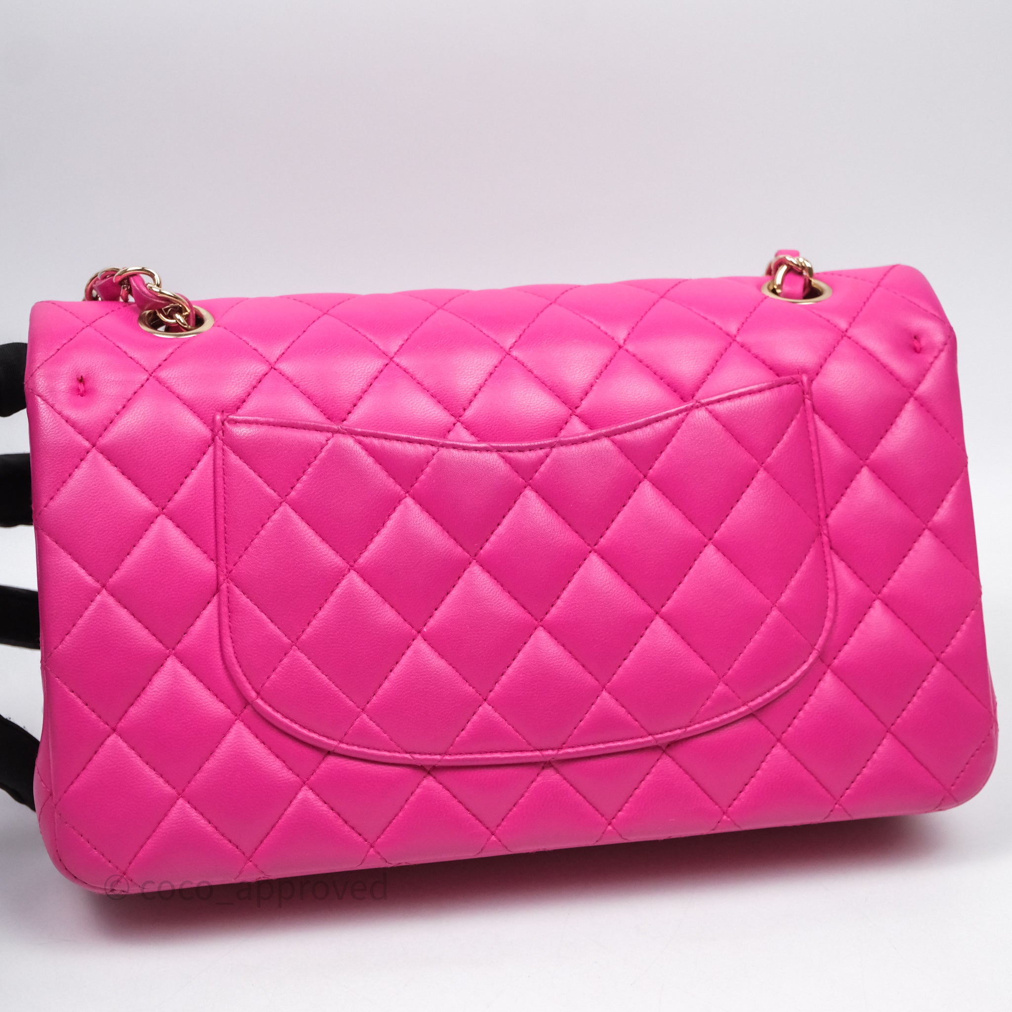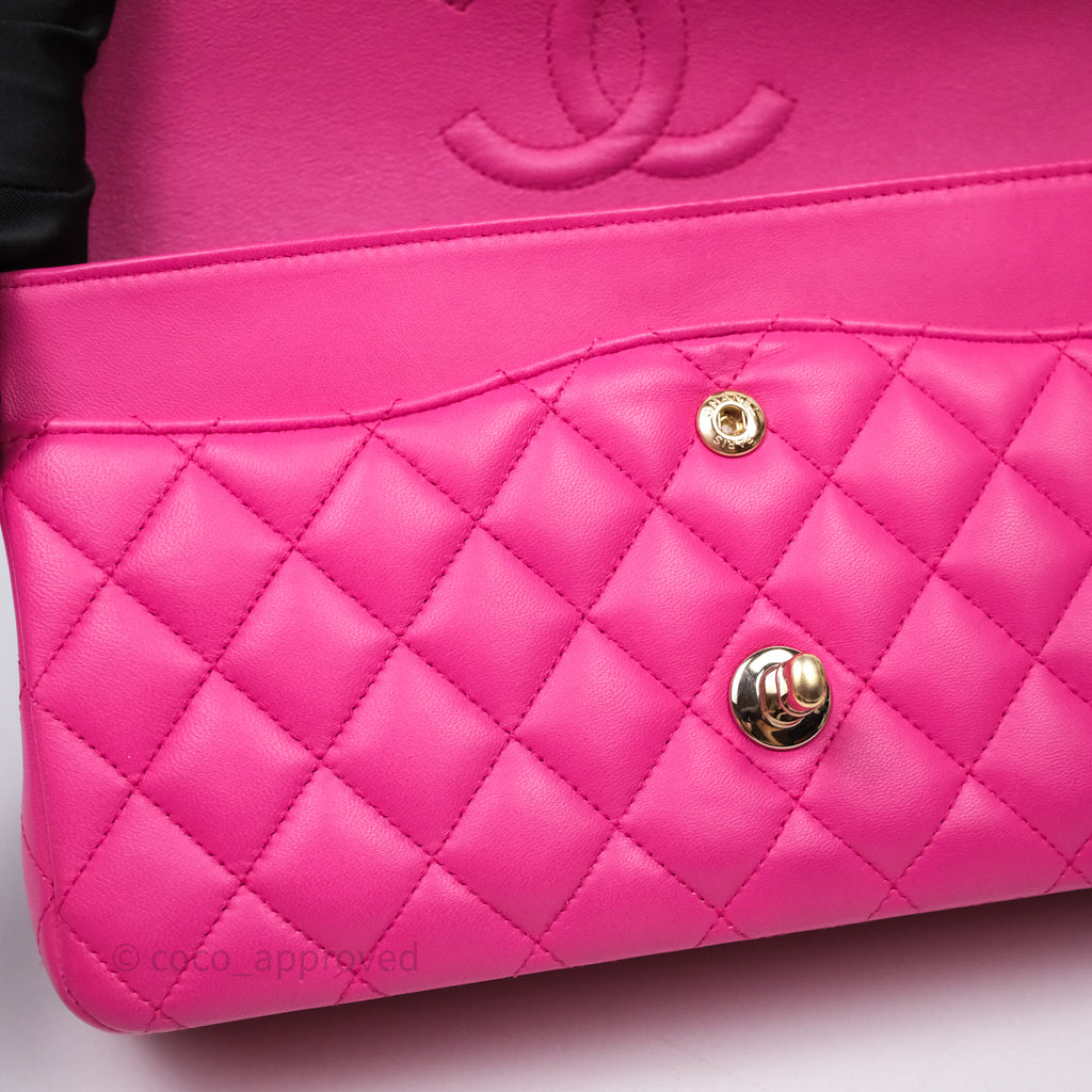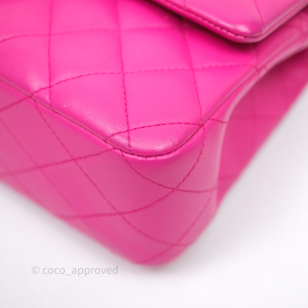 Chanel Classic M/L Medium Flap Quilted Hot Pink Lambskin Gold Hardware