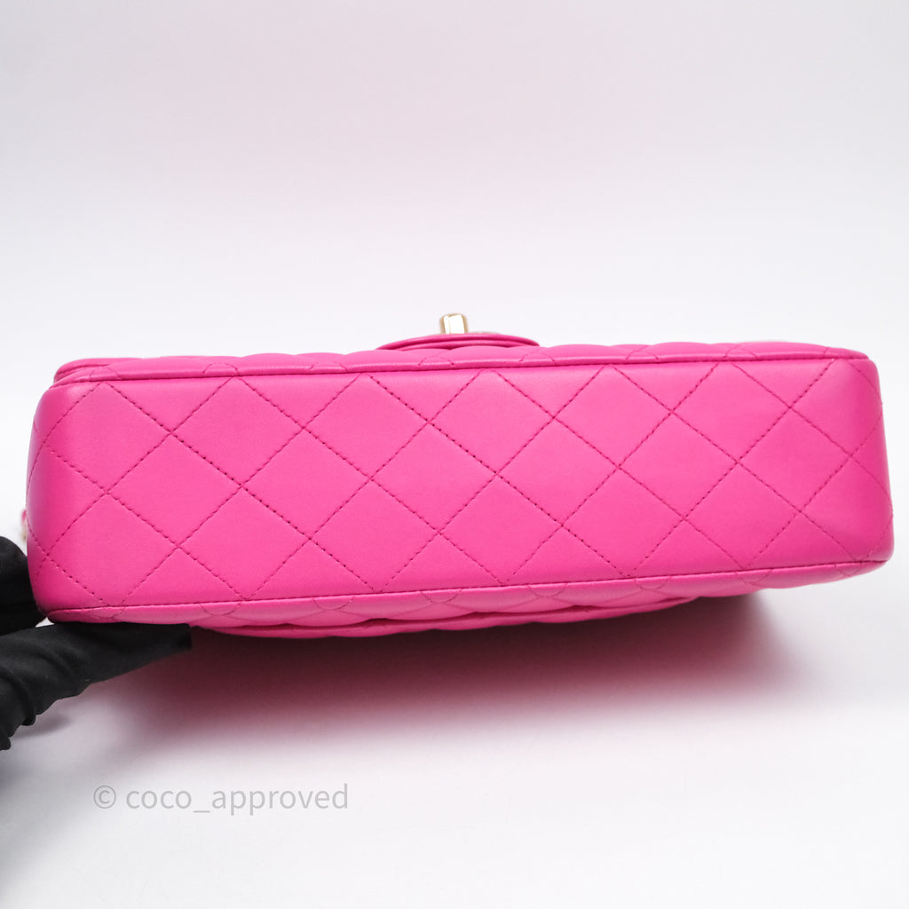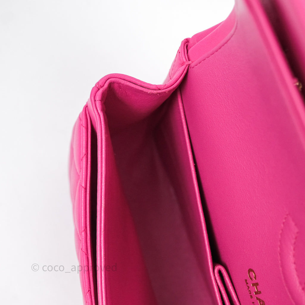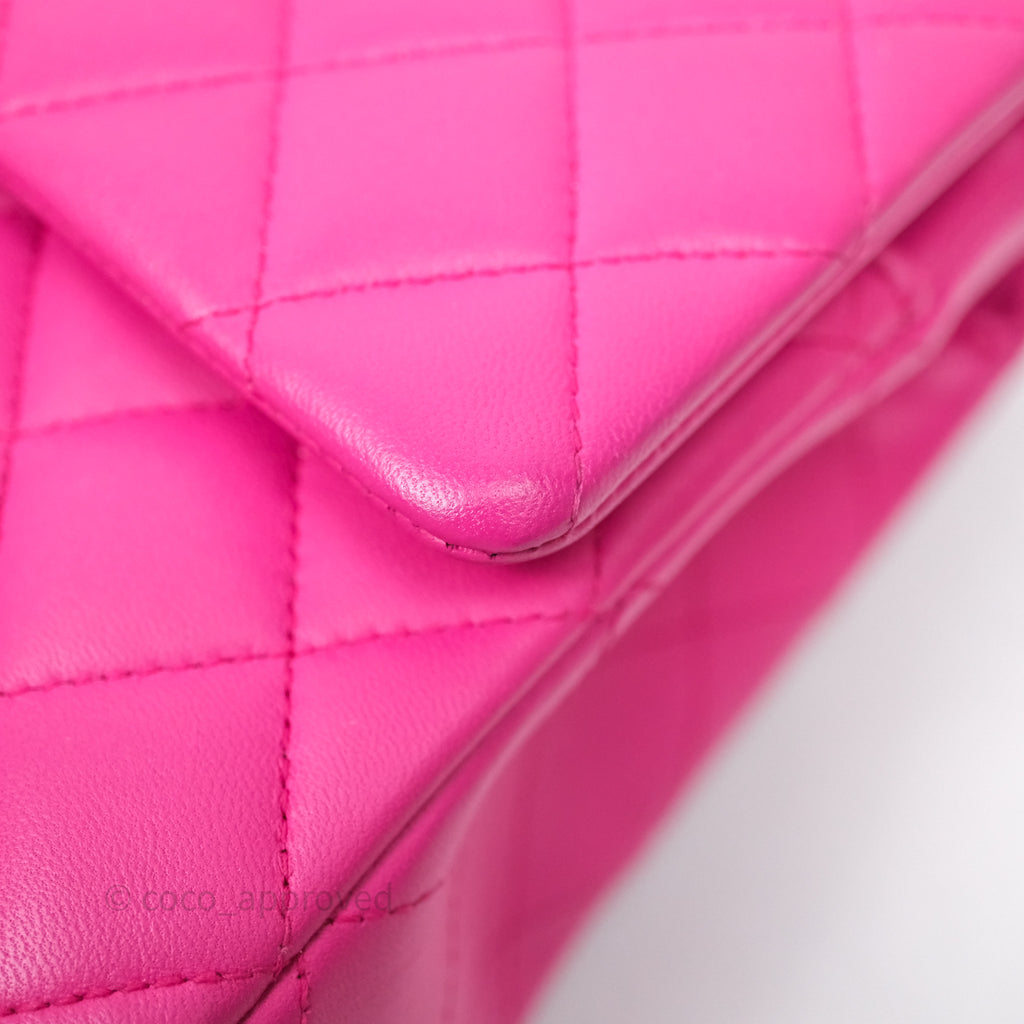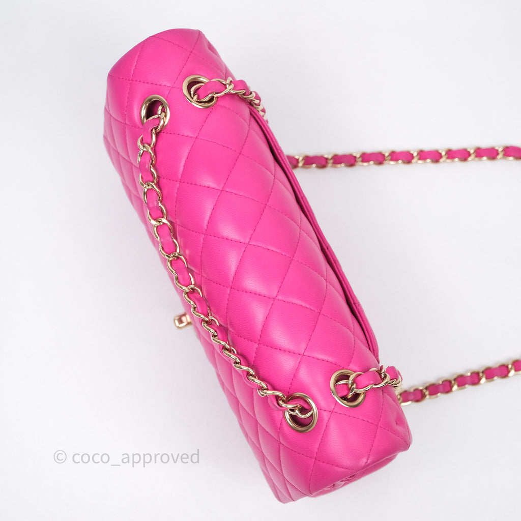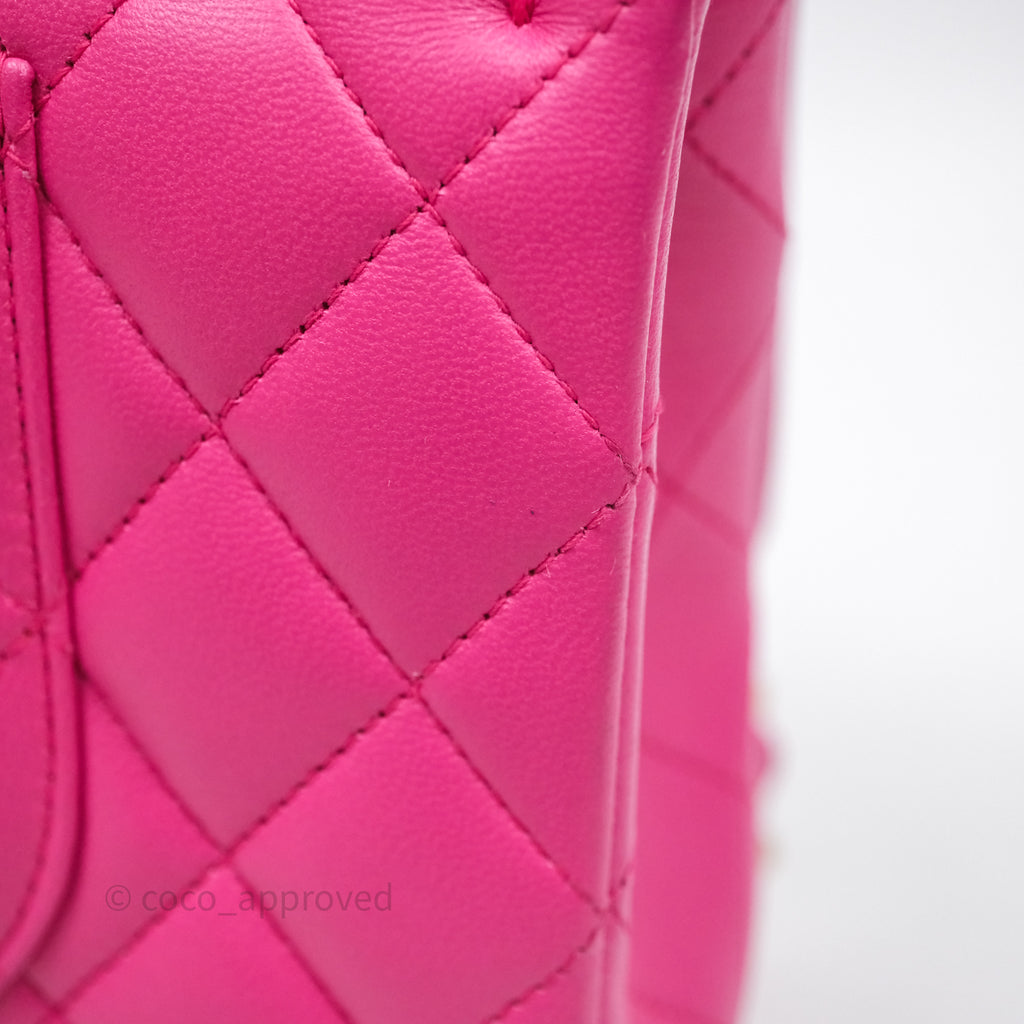 Chanel Classic M/L Medium Flap Quilted Hot Pink Lambskin Gold Hardware