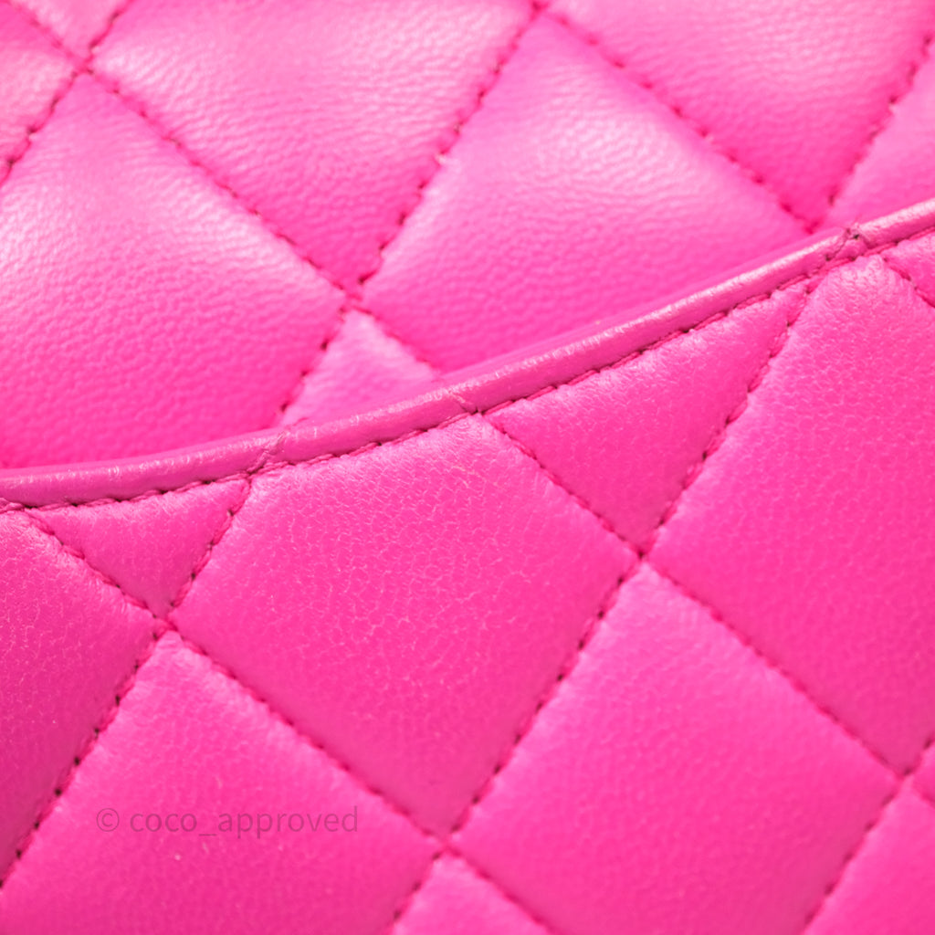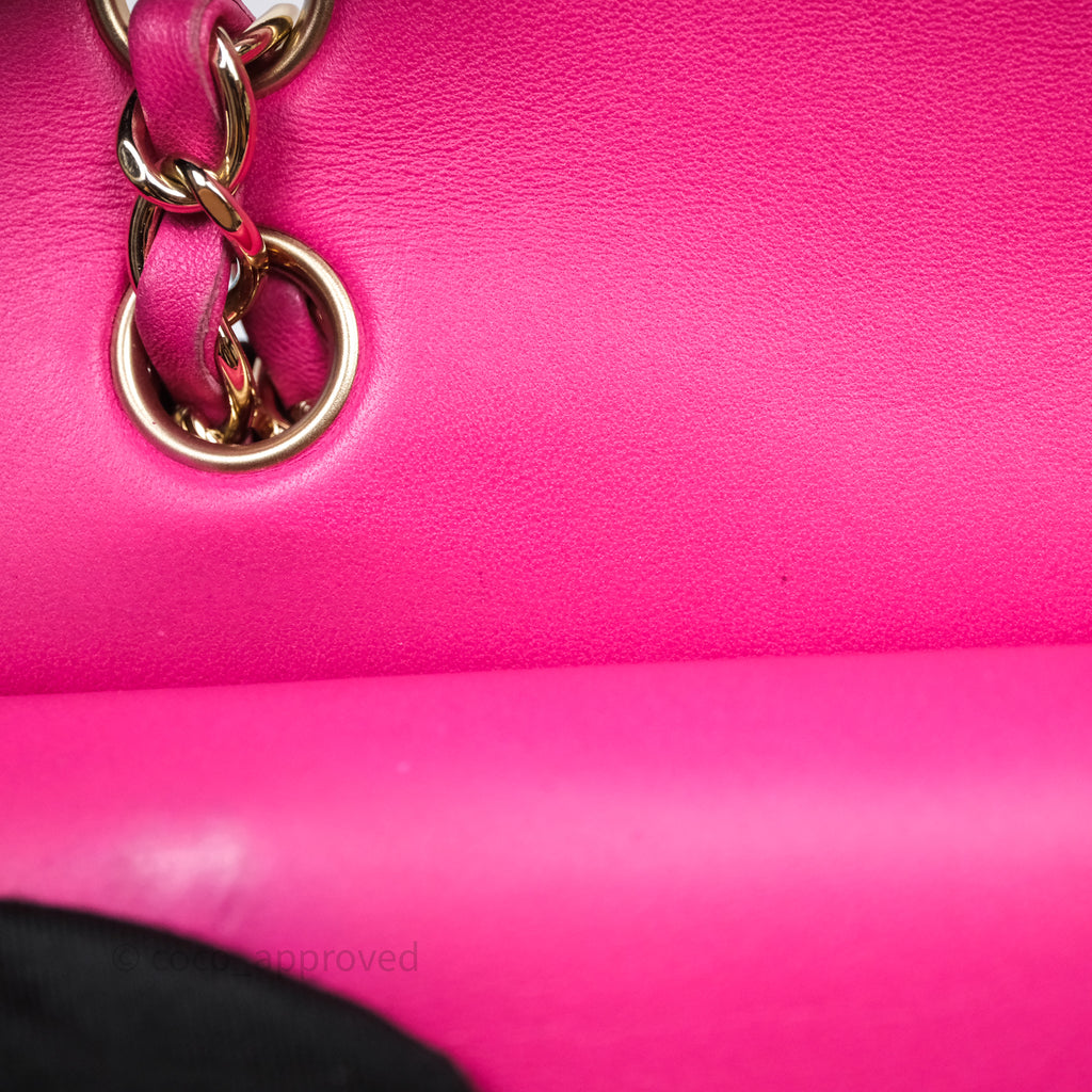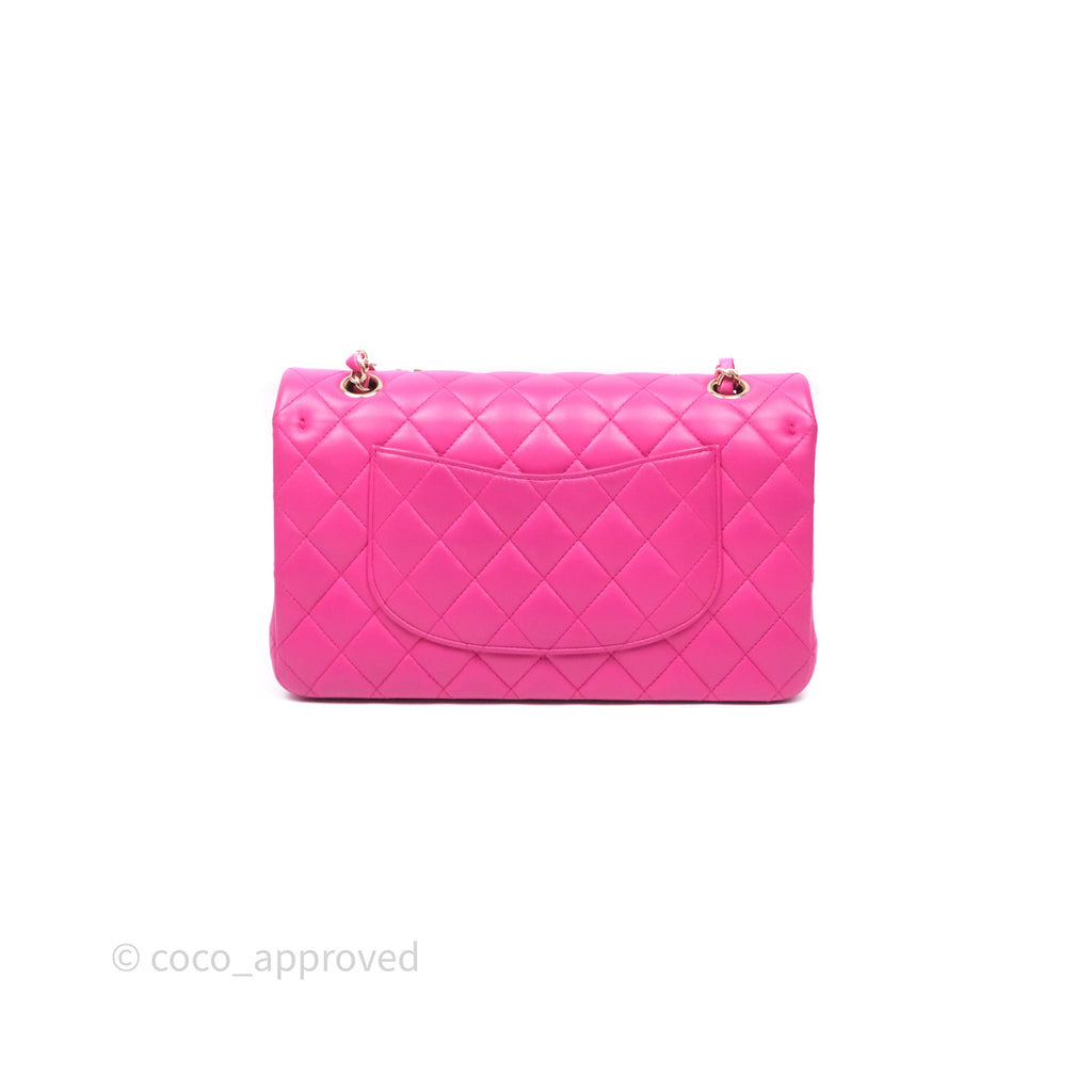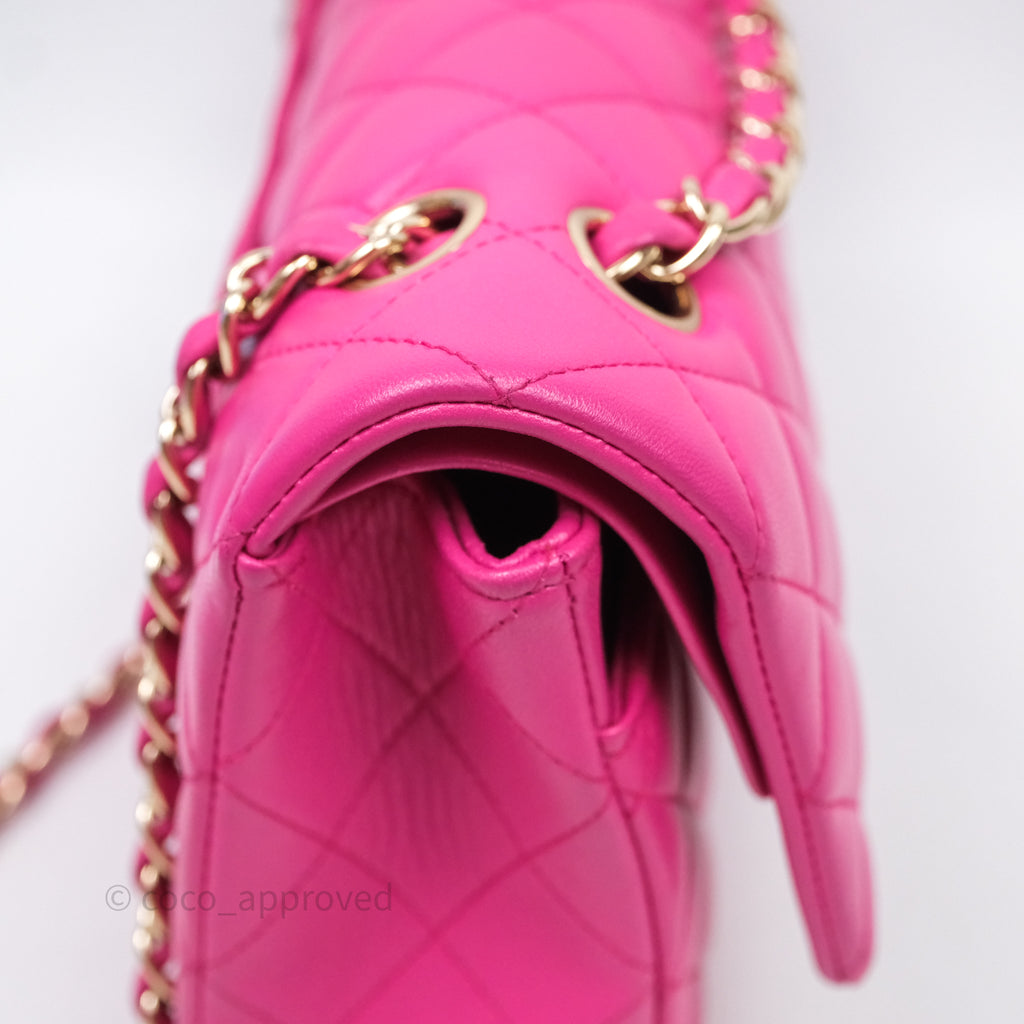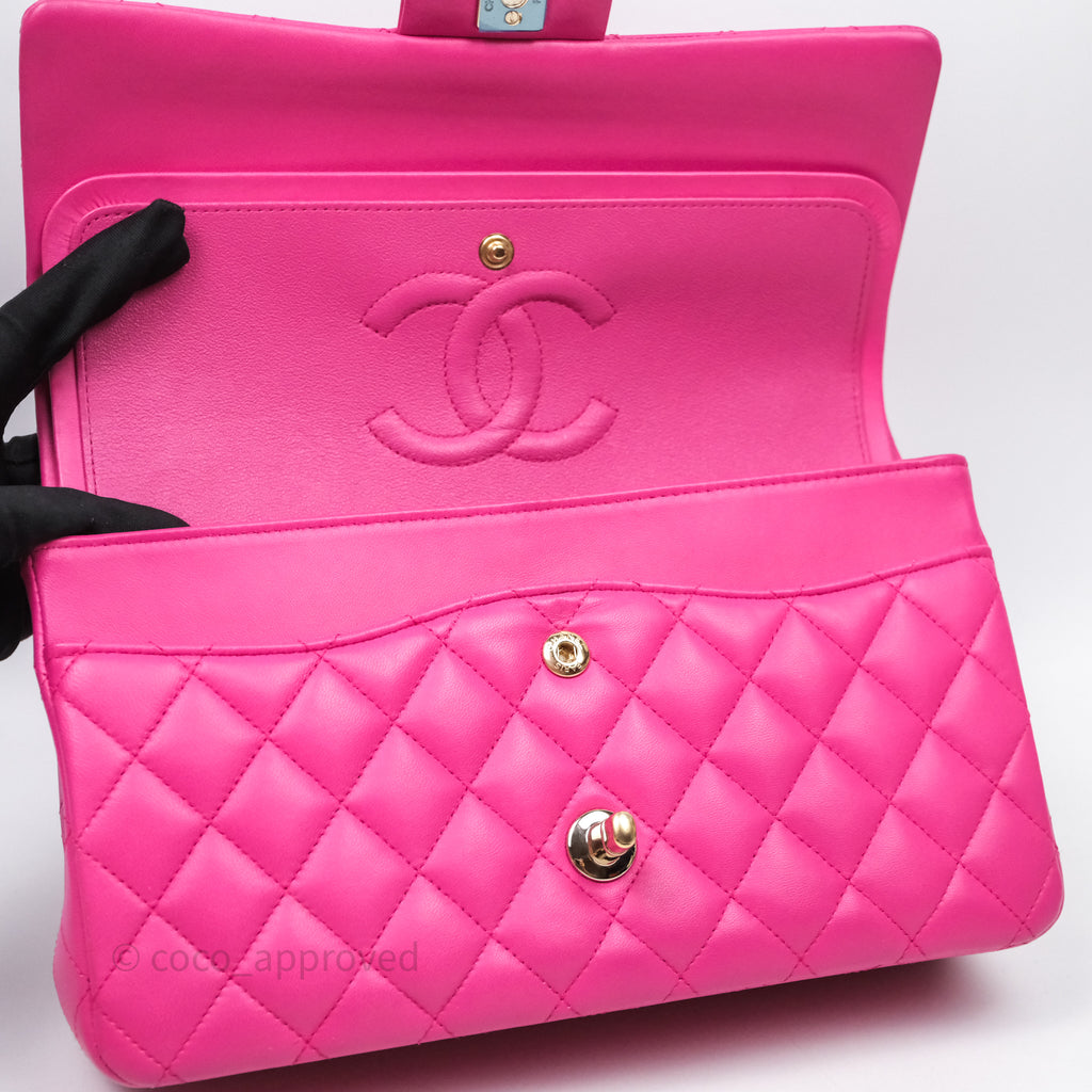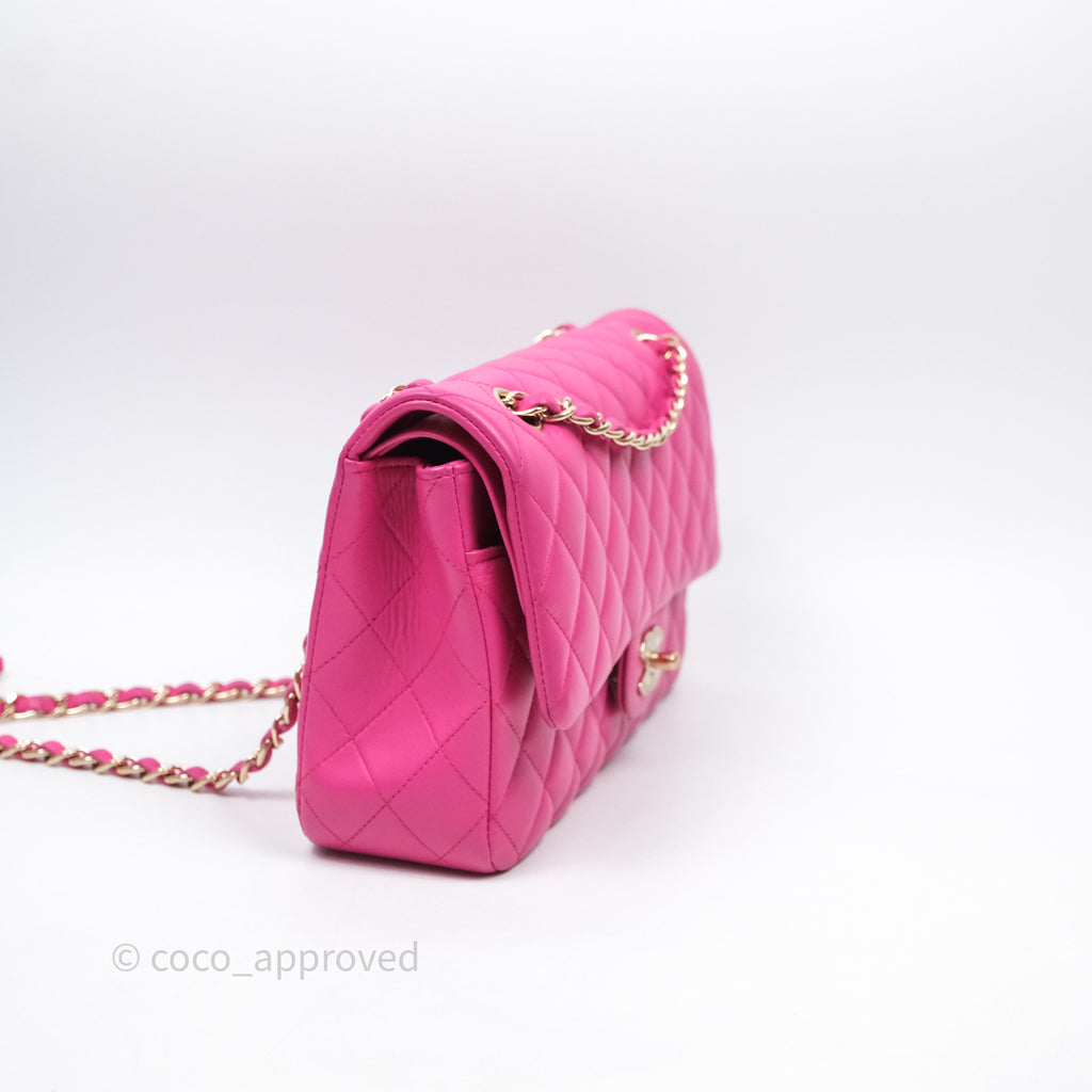 Chanel Classic M/L Medium Flap Quilted Hot Pink Lambskin Gold Hardware