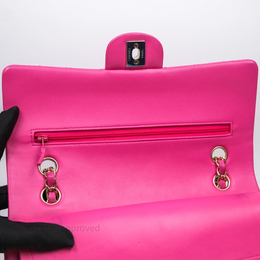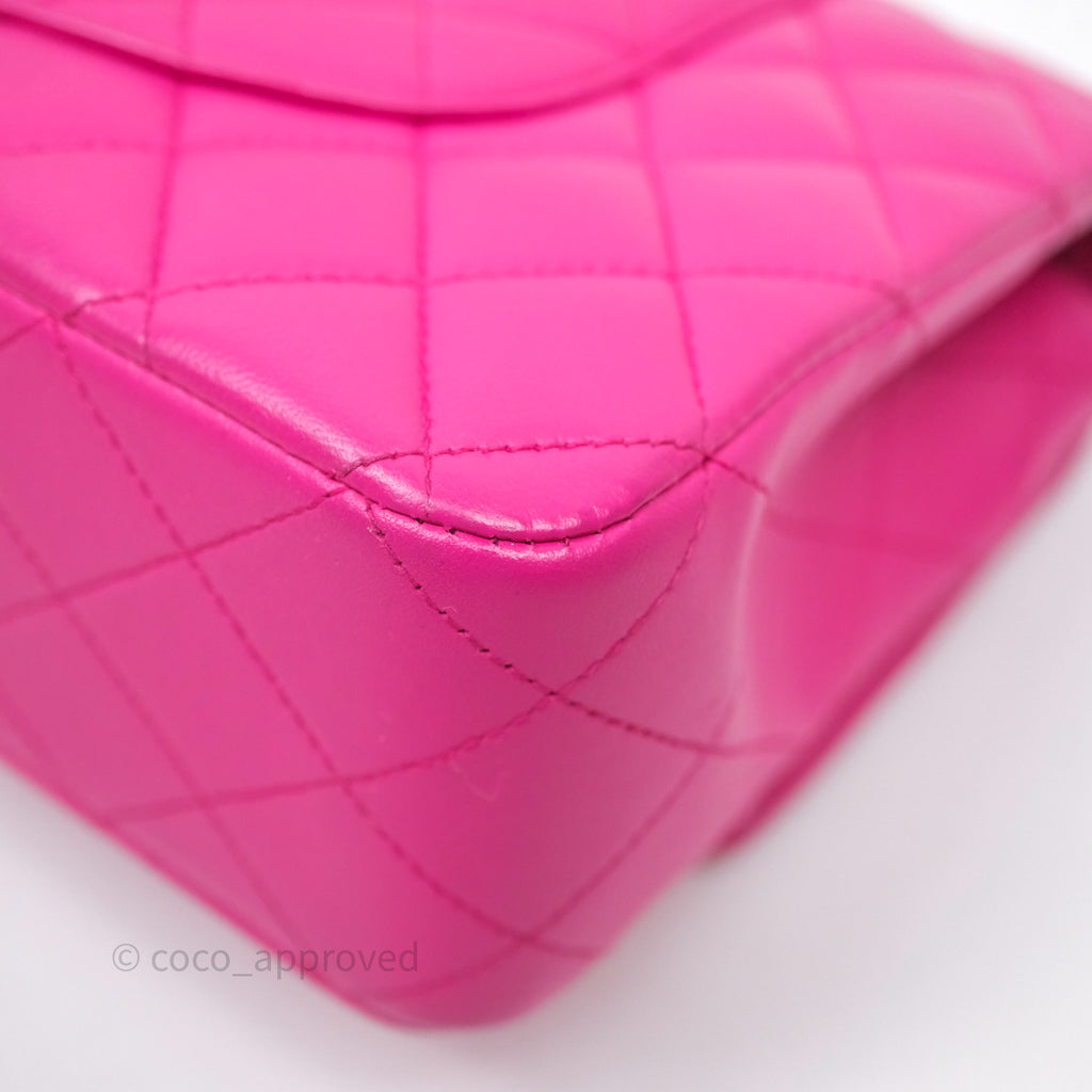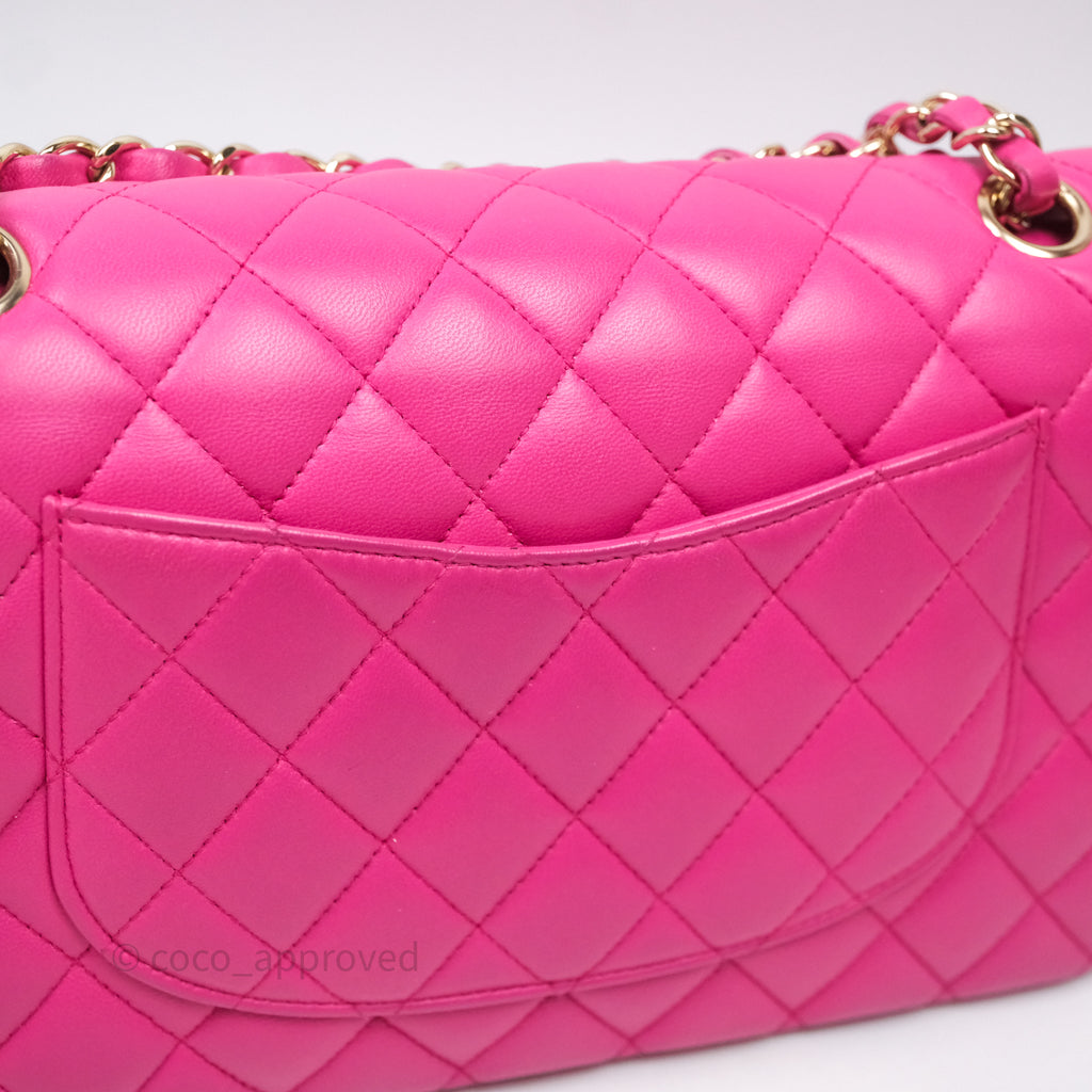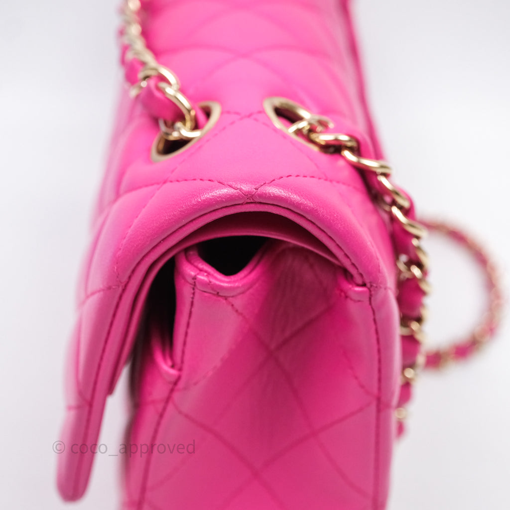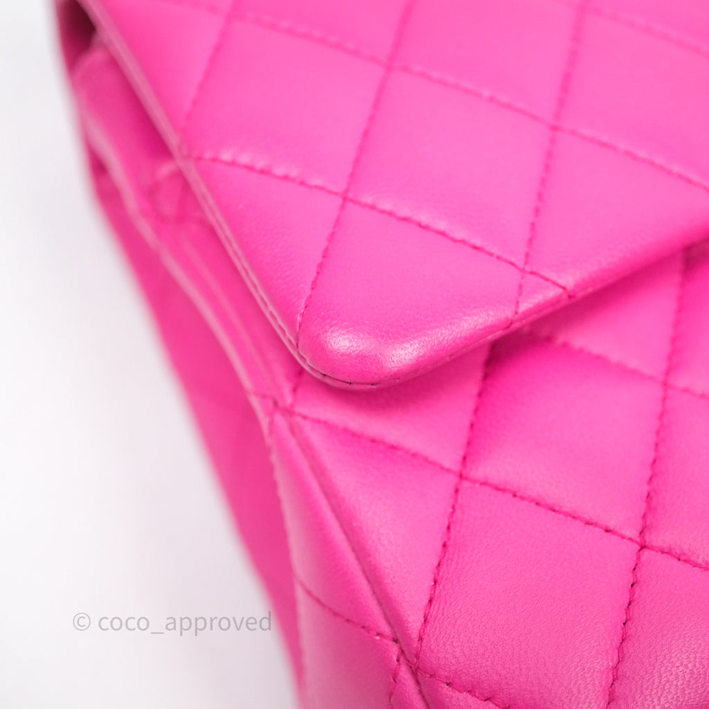 Chanel Classic M/L Medium Flap Quilted Hot Pink Lambskin Gold Hardware
