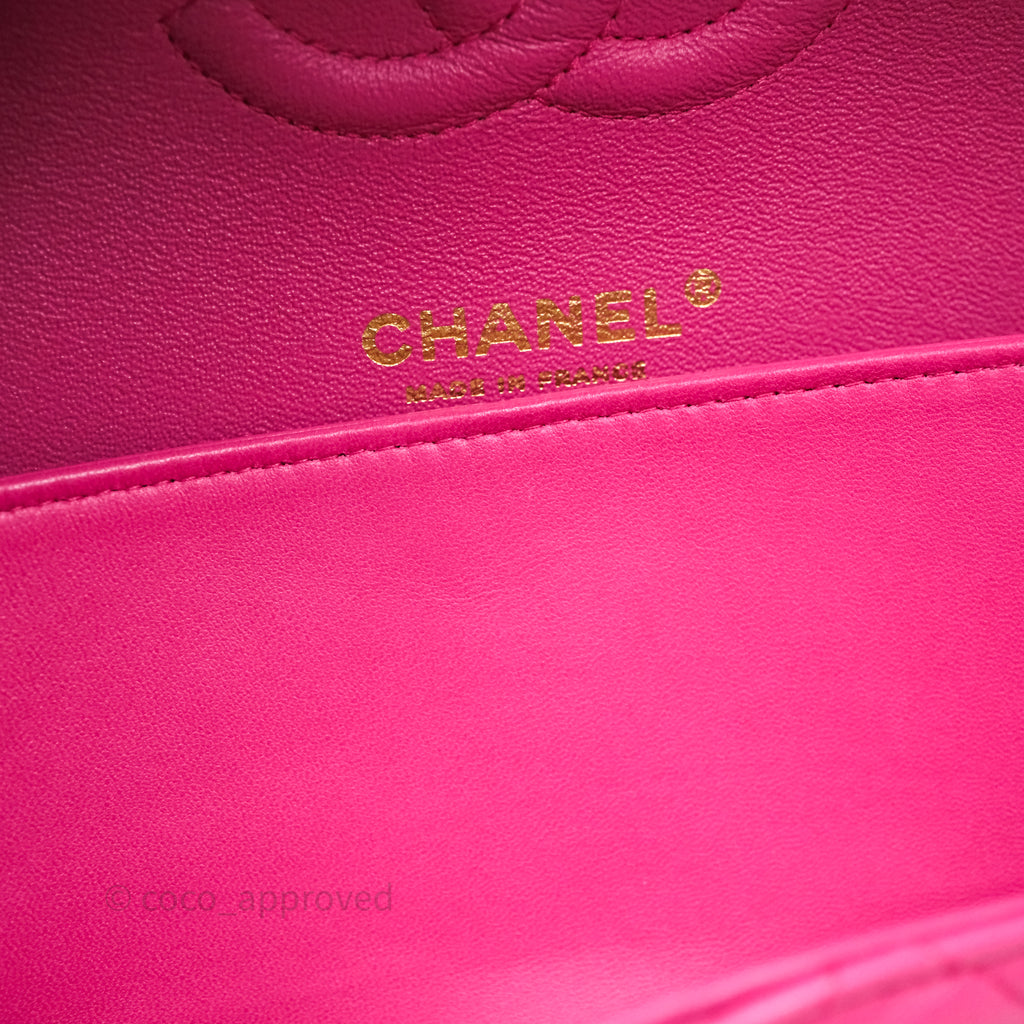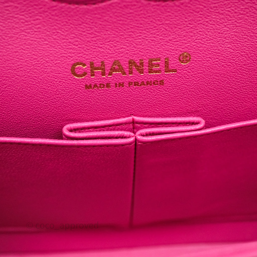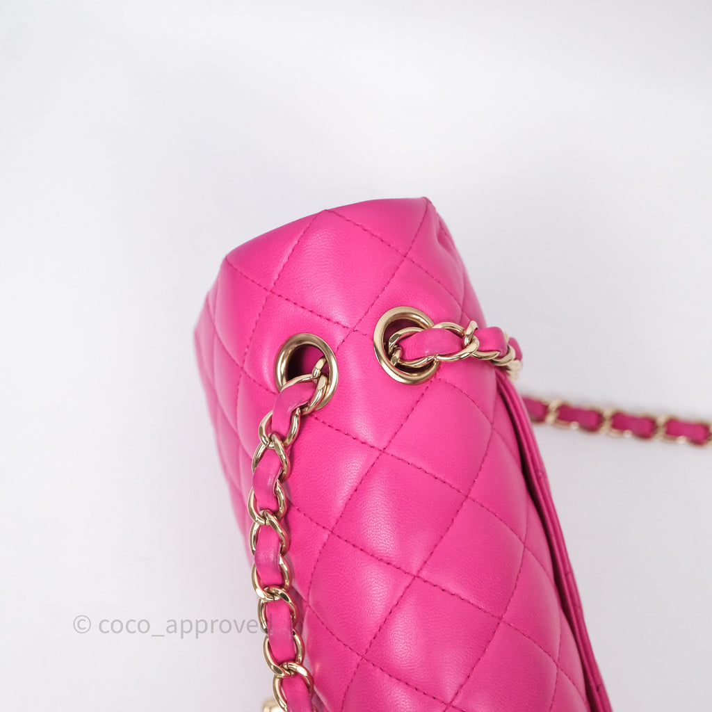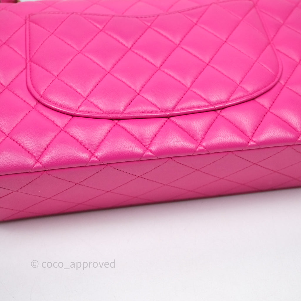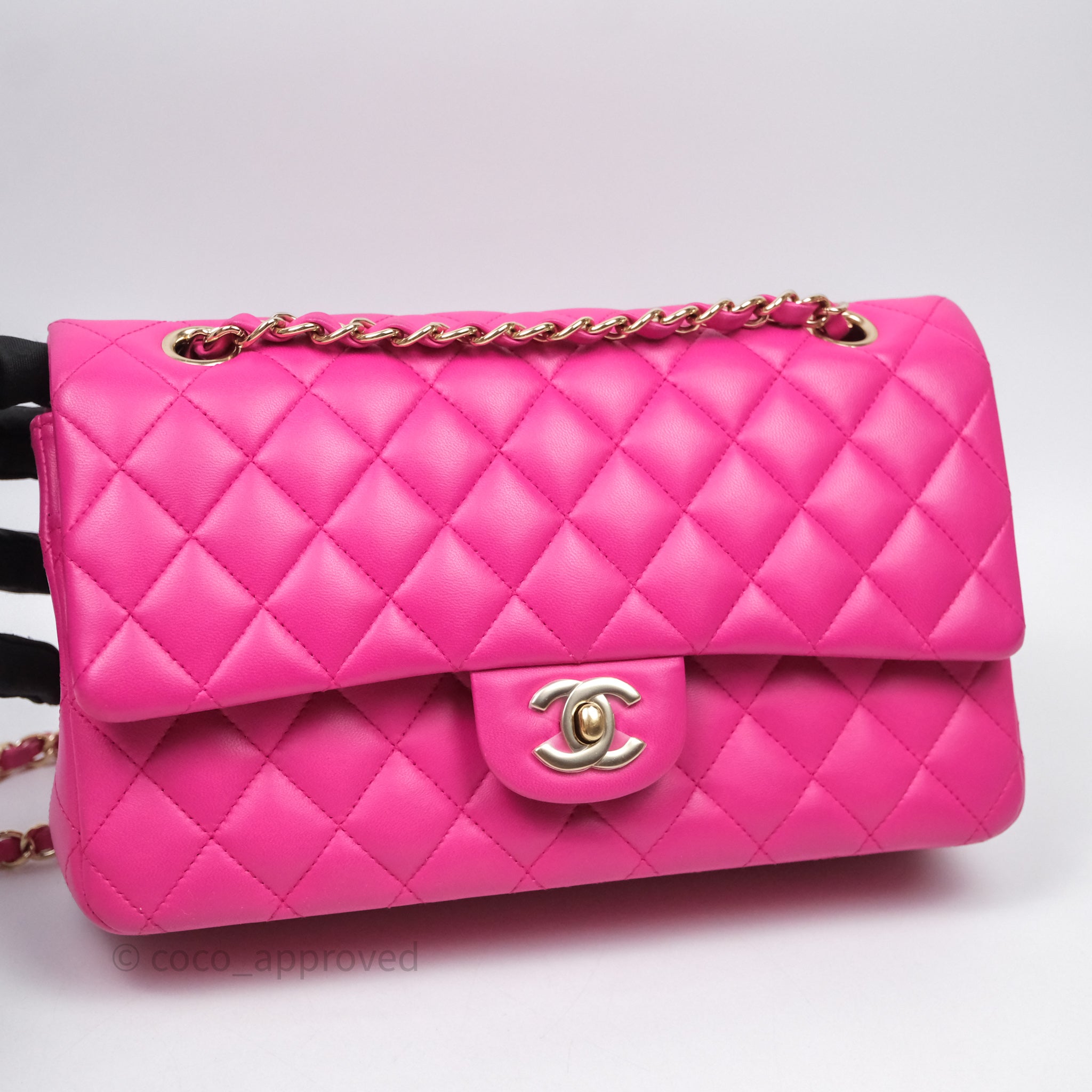 Chanel Classic M/L Medium Flap Quilted Hot Pink Lambskin Gold Hardware