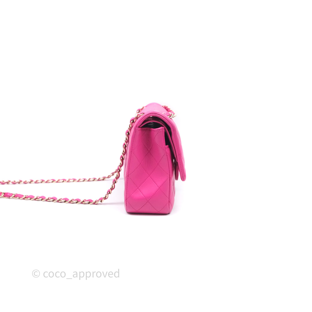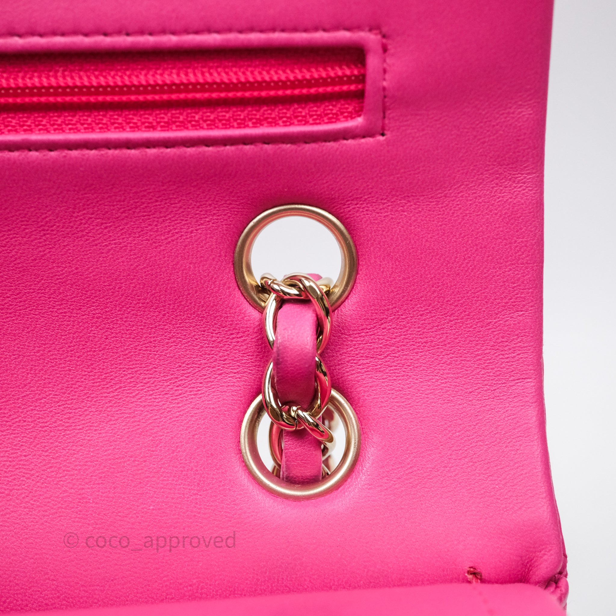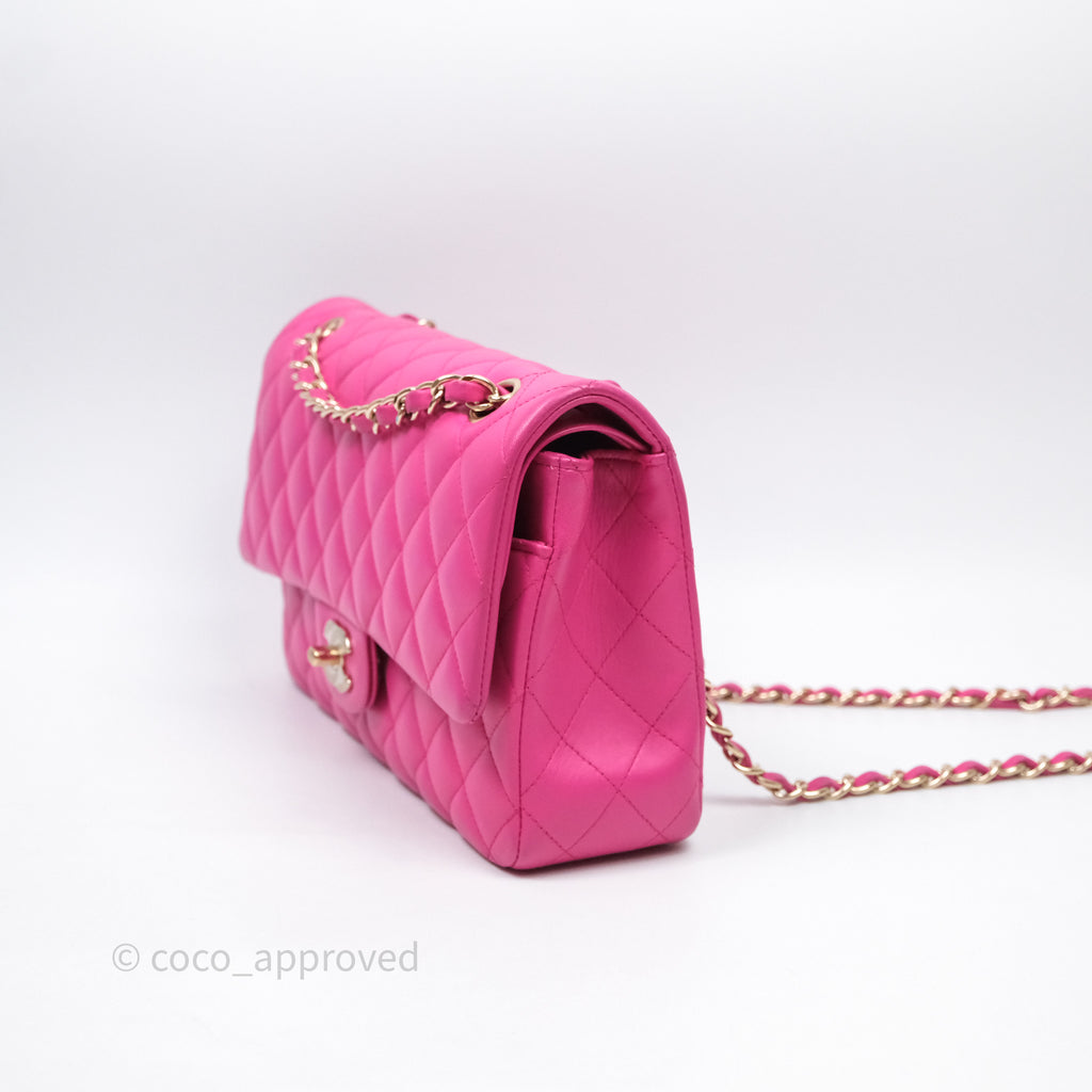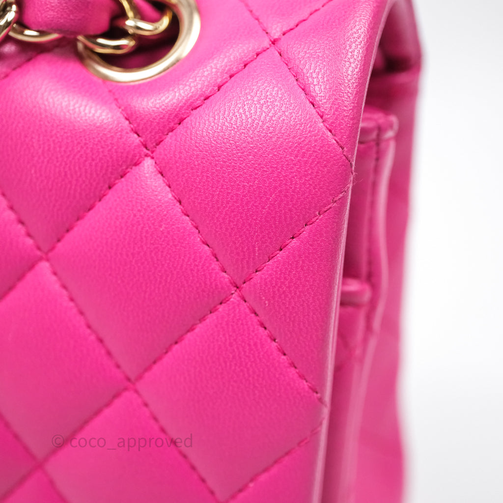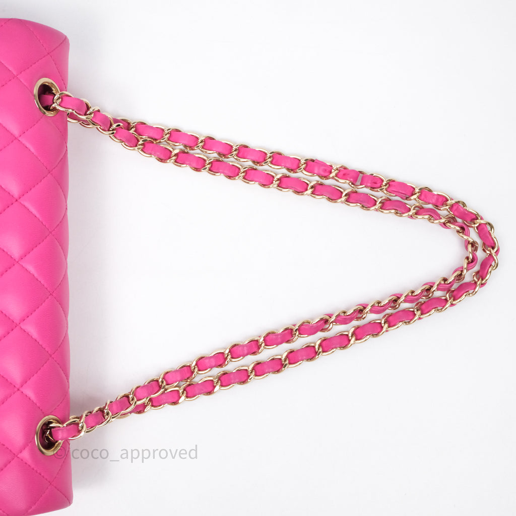 Chanel Classic M/L Medium Flap Quilted Hot Pink Lambskin Gold Hardware