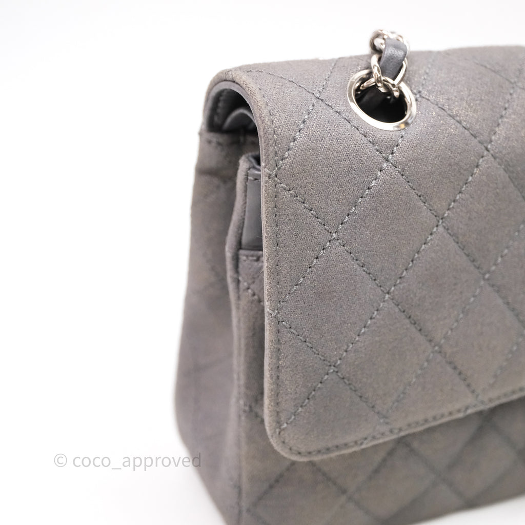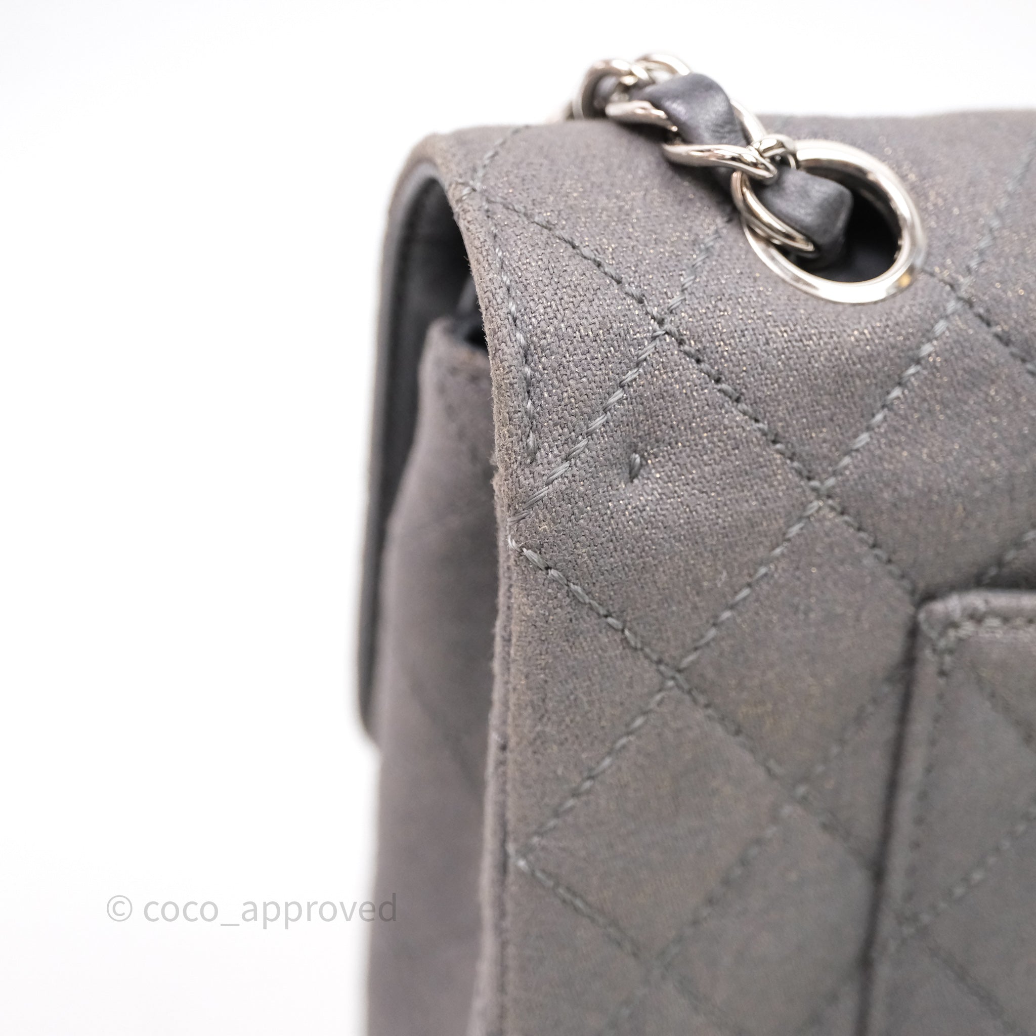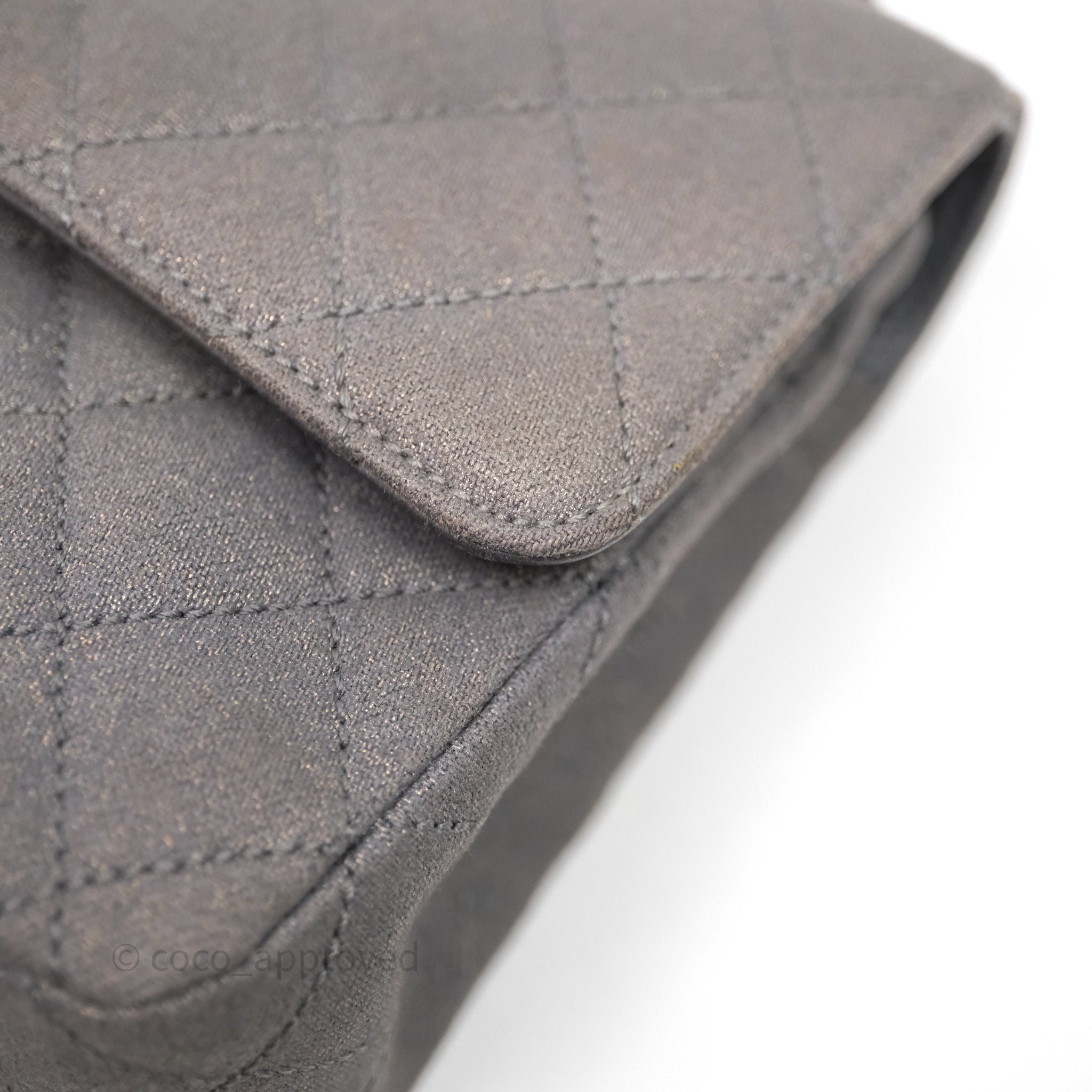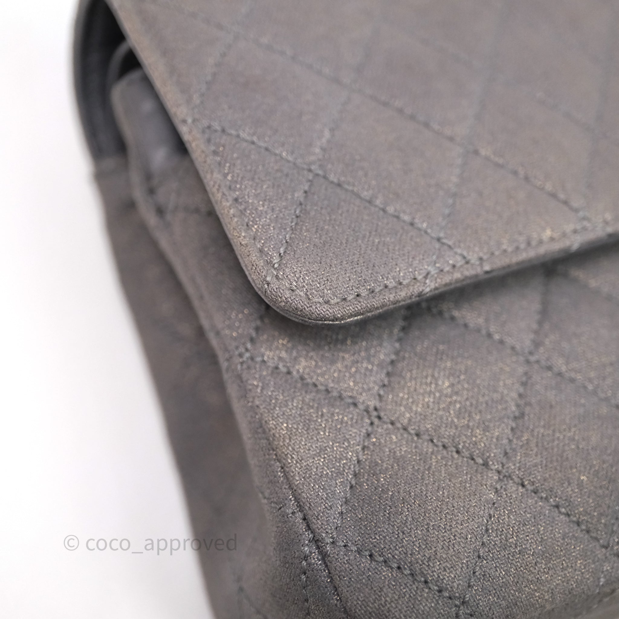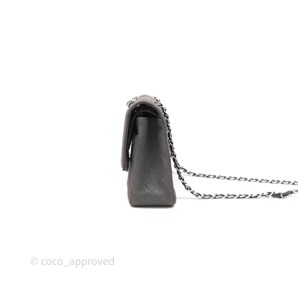 Chanel Classic M/L Medium Flap Quilted Iridescent Metallic Grey Canvas Silver Hardware