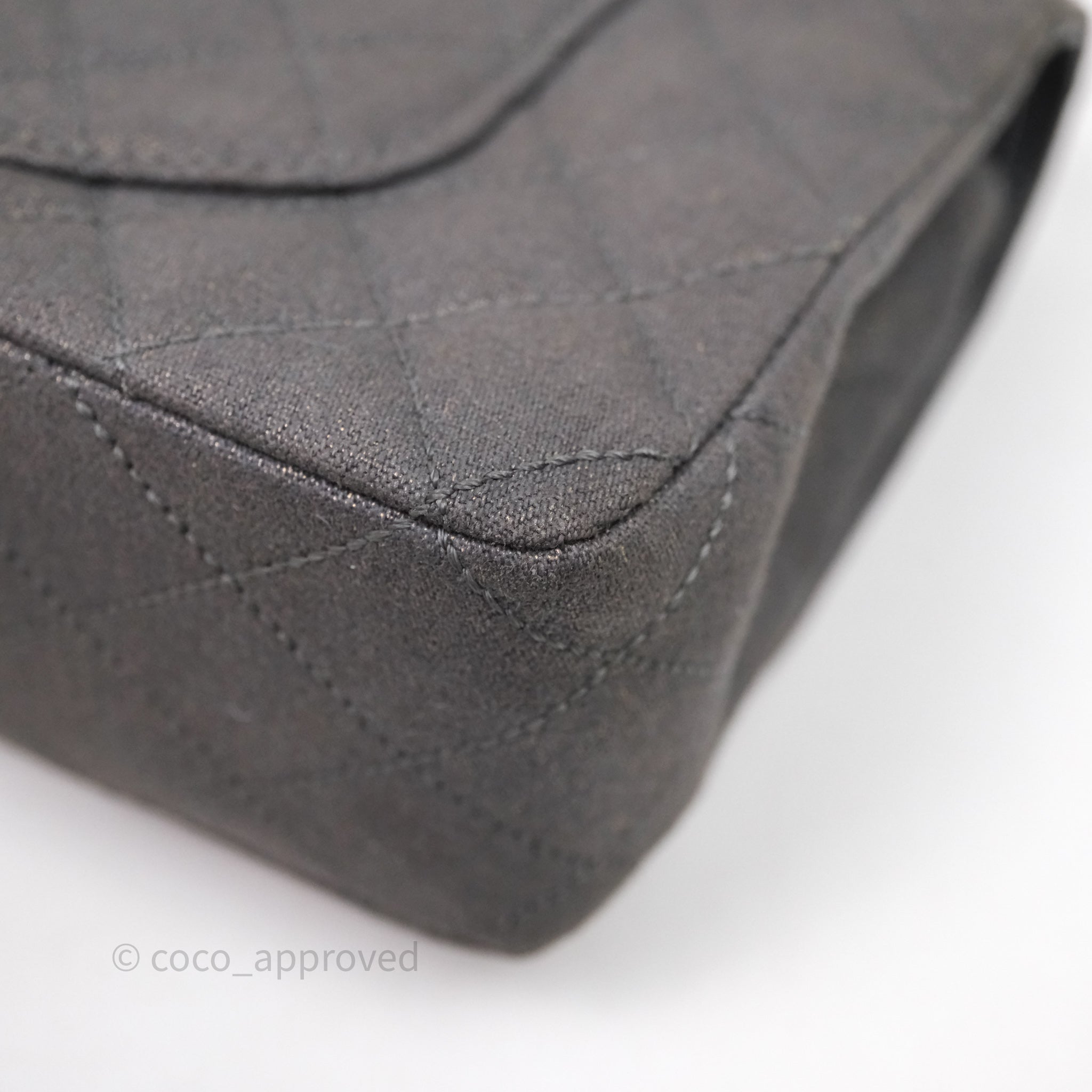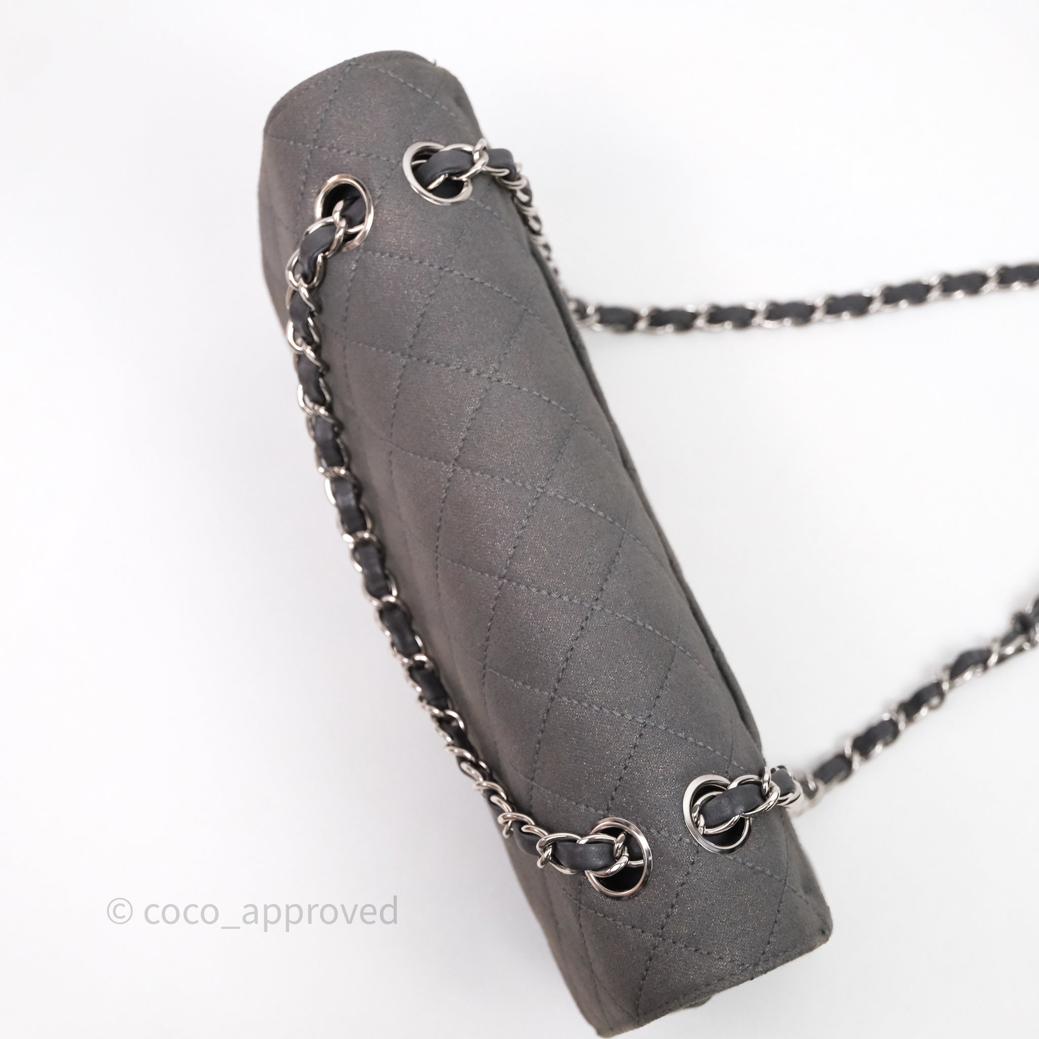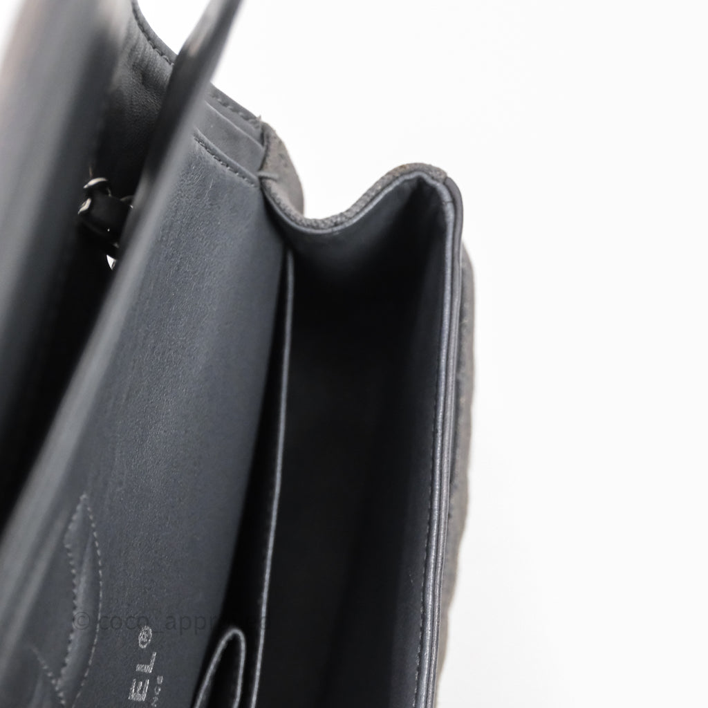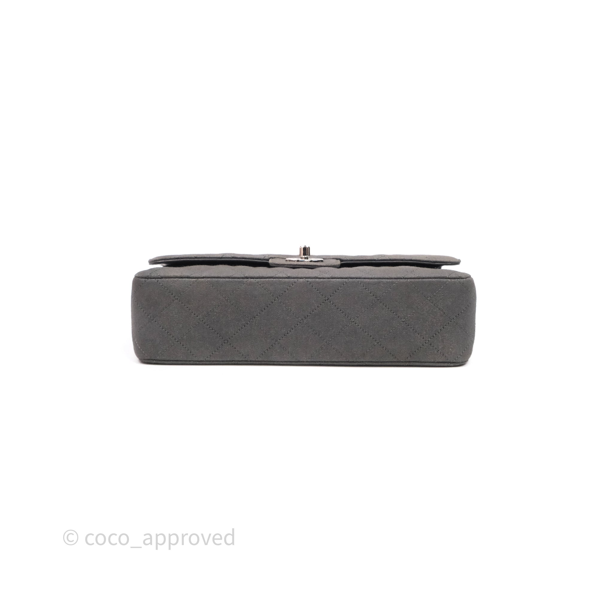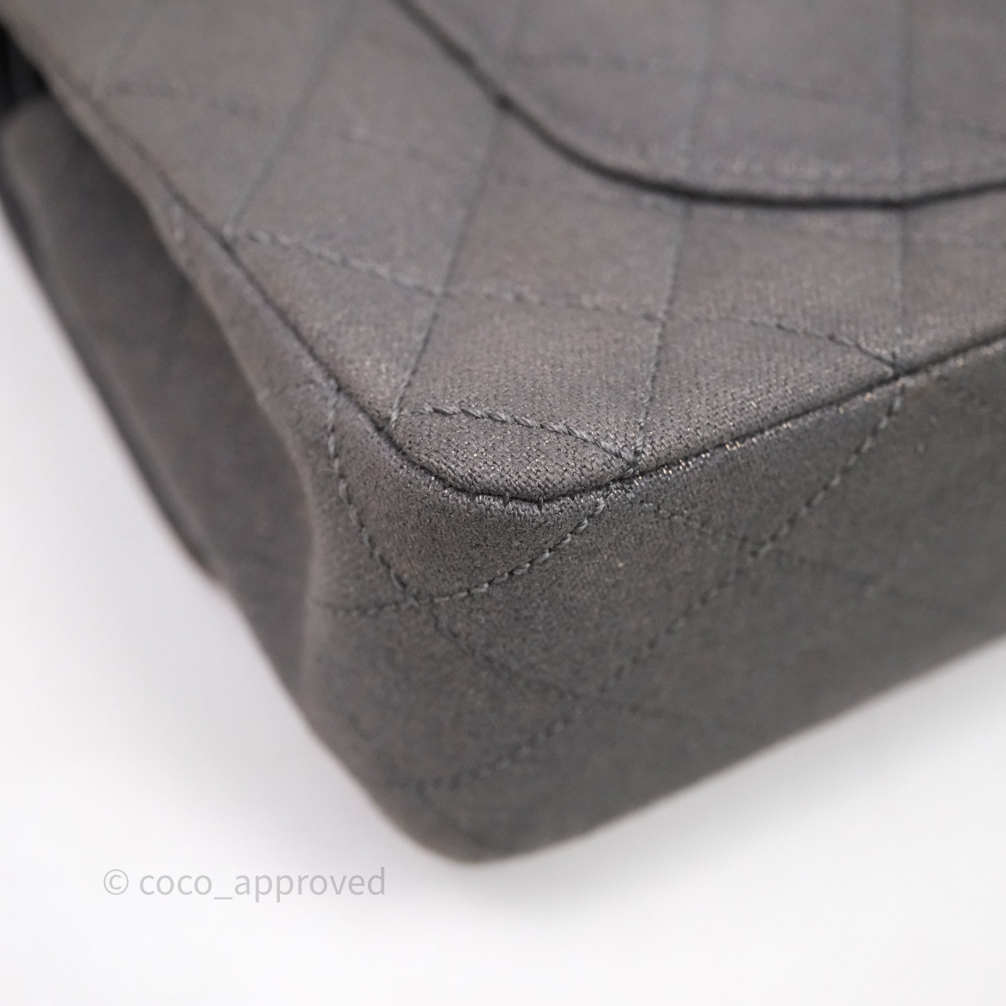 Chanel Classic M/L Medium Flap Quilted Iridescent Metallic Grey Canvas Silver Hardware