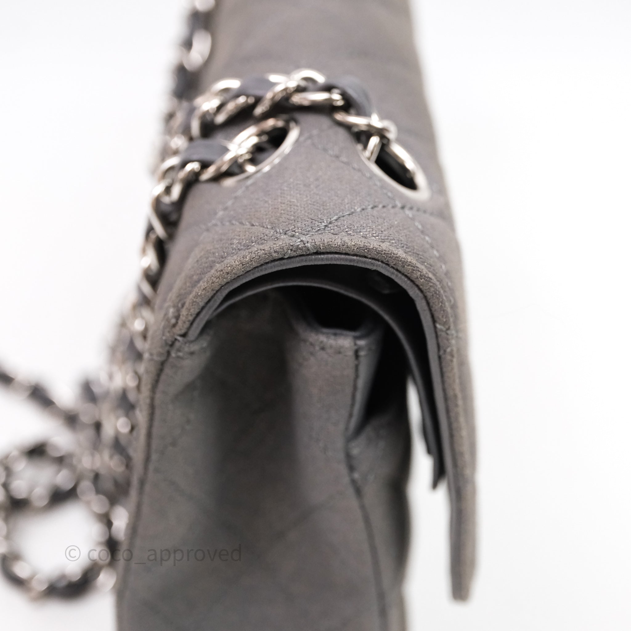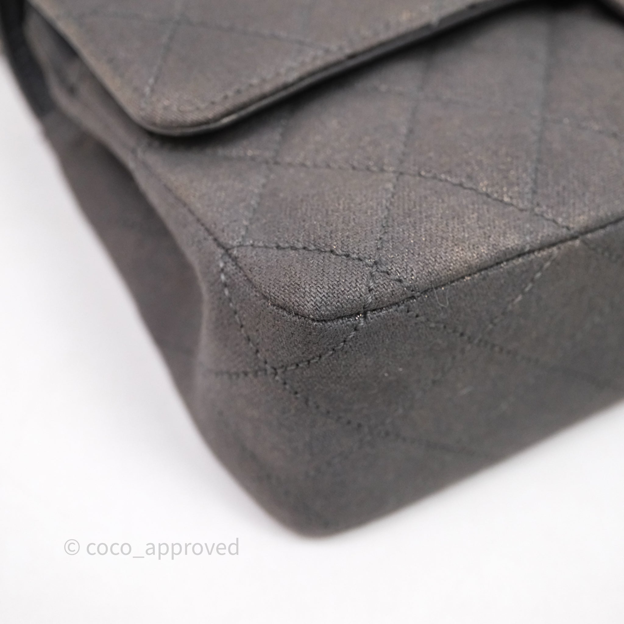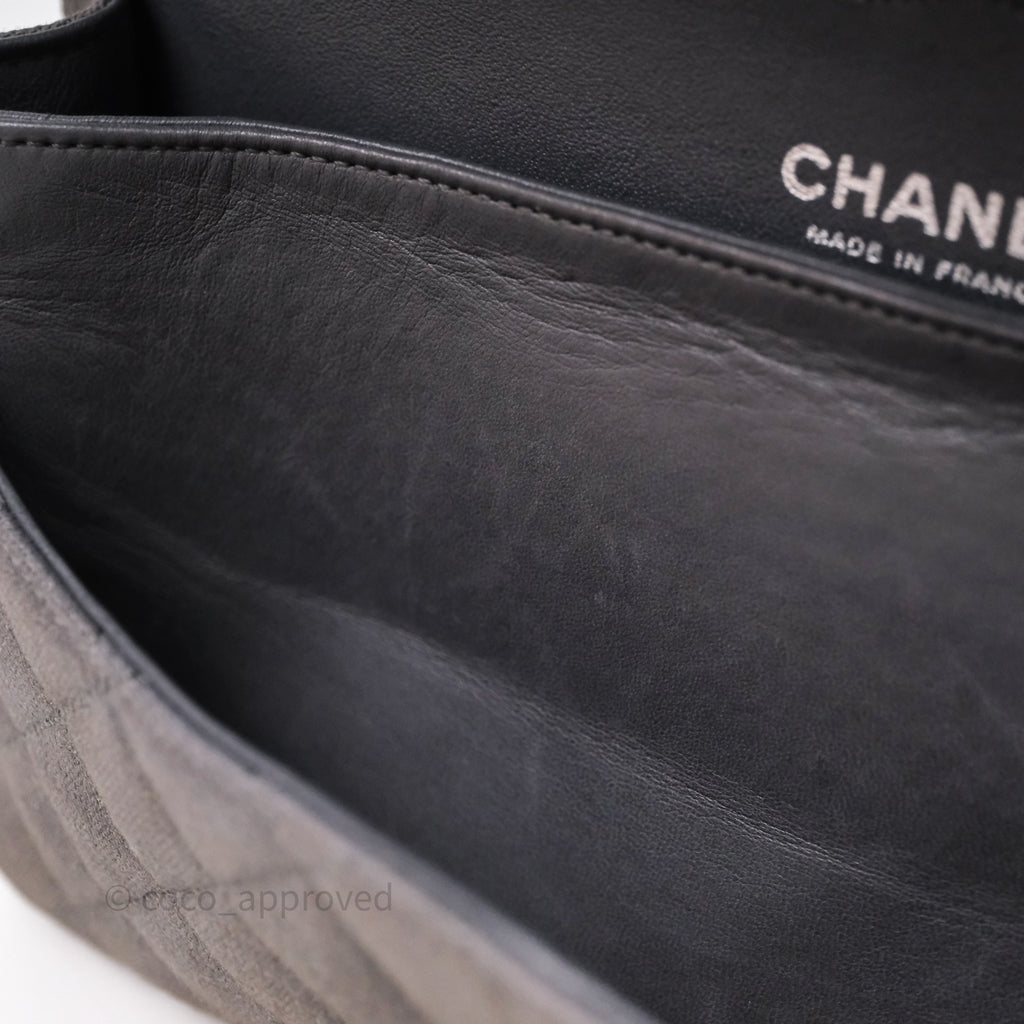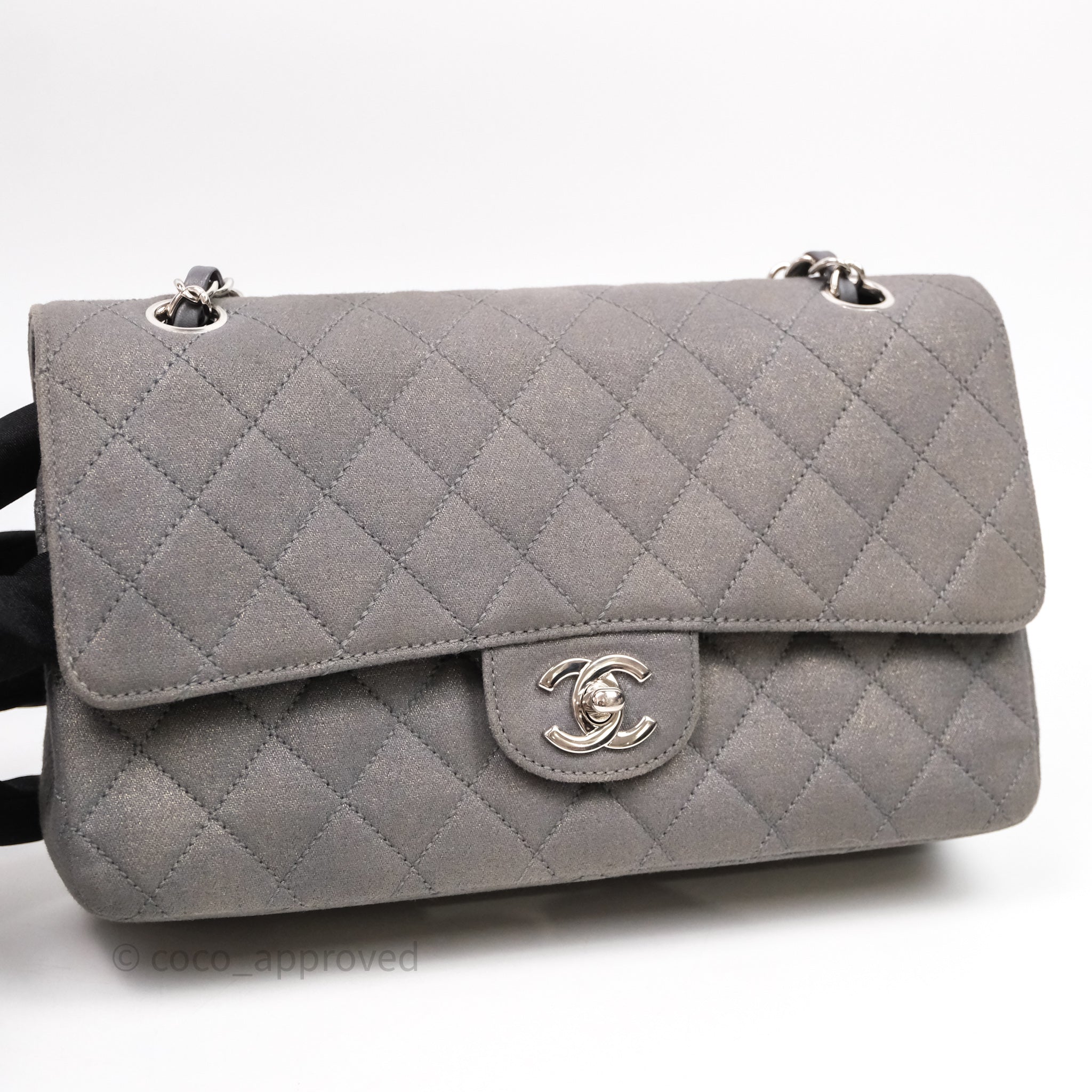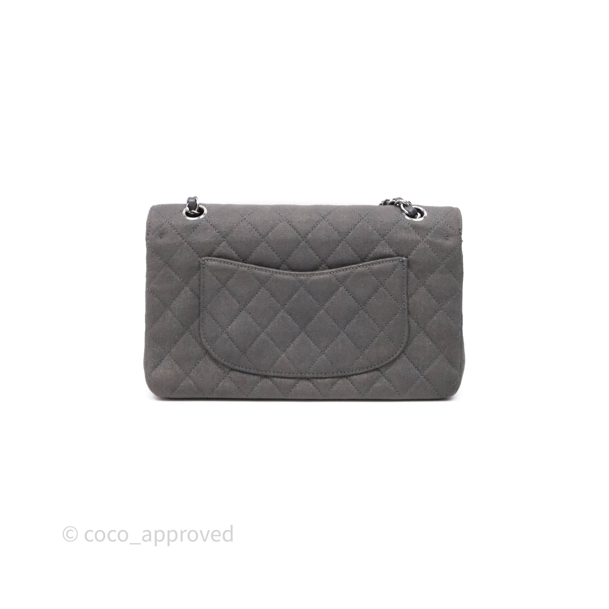 Chanel Classic M/L Medium Flap Quilted Iridescent Metallic Grey Canvas Silver Hardware