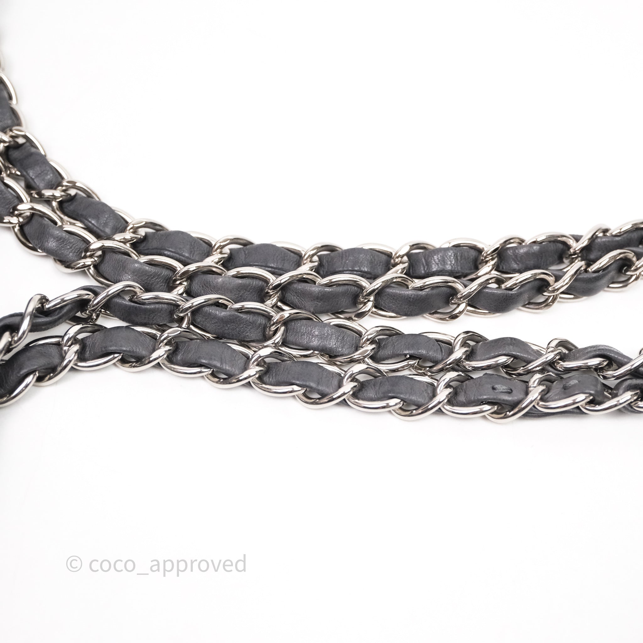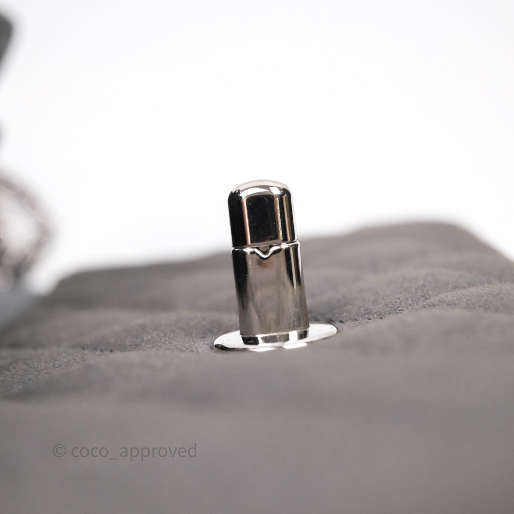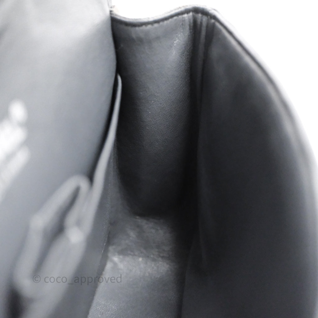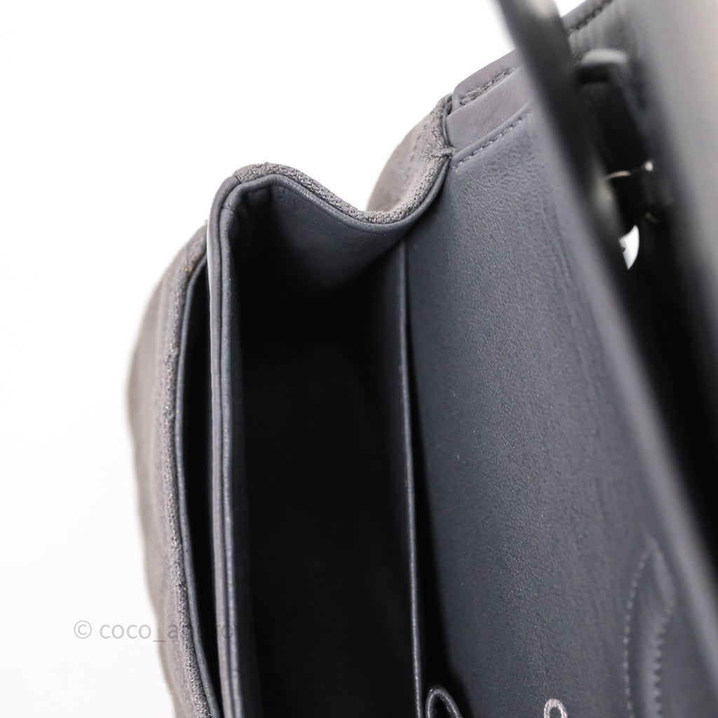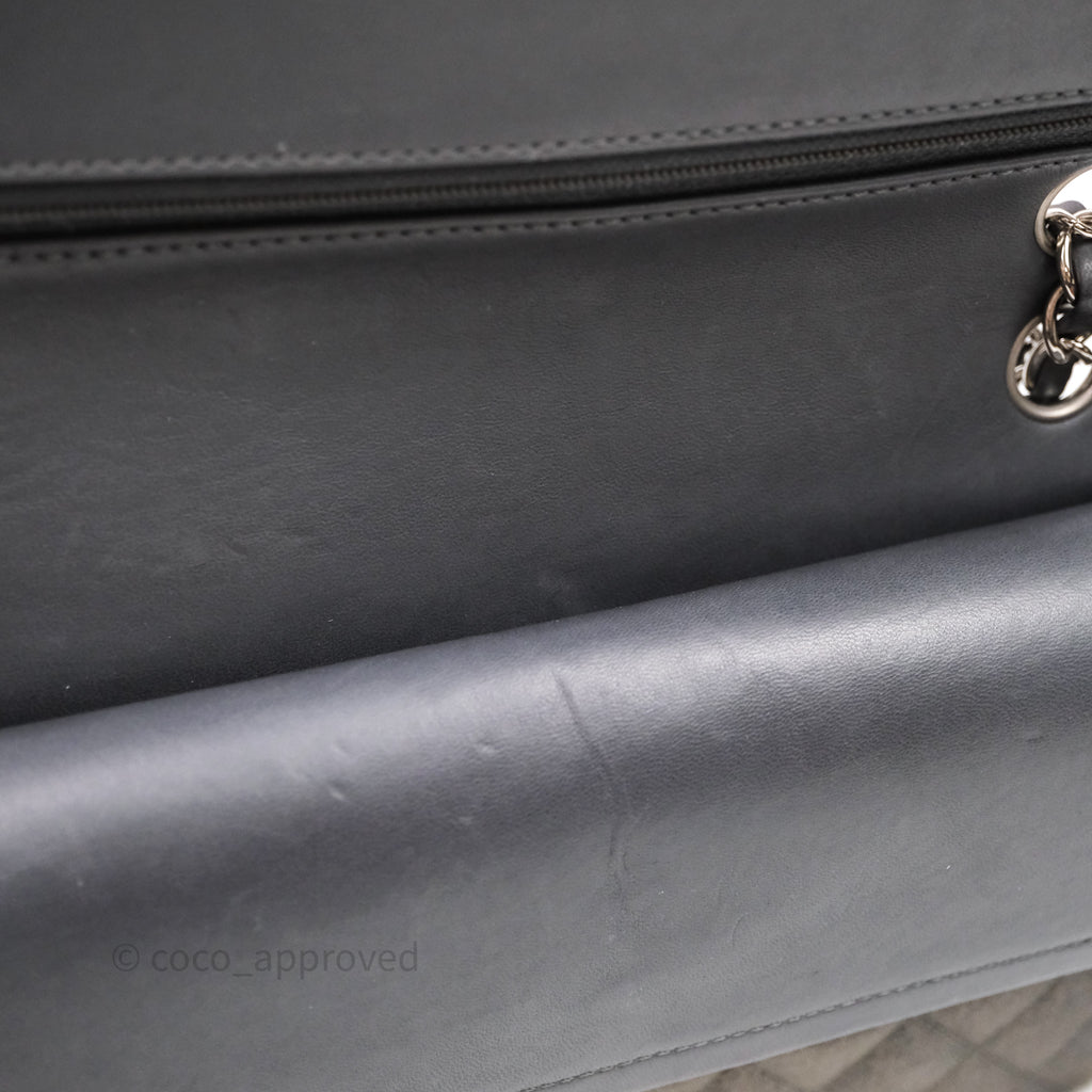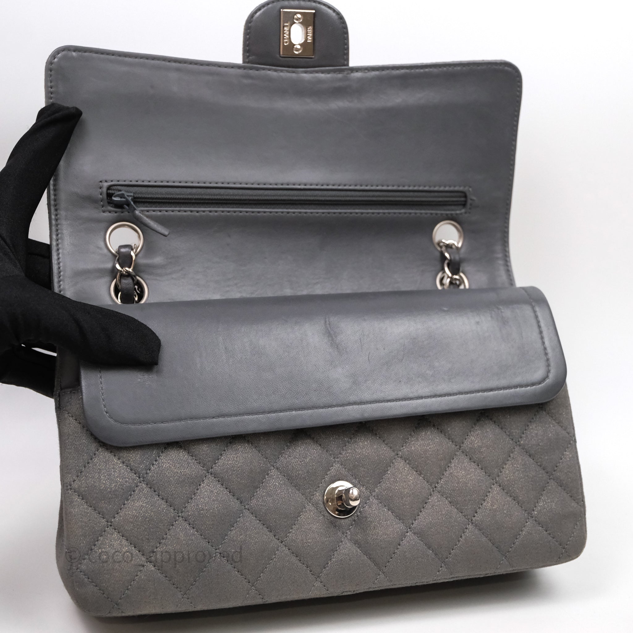 Chanel Classic M/L Medium Flap Quilted Iridescent Metallic Grey Canvas Silver Hardware