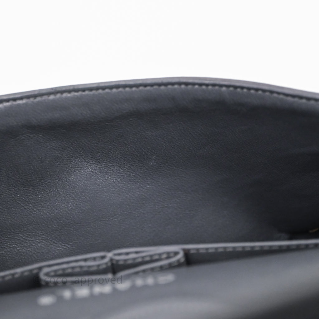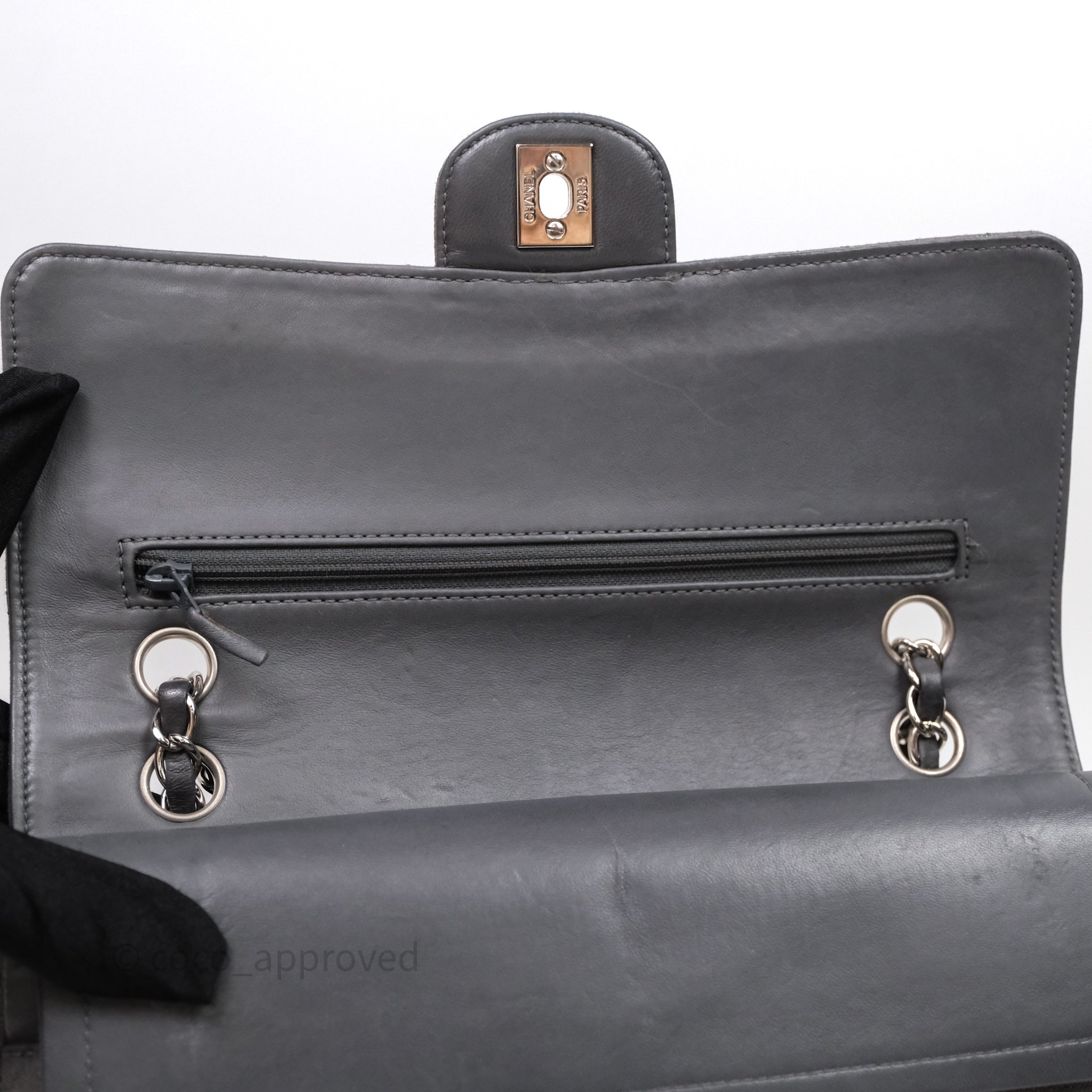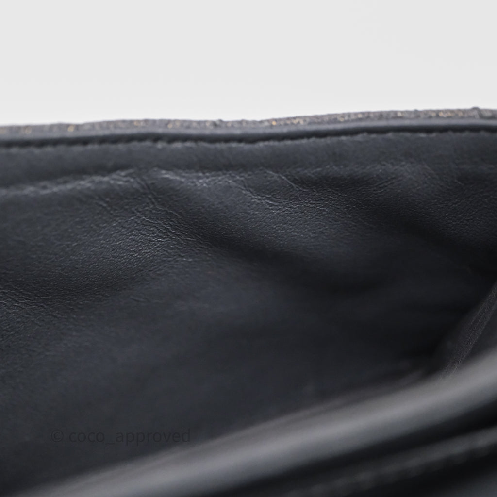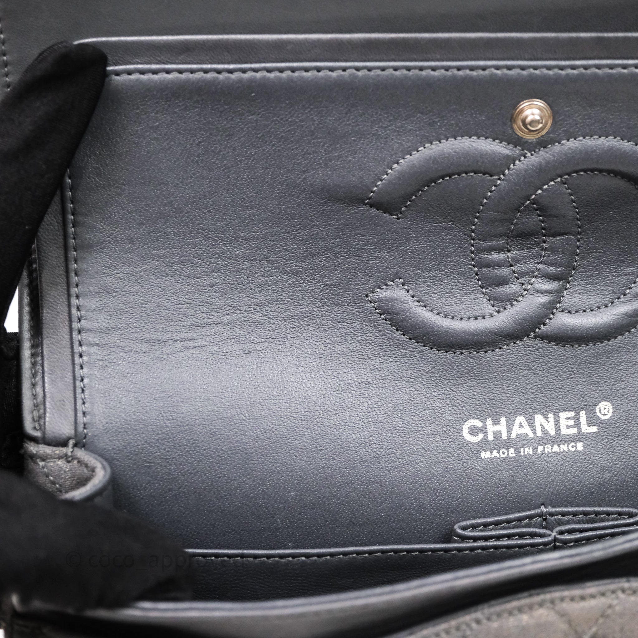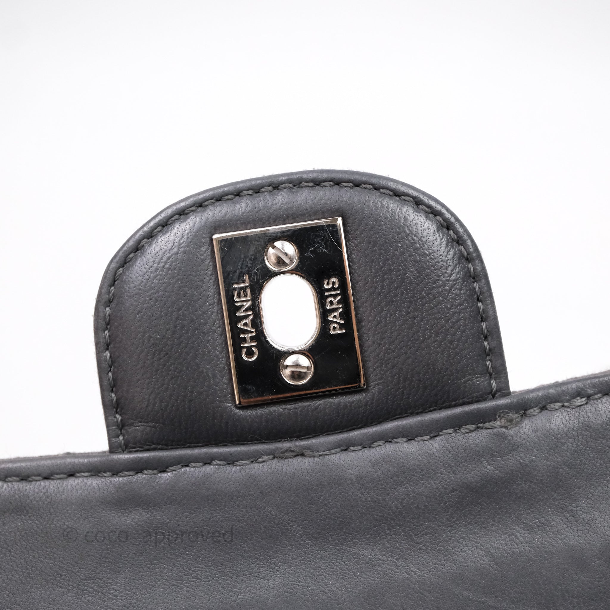 Chanel Classic M/L Medium Flap Quilted Iridescent Metallic Grey Canvas Silver Hardware