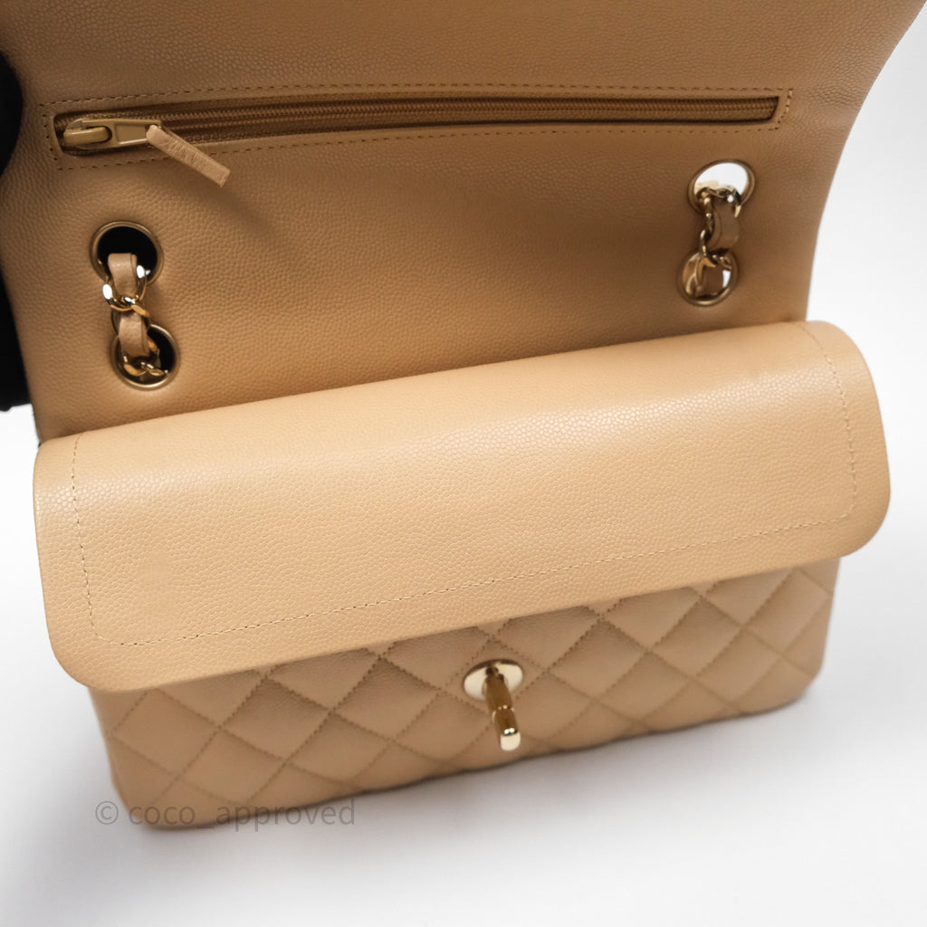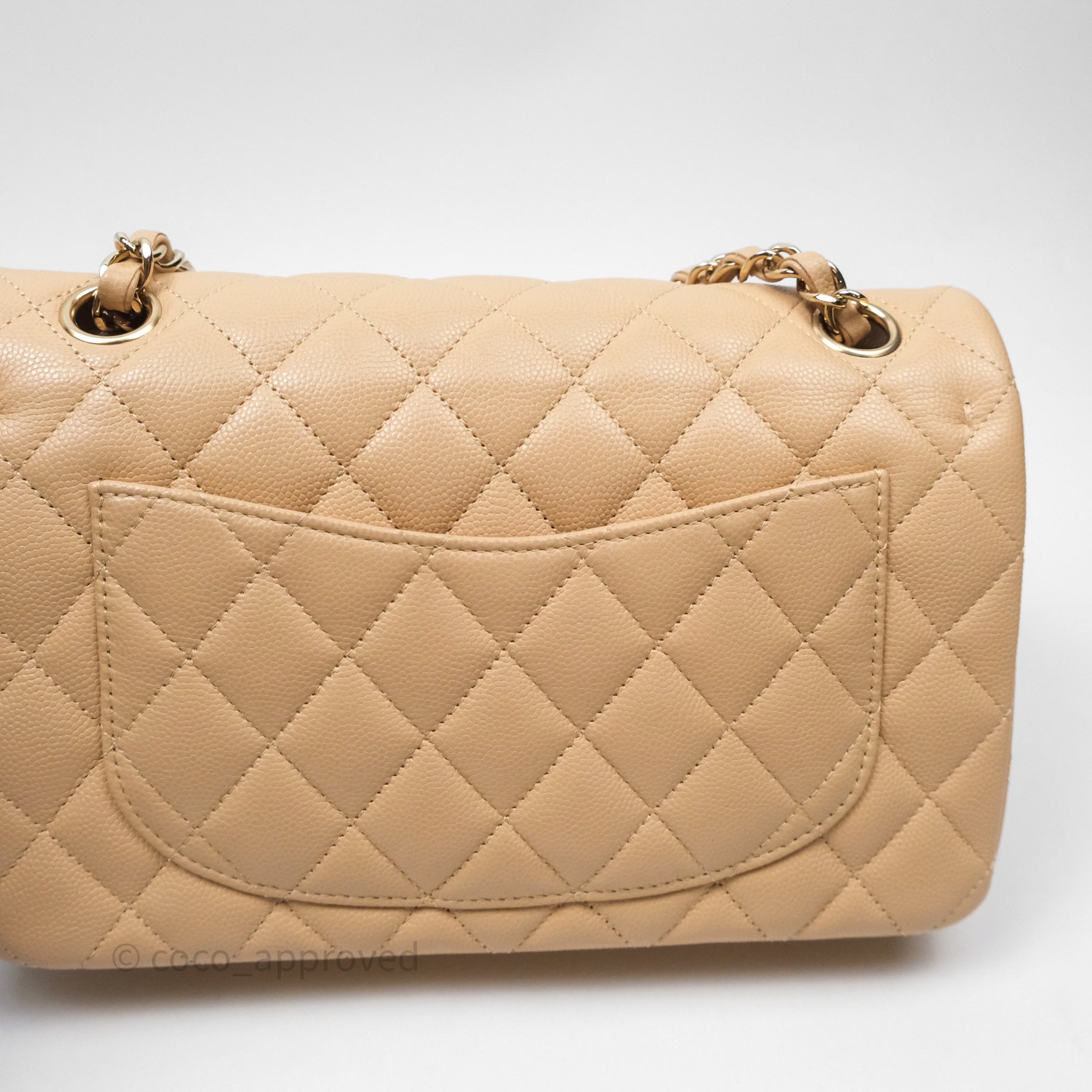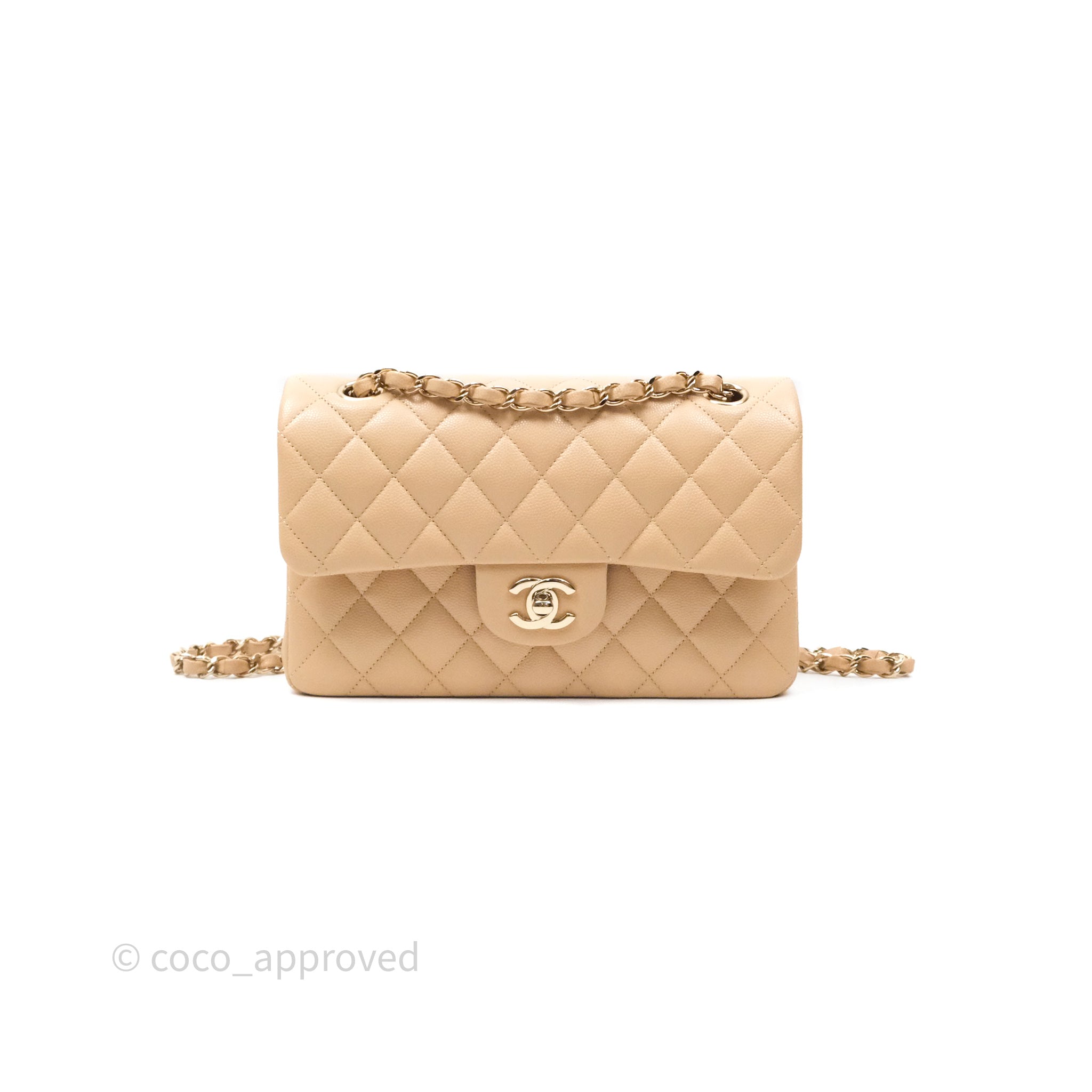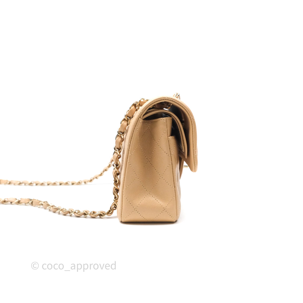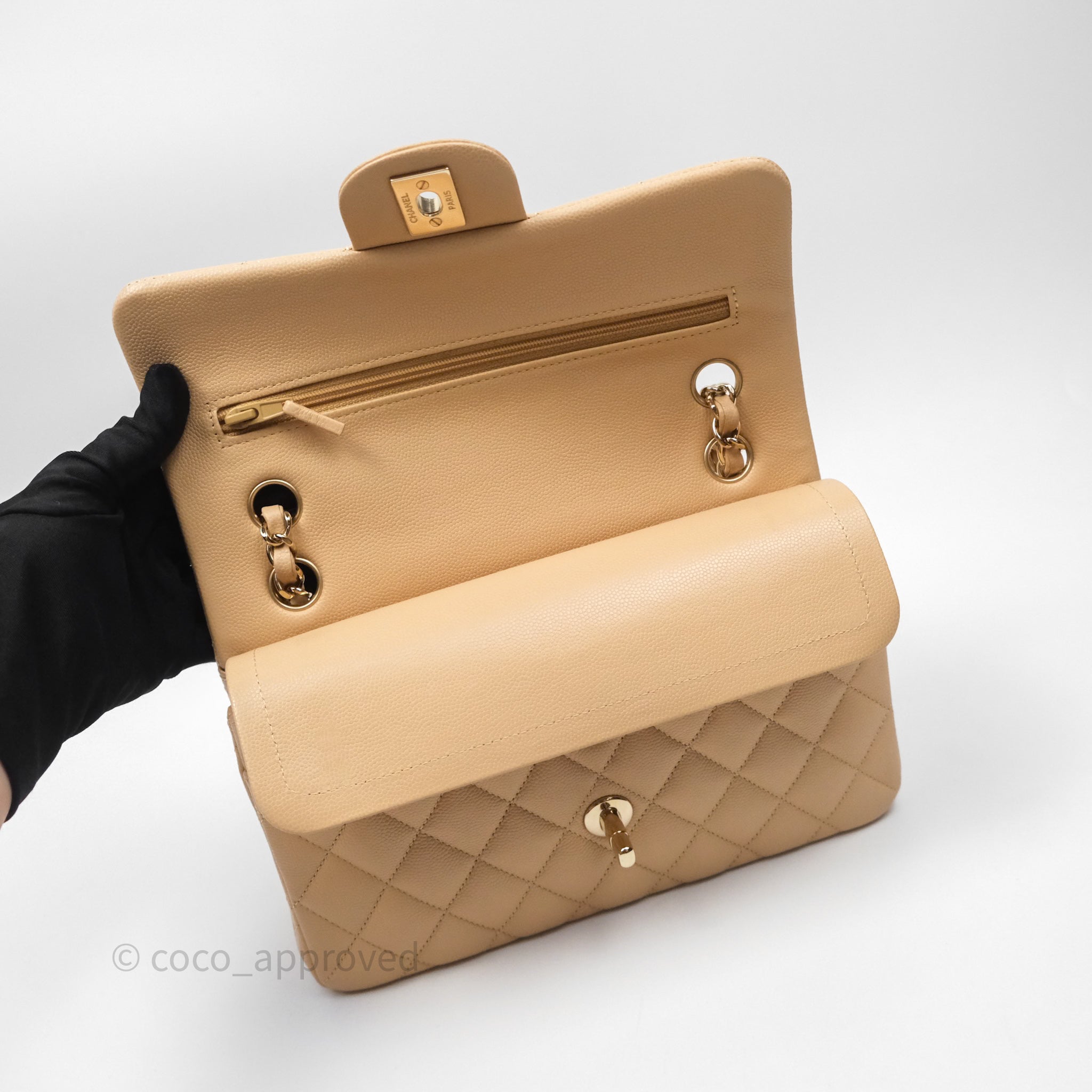 Chanel Classic Small S/M Quilted Flap Beige Caviar Gold Hardware