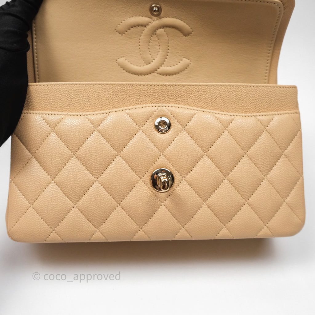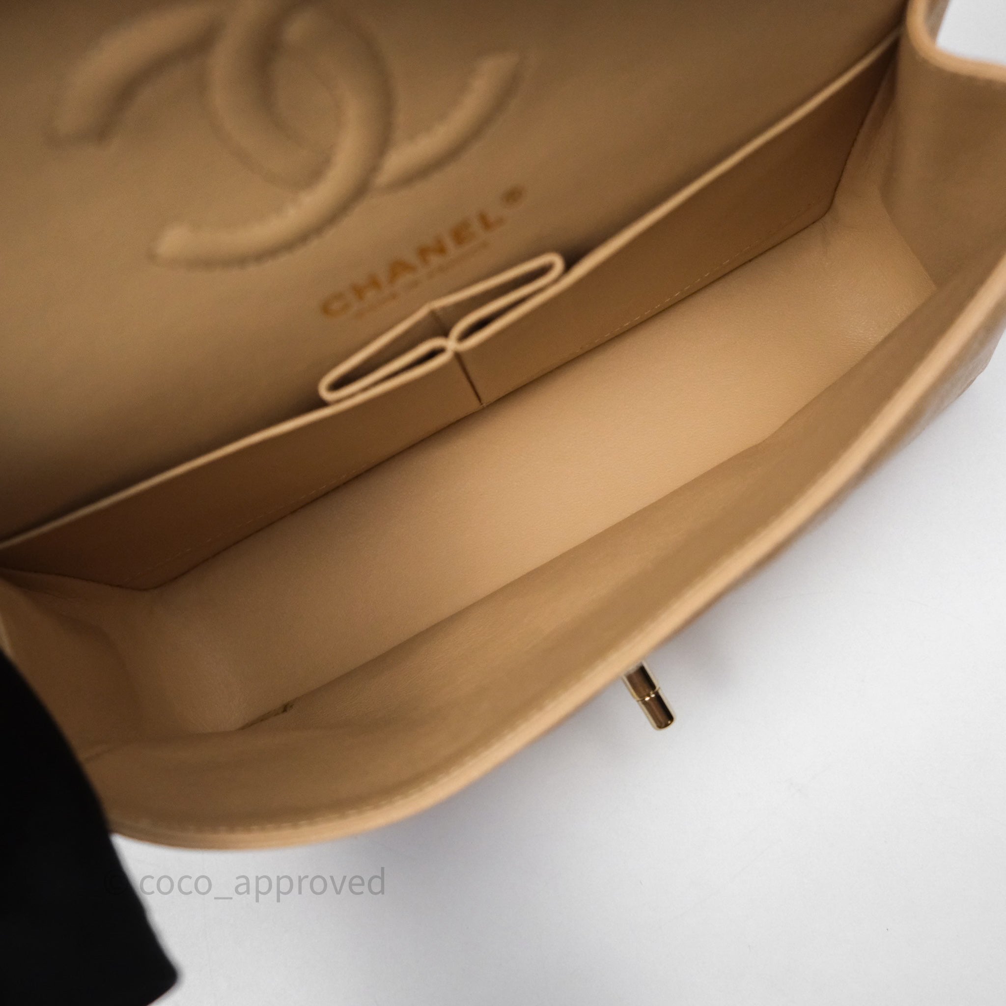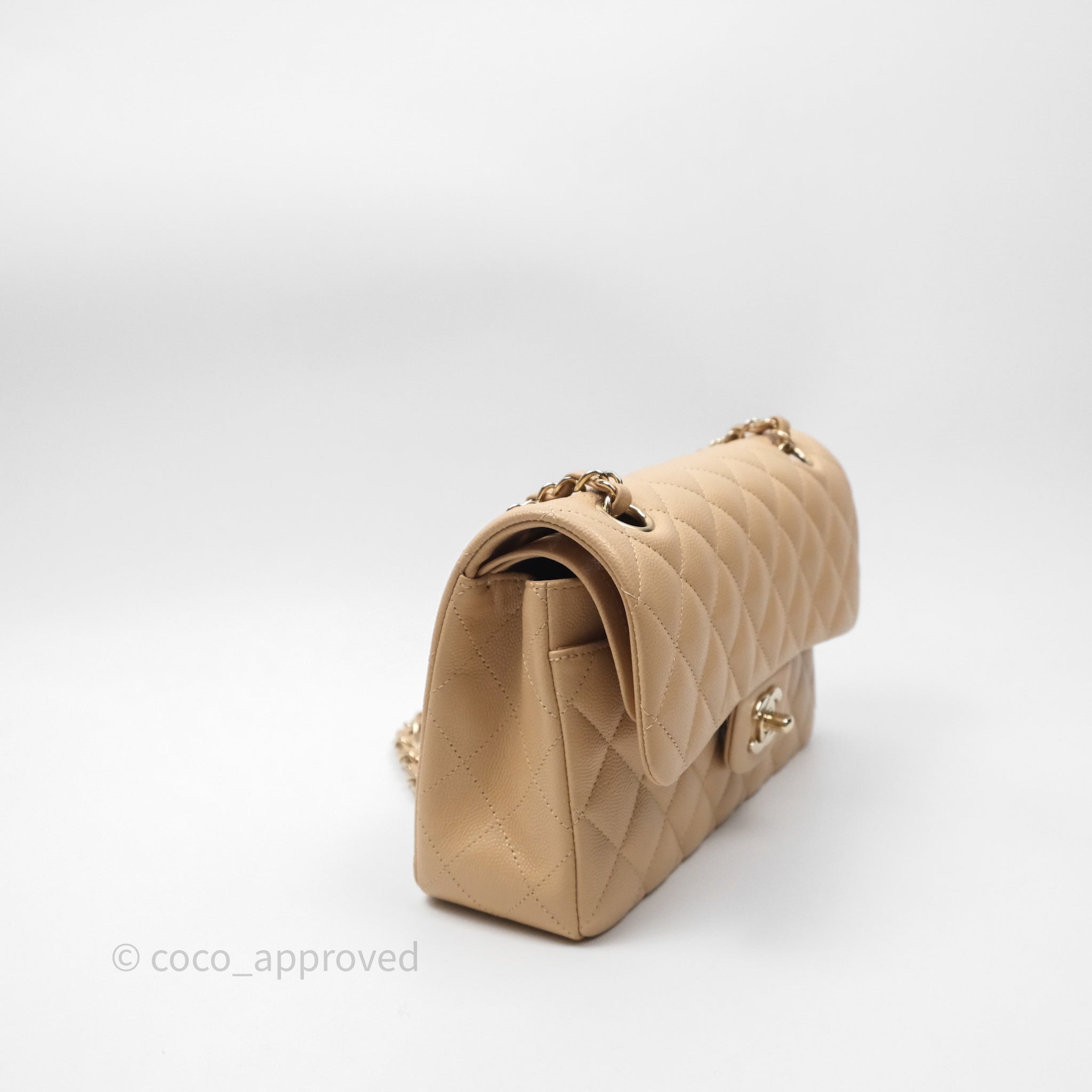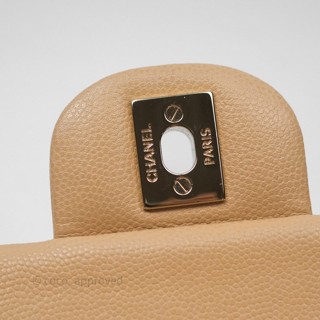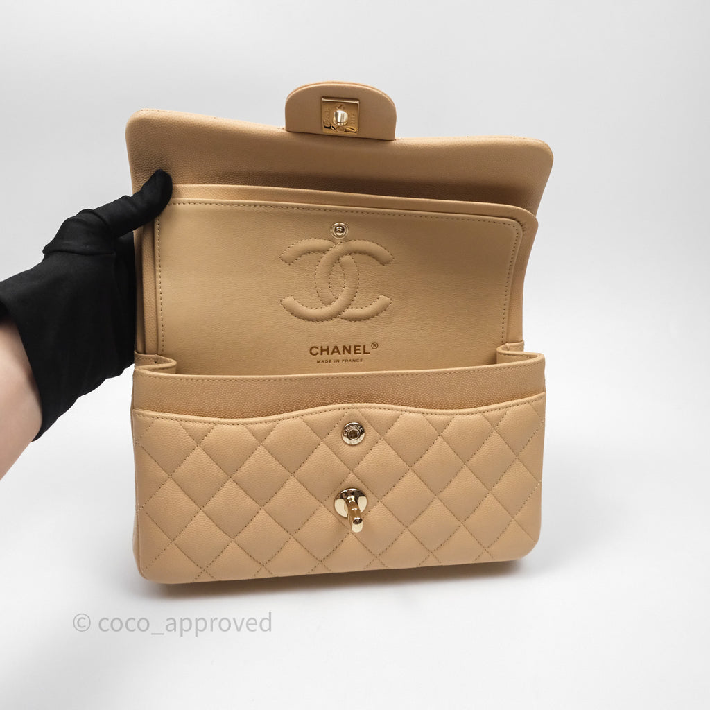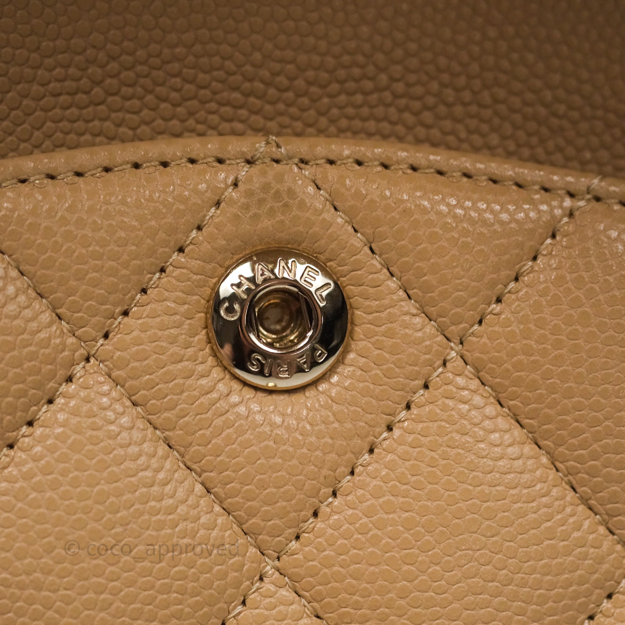 Chanel Classic Small S/M Quilted Flap Beige Caviar Gold Hardware