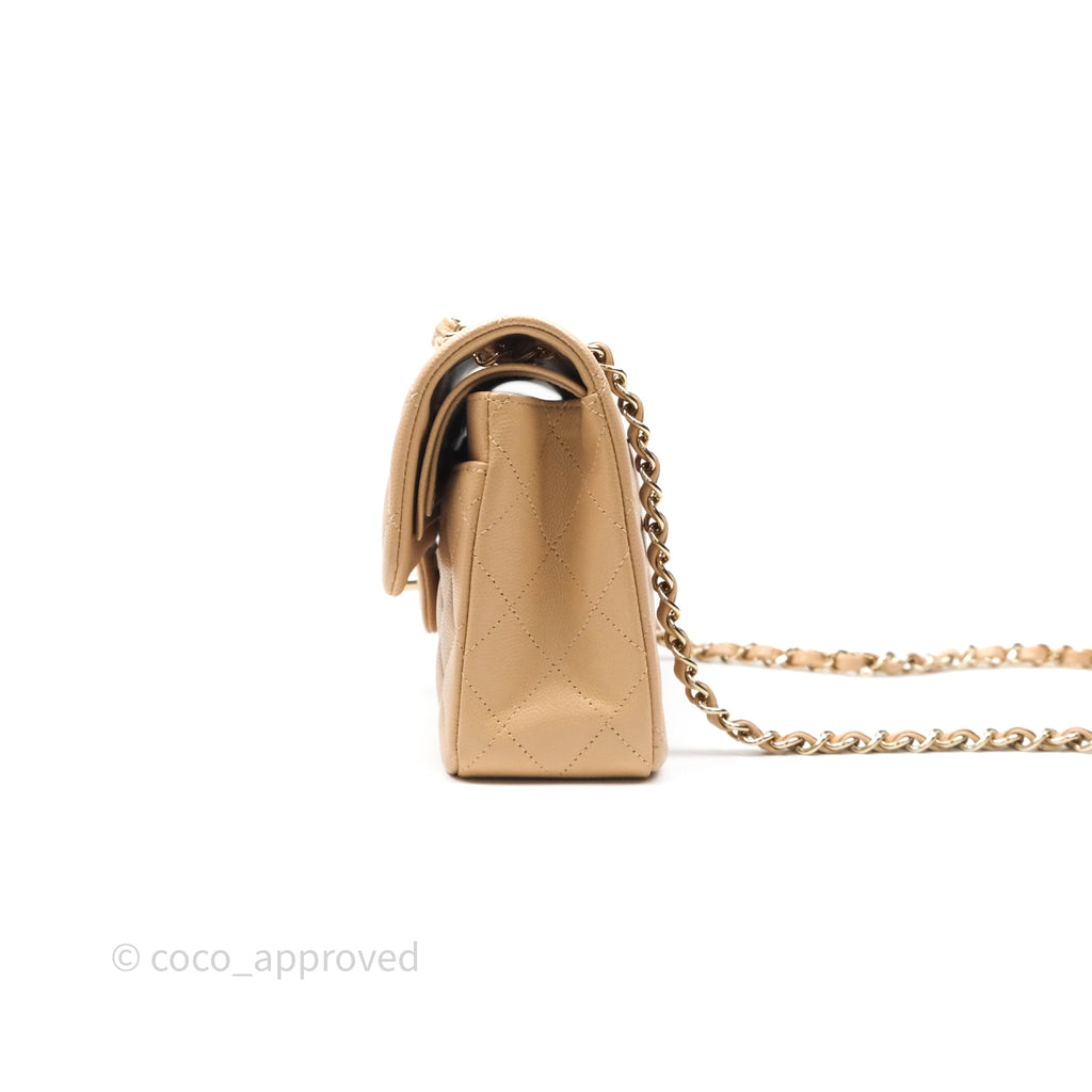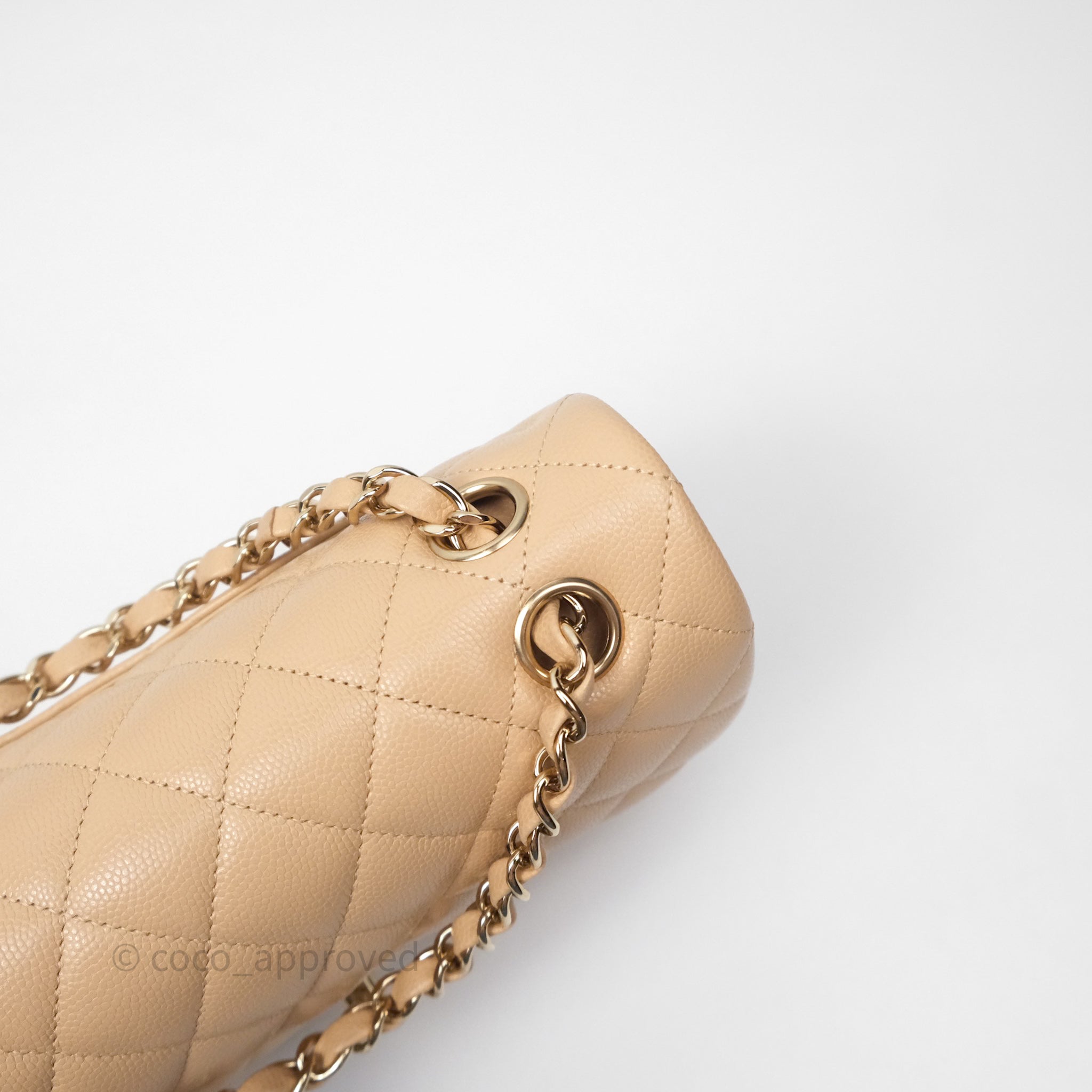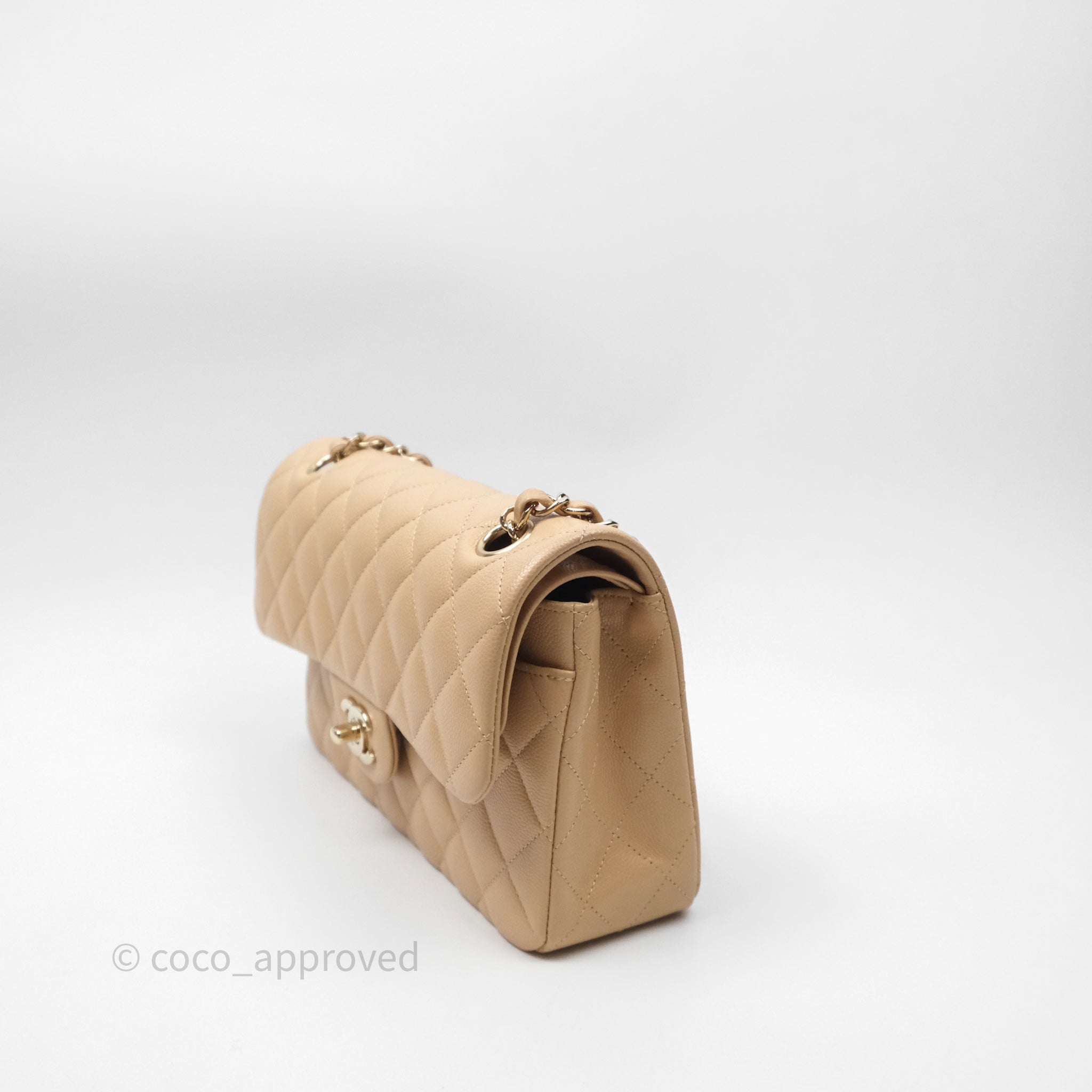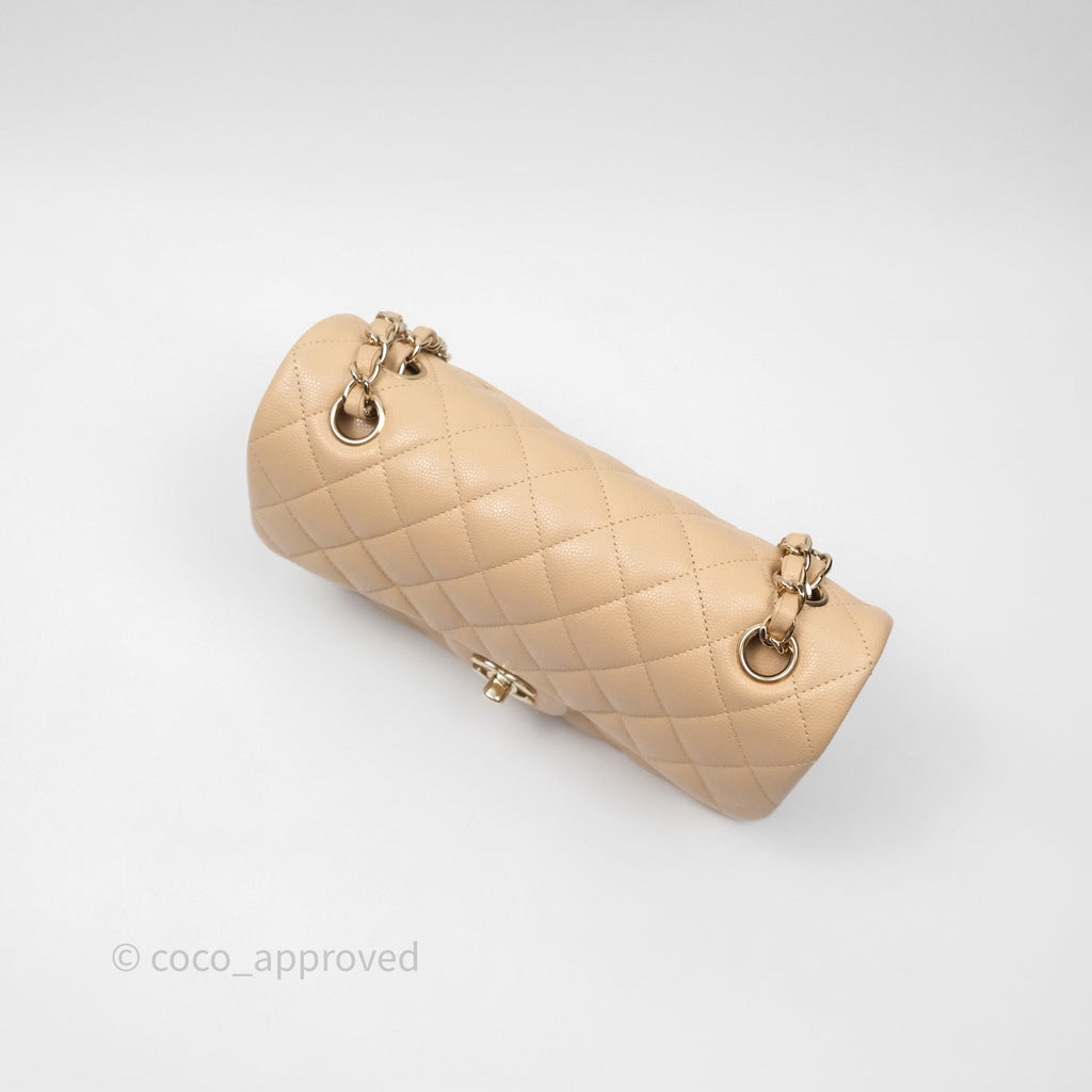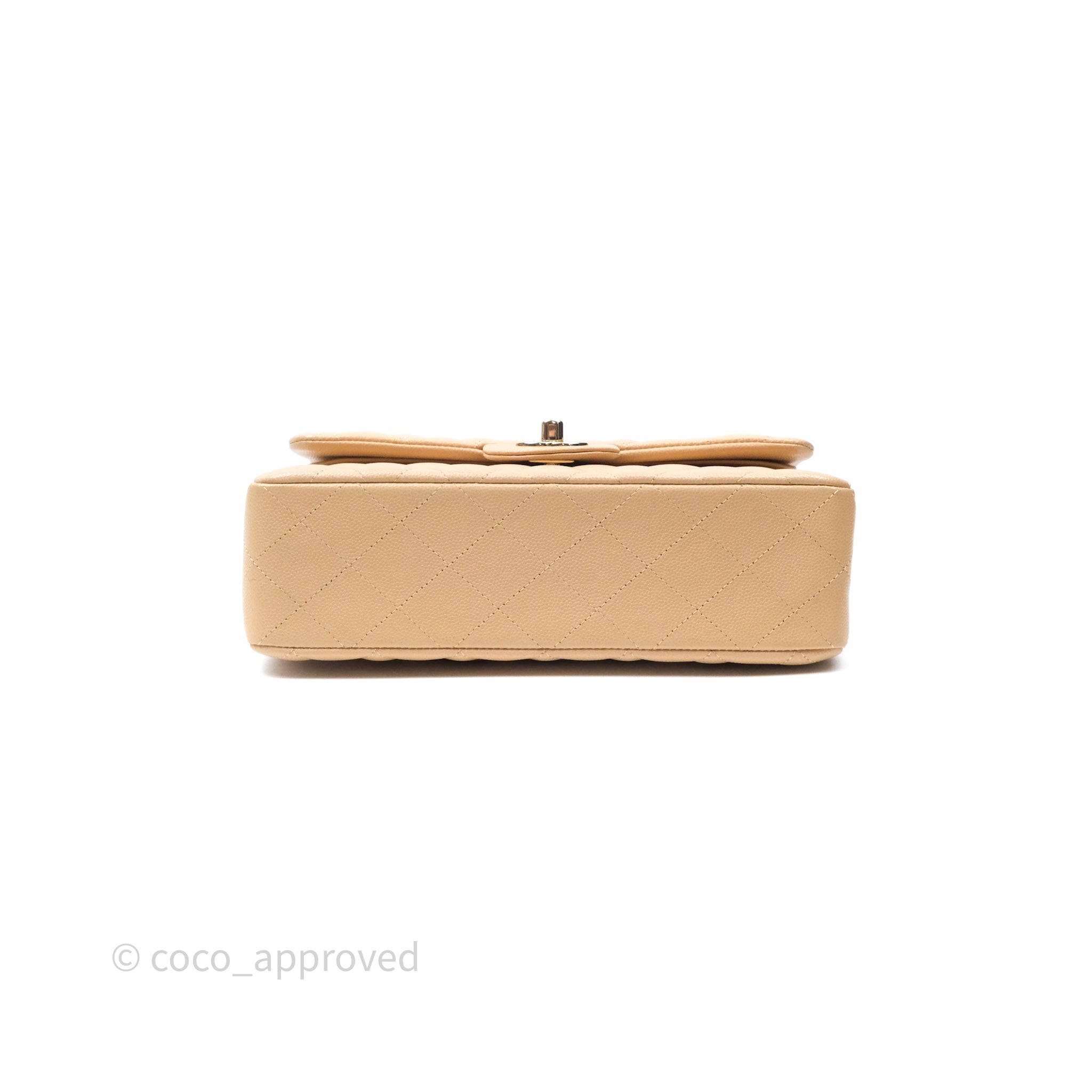 Chanel Classic Small S/M Quilted Flap Beige Caviar Gold Hardware