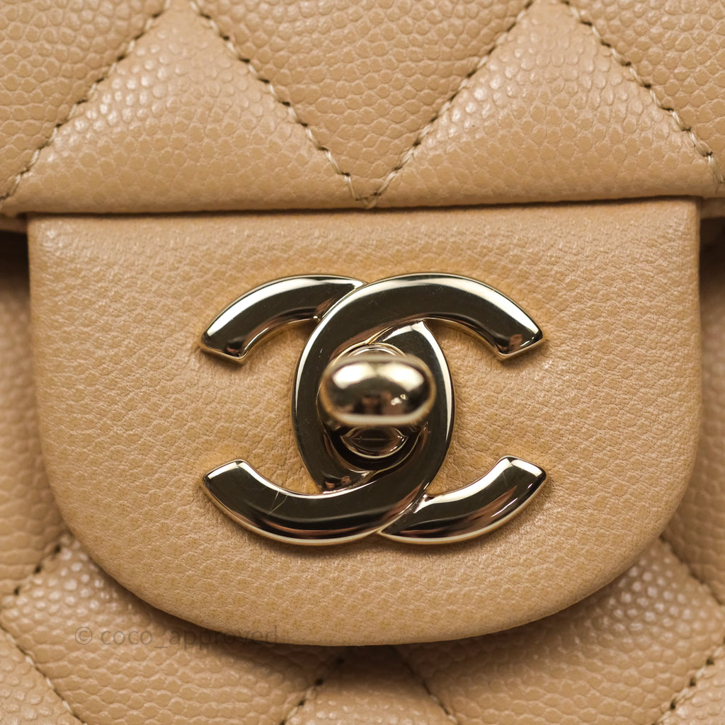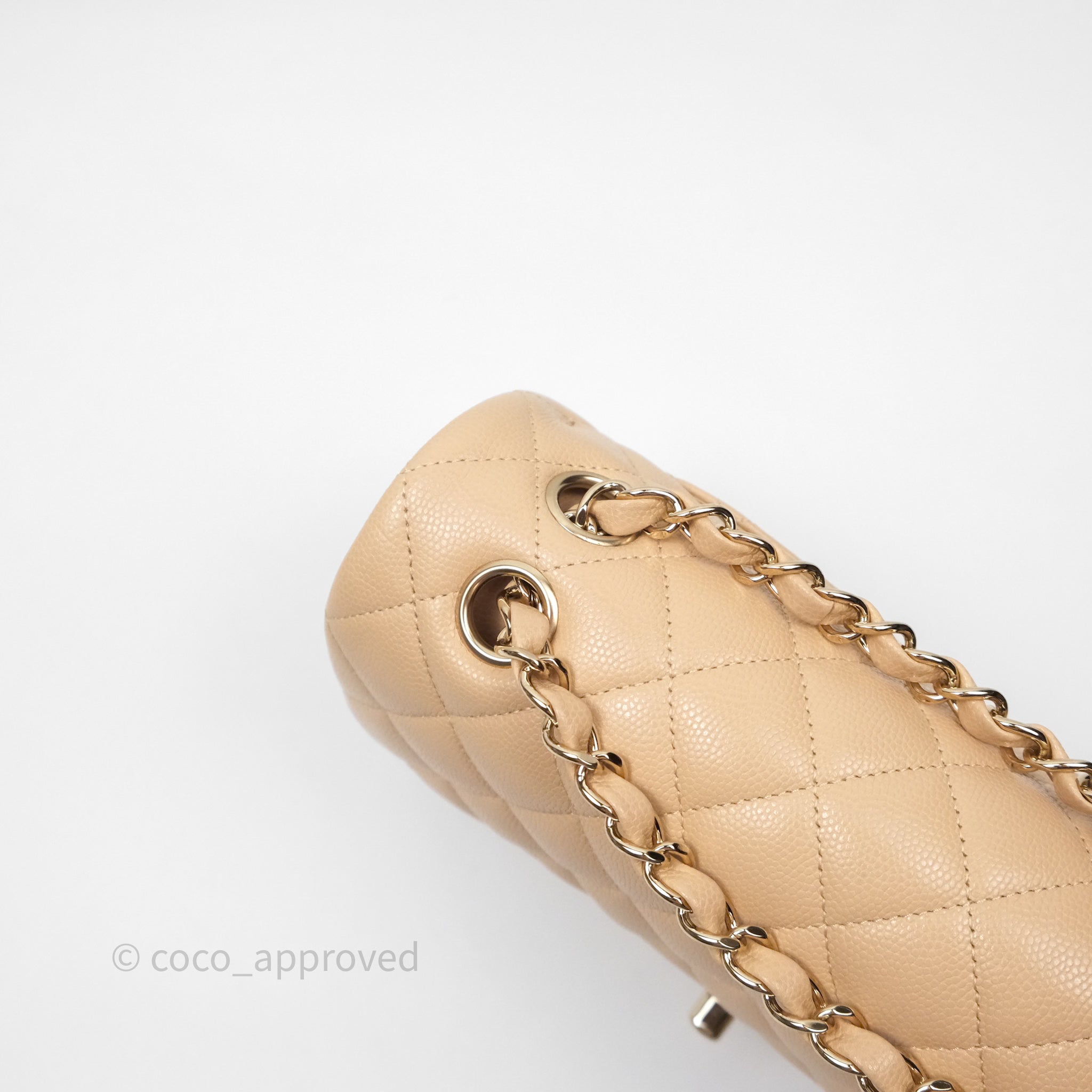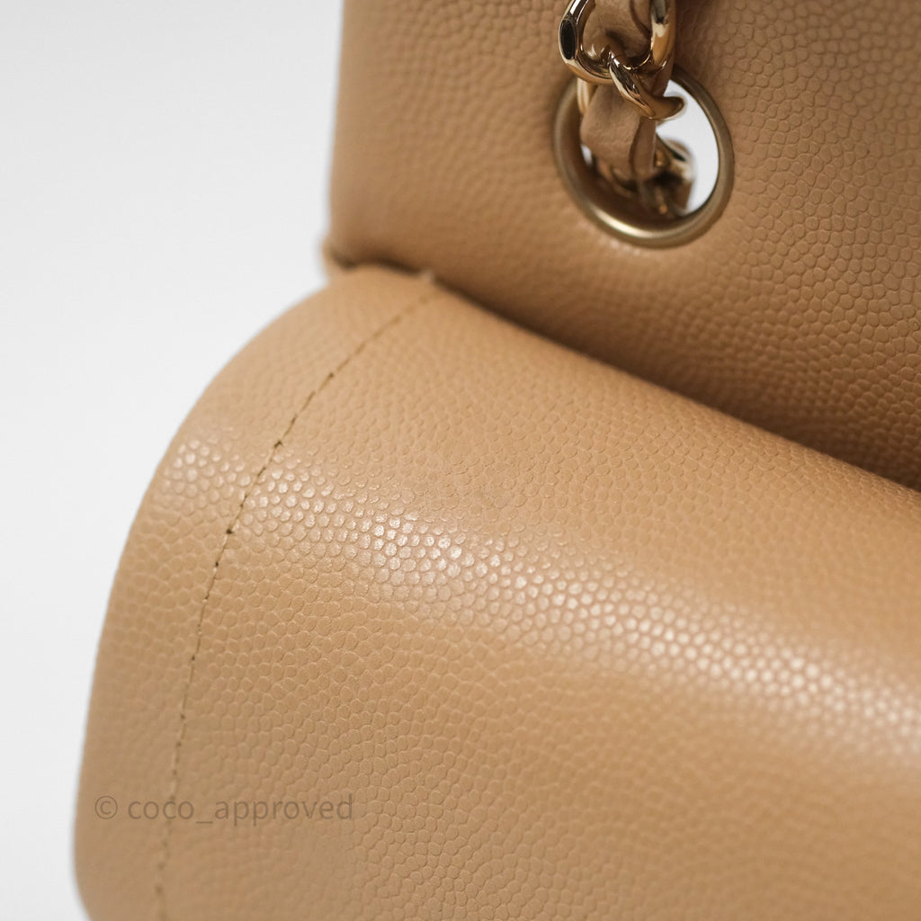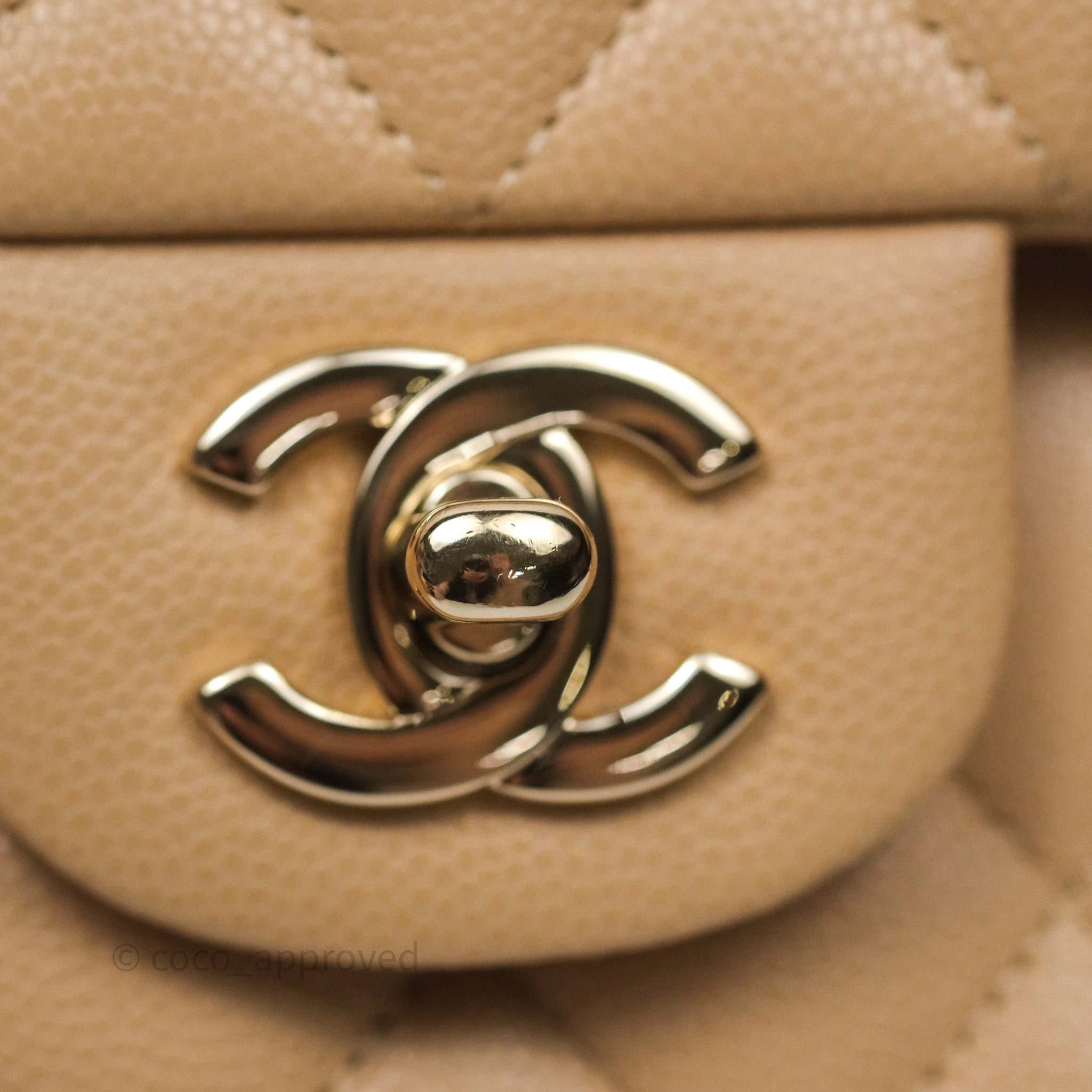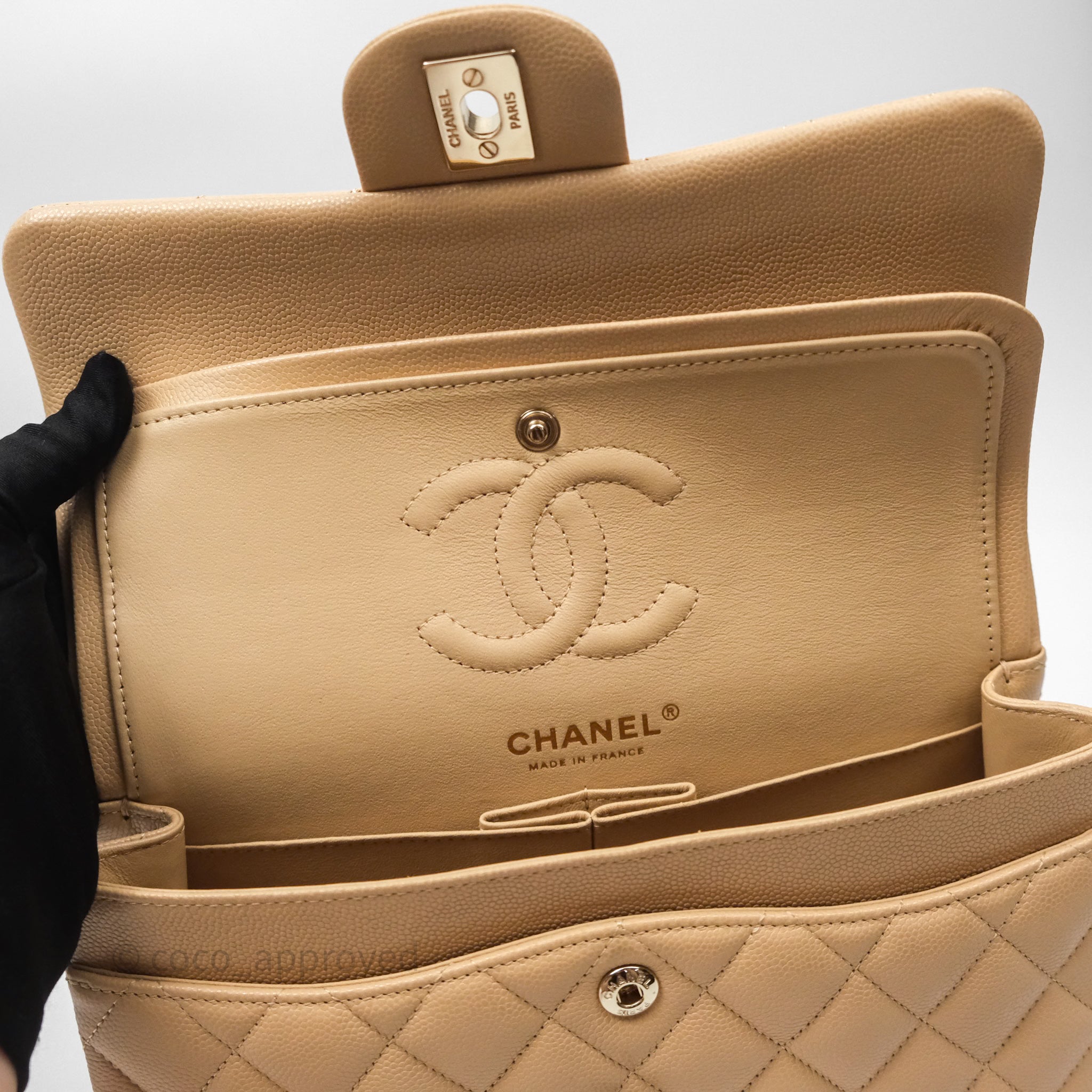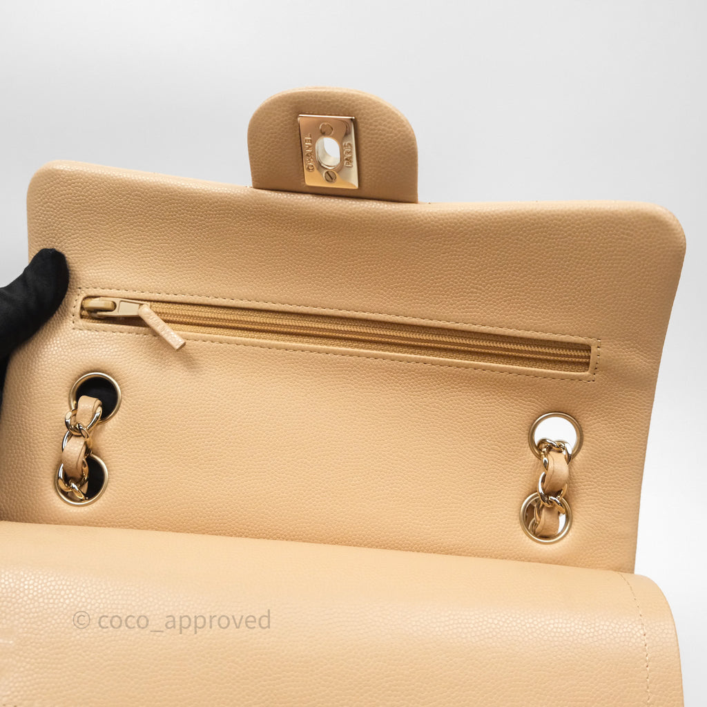 Chanel Classic Small S/M Quilted Flap Beige Caviar Gold Hardware