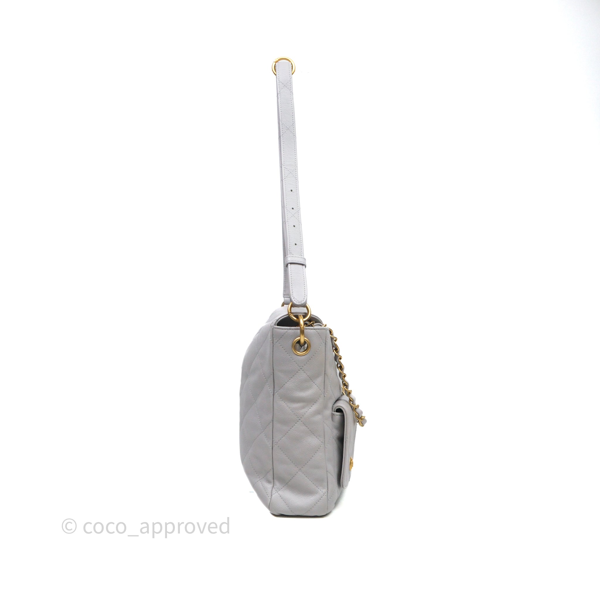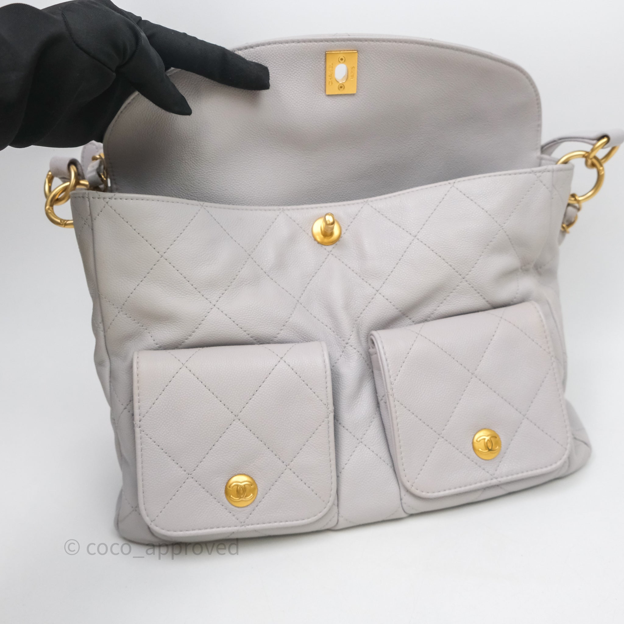 Chanel Double Pocket Hobo Bag Grey Caviar Aged Gold Hardware