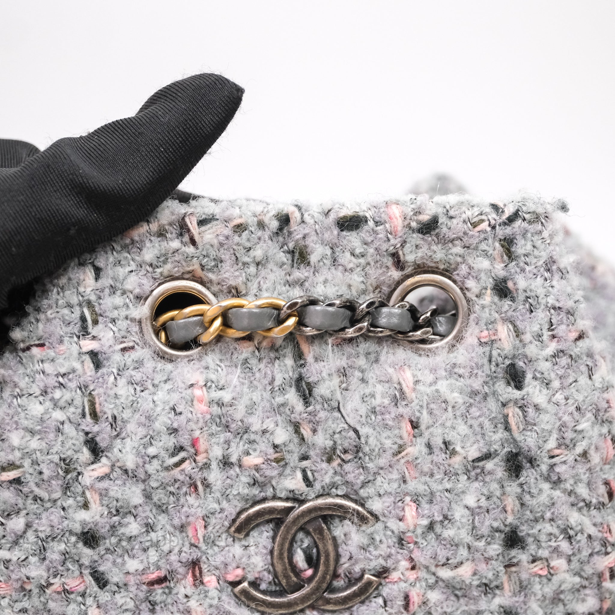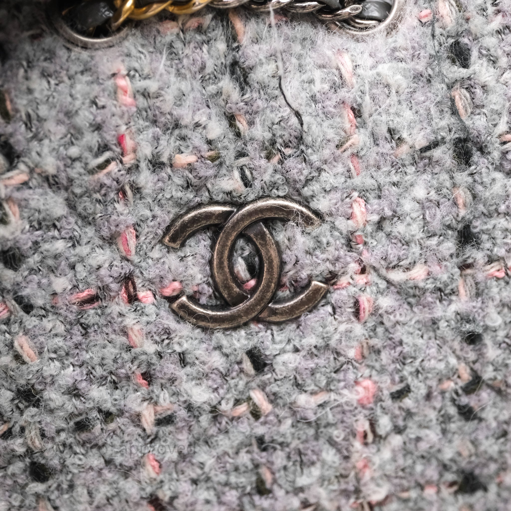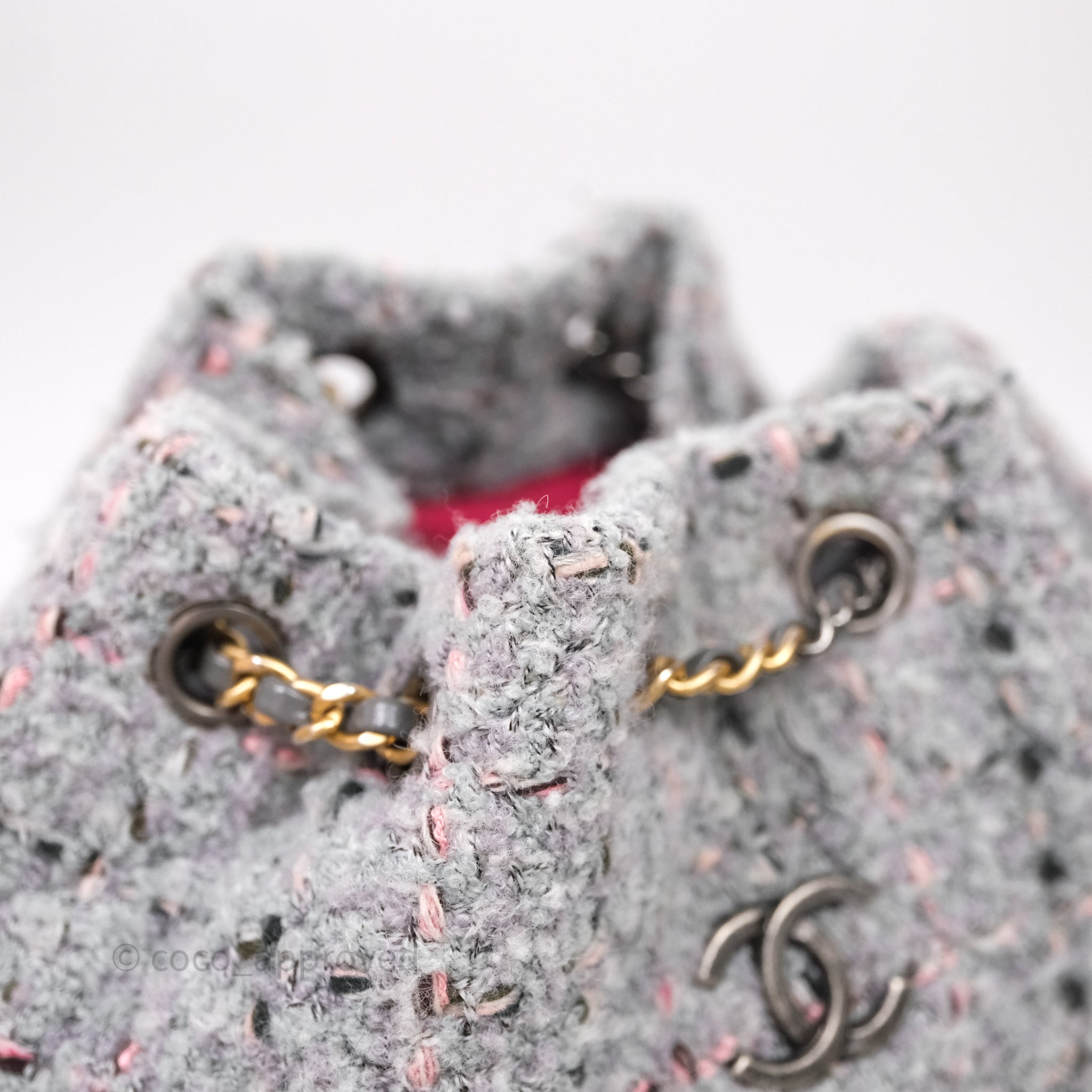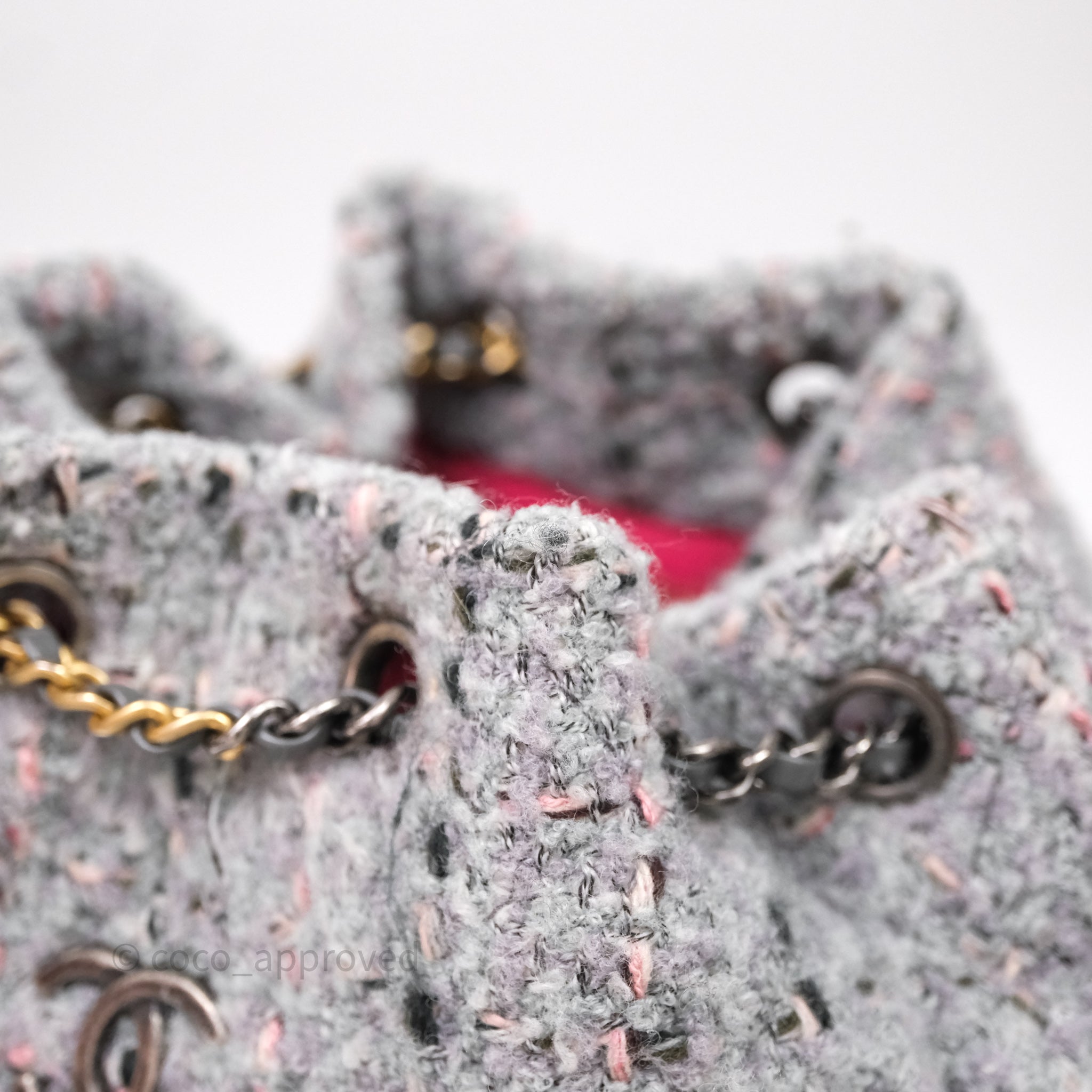 Chanel Gabrielle Small Backpack Grey Tweed Aged Calfskin
