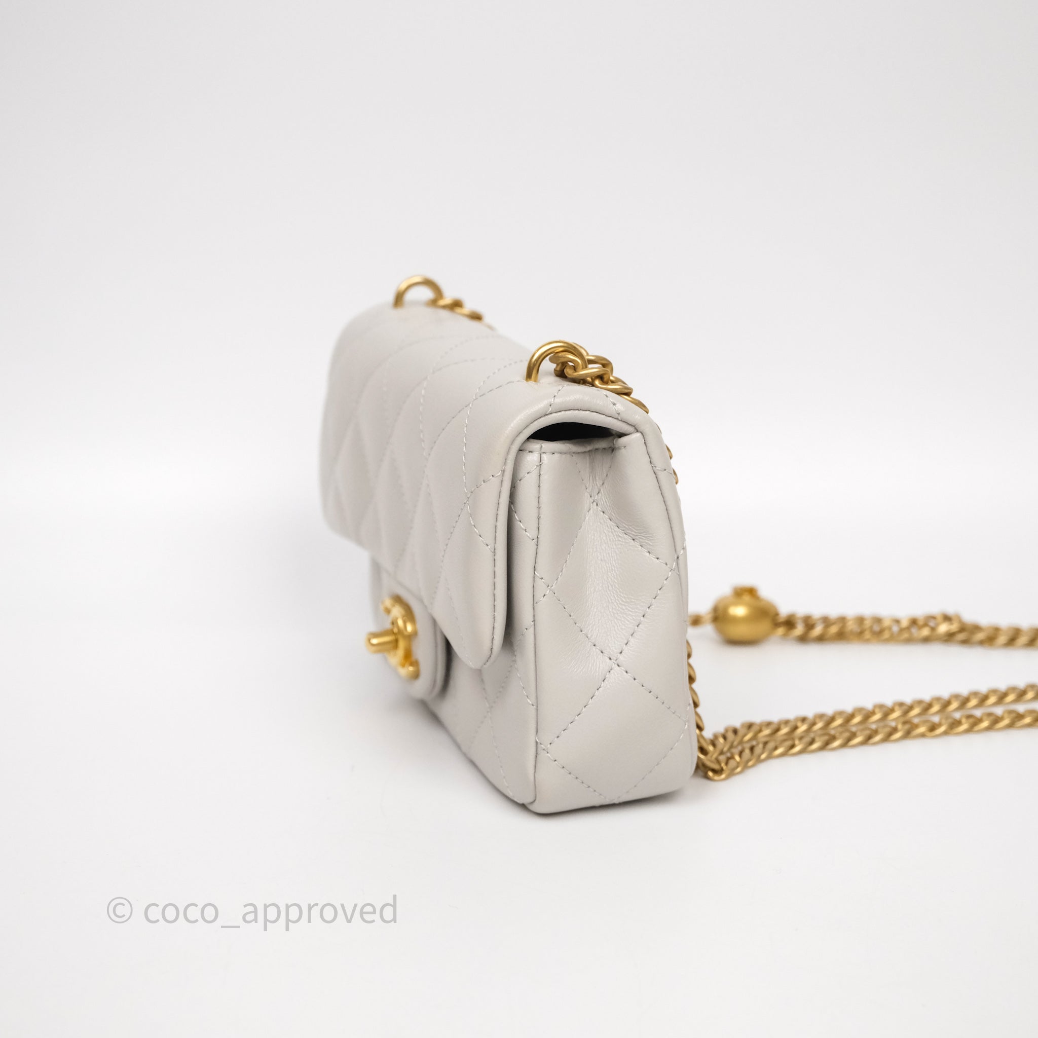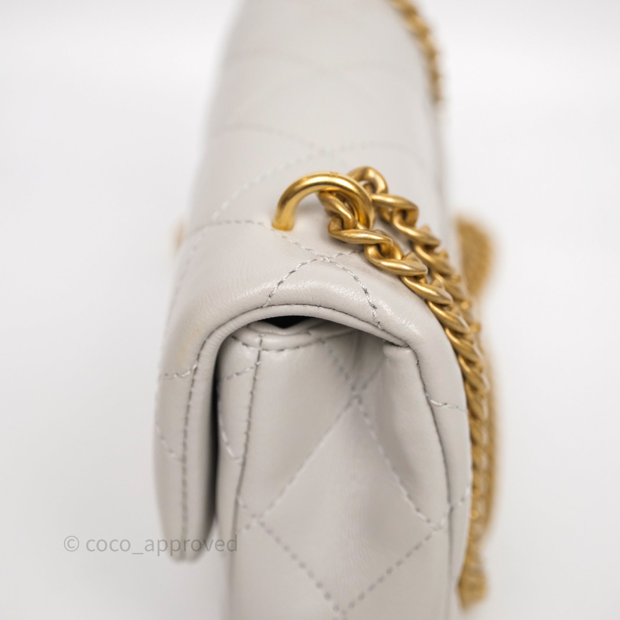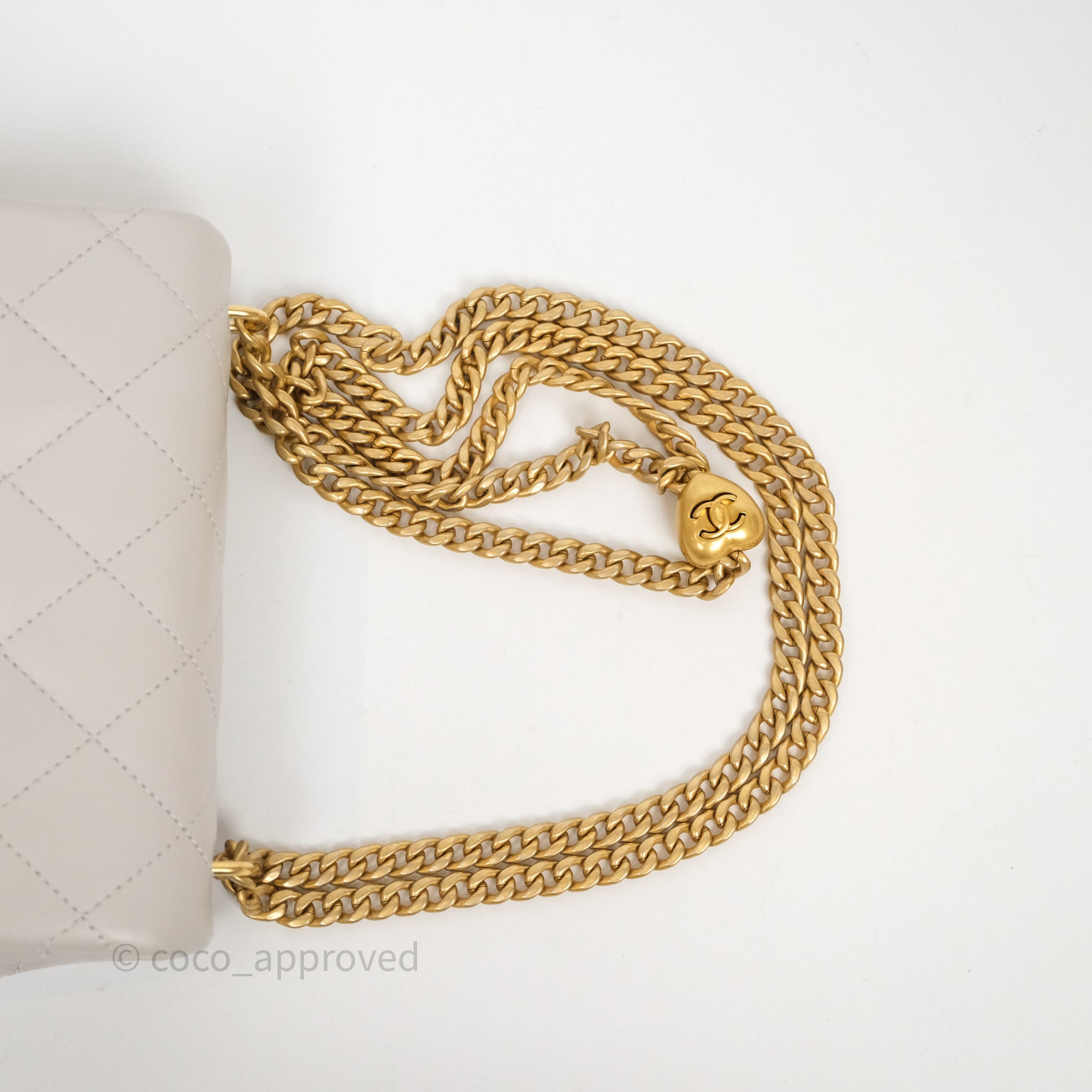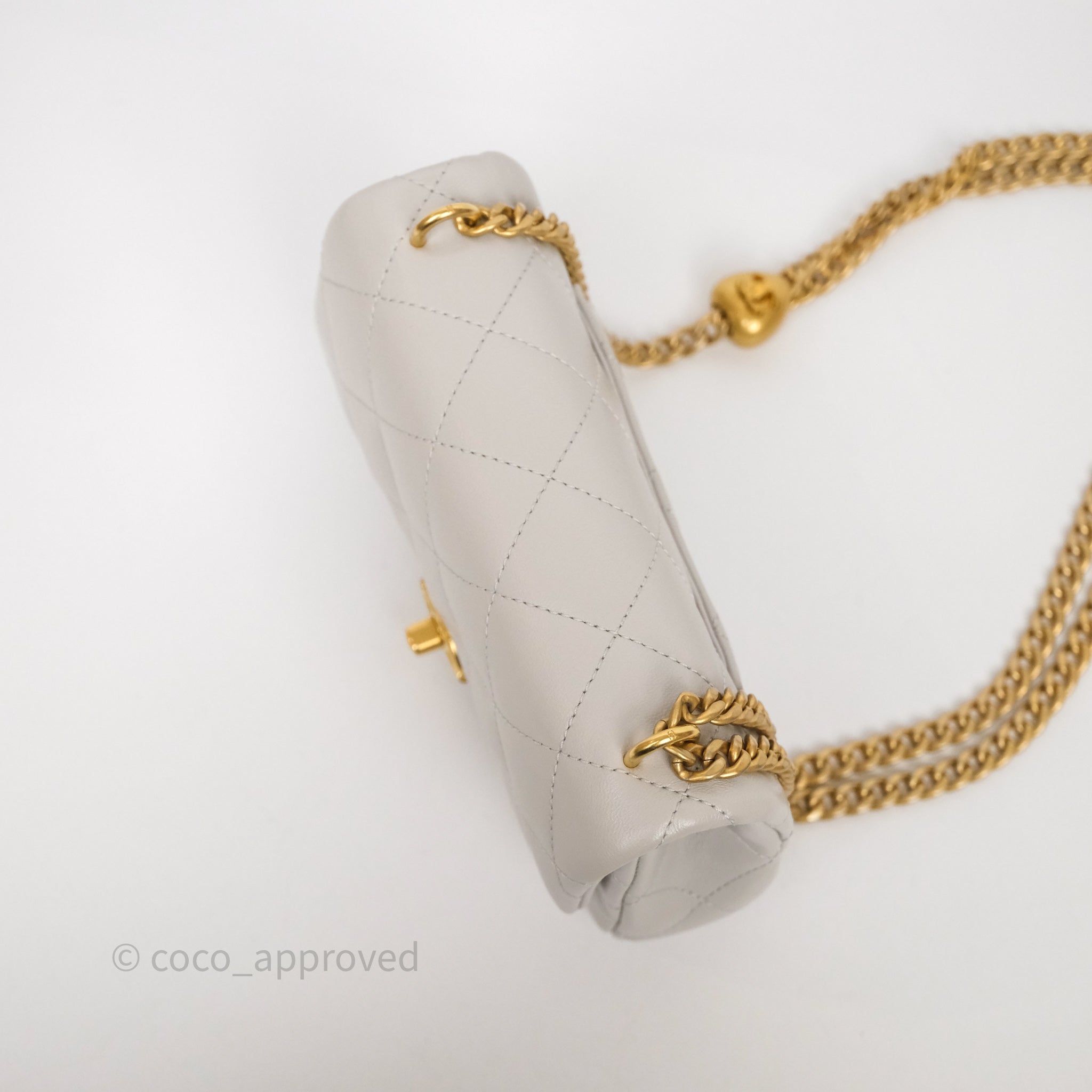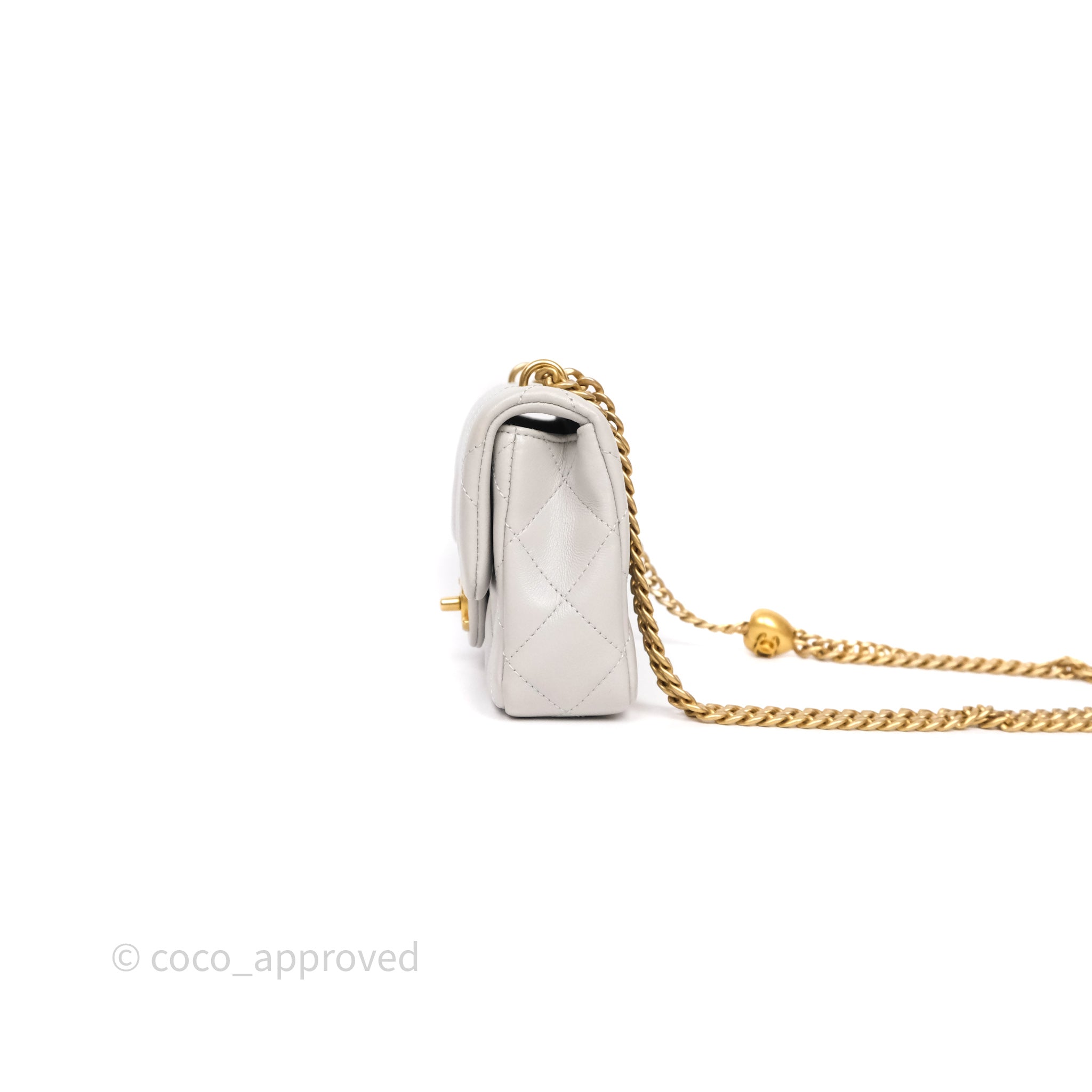 Chanel Heart Crush Mini Flap Bag Light Grey Lambskin Aged Gold Hardware 24P