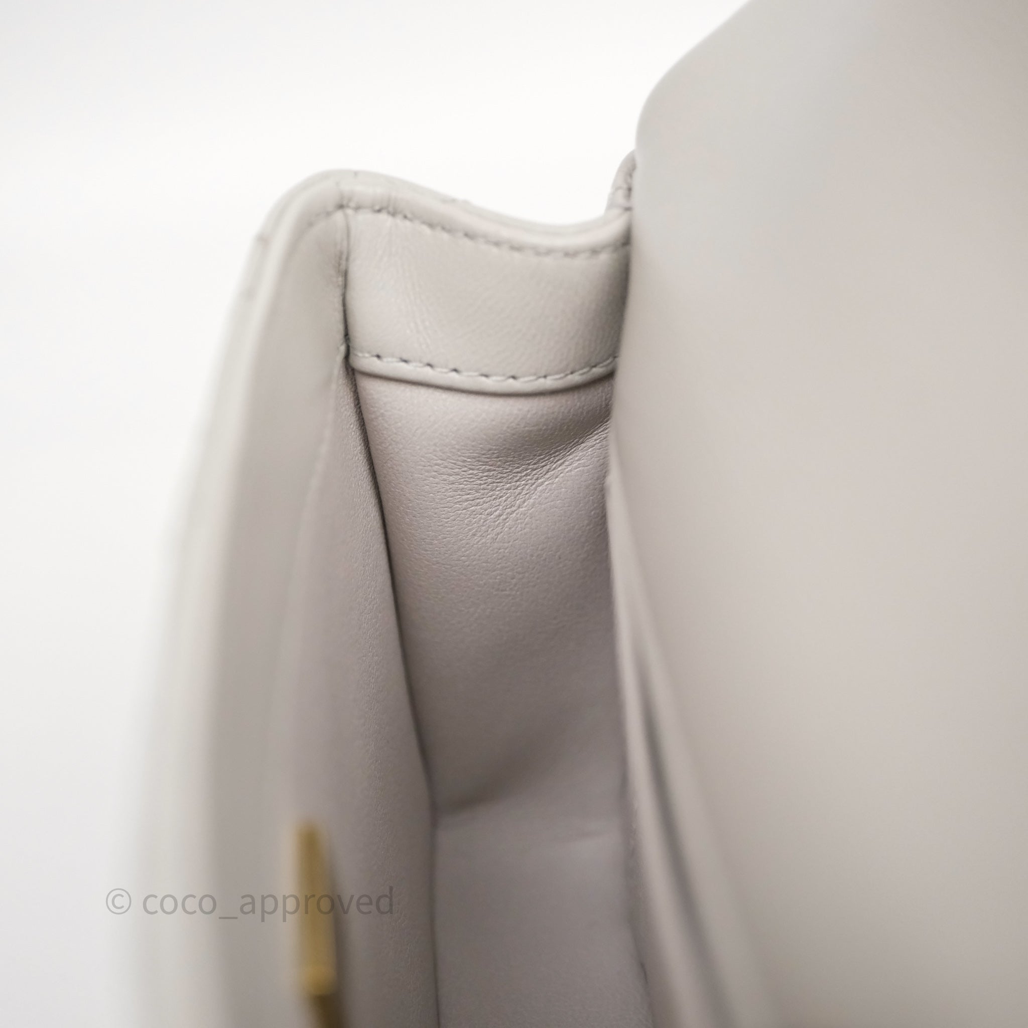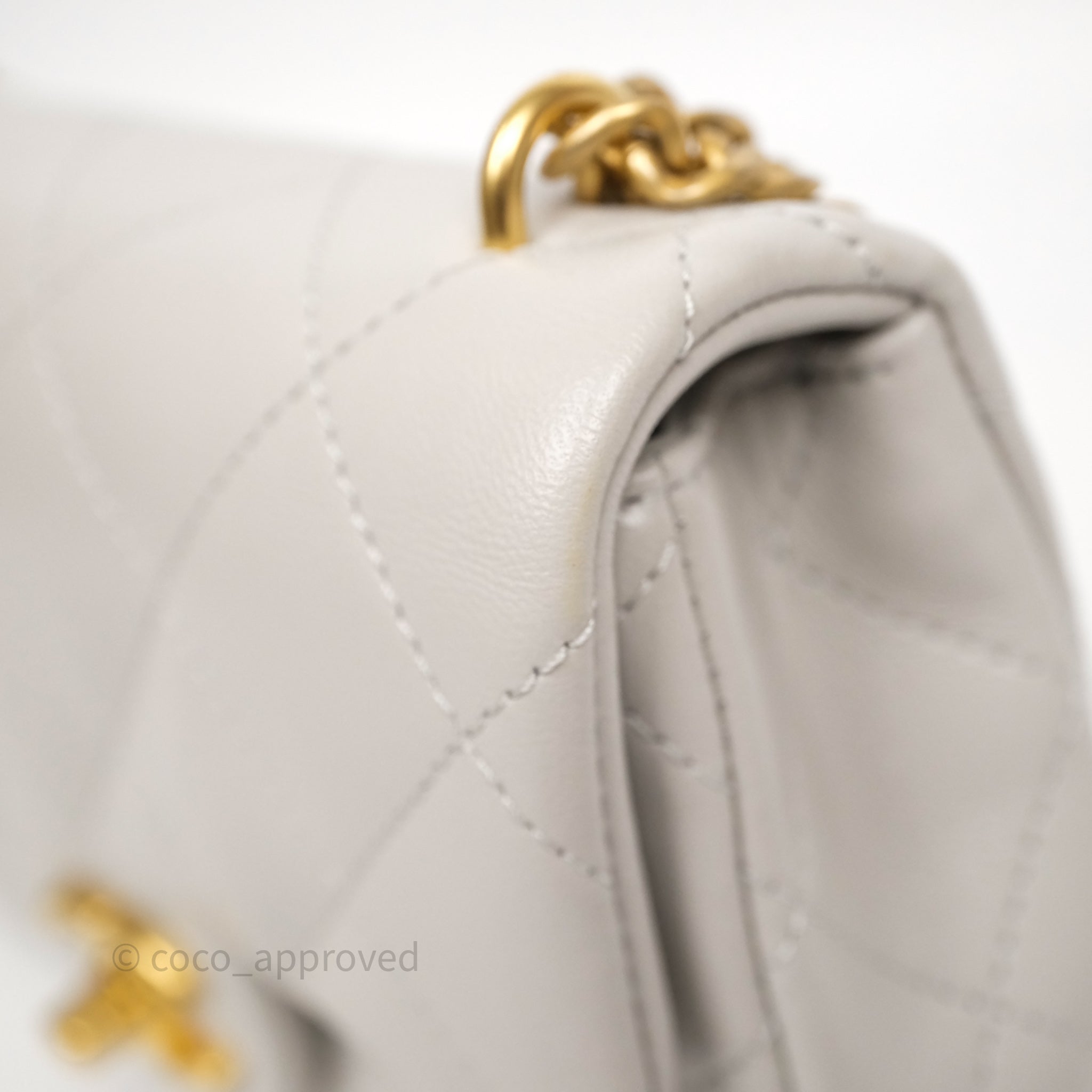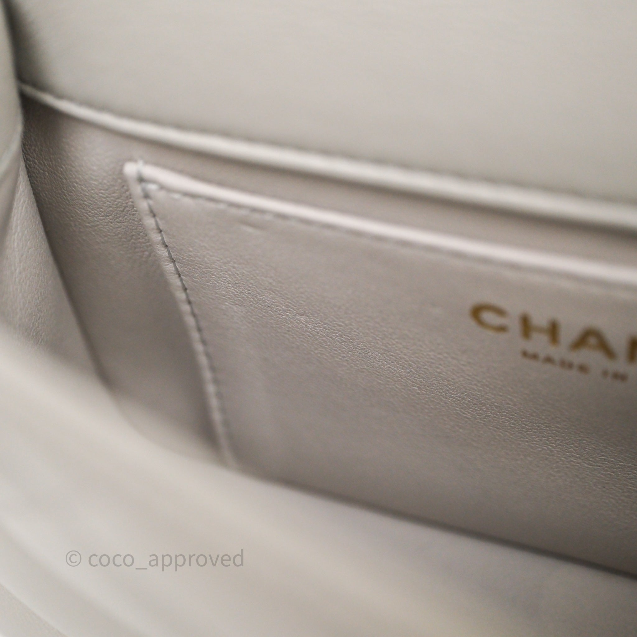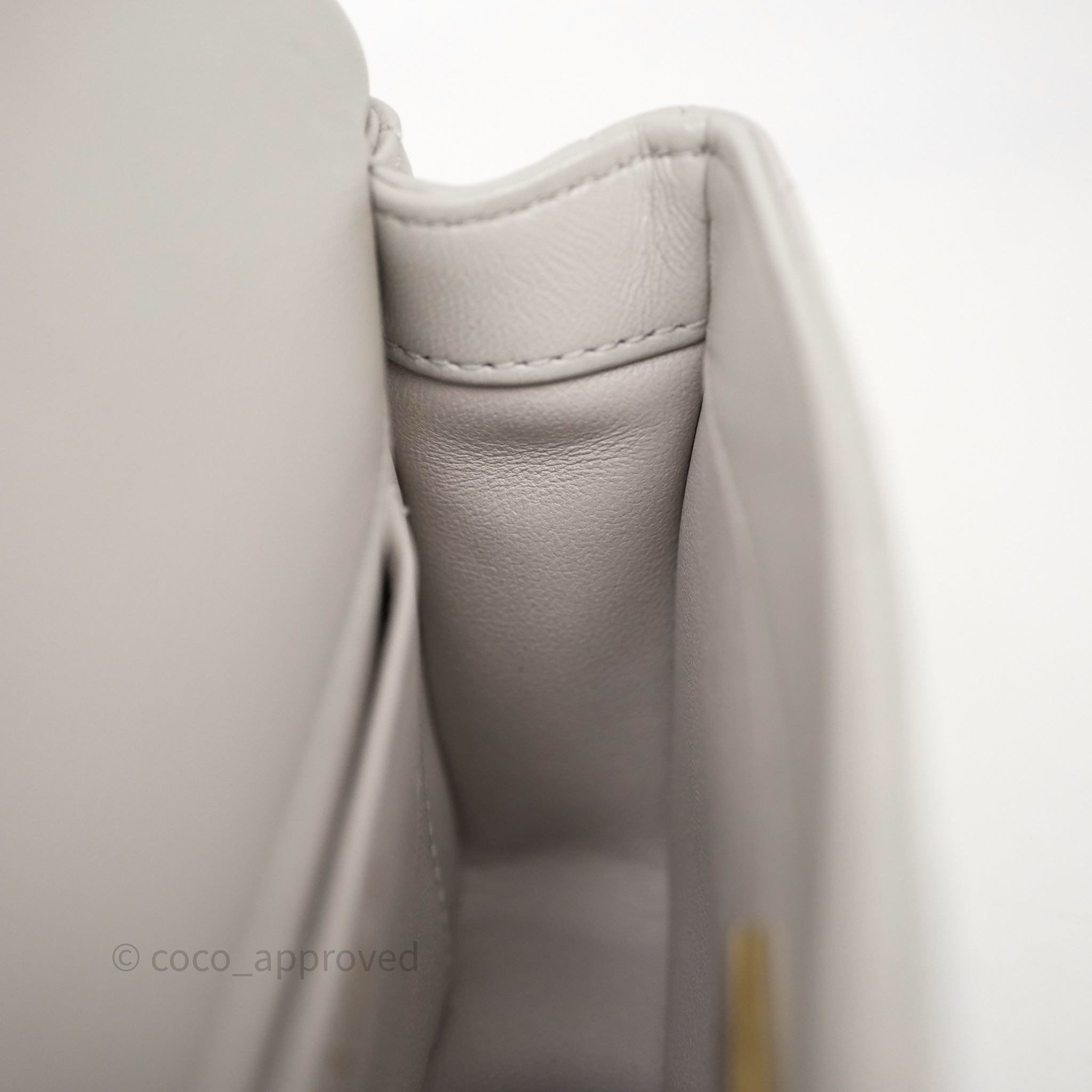 Chanel Heart Crush Mini Flap Bag Light Grey Lambskin Aged Gold Hardware 24P