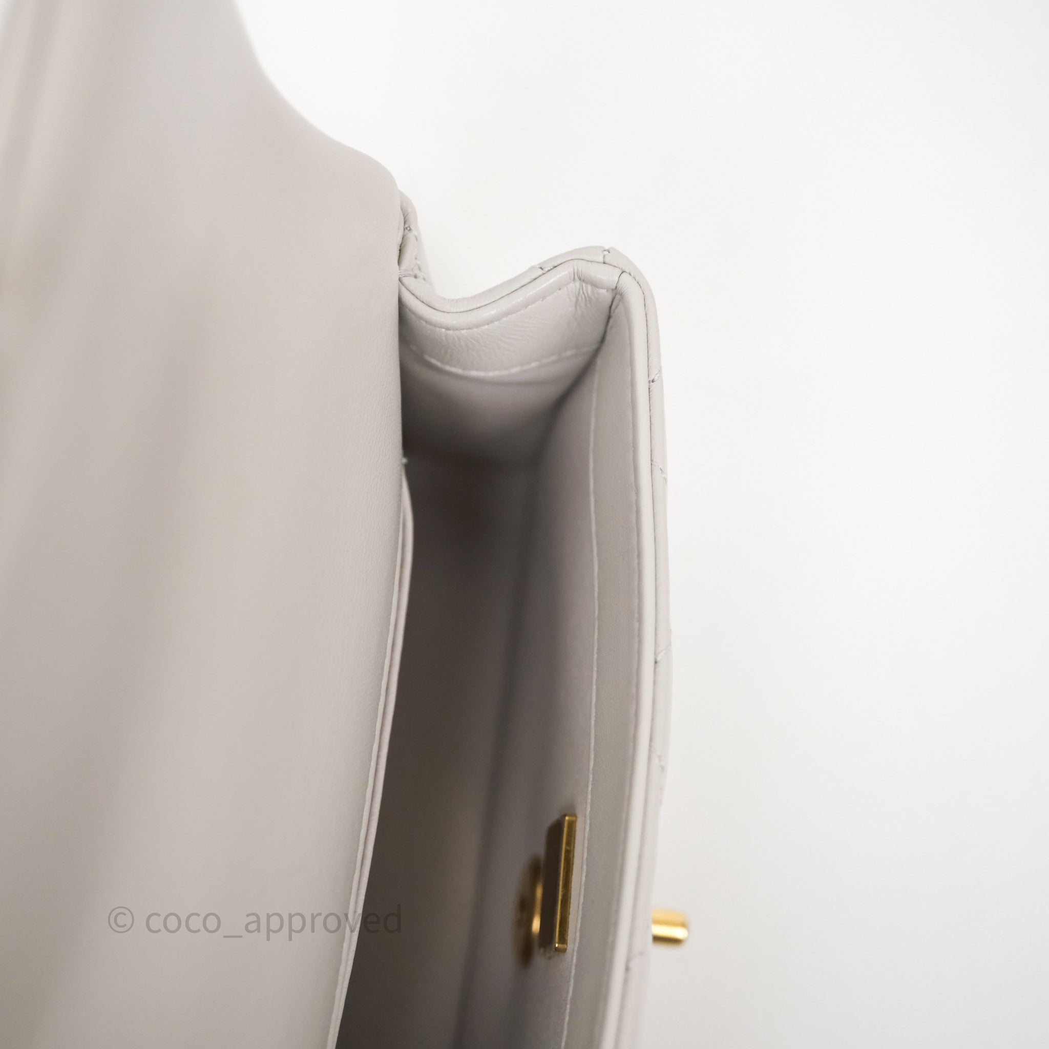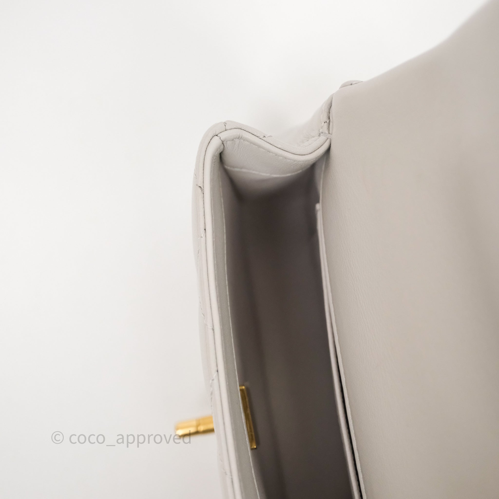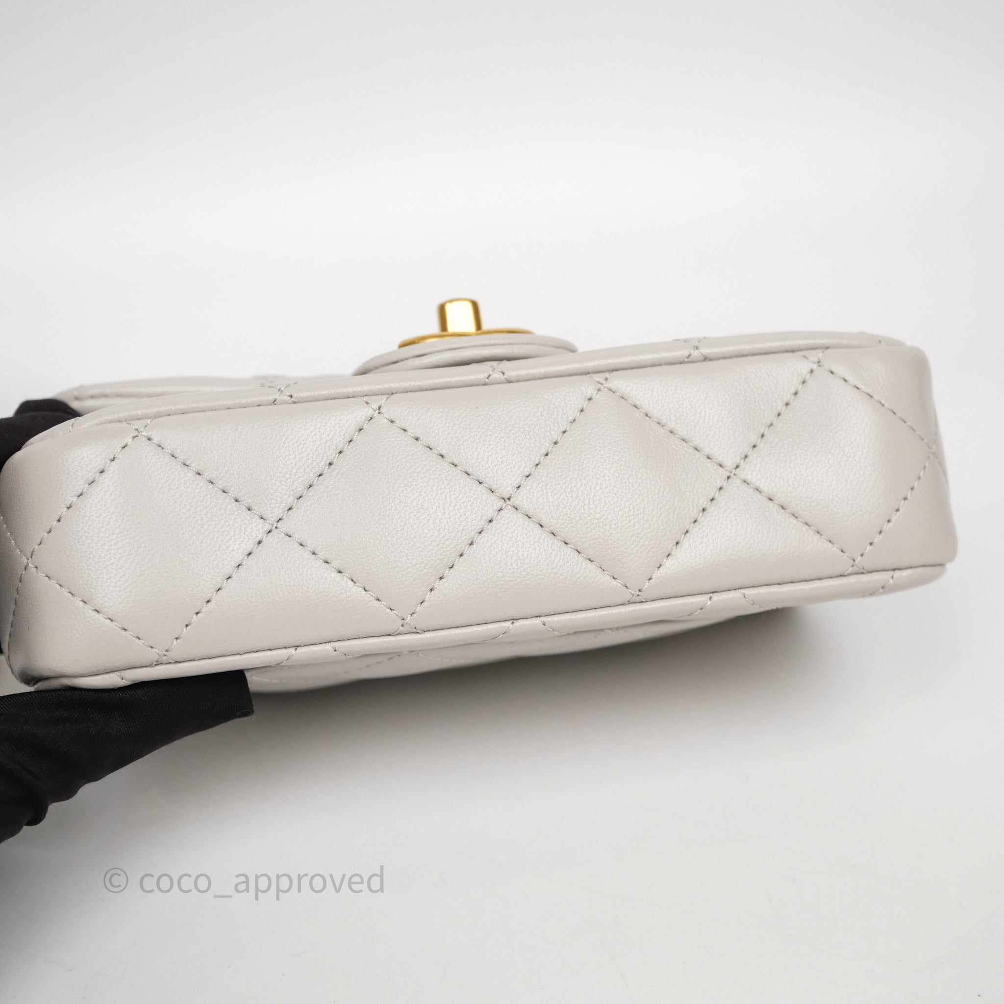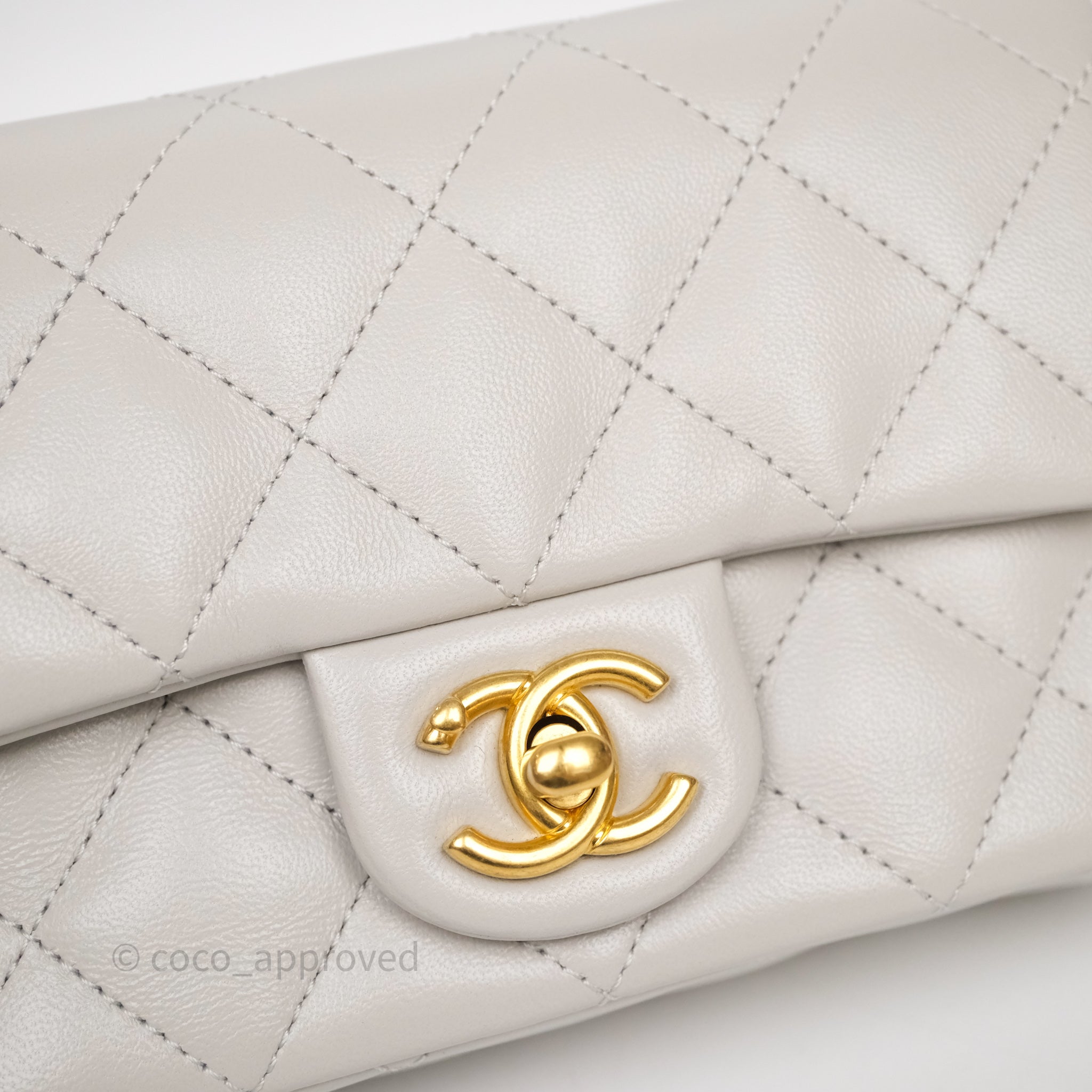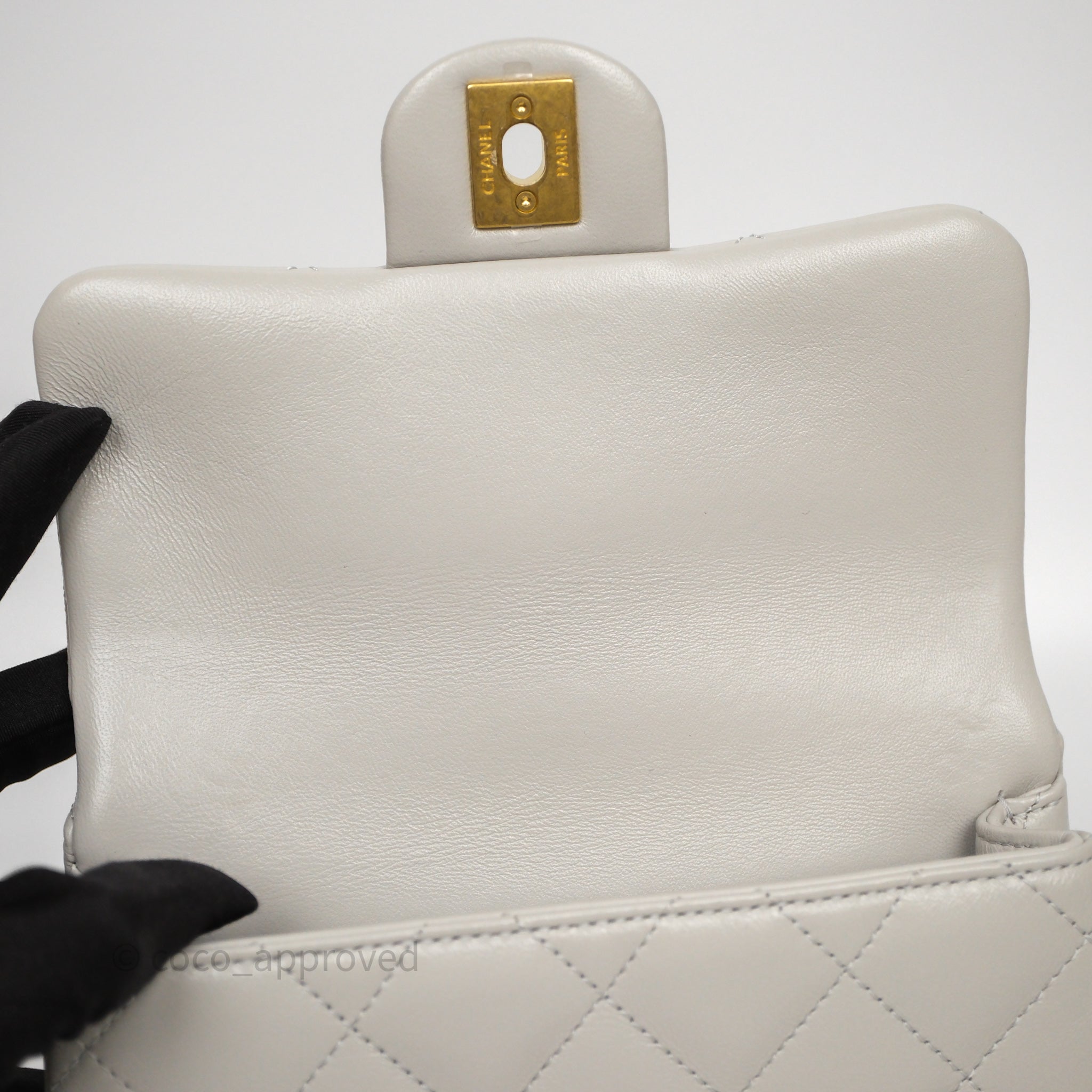 Chanel Heart Crush Mini Flap Bag Light Grey Lambskin Aged Gold Hardware 24P