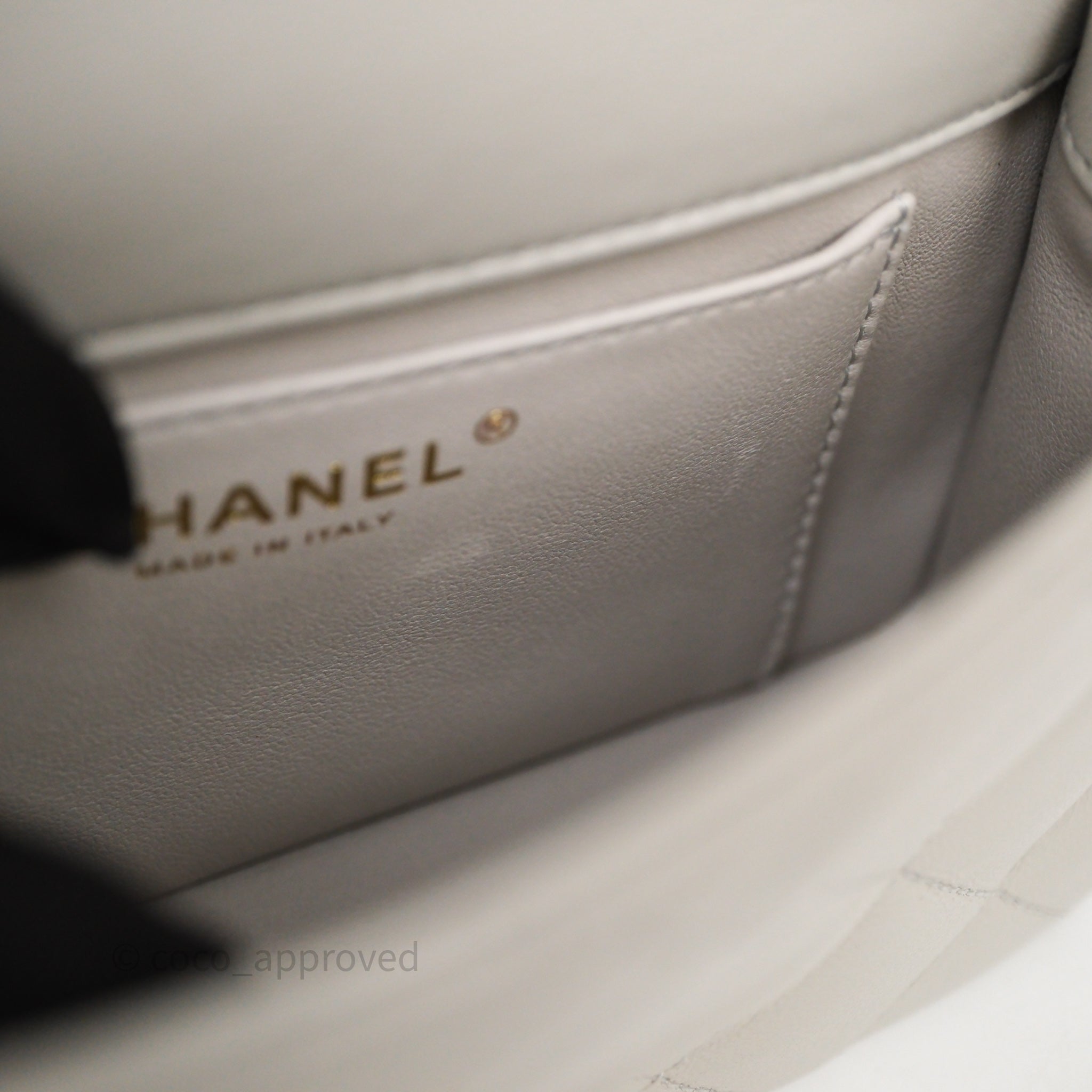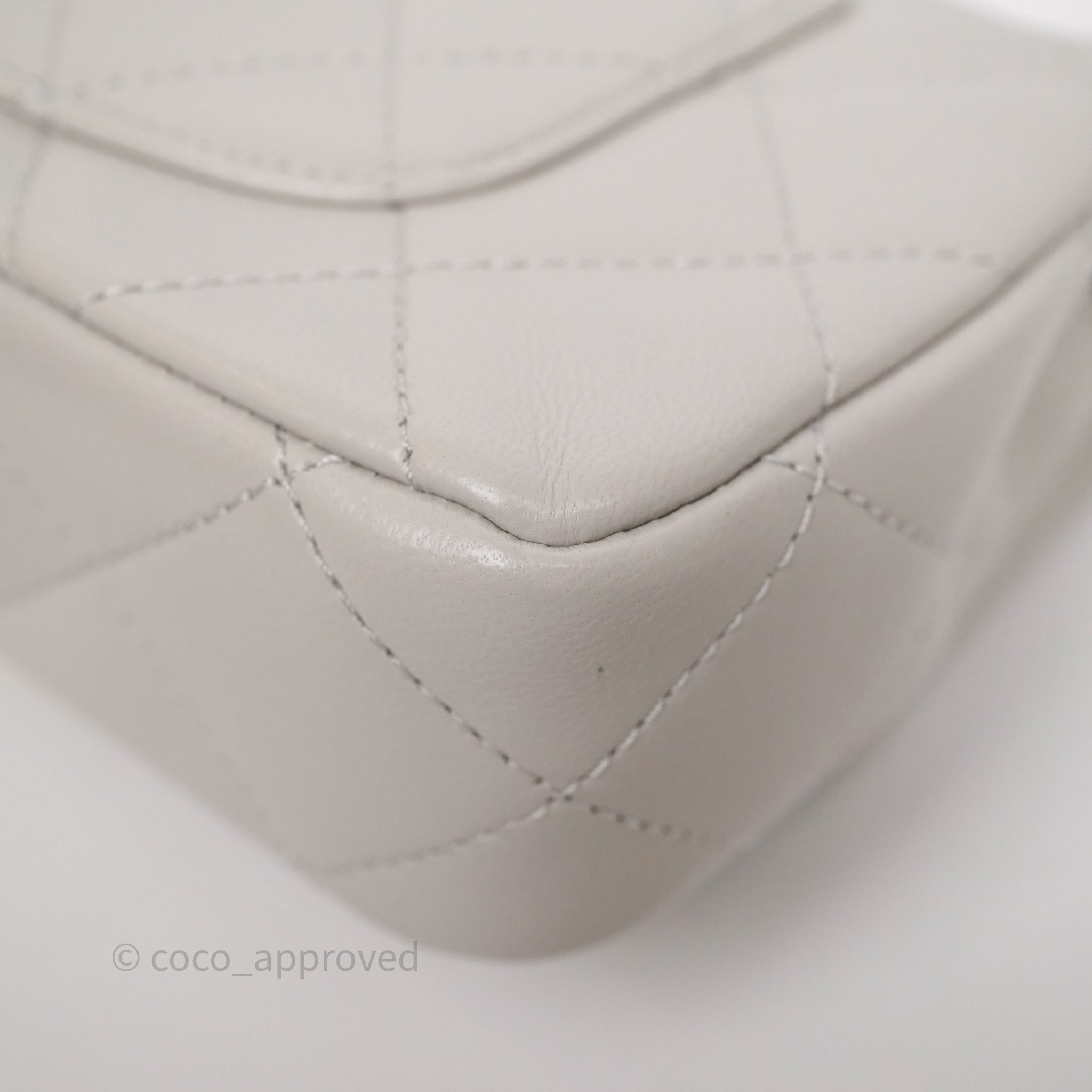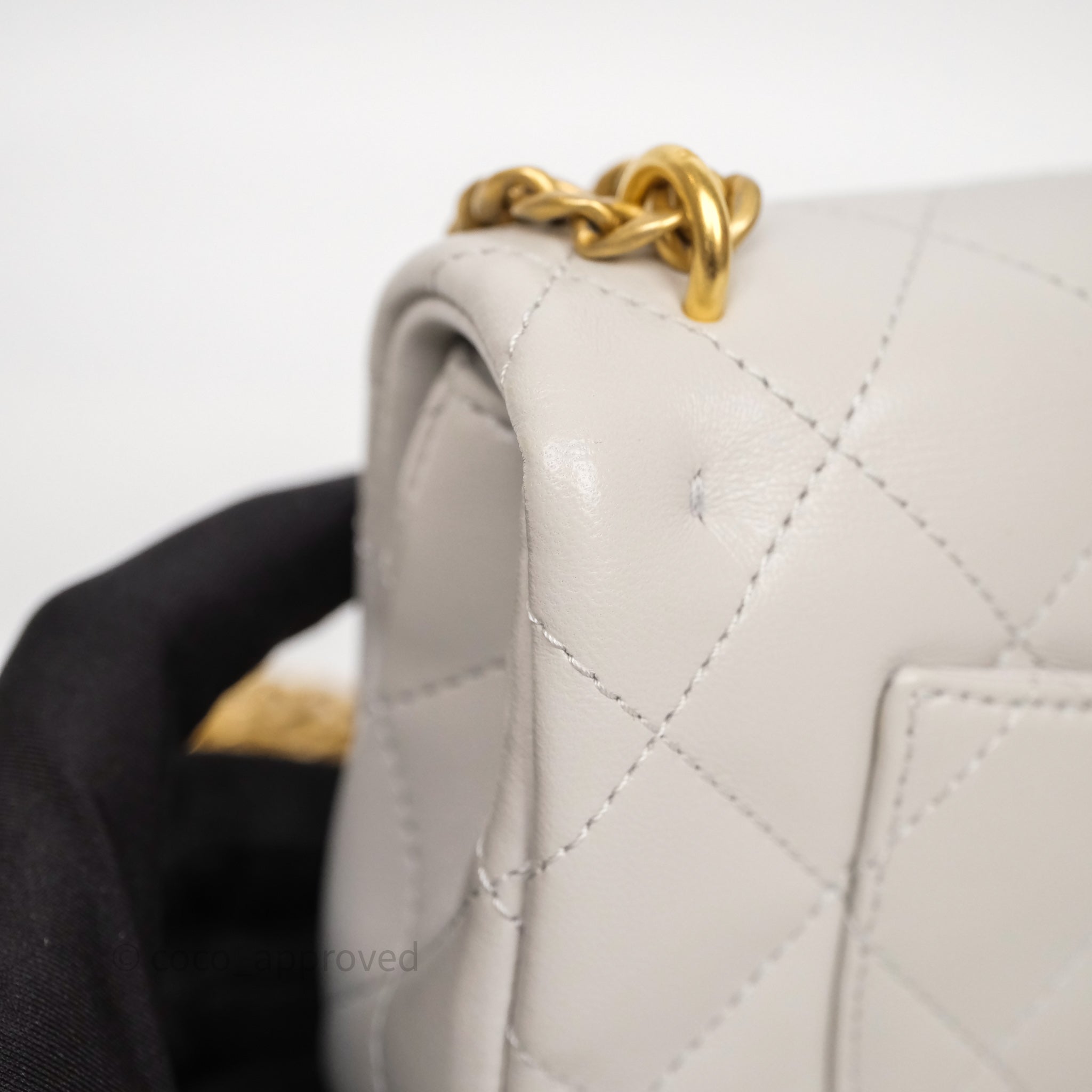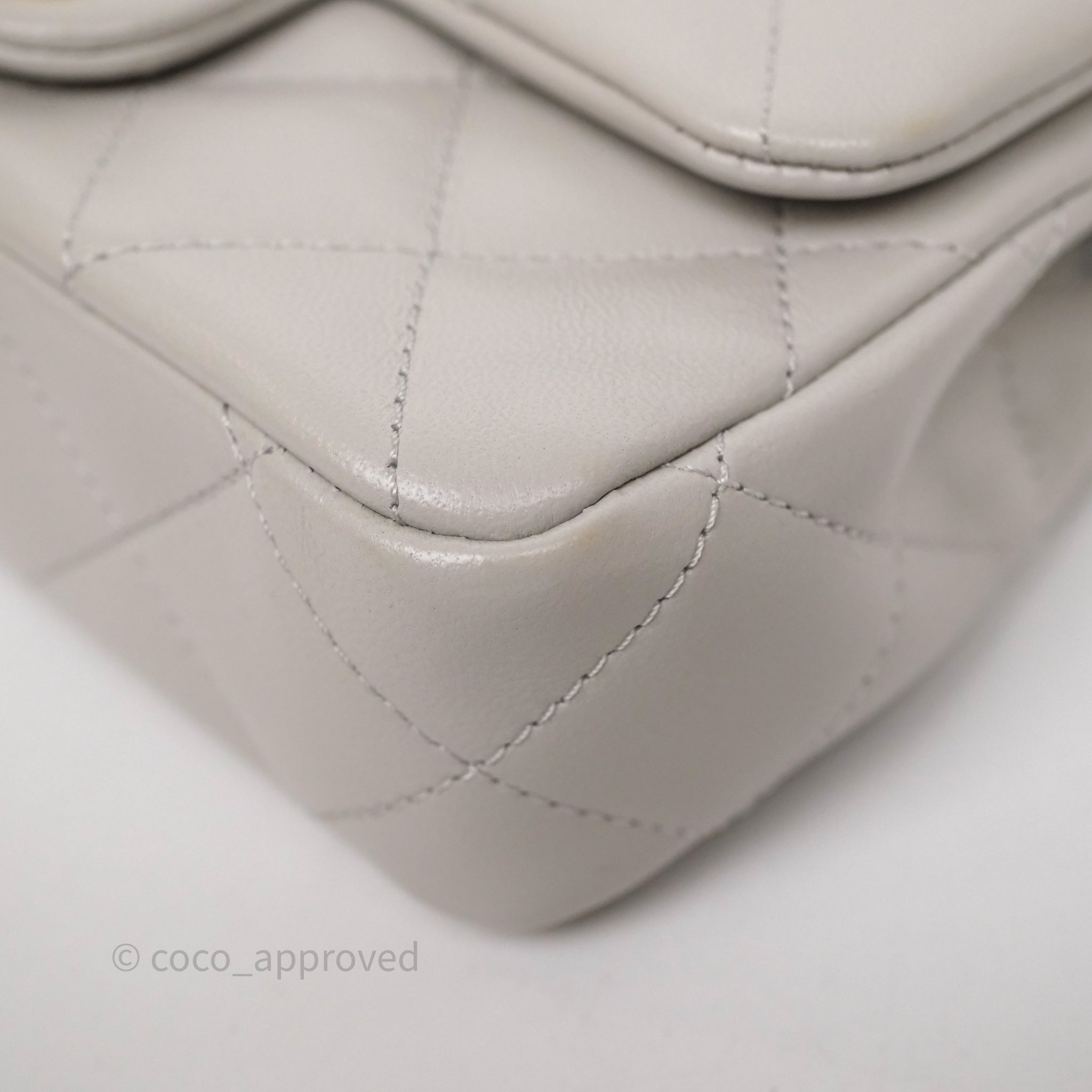 Chanel Heart Crush Mini Flap Bag Light Grey Lambskin Aged Gold Hardware 24P