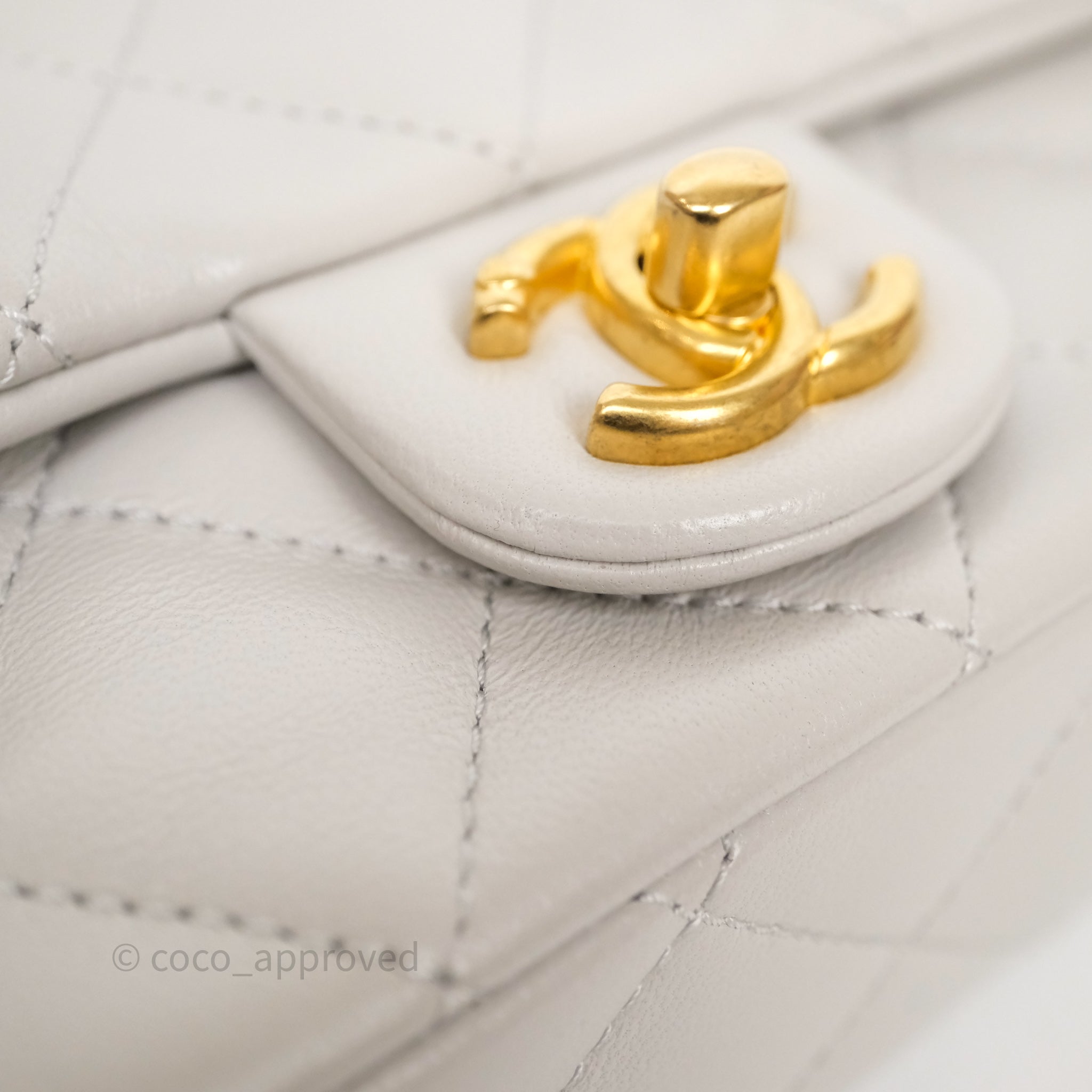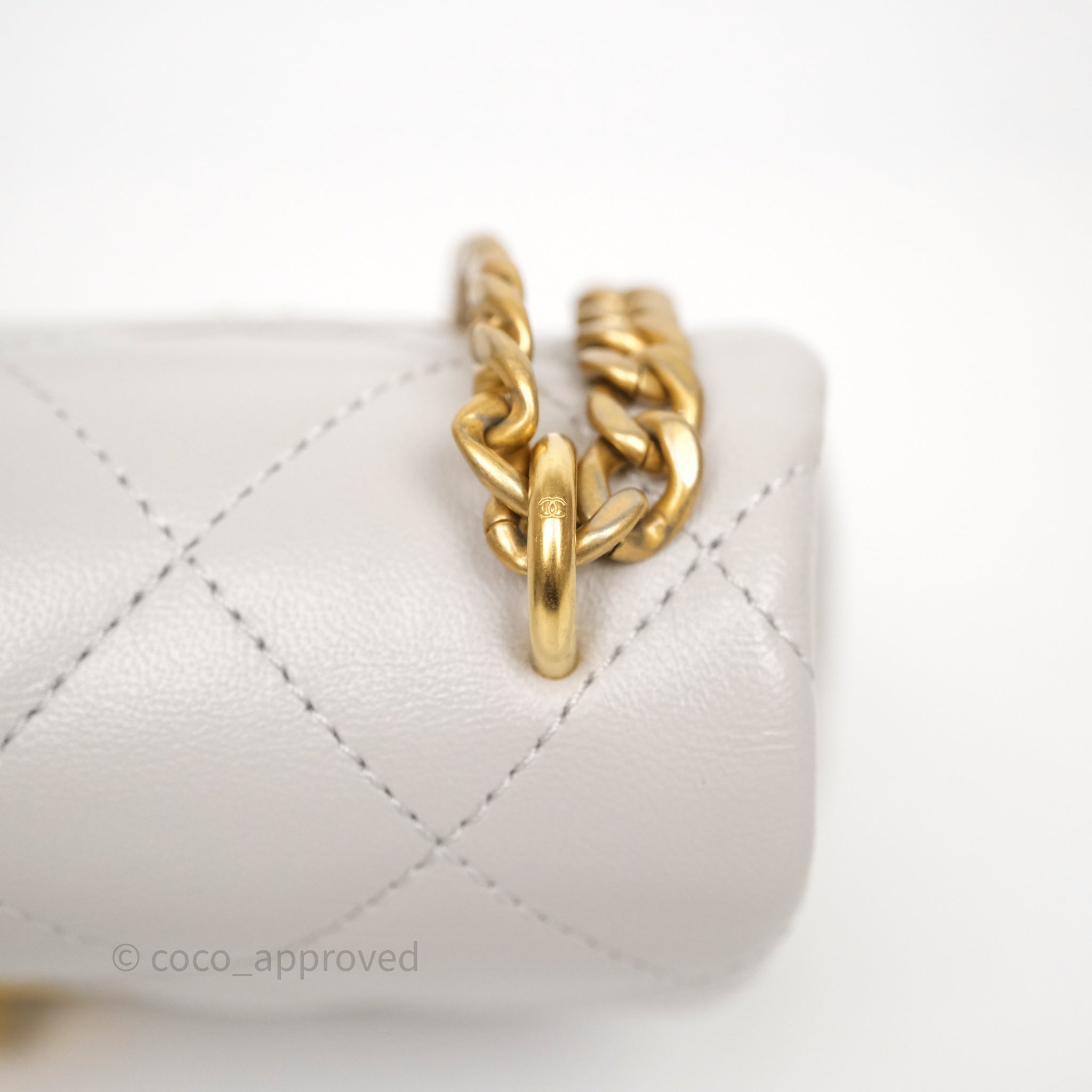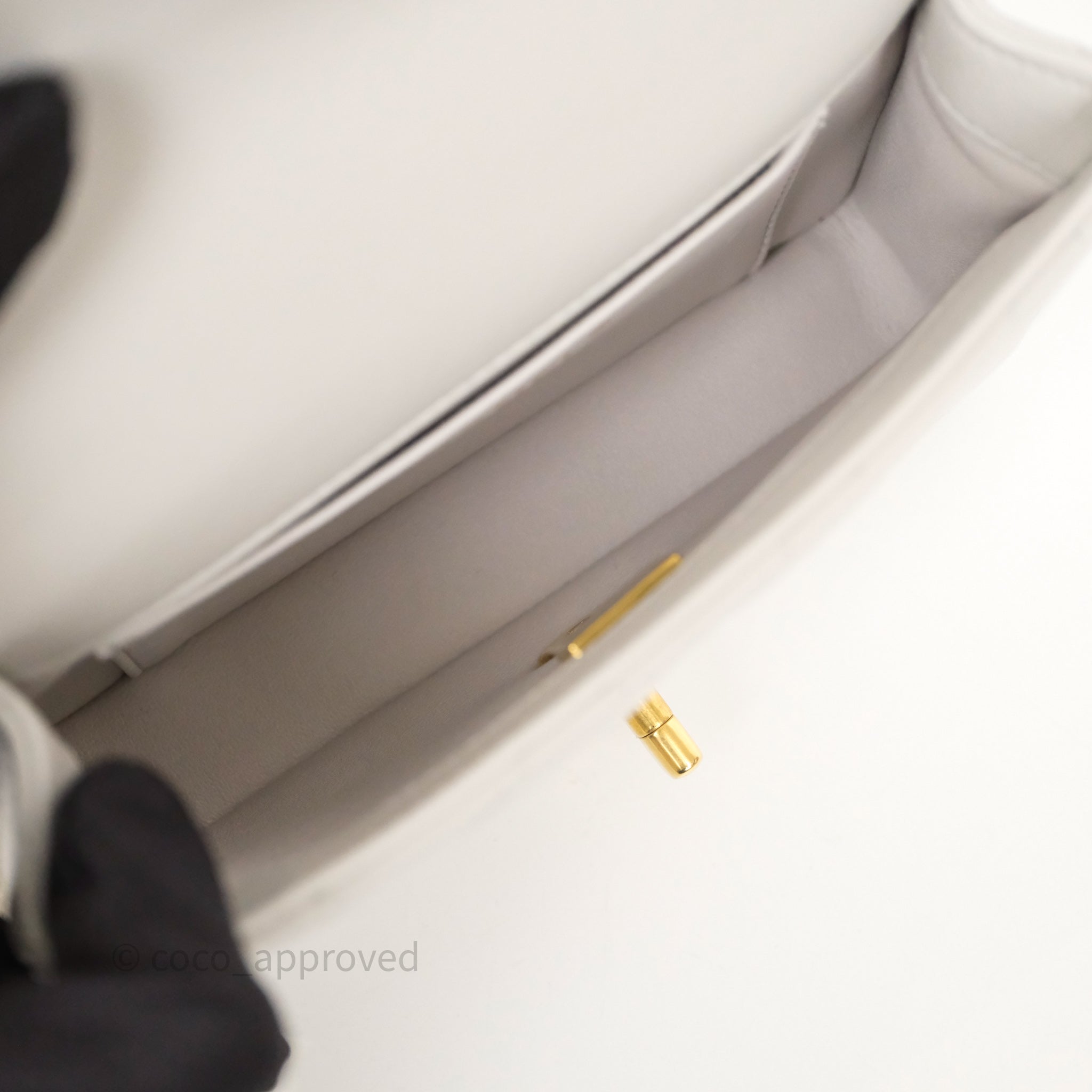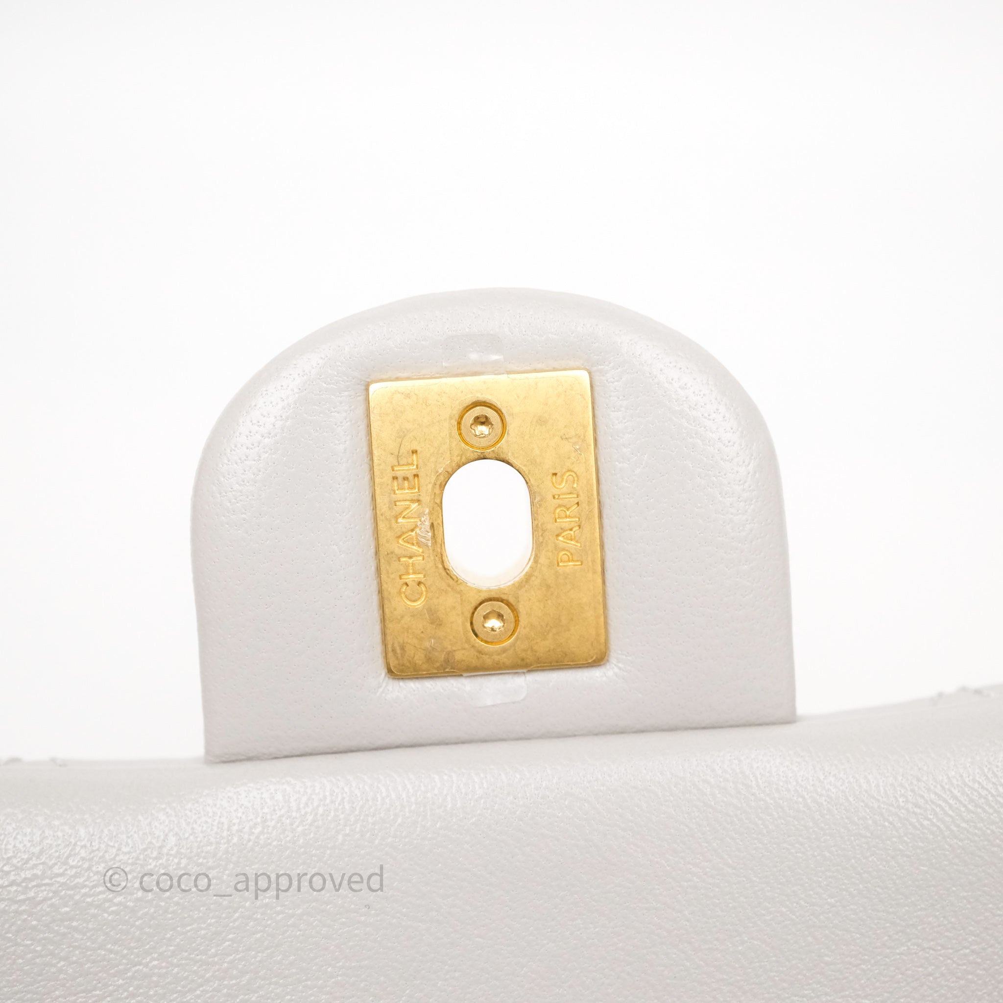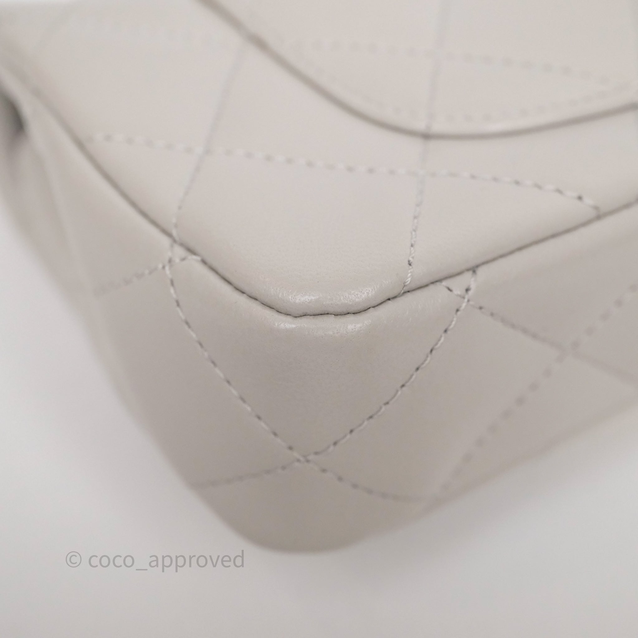 Chanel Heart Crush Mini Flap Bag Light Grey Lambskin Aged Gold Hardware 24P