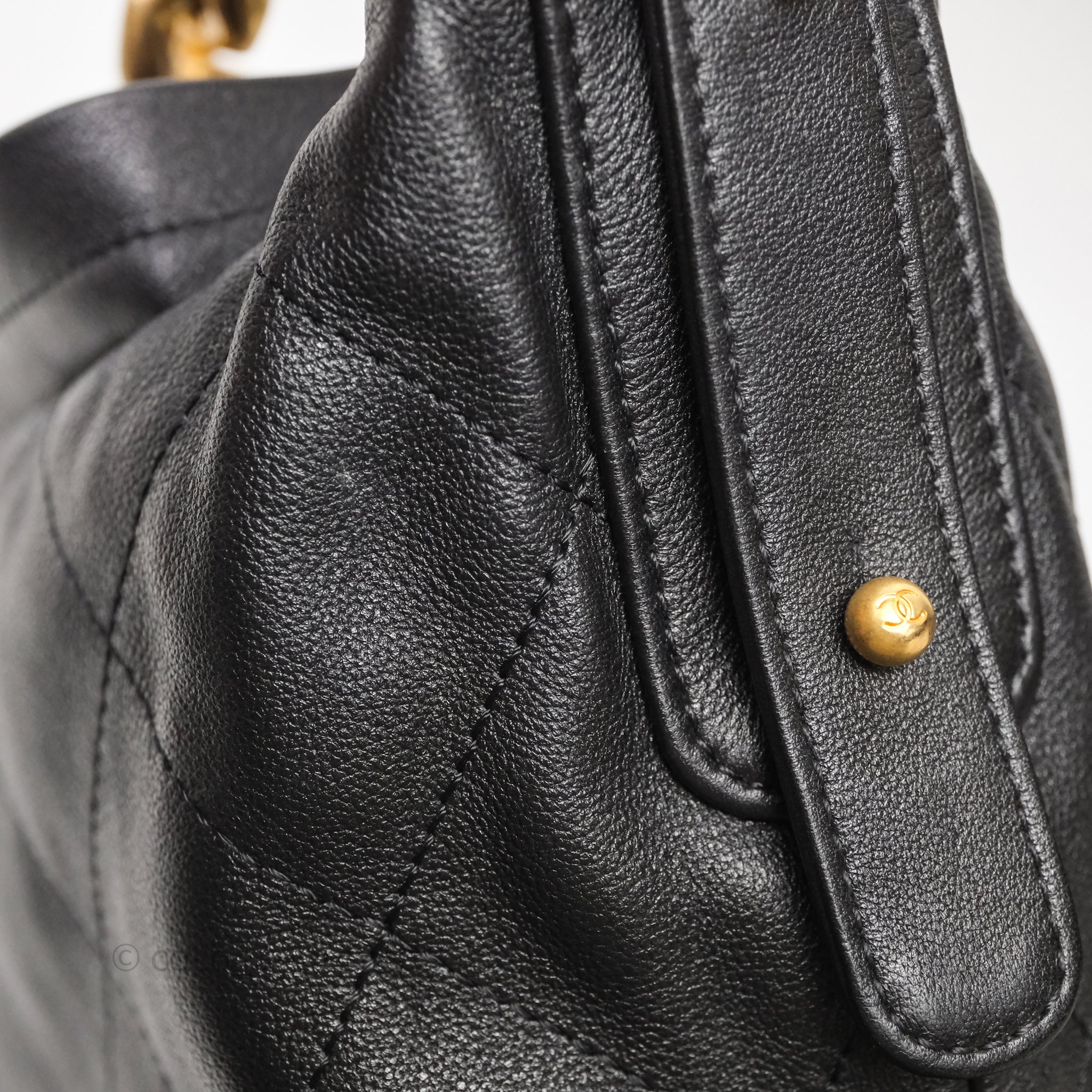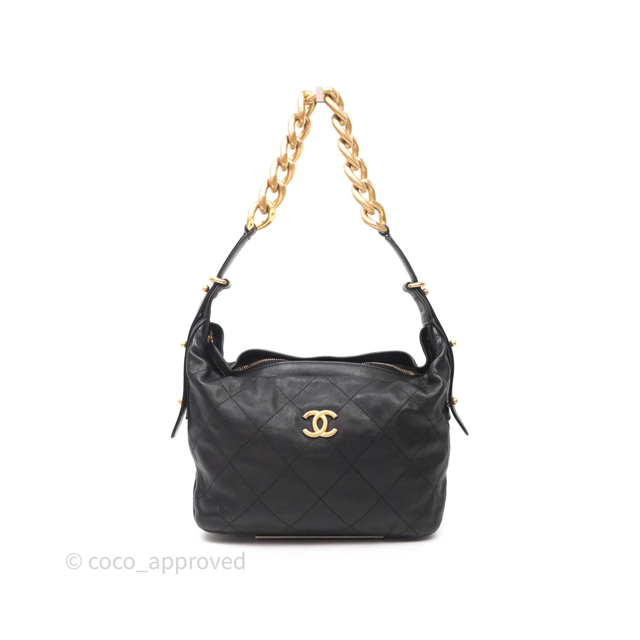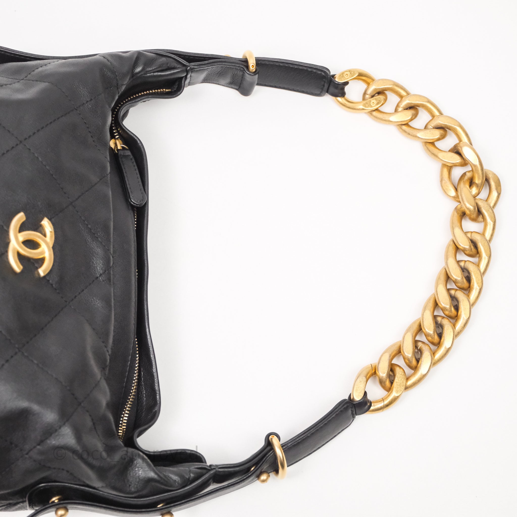 Chanel Hobo Bag Black Calfskin Aged Gold Hardware