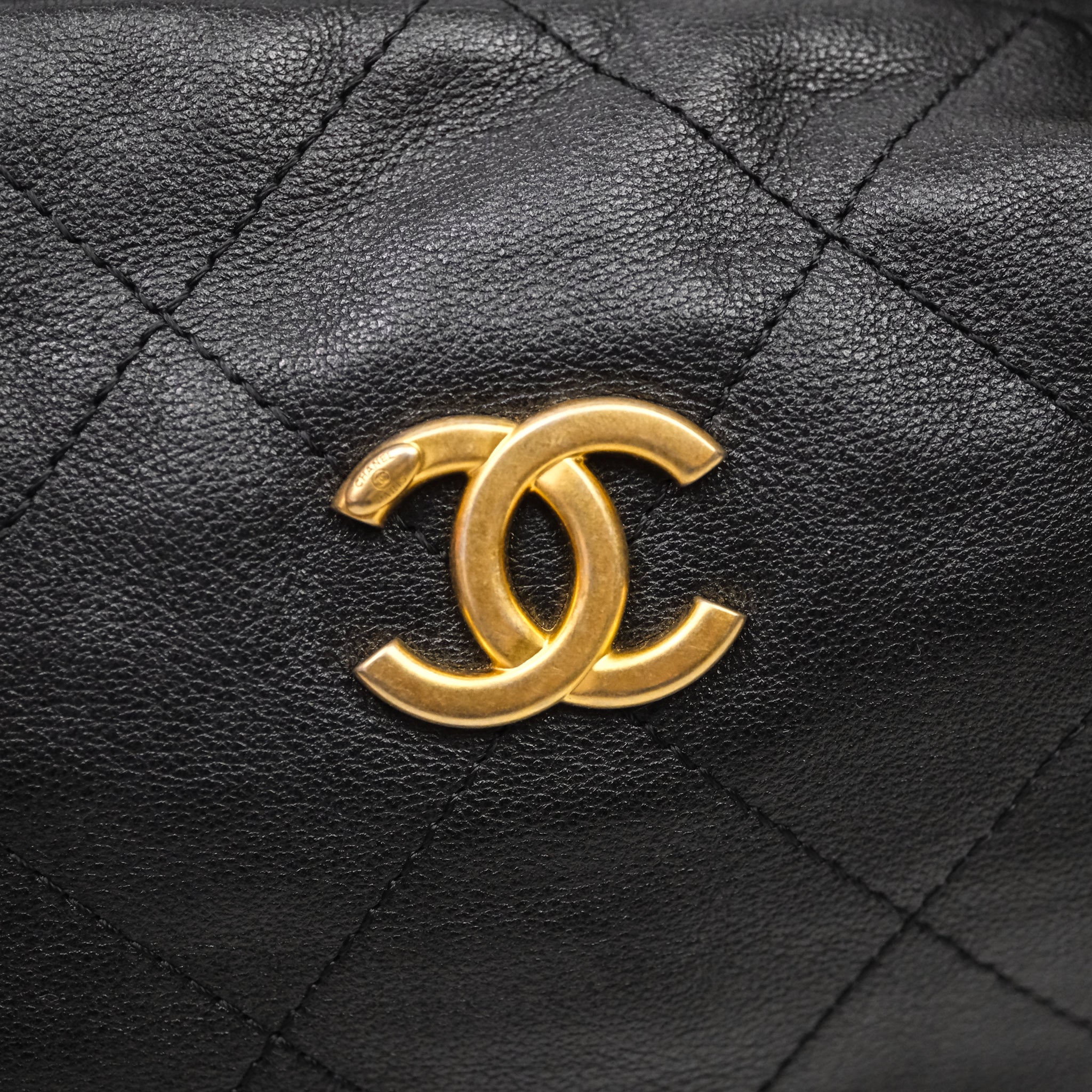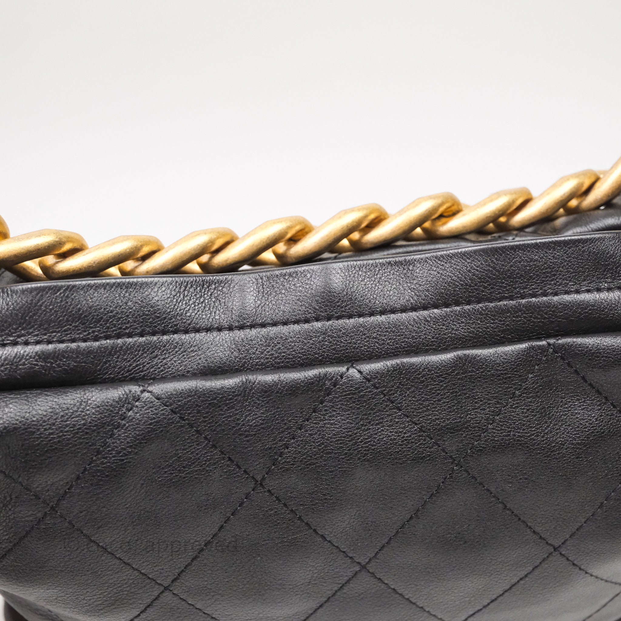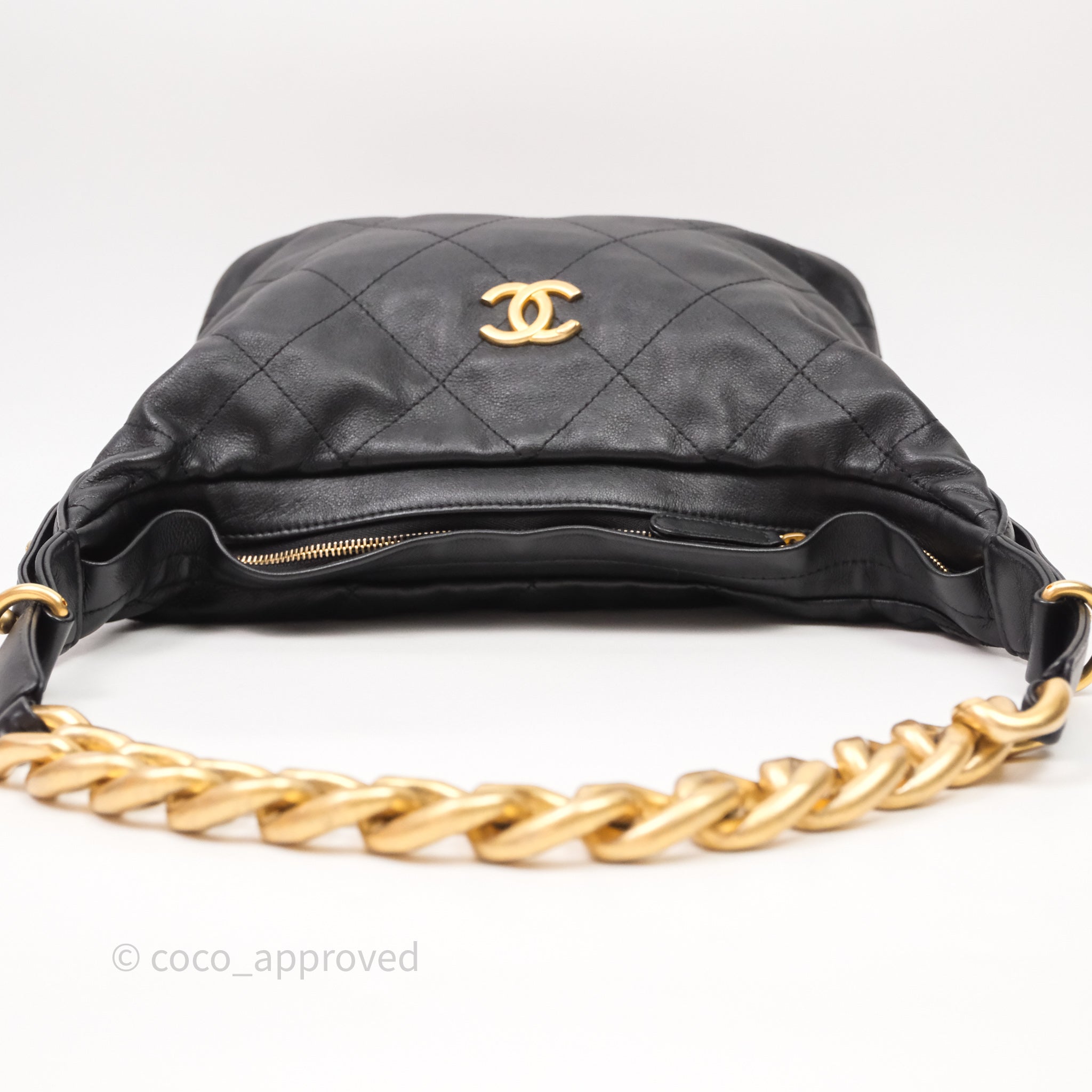 Chanel Hobo Bag Black Calfskin Aged Gold Hardware