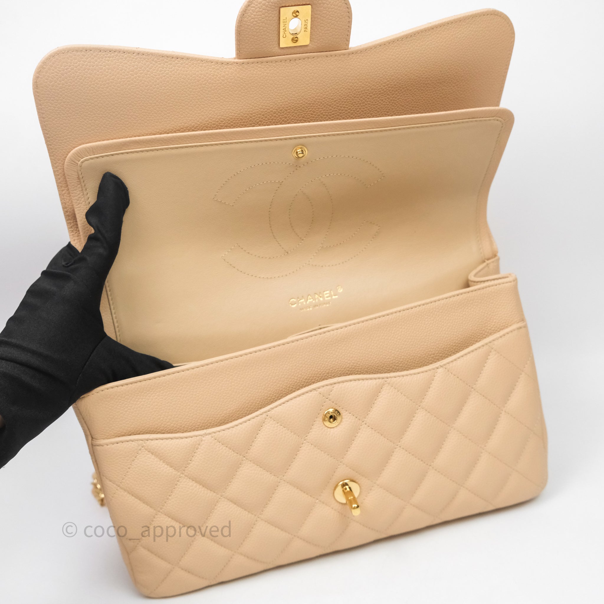 Chanel Jumbo Double Flap Beige Caviar Gold Hardware⁣⁣ is now sold. Please subscribe for any updates if similar item becomes available.