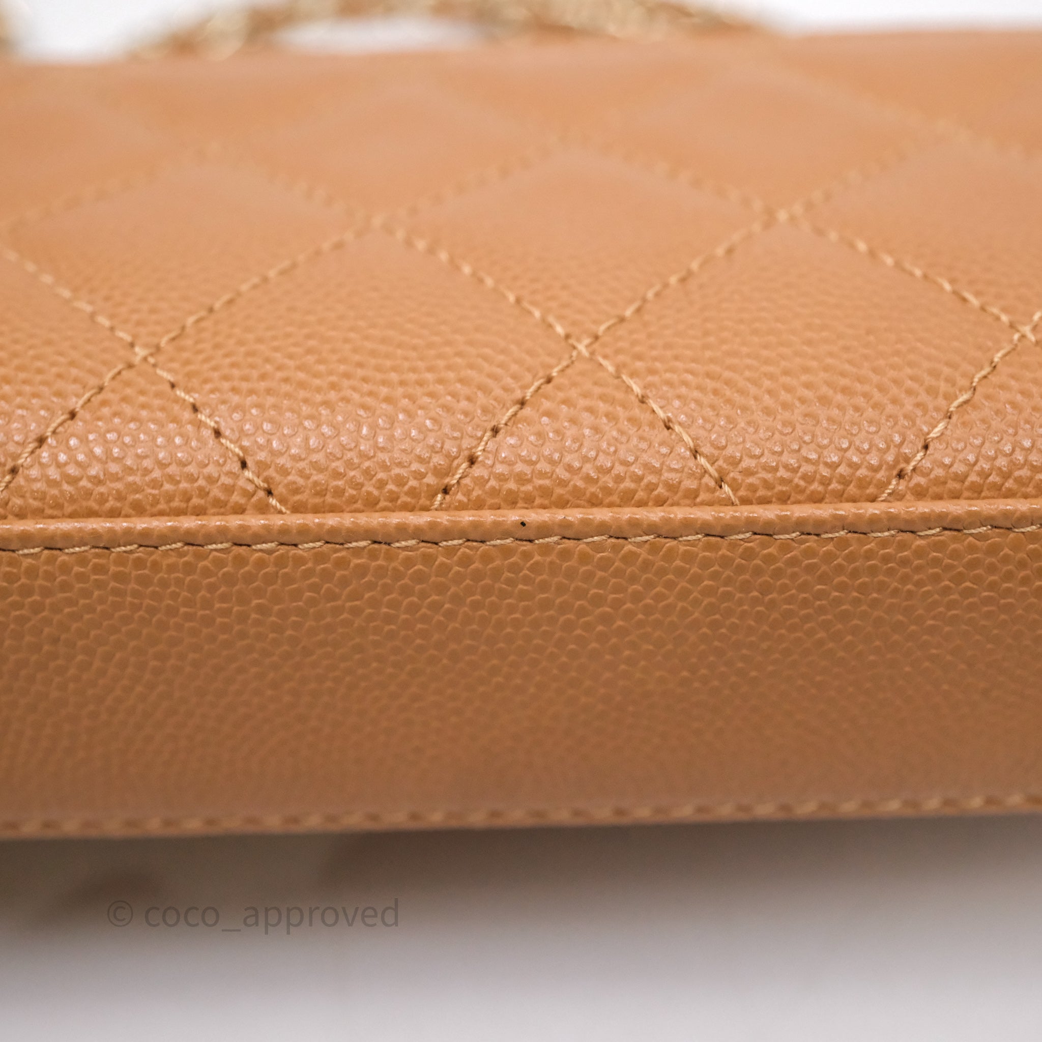 Chanel Kelly Clutch Top Handle Dark Beige Caviar Bag Light Gold hardware
