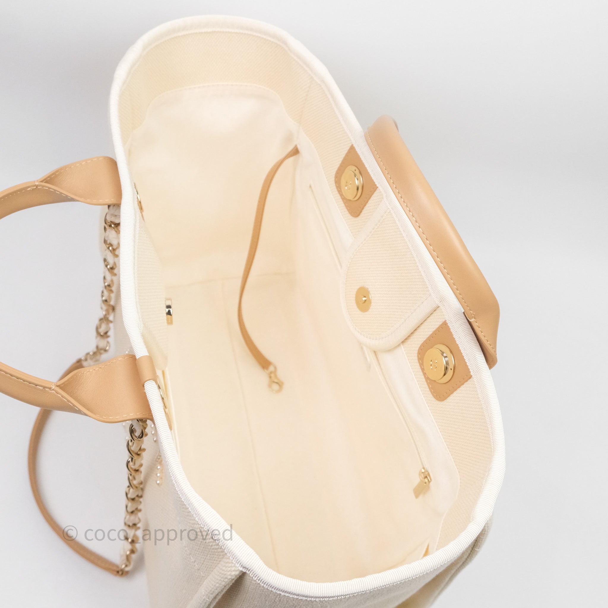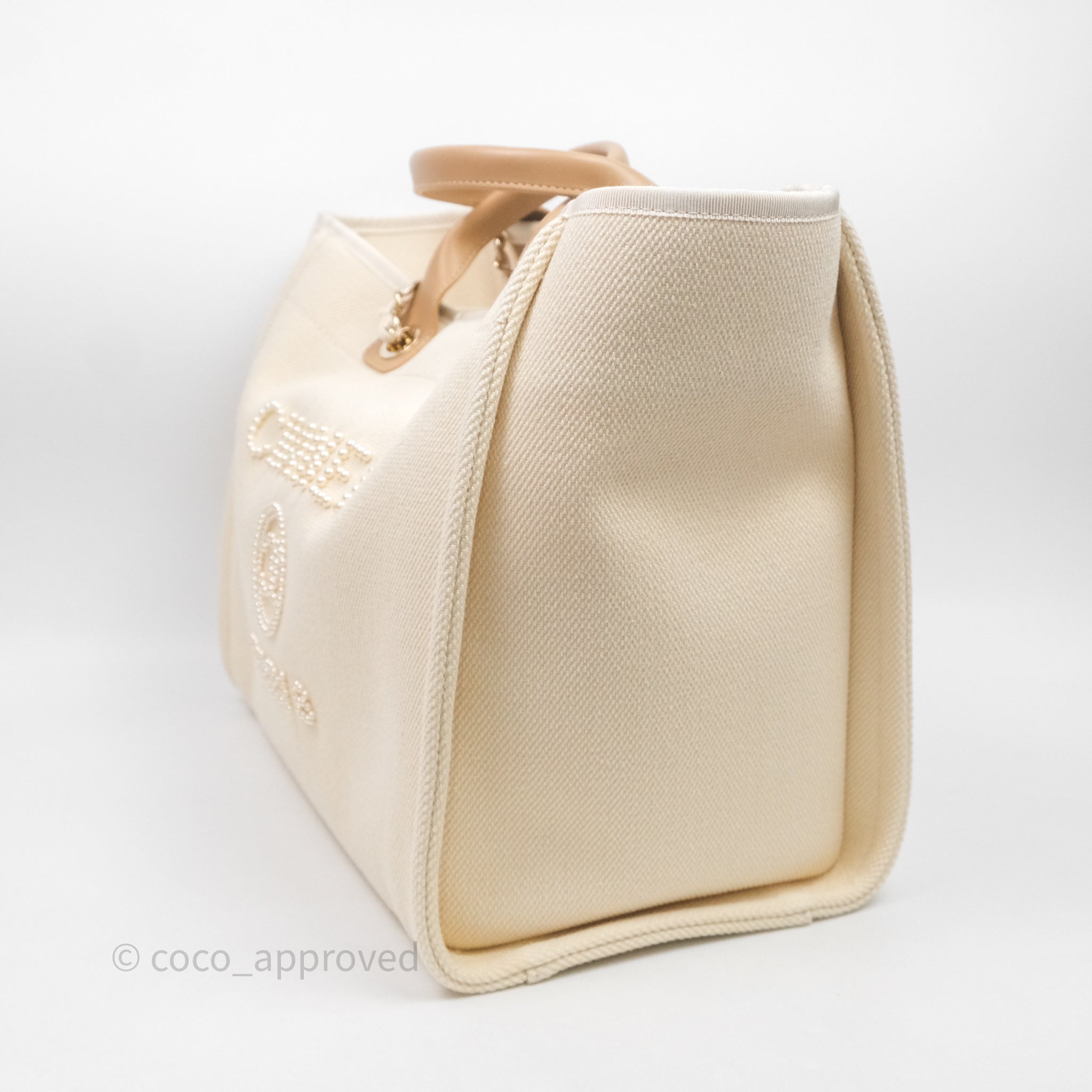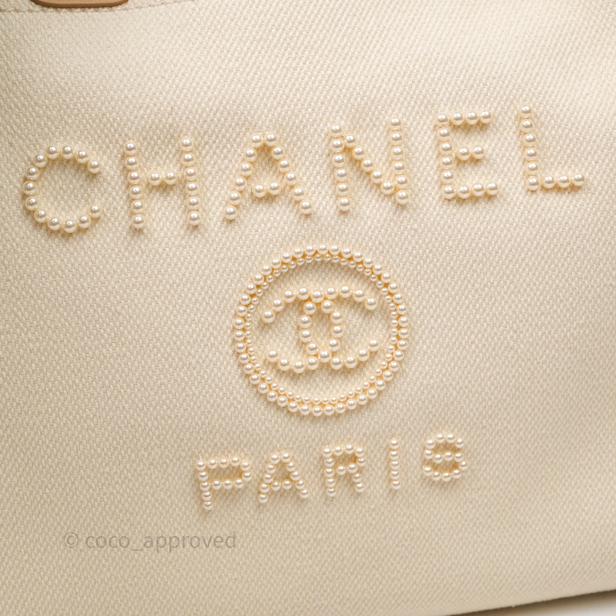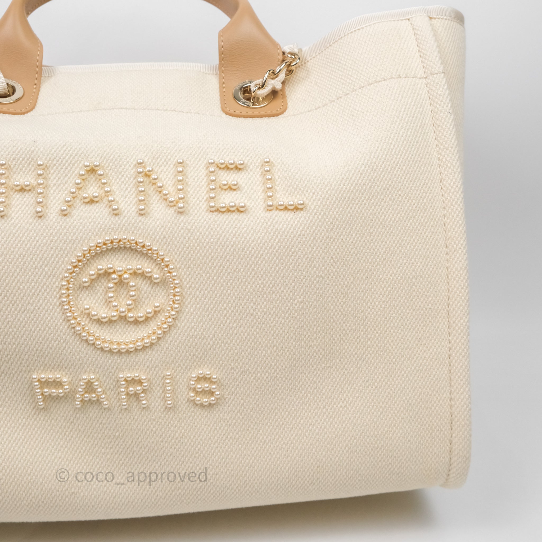 Chanel Large Deauville Light Beige Canvas Imitation Pearl
