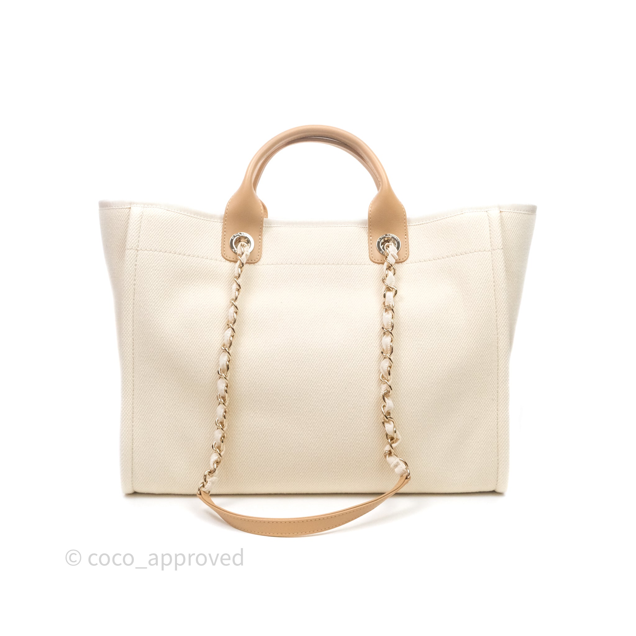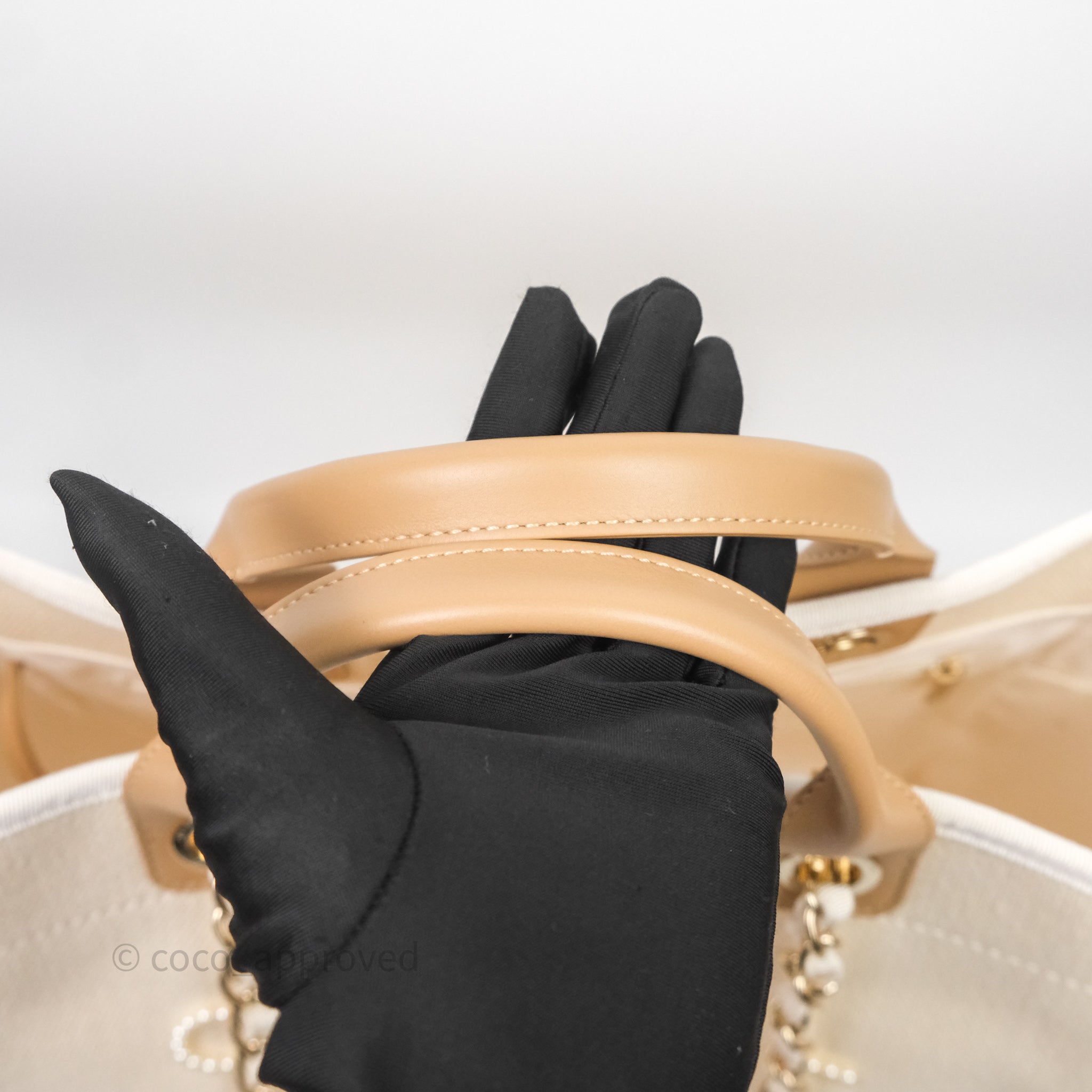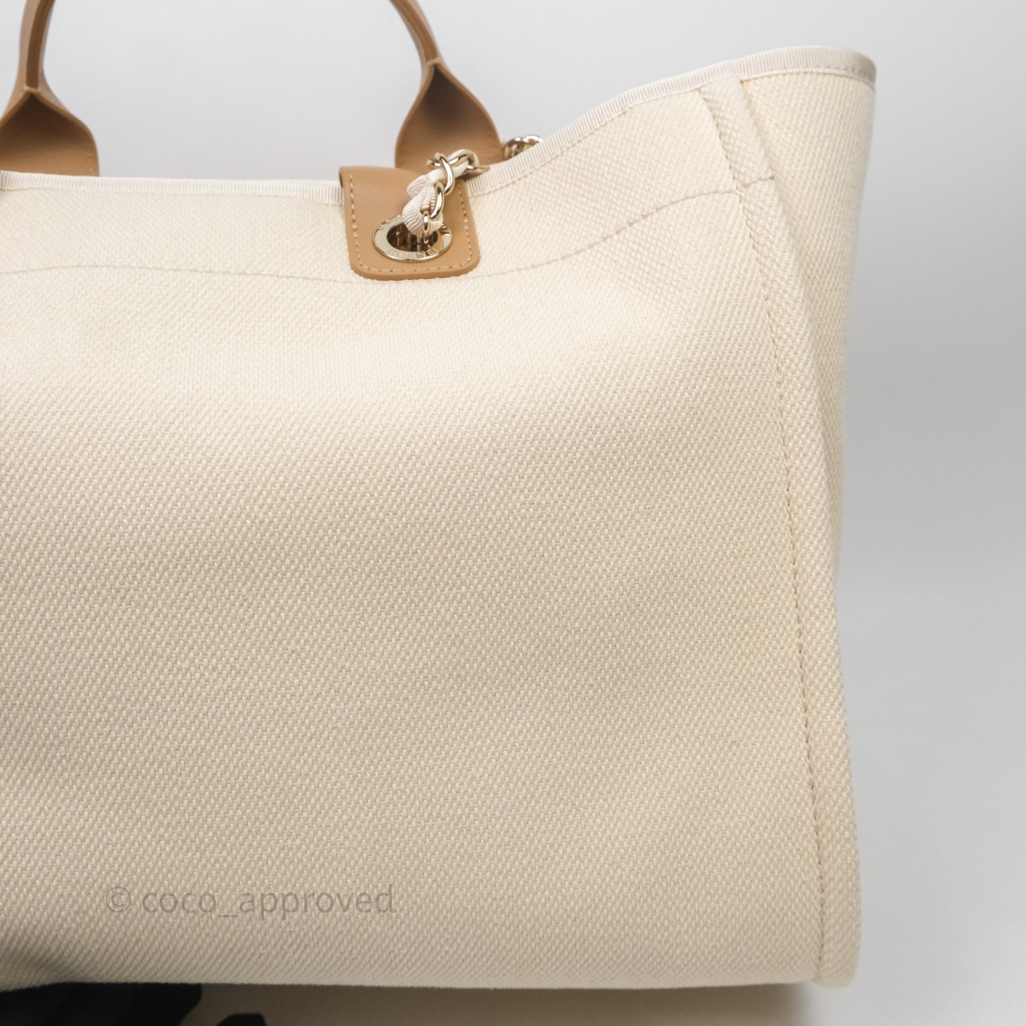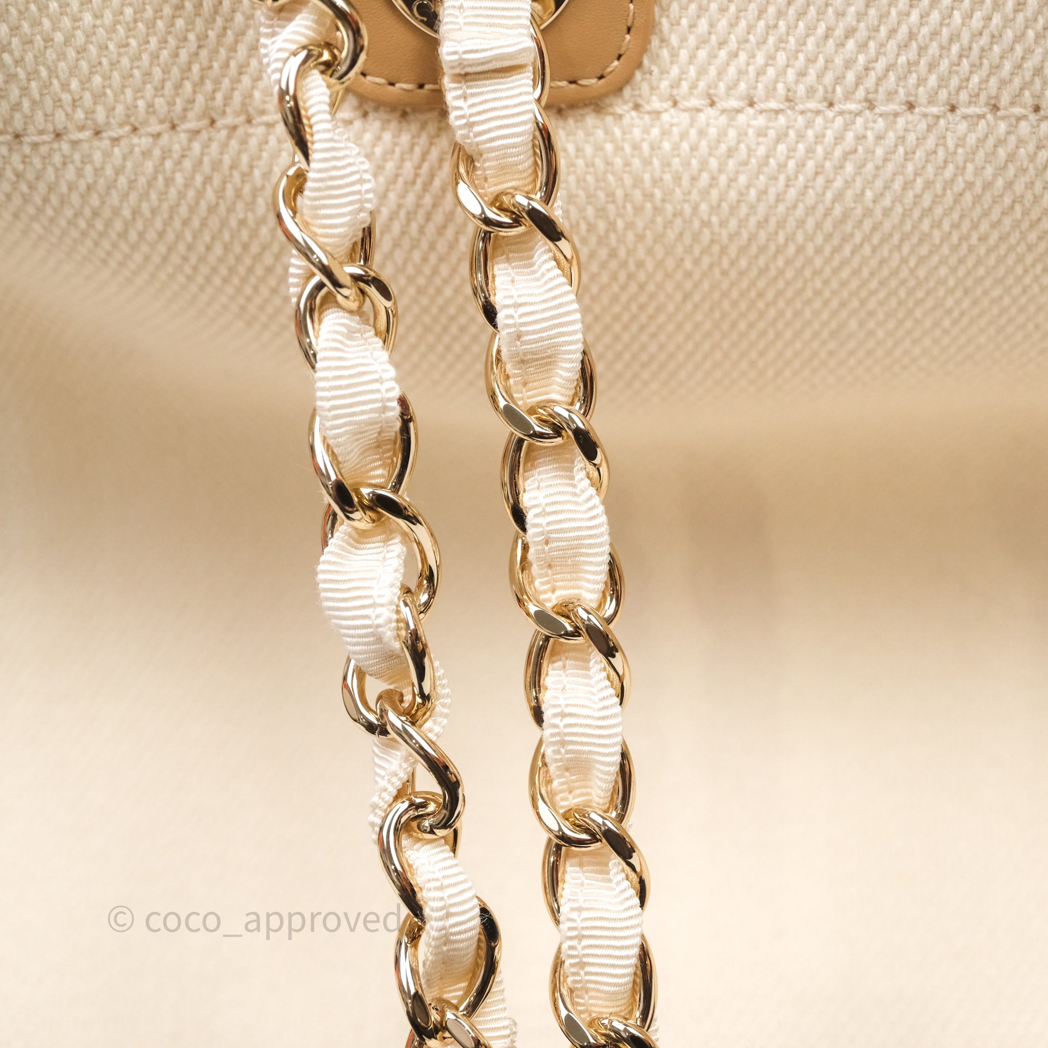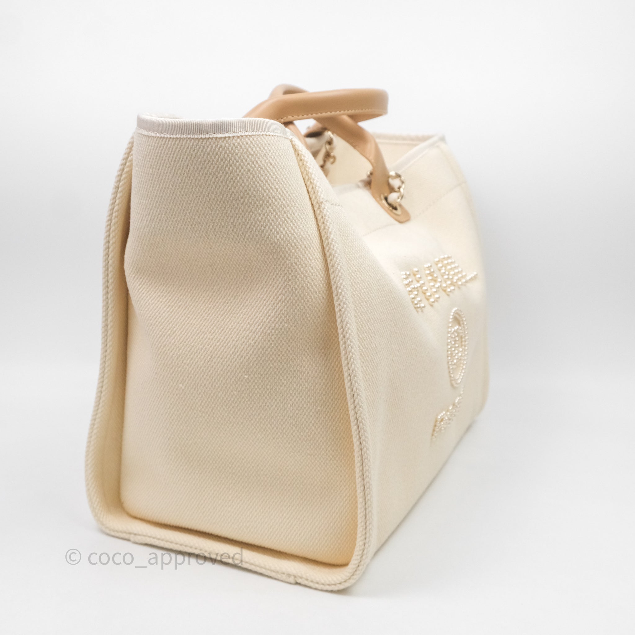 Chanel Large Deauville Light Beige Canvas Imitation Pearl