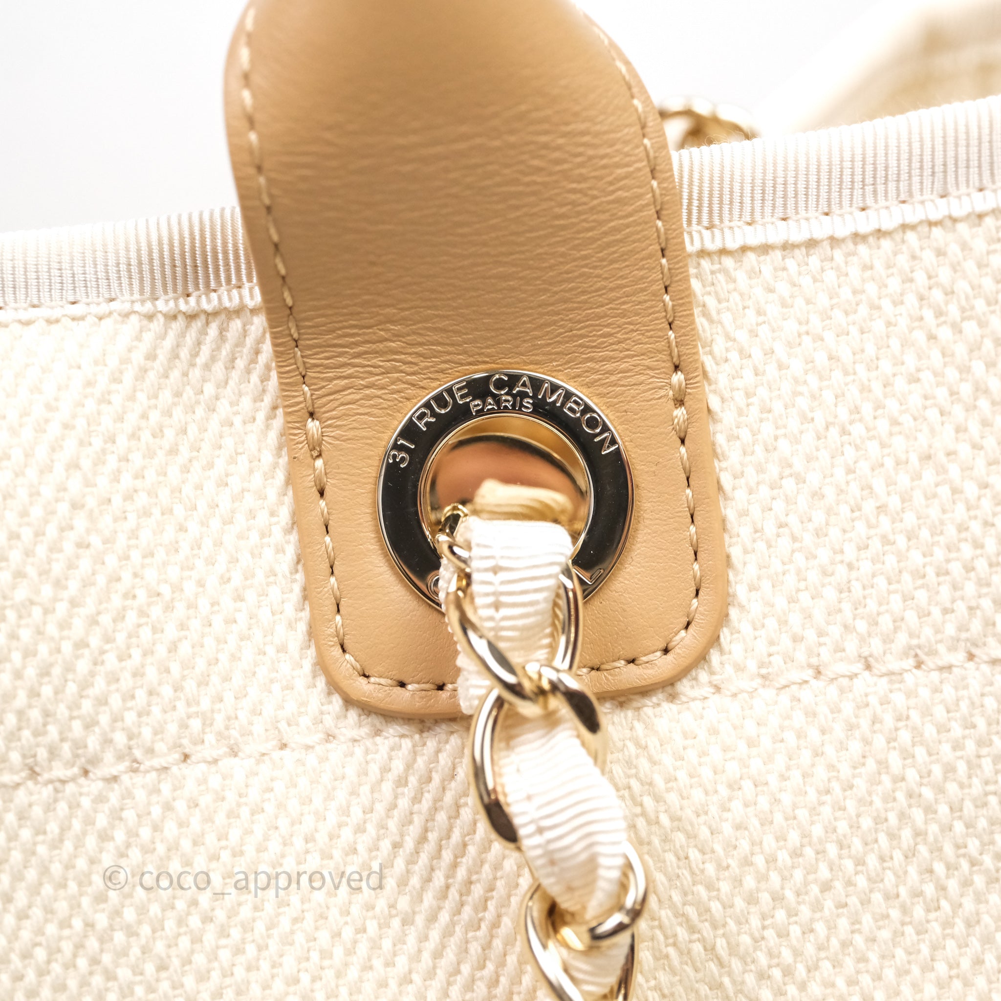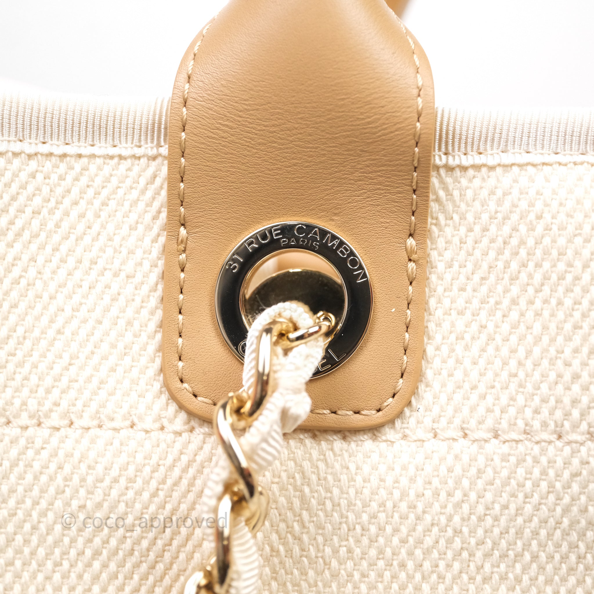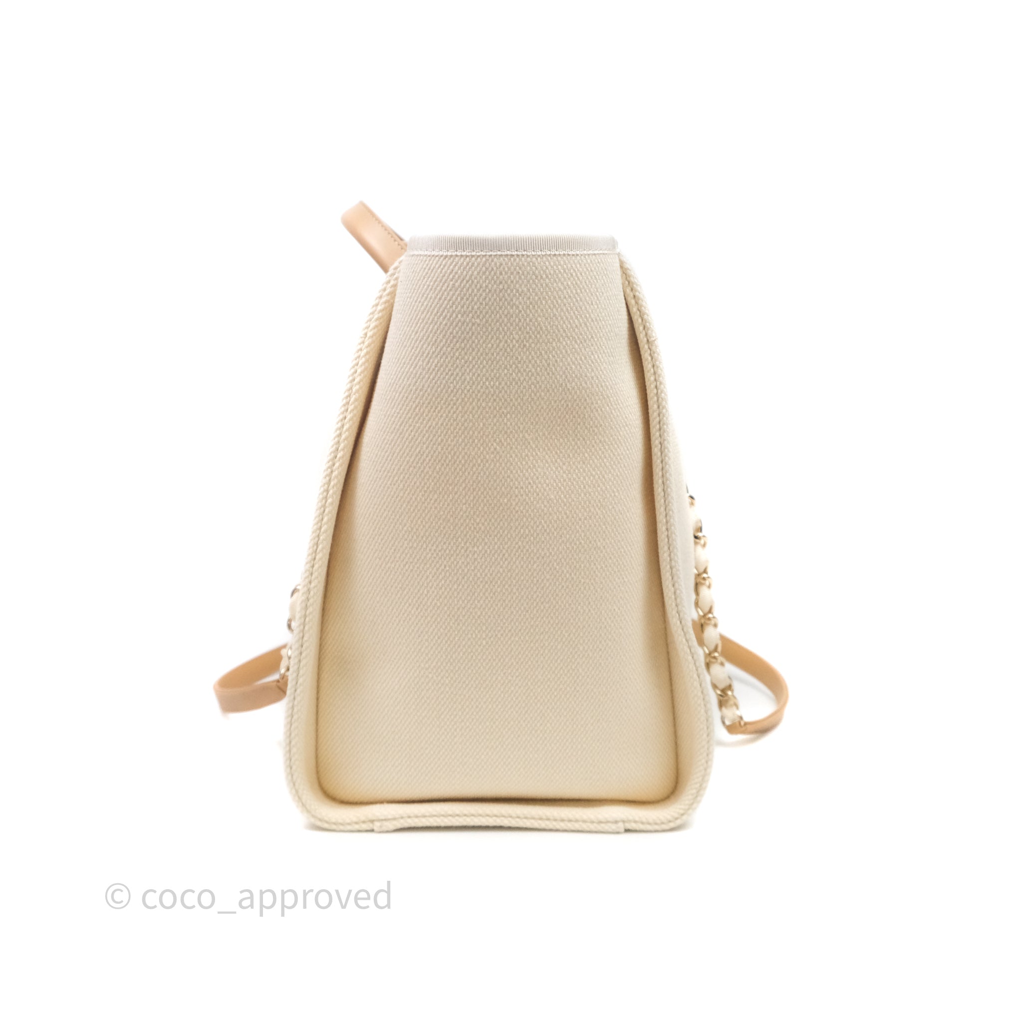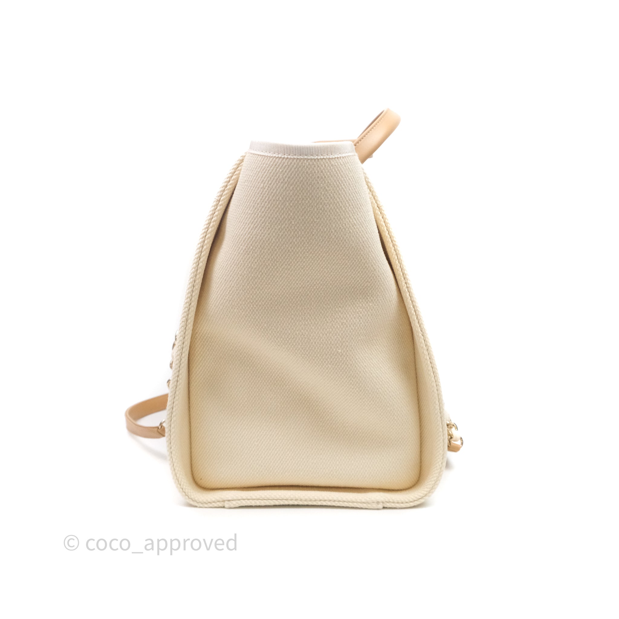 Chanel Large Deauville Light Beige Canvas Imitation Pearl