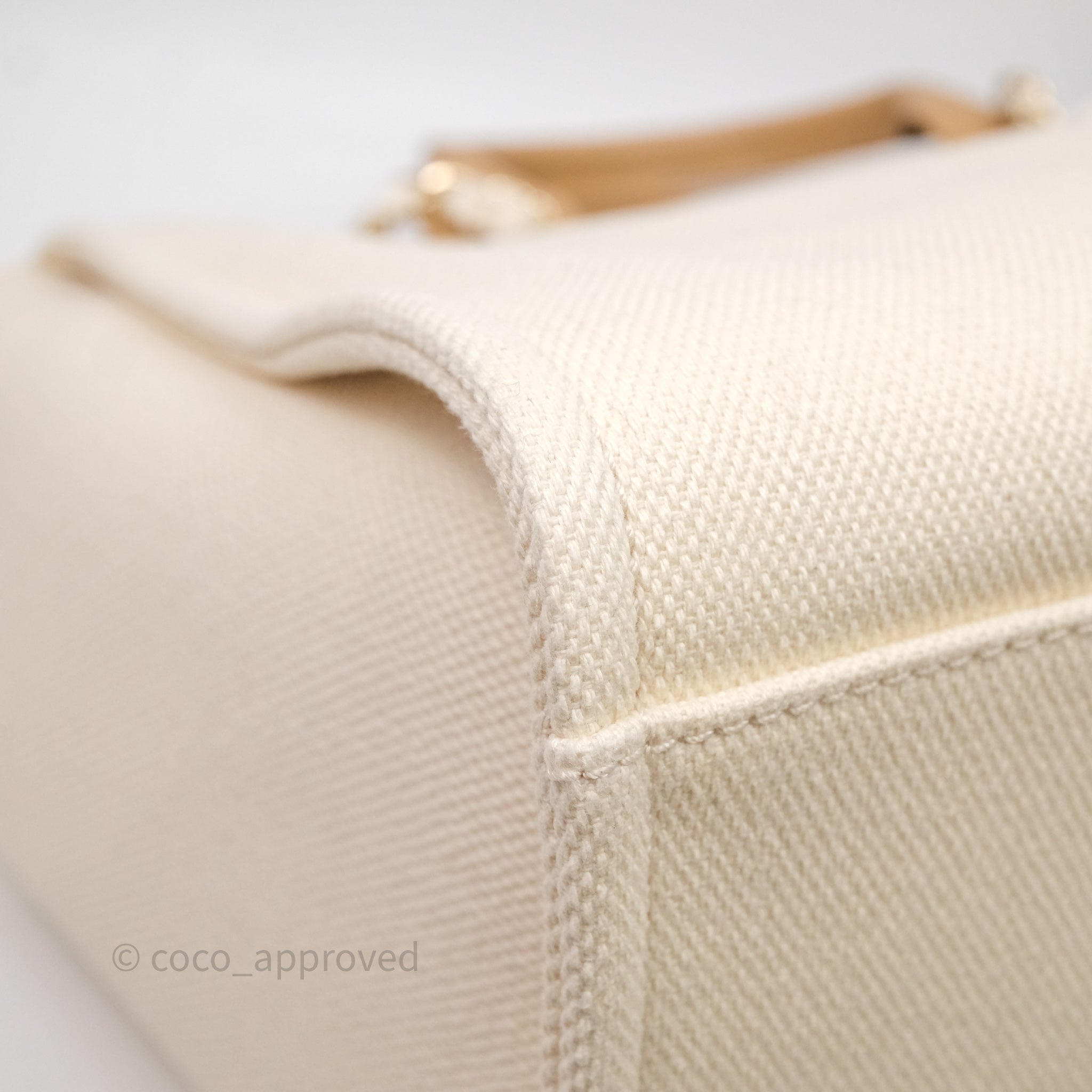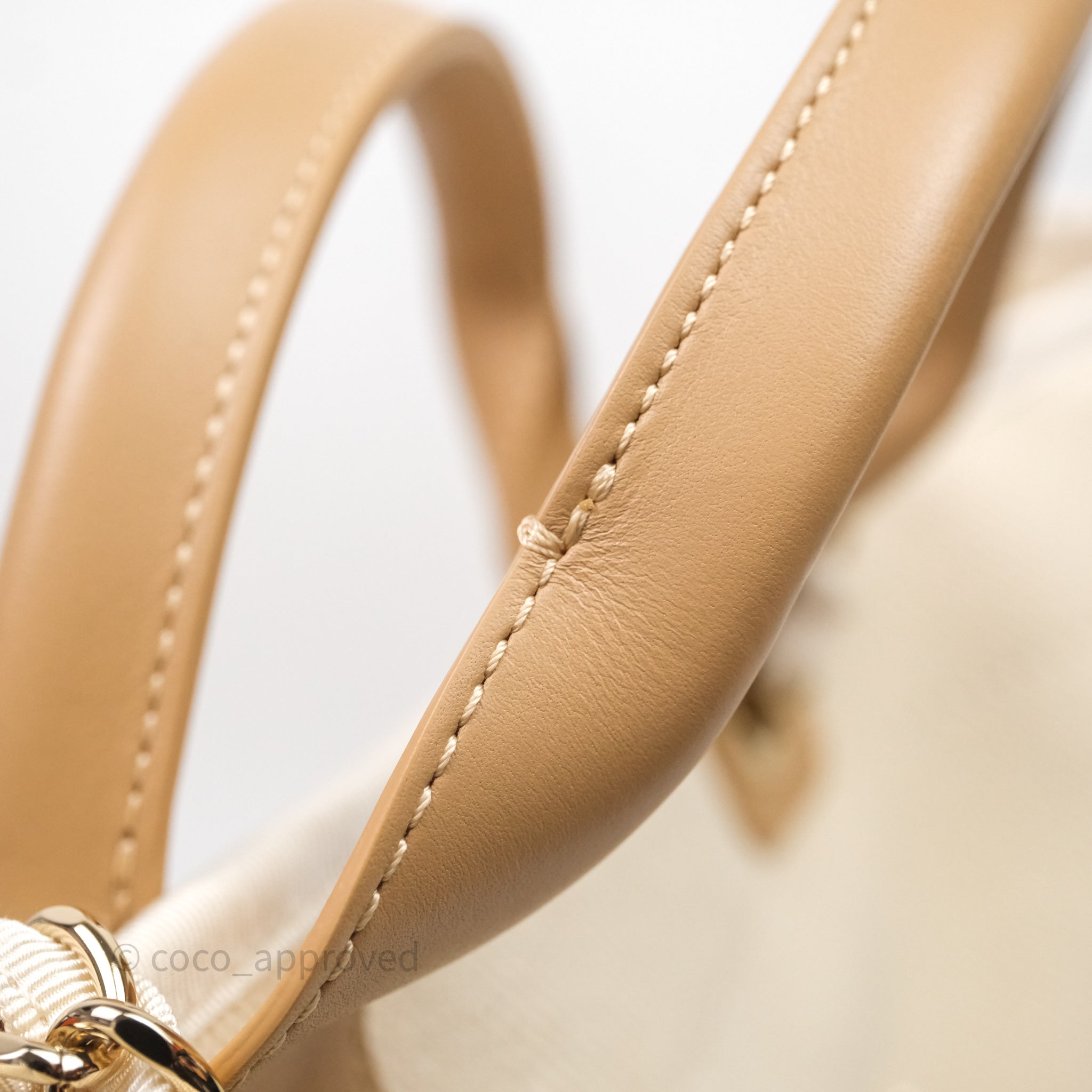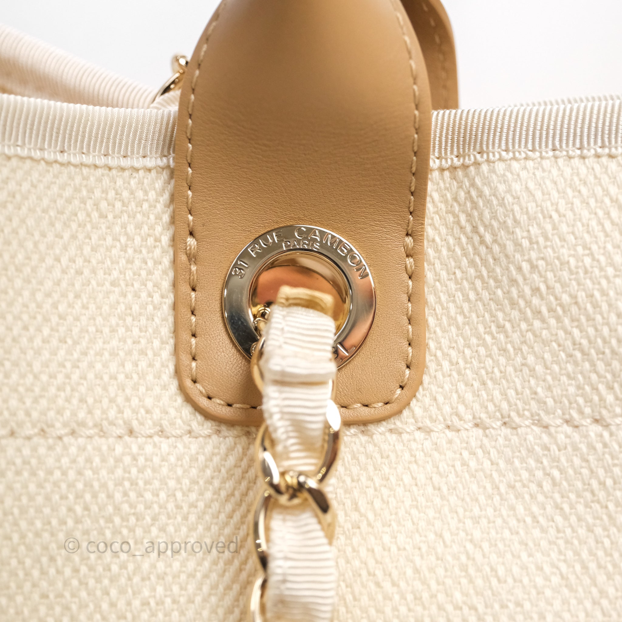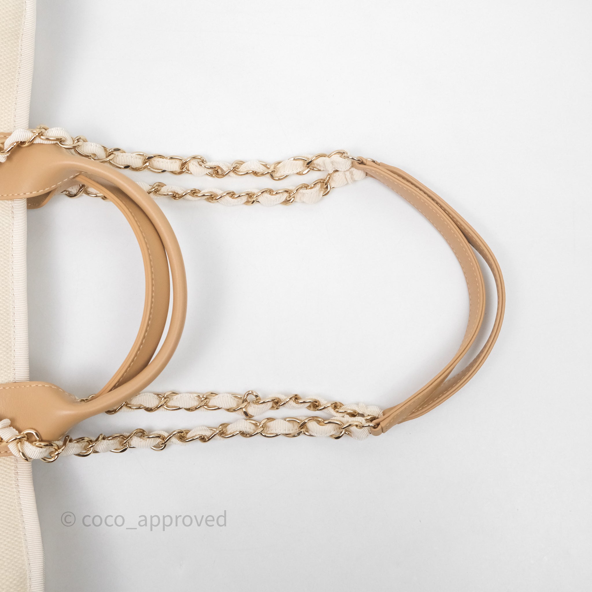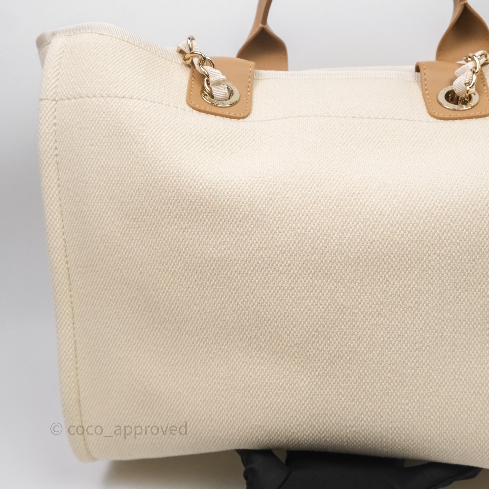 Chanel Large Deauville Light Beige Canvas Imitation Pearl
