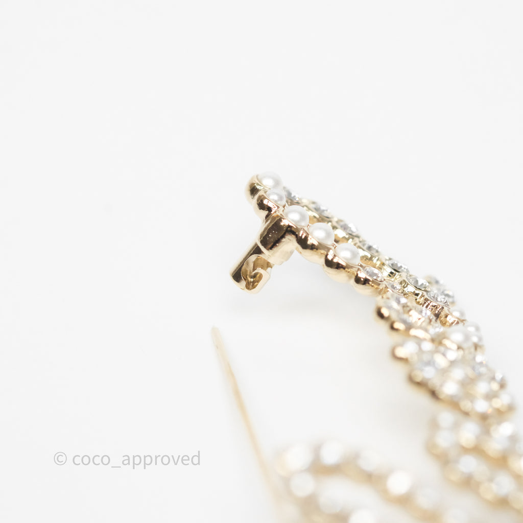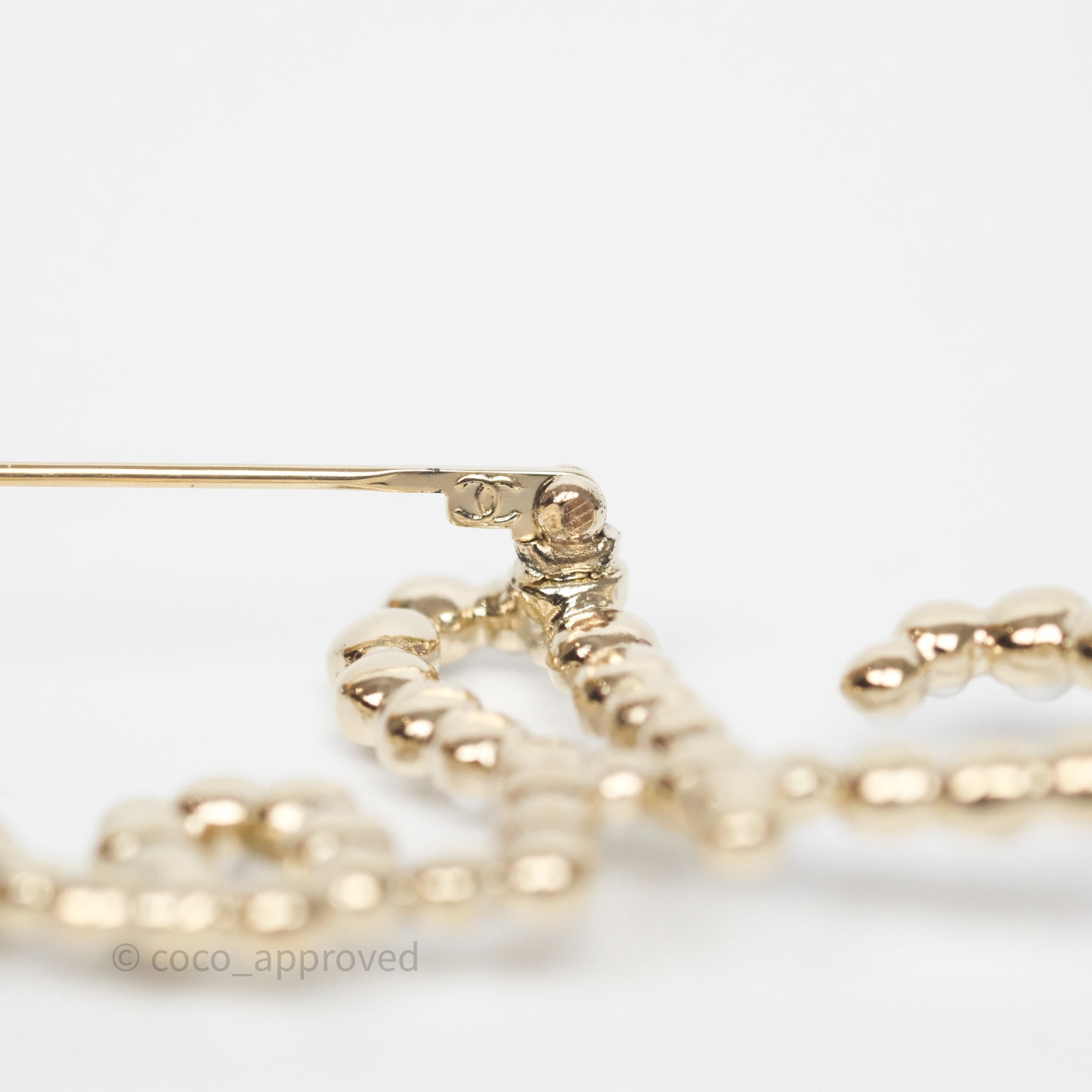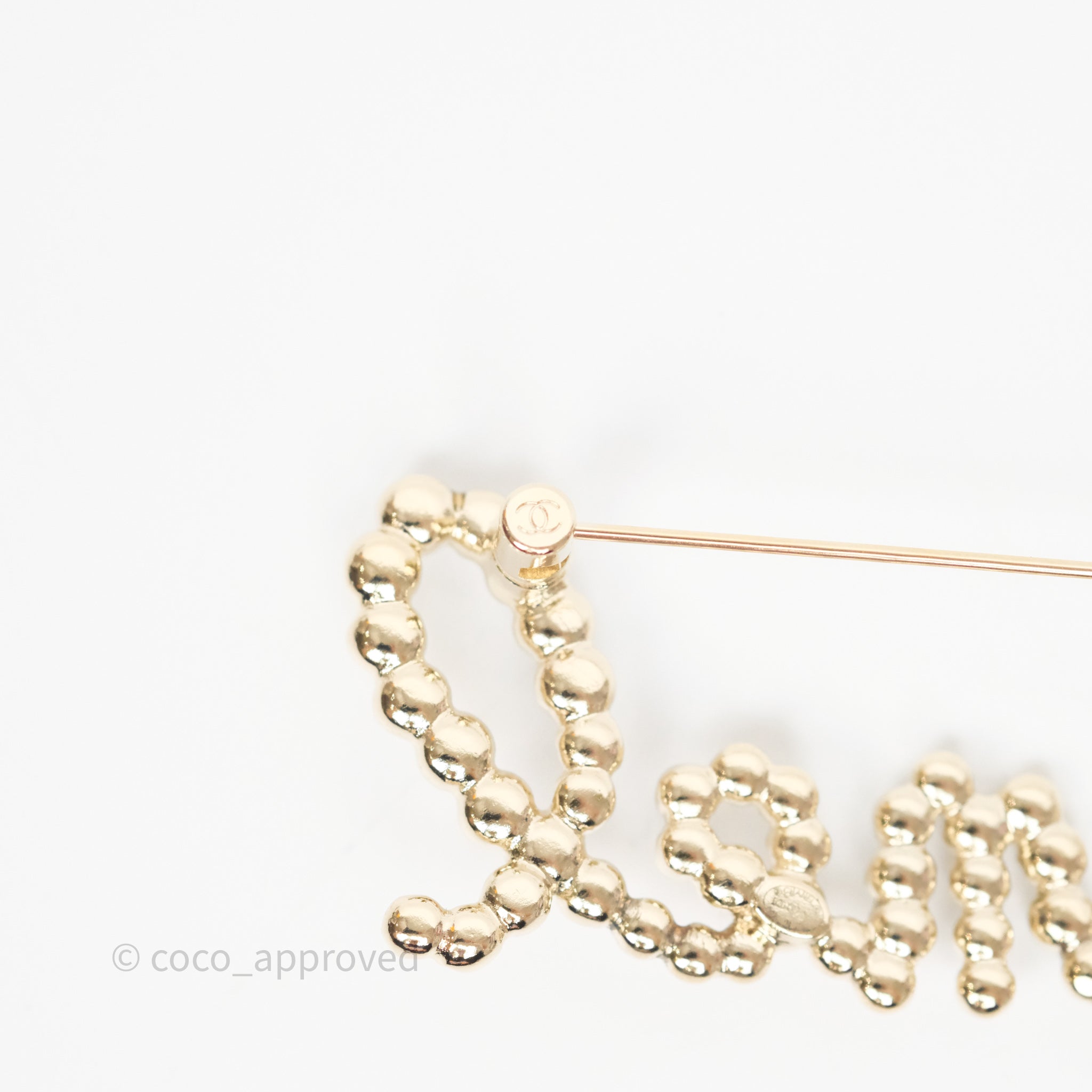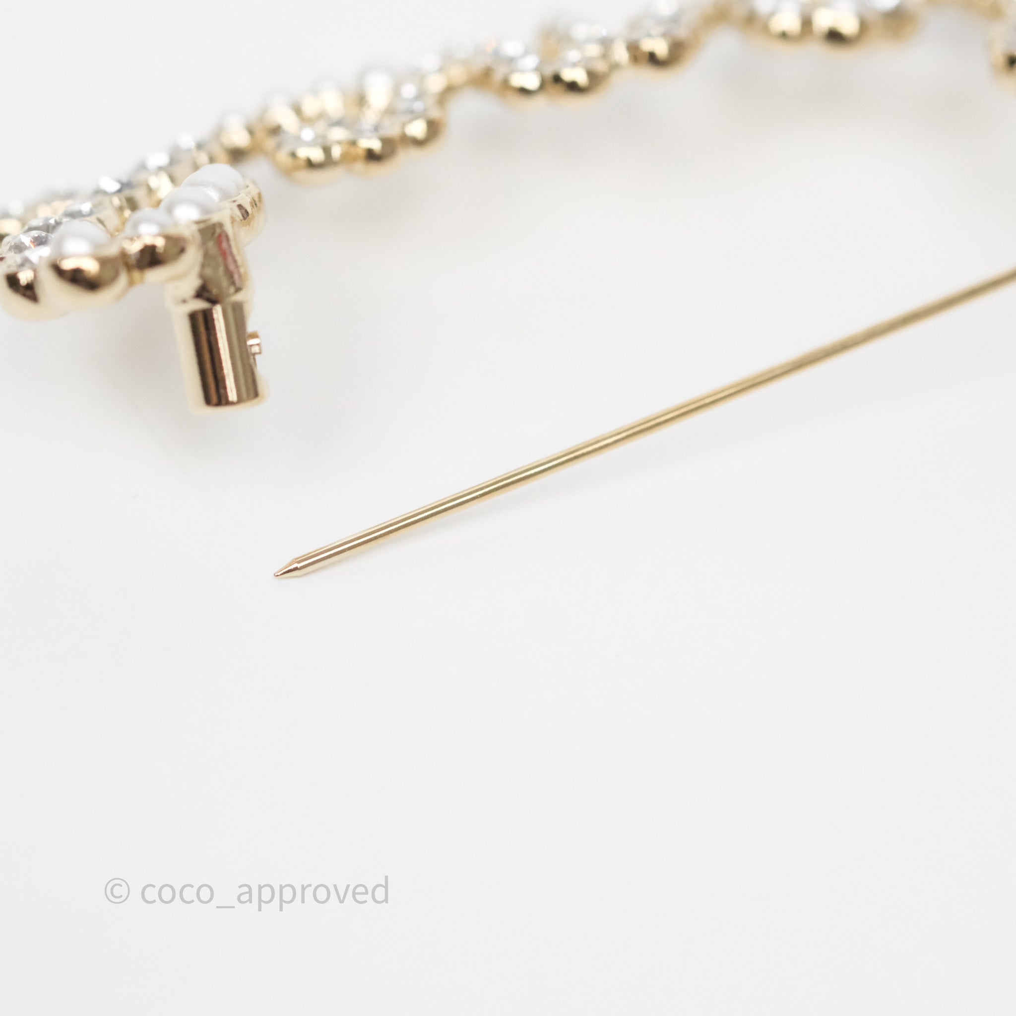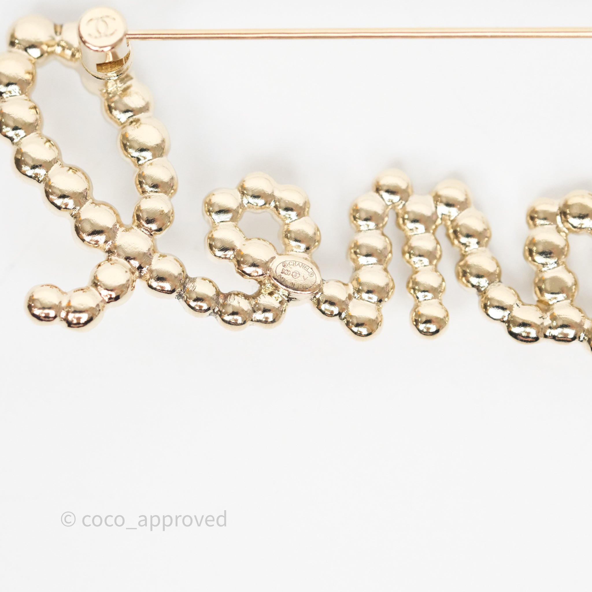 Chanel Logo Pearl Crystal Brooch Gold Tone 20V