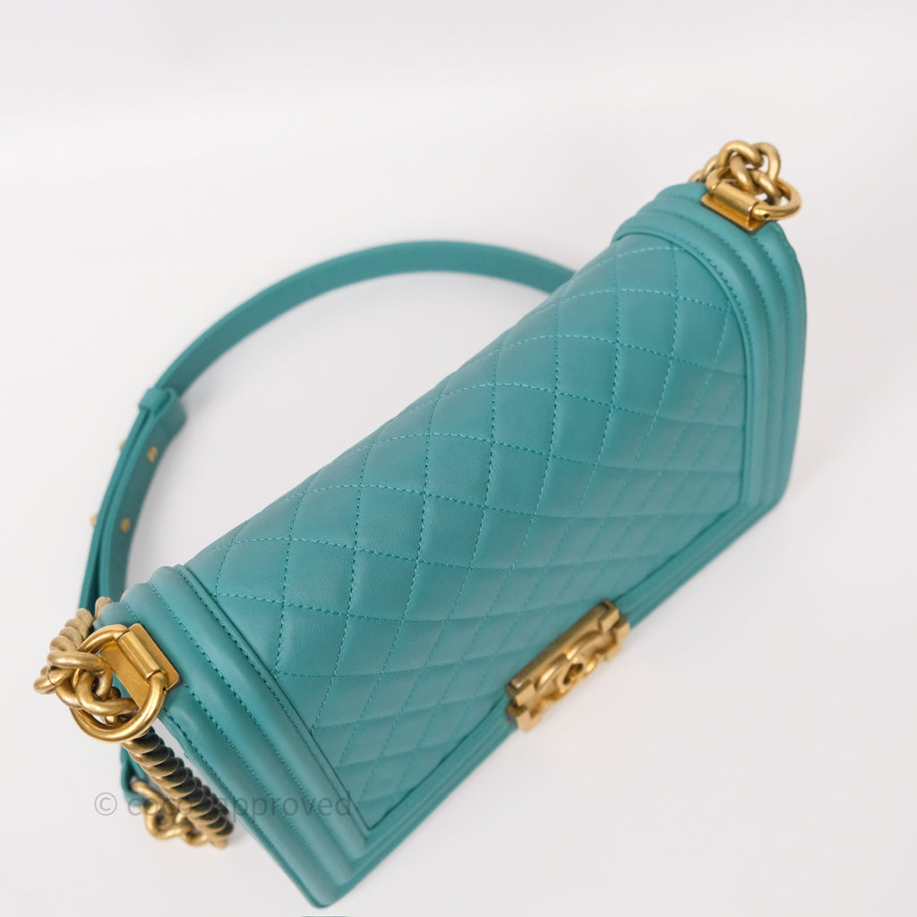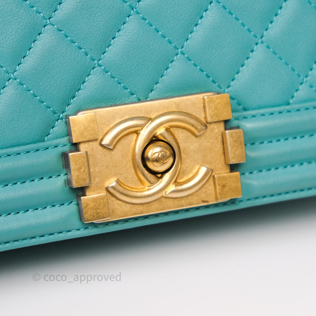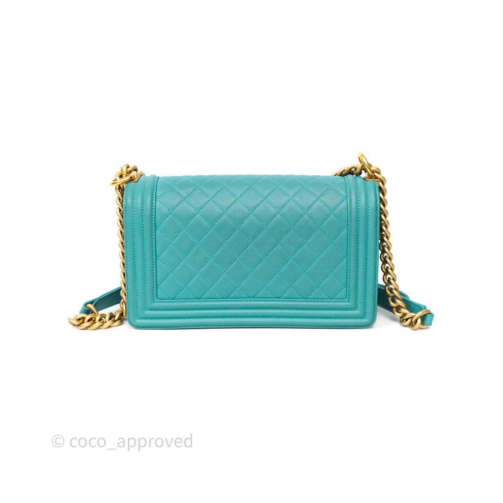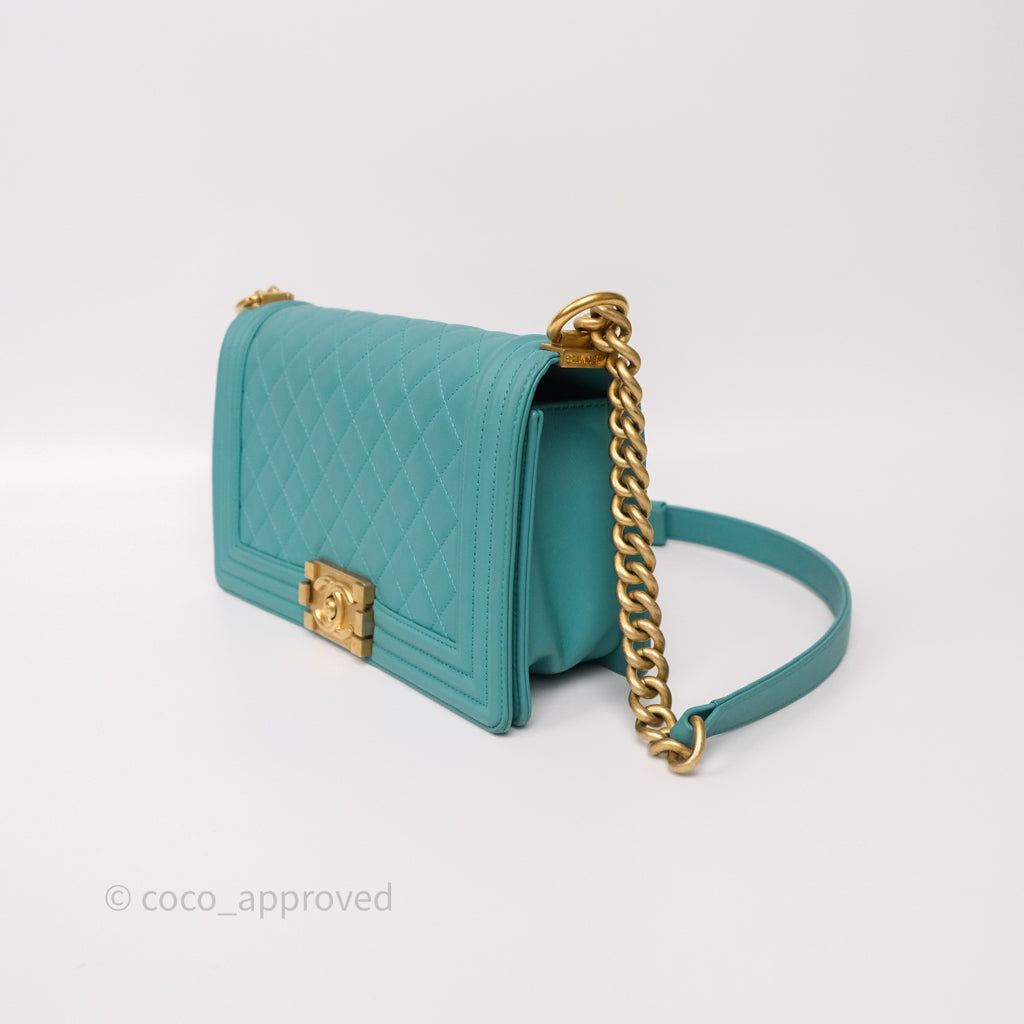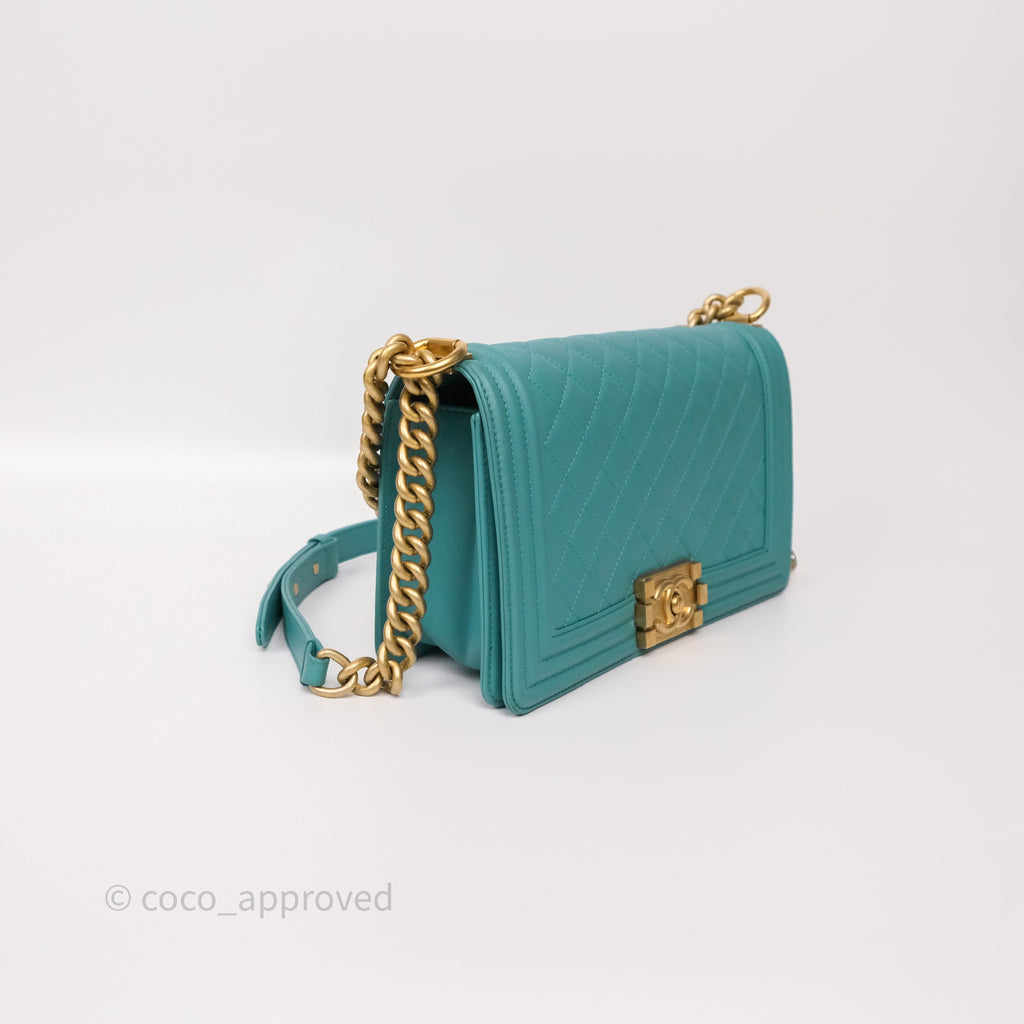 Chanel Medium Boy Quilted Turquoise Calfskin Aged Gold Hardware
