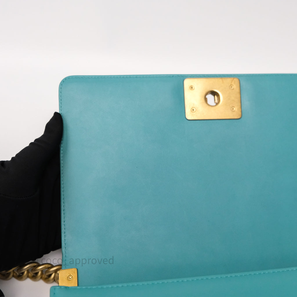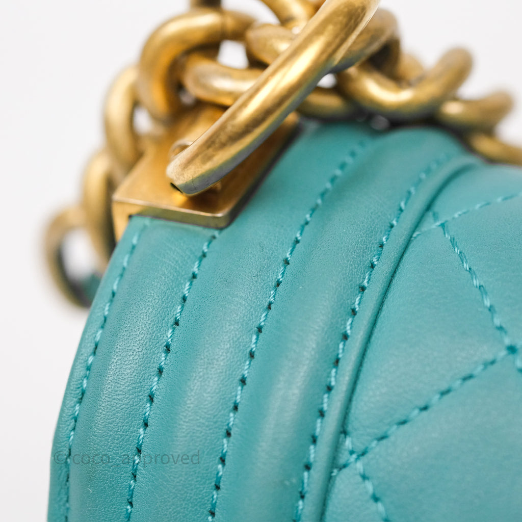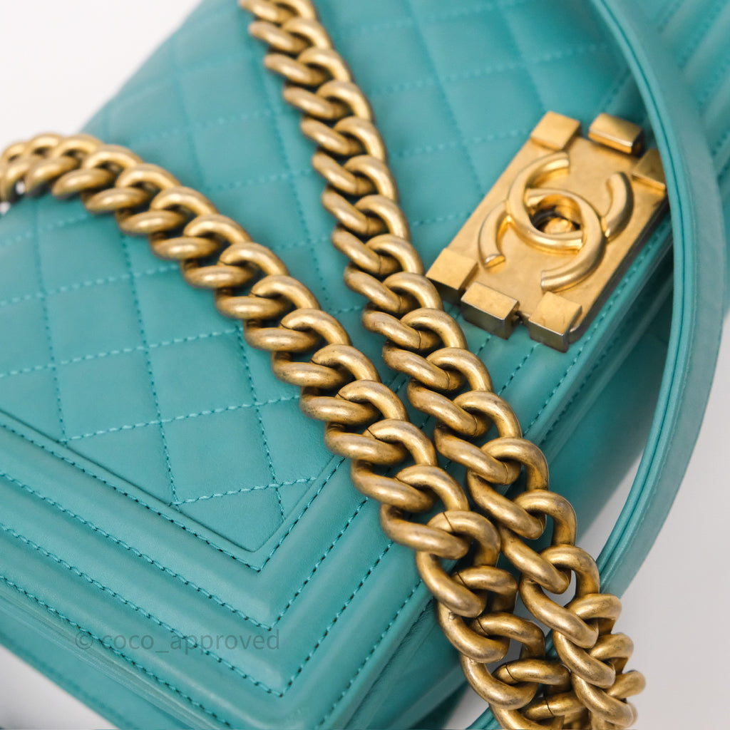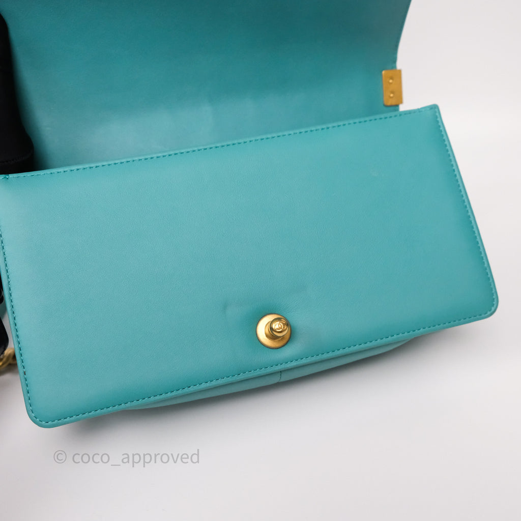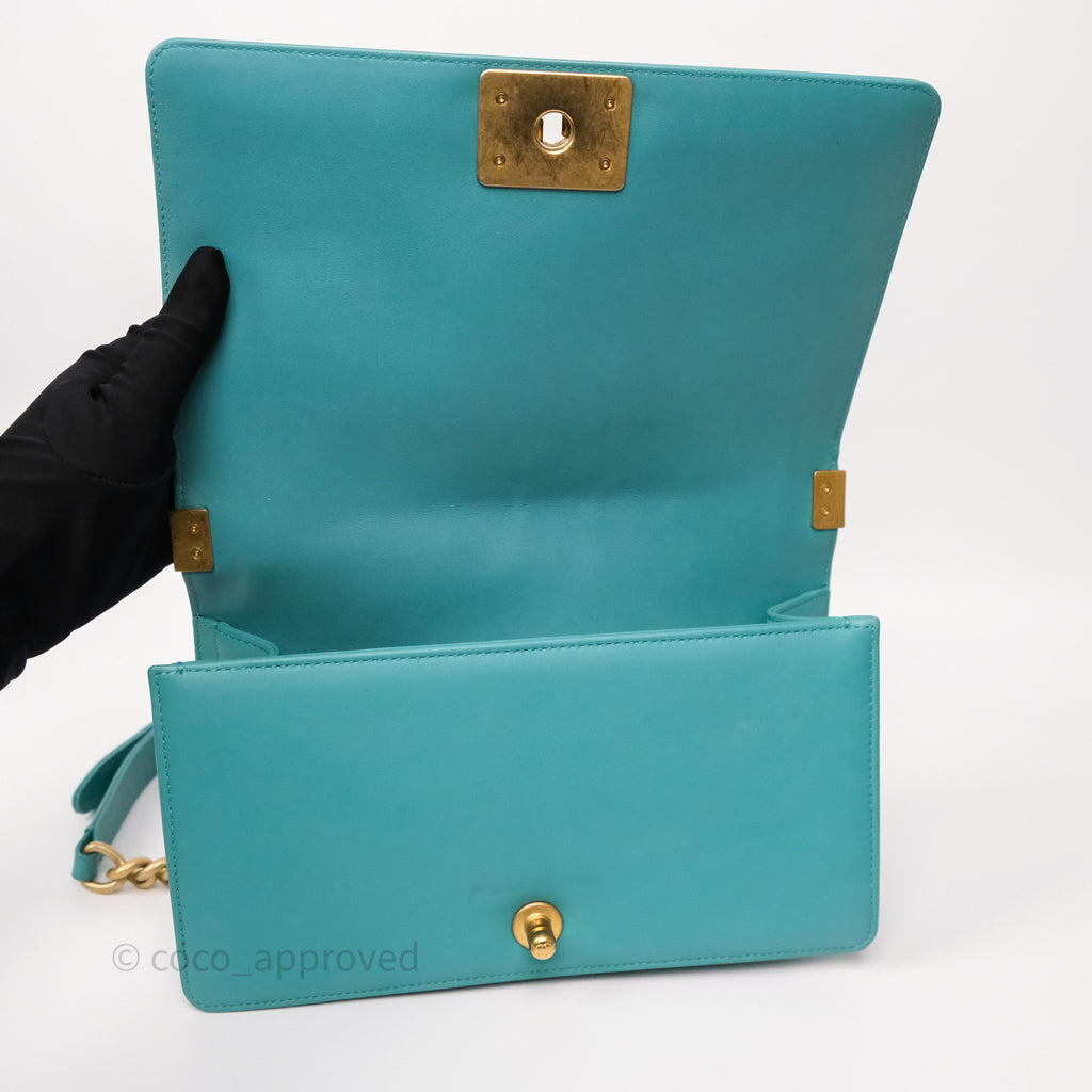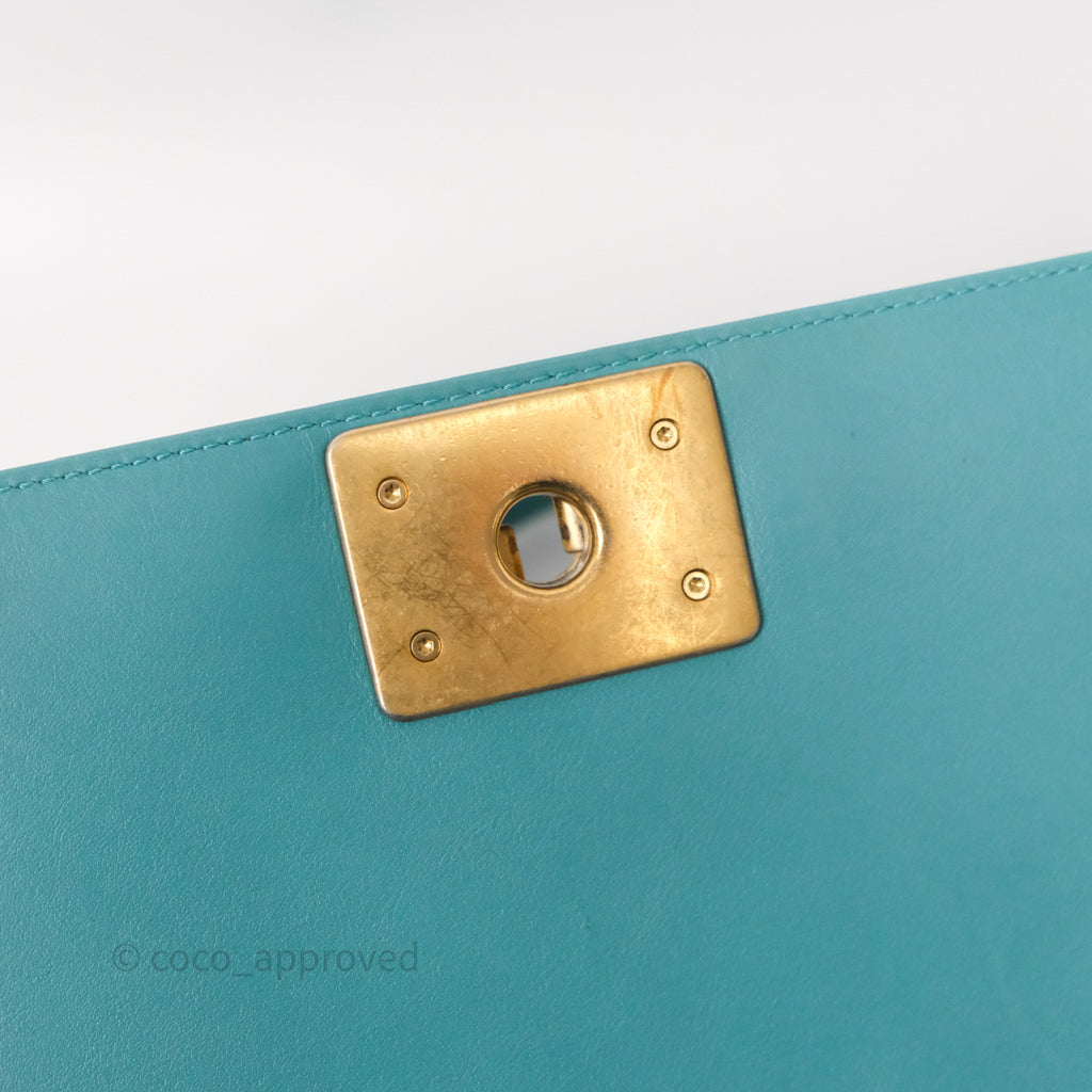 Chanel Medium Boy Quilted Turquoise Calfskin Aged Gold Hardware