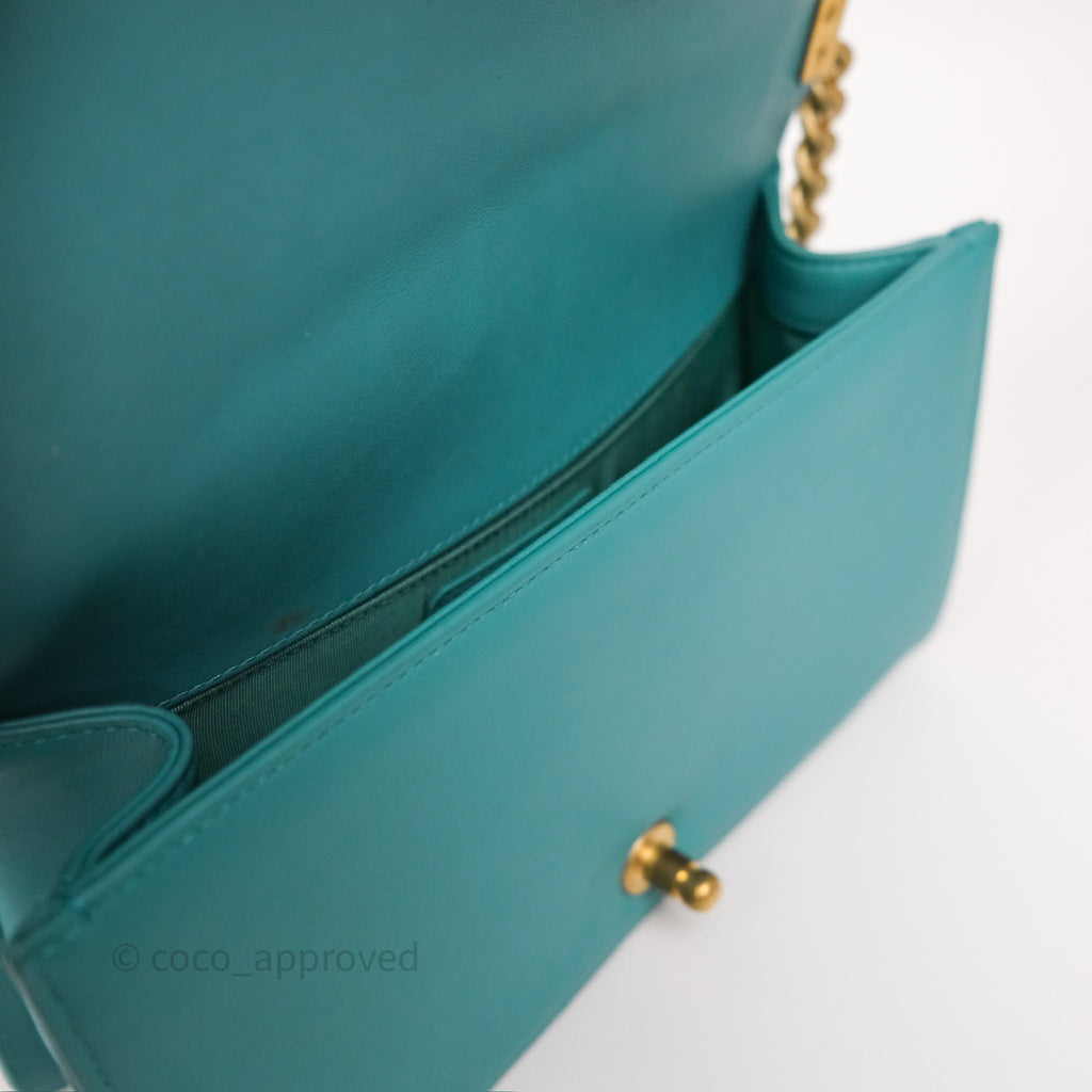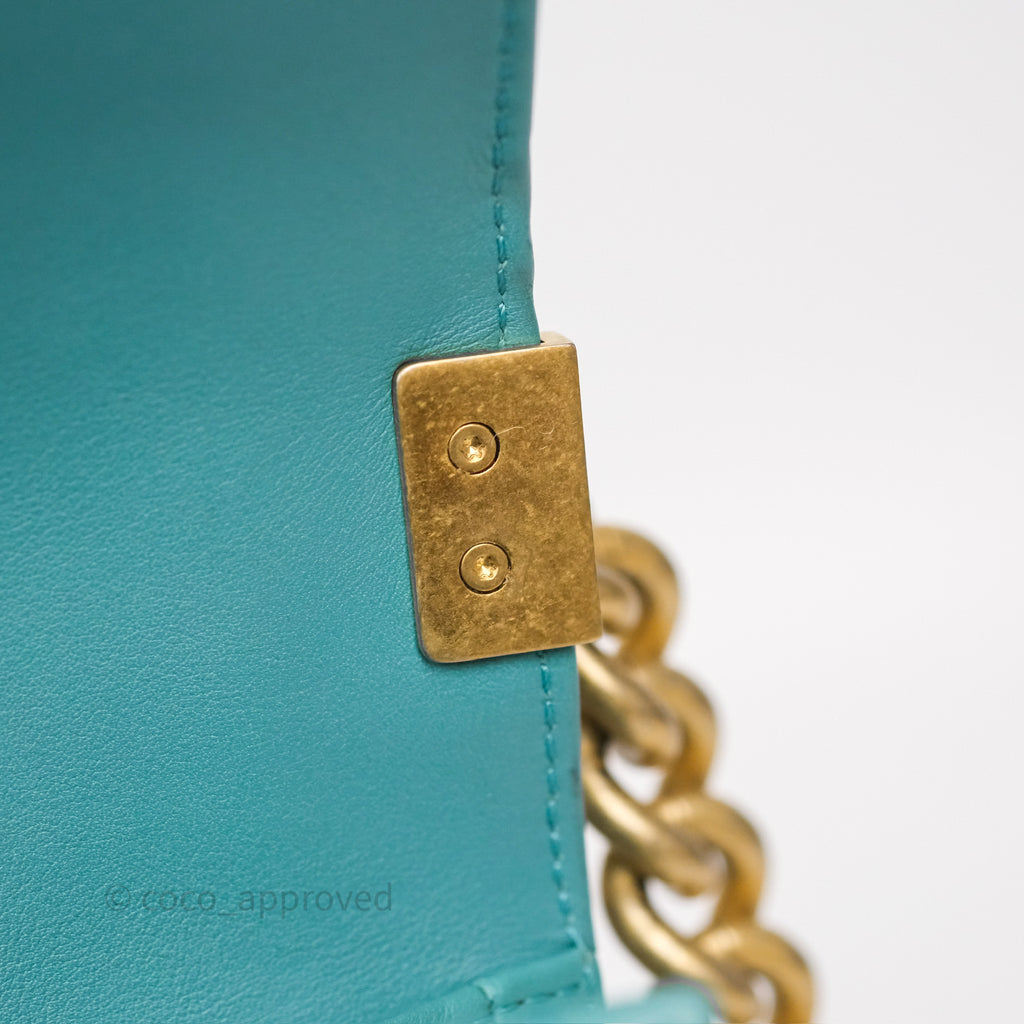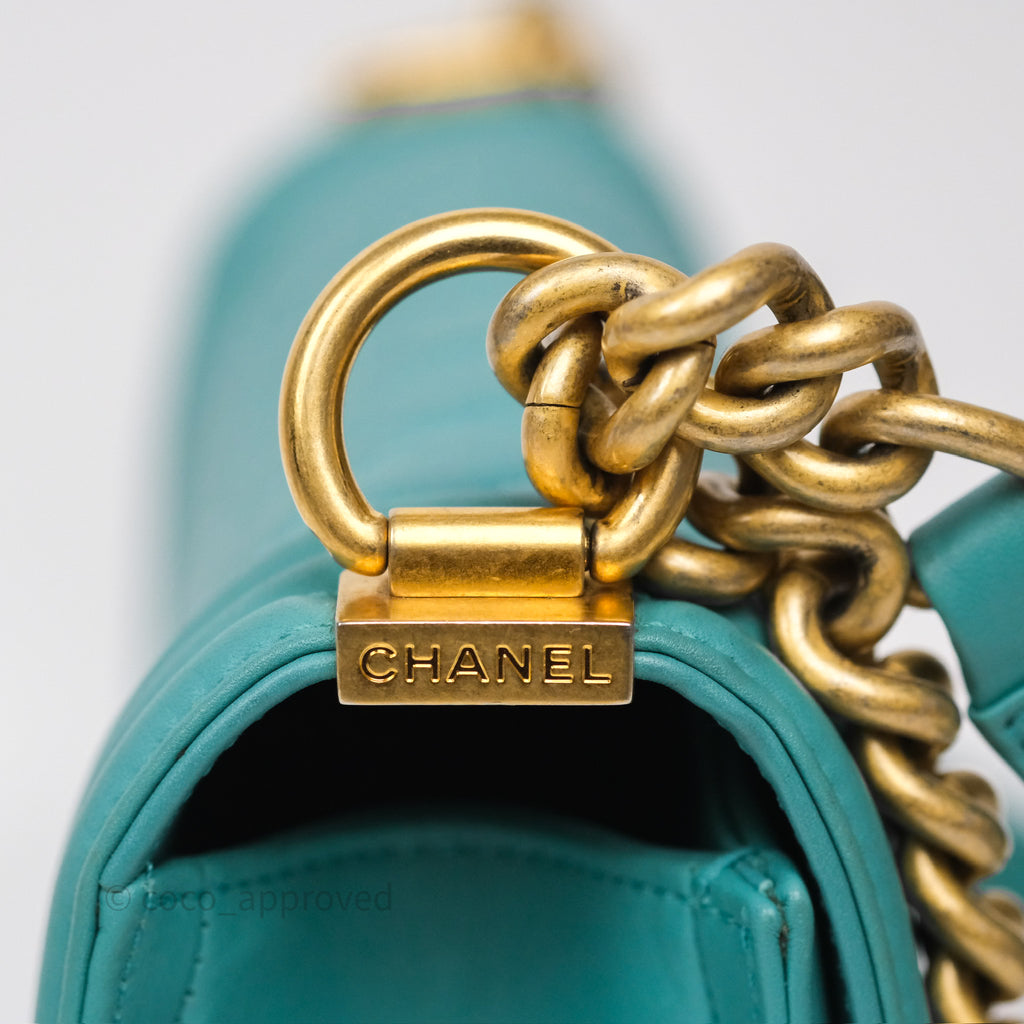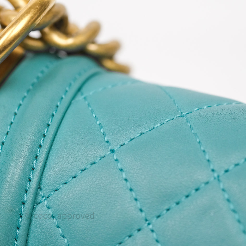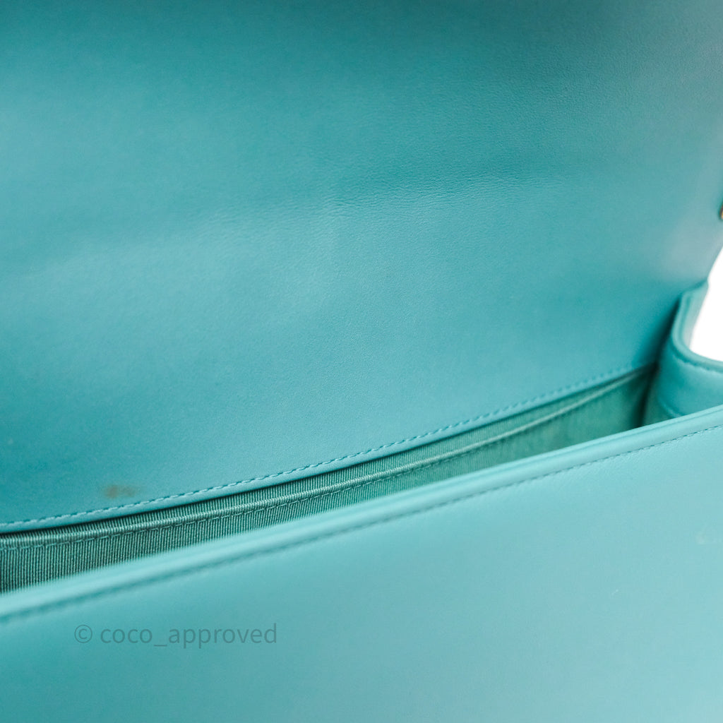 Chanel Medium Boy Quilted Turquoise Calfskin Aged Gold Hardware