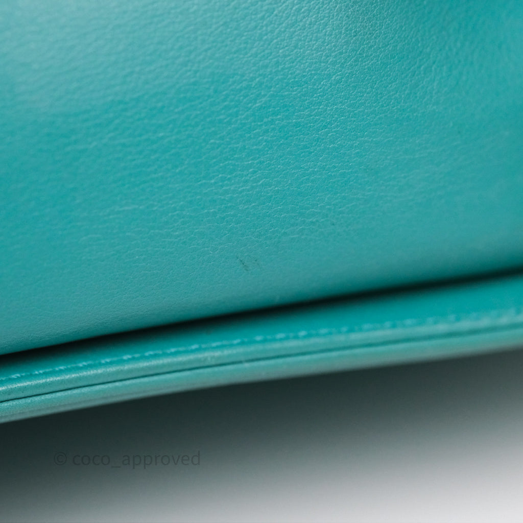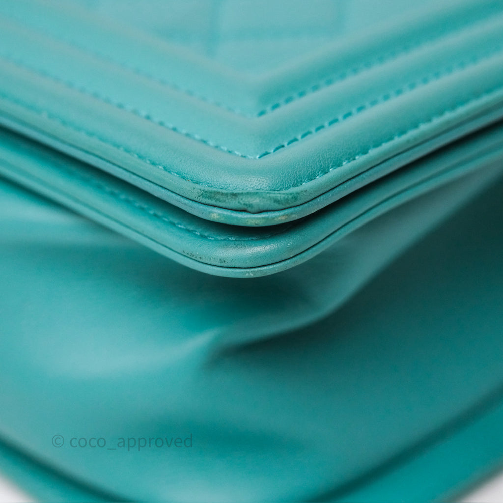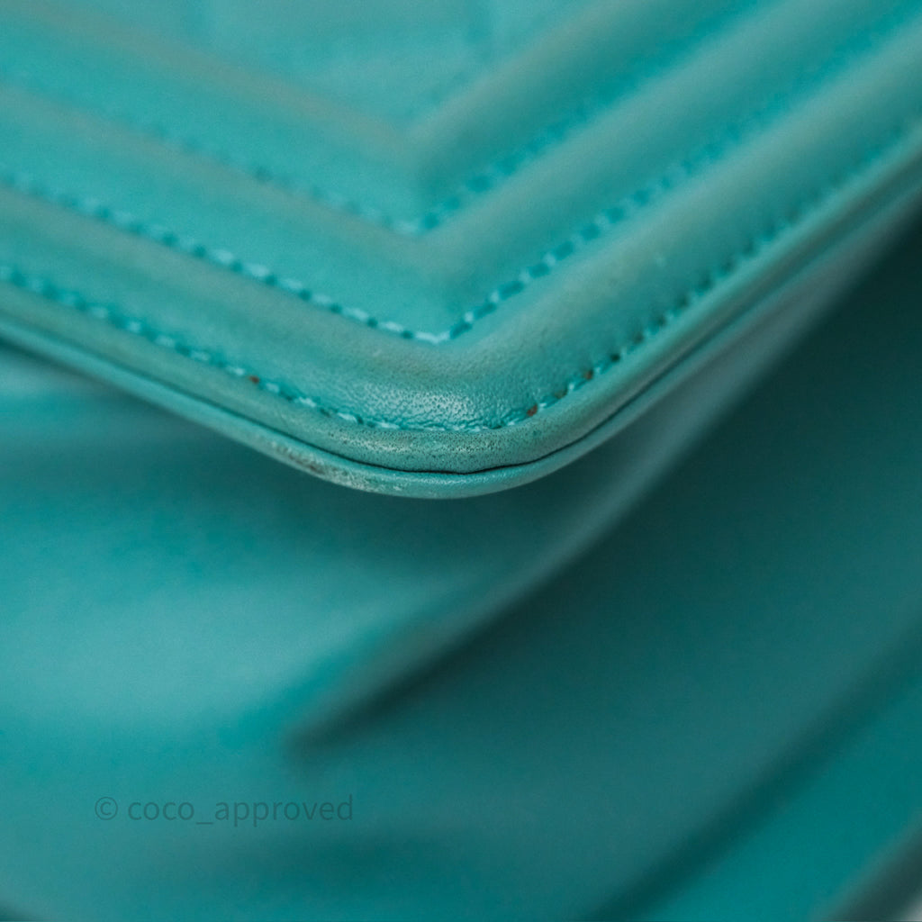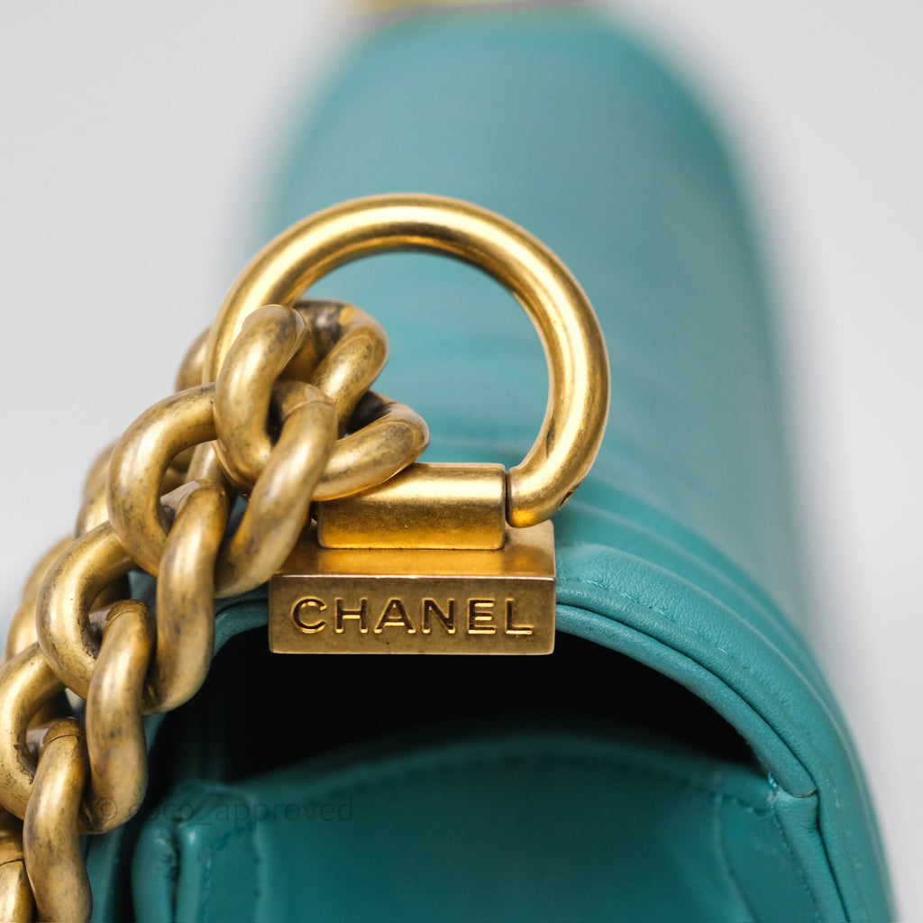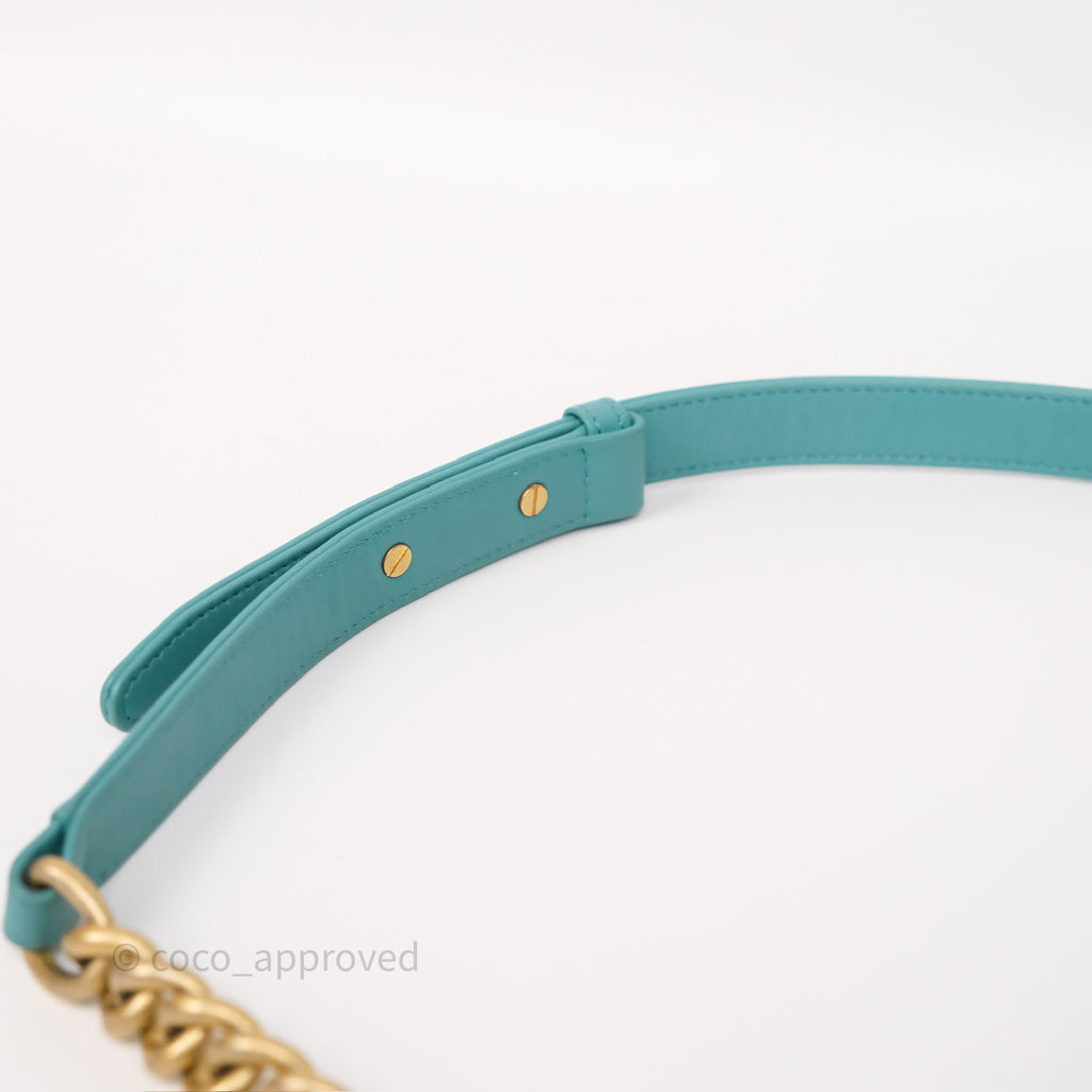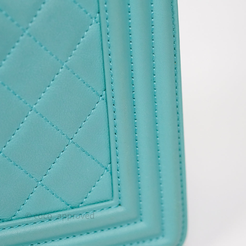 Chanel Medium Boy Quilted Turquoise Calfskin Aged Gold Hardware