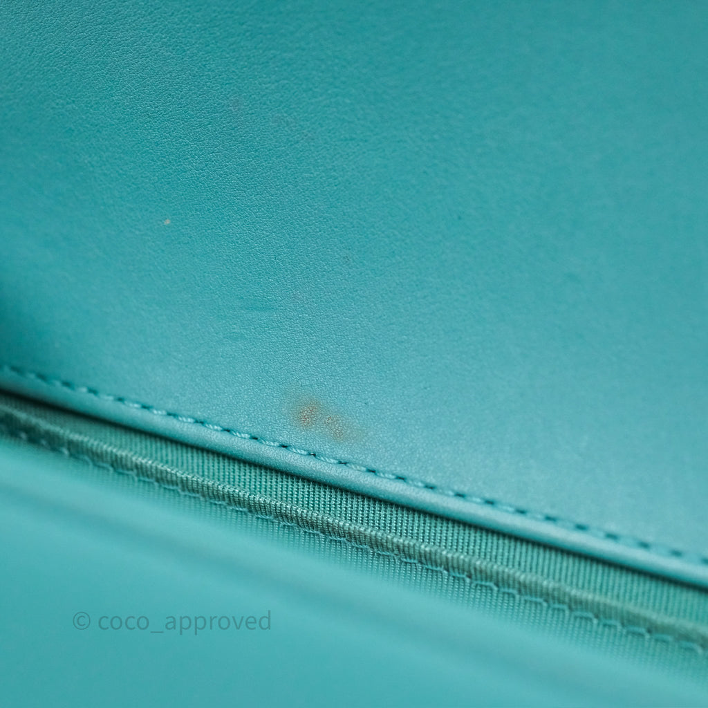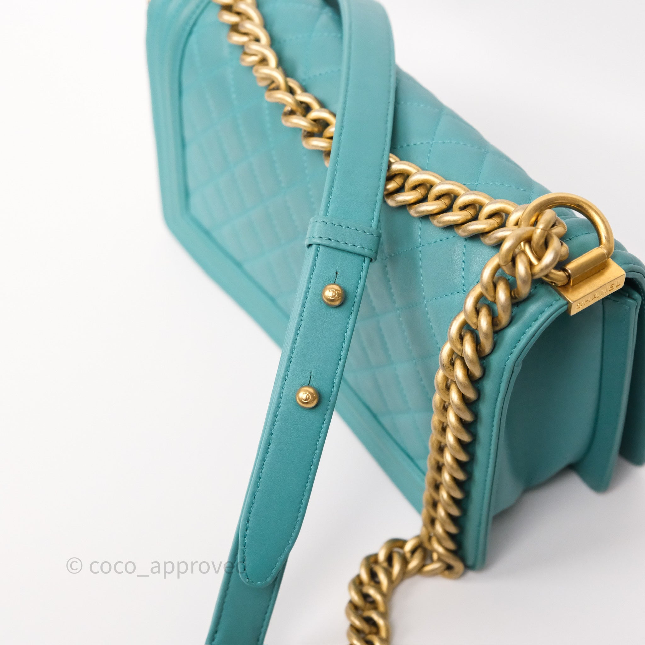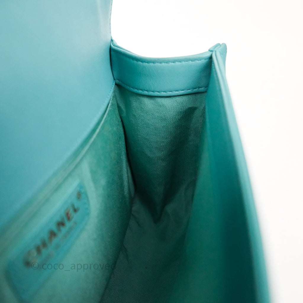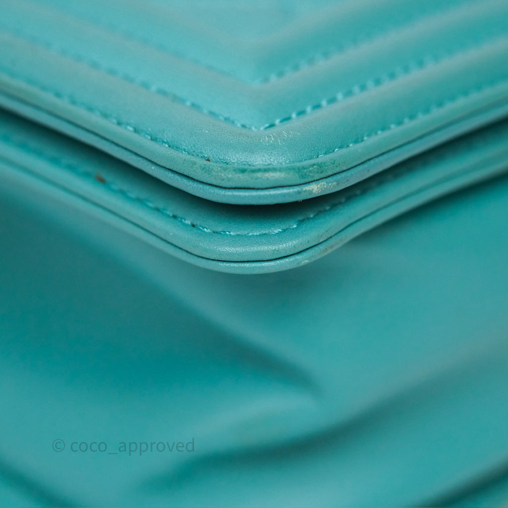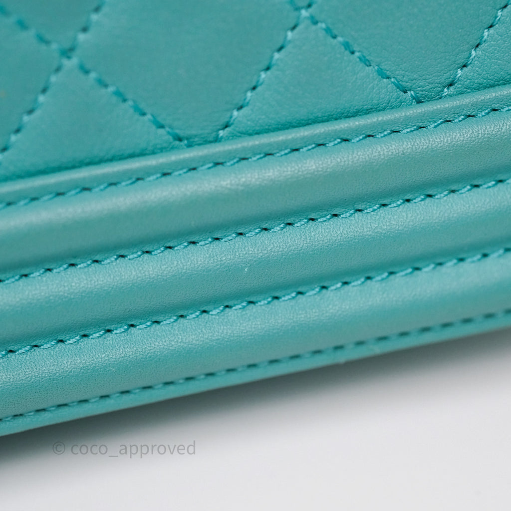 Chanel Medium Boy Quilted Turquoise Calfskin Aged Gold Hardware